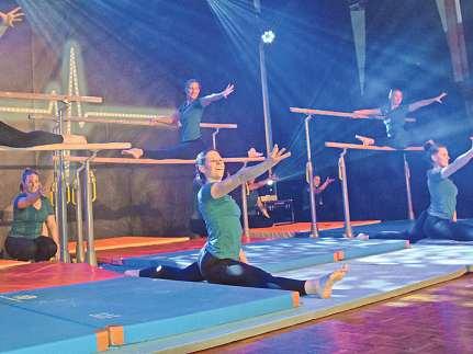 Früh übt sich was ein Spitzensportler werden will: So befassen sich die kleinen Geräteturner mit den «notwendigen Medikamenten», die ihnen auf ihrem Weg helfen sollen Die Erwachsenen hingegen gehen noch einen Schritt weiter und lassen sich durch plastische Chirurgie «auf Vordermann bringen» Doch die verdächtigen Sägegeräusche, die dabei zu hören sind, lassen nichts Gutes erahnen Der Stufenbarren erweist sich dabei als ausgezeichnetes Gerät für eine Physiotherapie Alle Abteilungen im Fokus Nach der Pause geht es direkt weiter mit einer «Operation» – Bodenturnen und Stufenbarren stehen auf dem Programm Ein etwas chaotisches Retterteam kommt zum Einsatz dessen «Arbeit» die Zuschauer auf der Leinwand an der hinteren Hallenwand mitverfolgen können Es wird poetisch, als Blaulicht durch die Halle flackert Die grossen Geräteturner