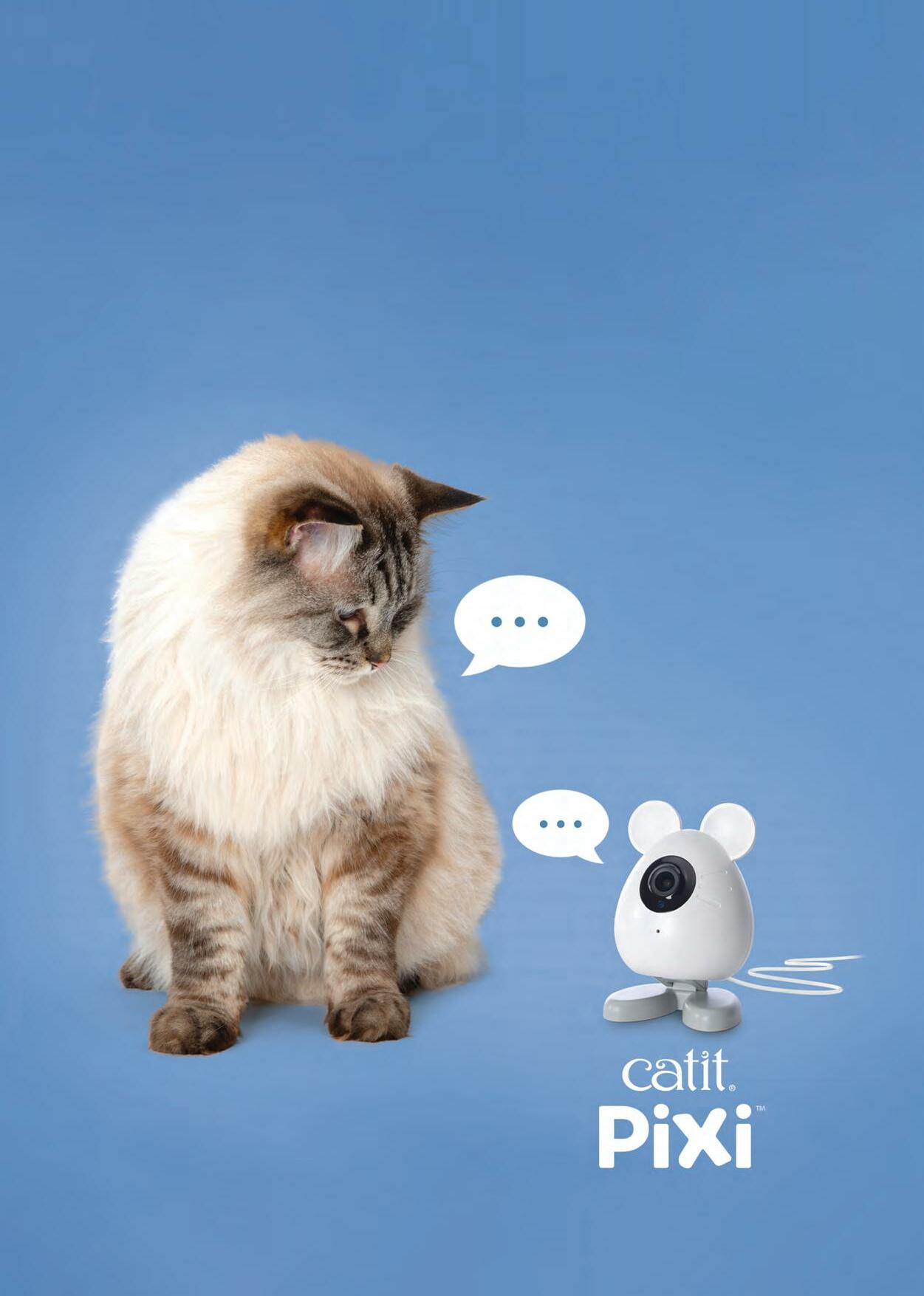 Camera Smart Moouse Yfli’ Check in on your cat, and even talk an Your feline’s n bfid d listen to new best friend k capture those moments you may nor Don’t miss a moment, pop in a Micro them while you are away from home. mally miss. SD card and and take pictures Watch live, record, motion detectio Selective audio Two-way night vision Automatic n n. d resolution HD Full control app ree remote F free Catit PIXI™ app. compatible with the Mouse Camera is The Catit PIXI™ Smart WI-FI* *2.4GHz only BUILT-IN 360° horizontally and tilted to look up or down The camera can be stood up on its feet, rotate Posable in all directions