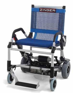 The first thing you’ll notice about the Zinger is its unique look. It doesn’t look like a scooter. Its sleek, lightweight yet durable frame is made with aircraft grade aluminum so it weighs only 47.2 lbs. It features one-touch folding and unfolding – when folded it can be wheeled around like a suitcase and fits easily into a backseat or trunk. Then, there are the steering levers. They enable the Zinger to move forward, backward, turn on a dime and even pull right up to a table or desk. With its compact yet powerful motor it can go up to 6 miles an hour and its rechargeable battery can go up to 8 miles on a single charge. With its low center of gravity and inflatable tires it can handle rugged terrain and is virtually tip-proof. Think about it, you can take your Zinger almost anywhere, so you don’t have to let mobility issues rule your life.