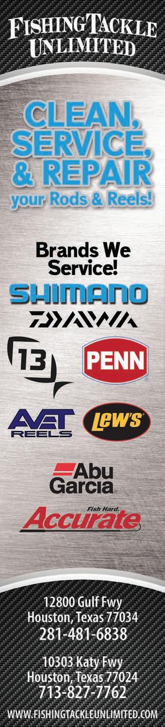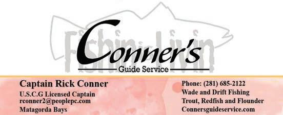 Texas Saltwater Fishing Magazine (ISSN 1935-9586) is published monthly by Texas Saltwater Fishing Magazine, Inc., 58 Fisherman’s Lane, Seadrift, Texas 77983 l P. O. Box 429, Seadrift, TX 77983 © Copyright 1990 All rights reserved. Positively nothing in this publication may be reprinted or reproduced. *Views expressed by Texas Saltwater Fishing Magazine contributors do not necessarily express the views of Texas Saltwater Fishing Magazine.