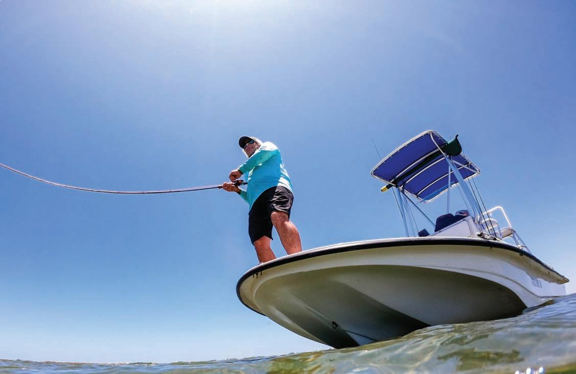 important to find areas with obviously active bait, meaning bait that’s showing fear from predators in the area. This usually means mullet that are moving fast and jumping a lot.”