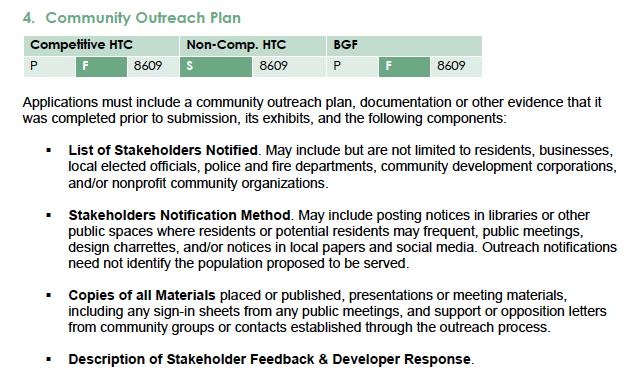 Similar to California’s QAP, MSHDA lists general threshold requirements including project narrative, site control, zoning, utilities, market study, environmental Opportunities for public engagement would be possible under zoning and market study requirements: