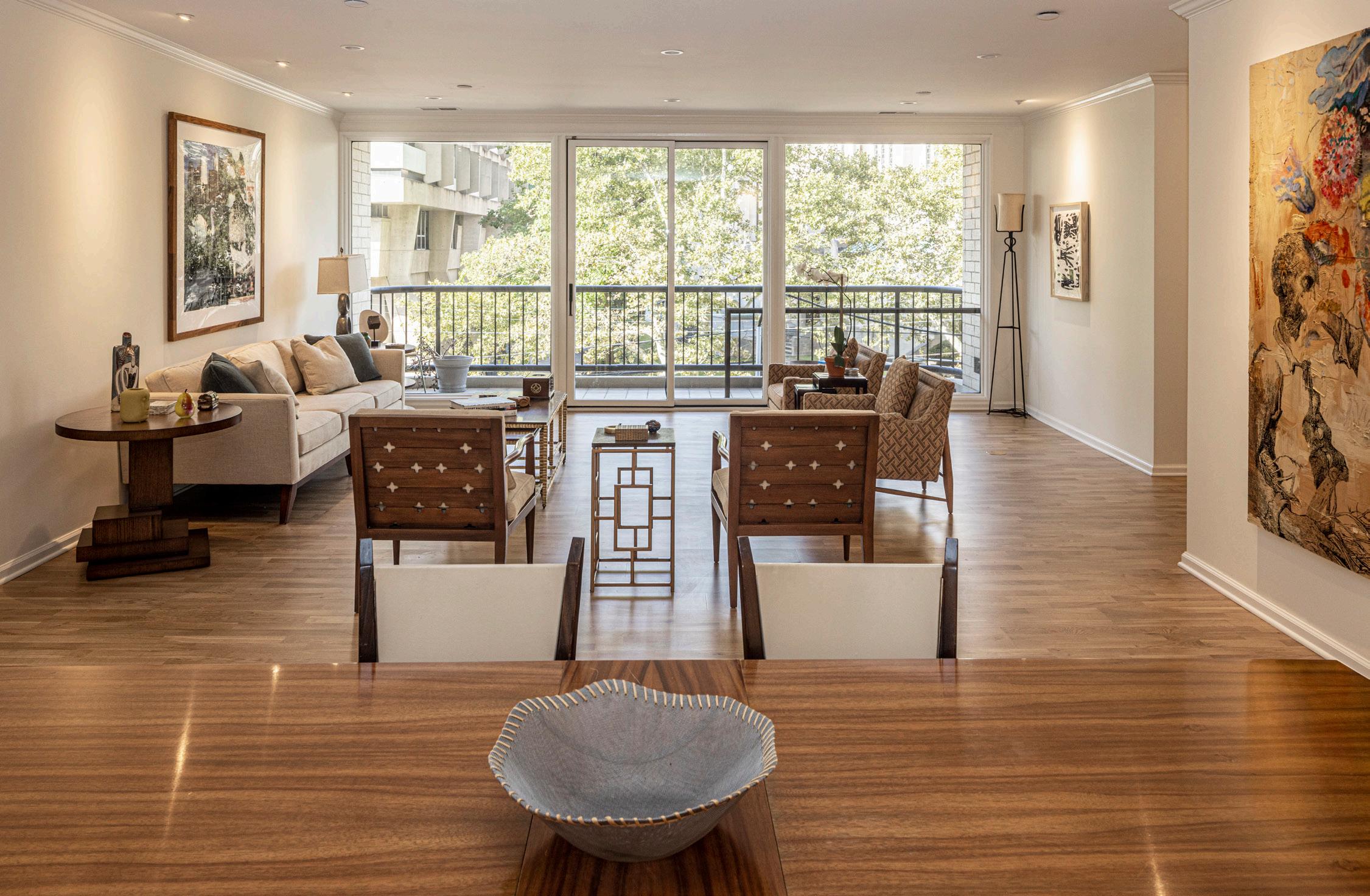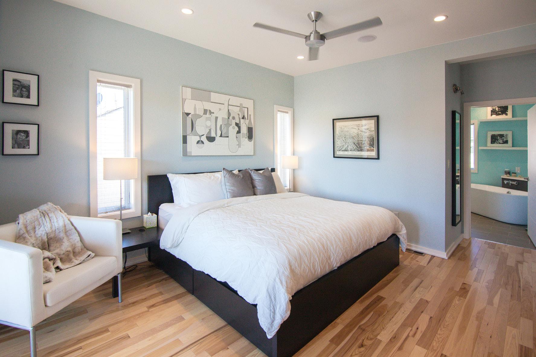 This condo was designed to be sleek and modern, with clean lines and cool tones. The home overall focuses on accenting the windows which bring in natural light into this amazing space.
