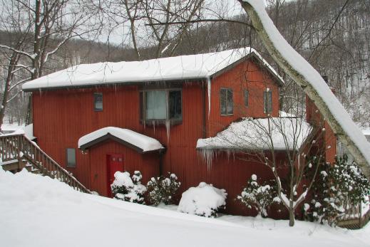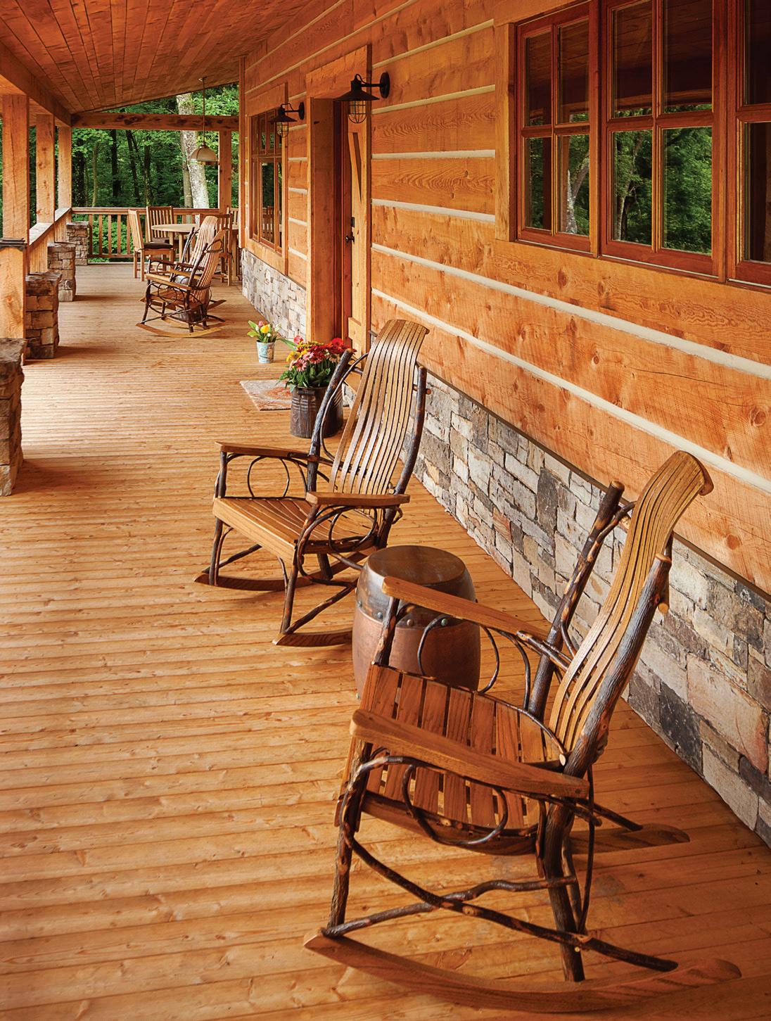 Cathedral ceilings with exposed beams, slate and hardwood floors and comfortable furniture compliment the rustic feel throughout the structure.