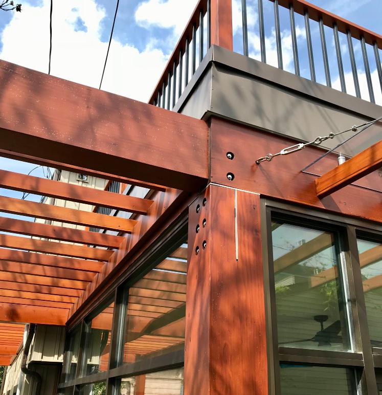 It was a top priority to ensure that the newly added 460 square-foot allseason room would blend into the interior of the home to provide a modern feel, and give the impression that the addition was always a part of the contextual part of the property. To accomplish this we used new finishes that matched existing ones or complemented them well.