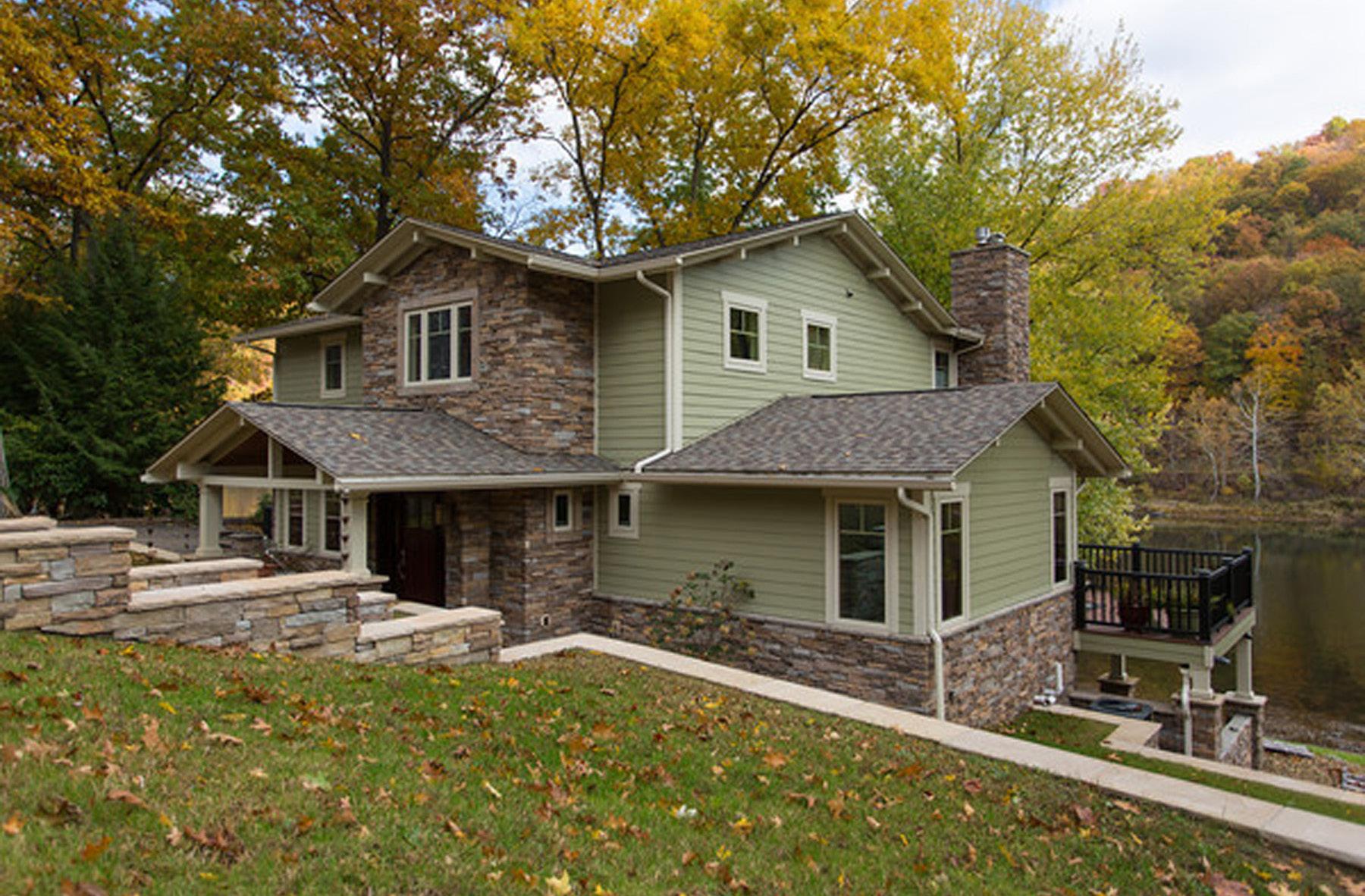 This three-story renovation transformed a barn styled home into a craftsman styled home. The property sits on a river bank, giving the home many amazing views throughout the year.