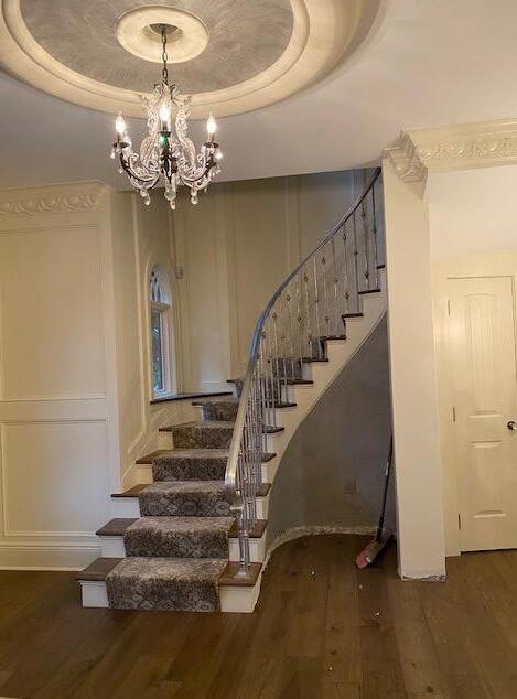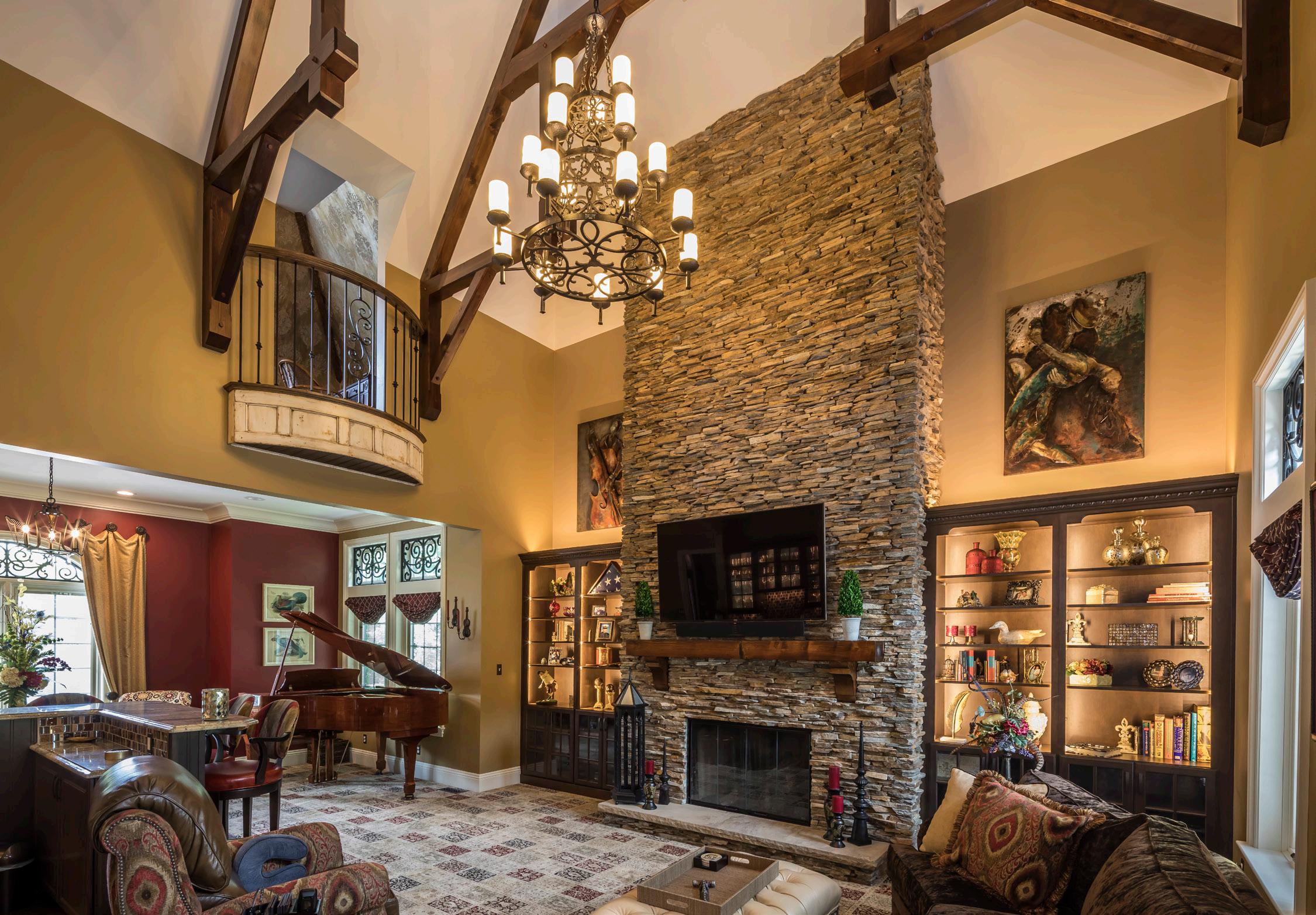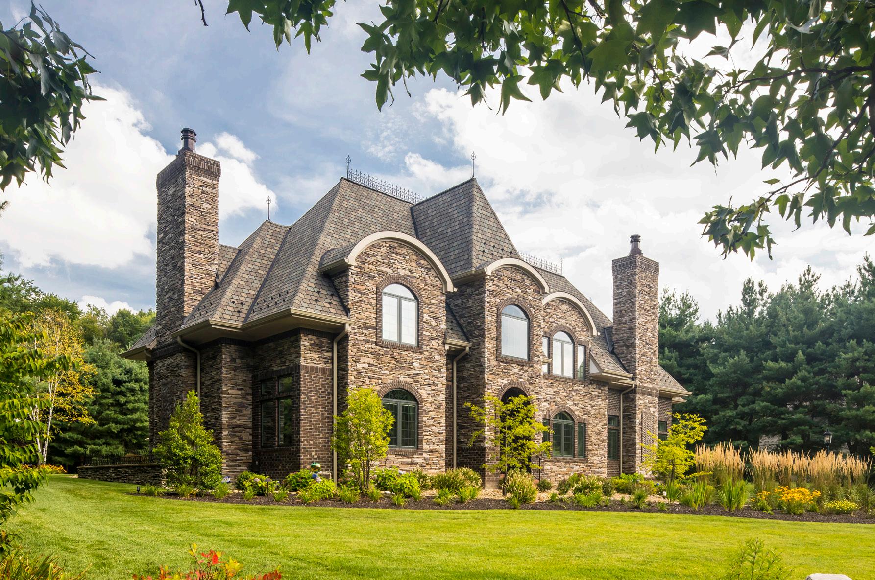 The owners wished to build a custom home that would fit their busy schedule, lifestyle and personality. Located in Butler PA, the three level residence sits on a 2 acre lot, with primary living and dining spaces at ground level. The house features living room, wet bar, great room, dining room, an eat-in kitchen that features high-end appliances, custom cabinetry, and crystal chandeliers, an ample primary suite, back covered porch with lots of space for entertaining including an outdoor kitchen with built-in grill and a 6-car garage. Home office and guest bedrooms and ample storage rooms are located on the home’s second level. A home gym and game & crafting room are located on the basement level. The warm and cozy style of this home displays a large palette of natural materials, including home wide planks hardwood, quartz, marble, silk wallpaper, and a brick-and-stone façade.