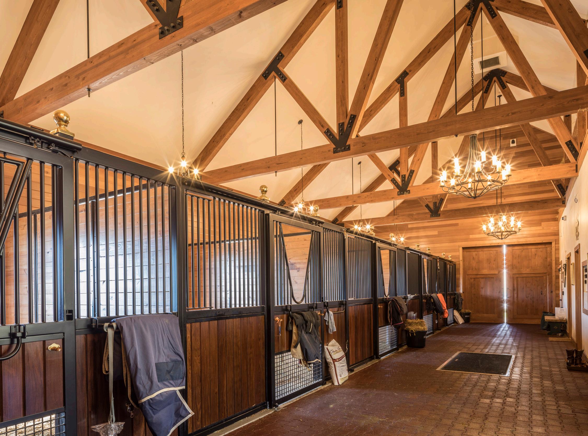 The horse barn is the second and smaller structure on the same lot as the carriage house. The first floor of the barn has four stalls for the horses, a washing area, full laundry facilities, and a tack room where they store all their riding equipment.