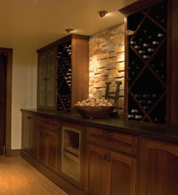 Low lighting is used in most of the cellars to add to the cozy atmosphere. Each fixture, however, is selected to embellish the individual design of the various cellars.