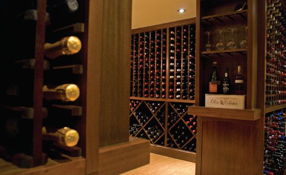 Most of the cellars feature custom shelving to hold the wine bottles, and typically include two or three different shelving styles per cellar, allowing the owners to have flexibility in the organization of the wine. Beyond shelving for the wine, all of these homes have additional shelving and drawers for other alcoholic beverages such as champagne and liquor.