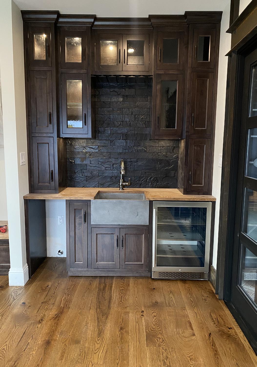Although the project is new construction, the ultimate goal is to create an old-world mountain feel to make guests feel transported to a different time. However, the house is fully equipped with the comforts of modern day technology, incorporating energy efficient design features and amenities. Our team also assisted with the design of custom furniture.