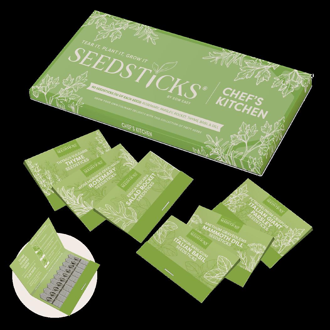 Indulge your inner chef with our Chef's Kitchen Gift Packs! This carefully curated collection of aromatic herbs is the perfect starting point for culinary adventures. Fresh from your own kitchen garden, these herbs will elevate your dishes to new heights. The pack contains 6 individual Seedsticks packs with a range of herbs.