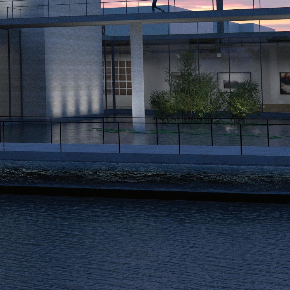 Each render in this project serves as an art piece, a visual representation of the feelings we had during the pandemic. The pavilion, and the people in it, serving as the main subjects. “Give In” tells a story of our voluntary surrender towards a diff erent way of life; a way of life that will eff ect our connections to the world and the people around us.