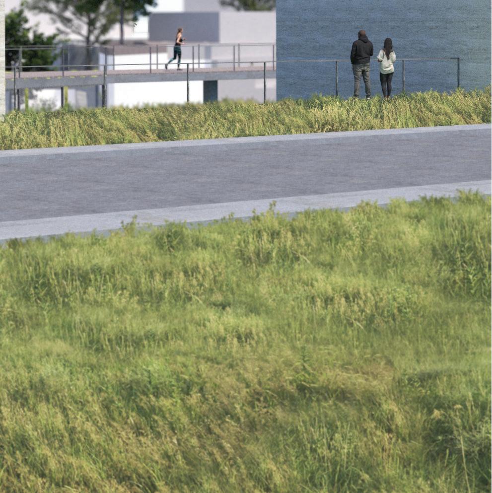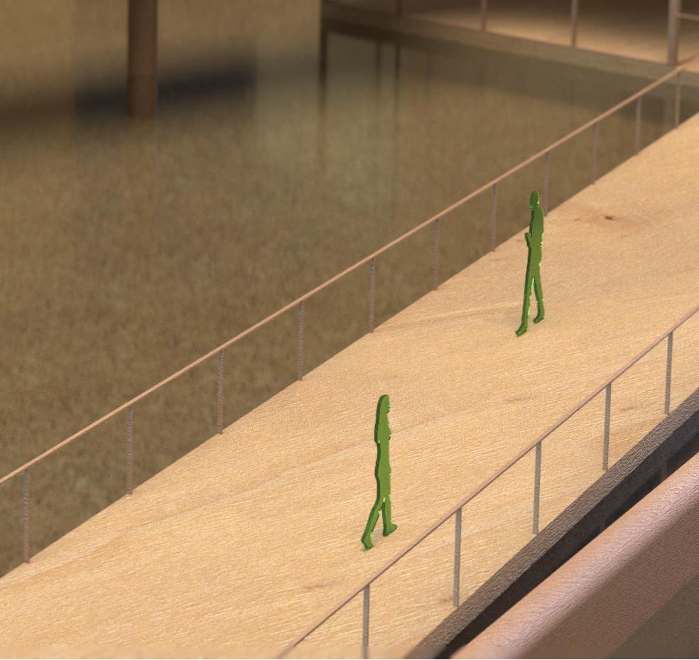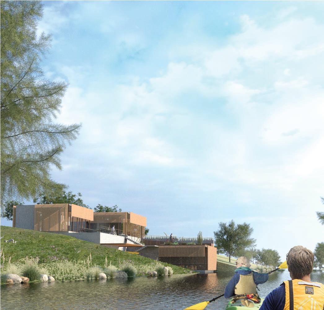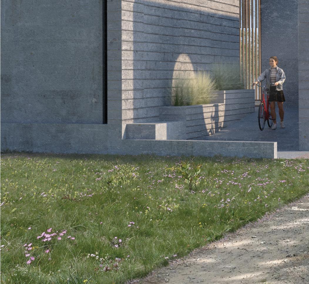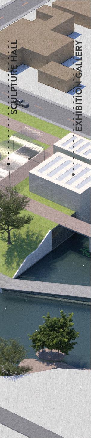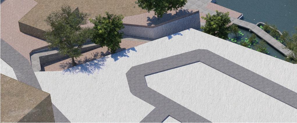 Via ramps, visitors are drawn through one space and into anoth- Via ramps, visitors are drawn one space and into another. Creating an uninterrupted flow towards function, however er. an flow towards however indirect, in order to produce unique experiences. Providing visitors a moment to contemplate nature, and the adventure ahead of them. Two monolithic walls make up the entrance, guiding guests in, while immersing them into the serene, designed landscape.