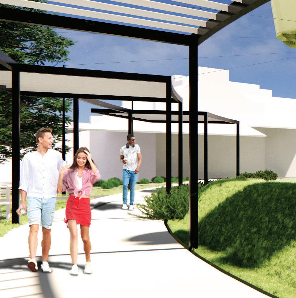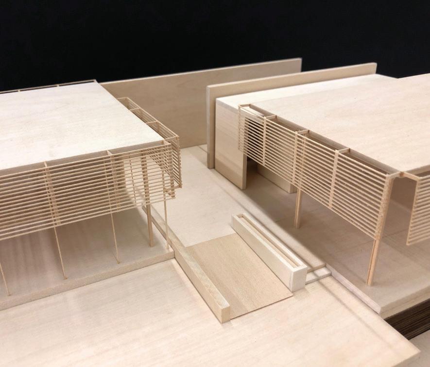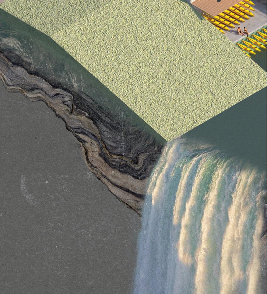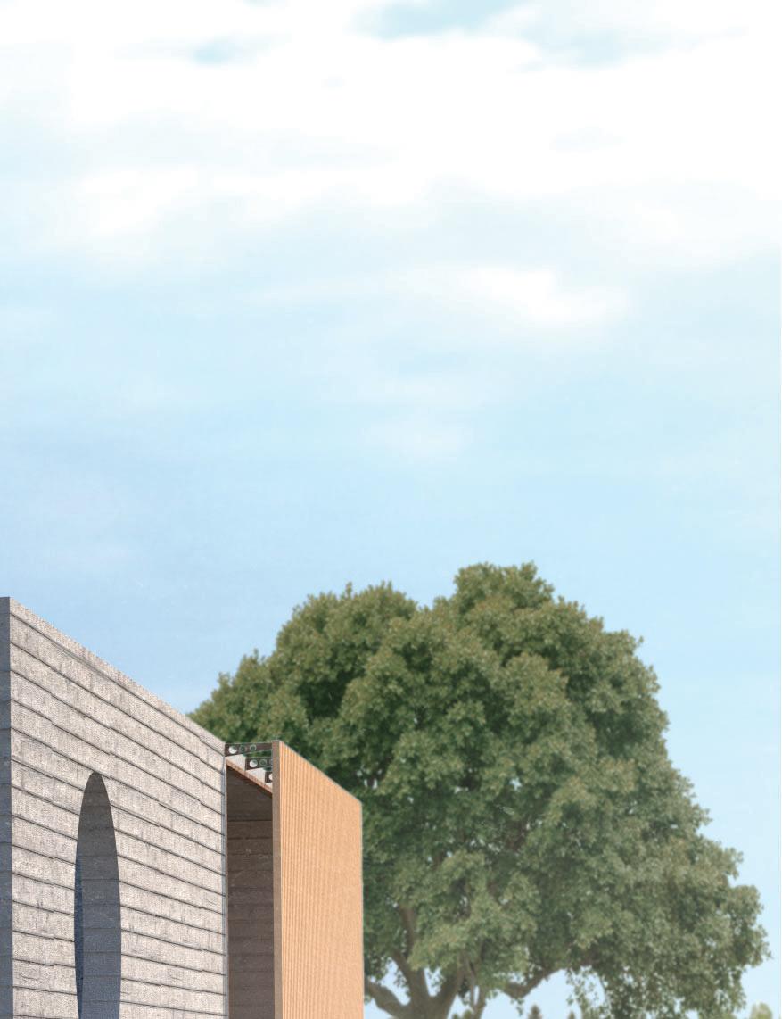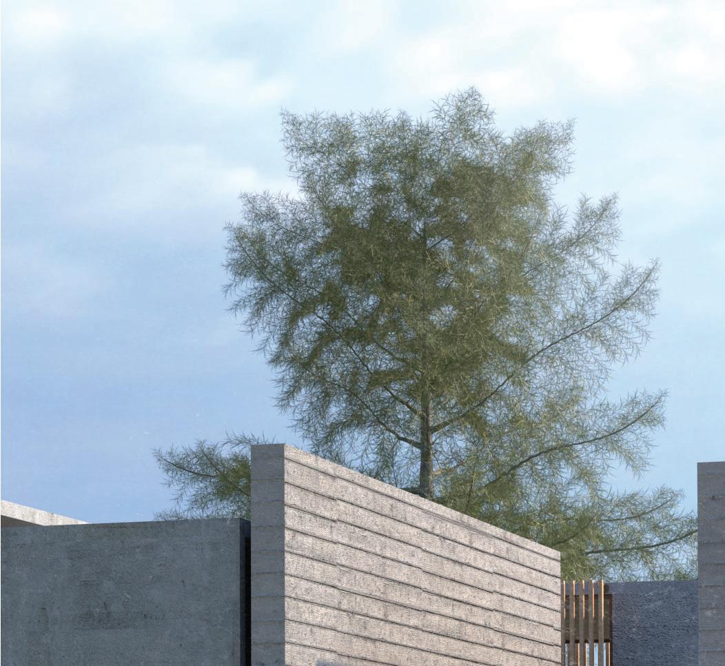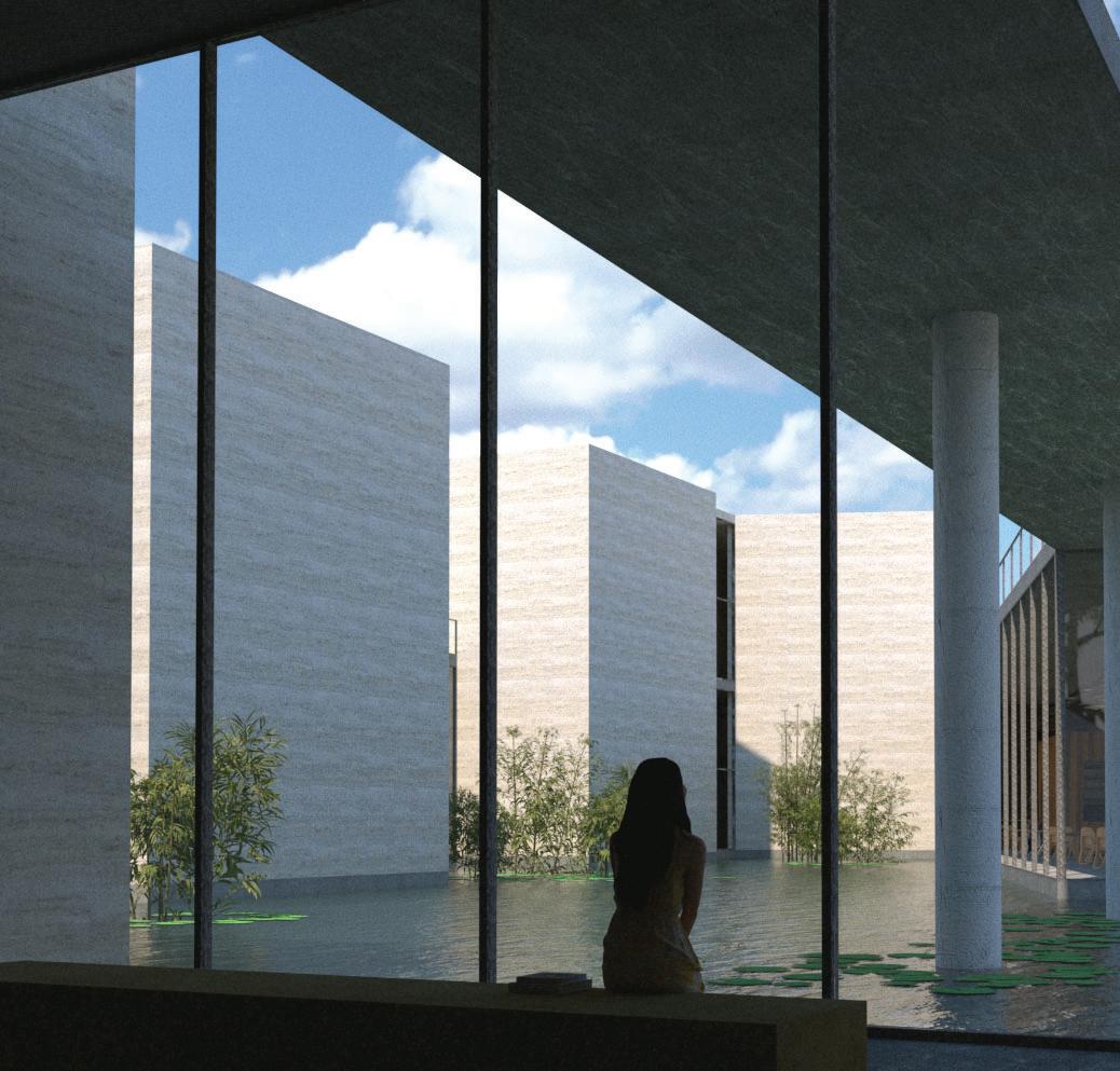 Via ramps, visitors are drawn through one space and into anoth- Via ramps, visitors are drawn one space and into another. Creating an uninterrupted flow towards function, however er. an flow towards however indirect, in order to produce unique experiences. Providing visitors a moment to contemplate nature, and the adventure ahead of them. Two monolithic walls make up the entrance, guiding guests in, while immersing them into the serene, designed landscape.
