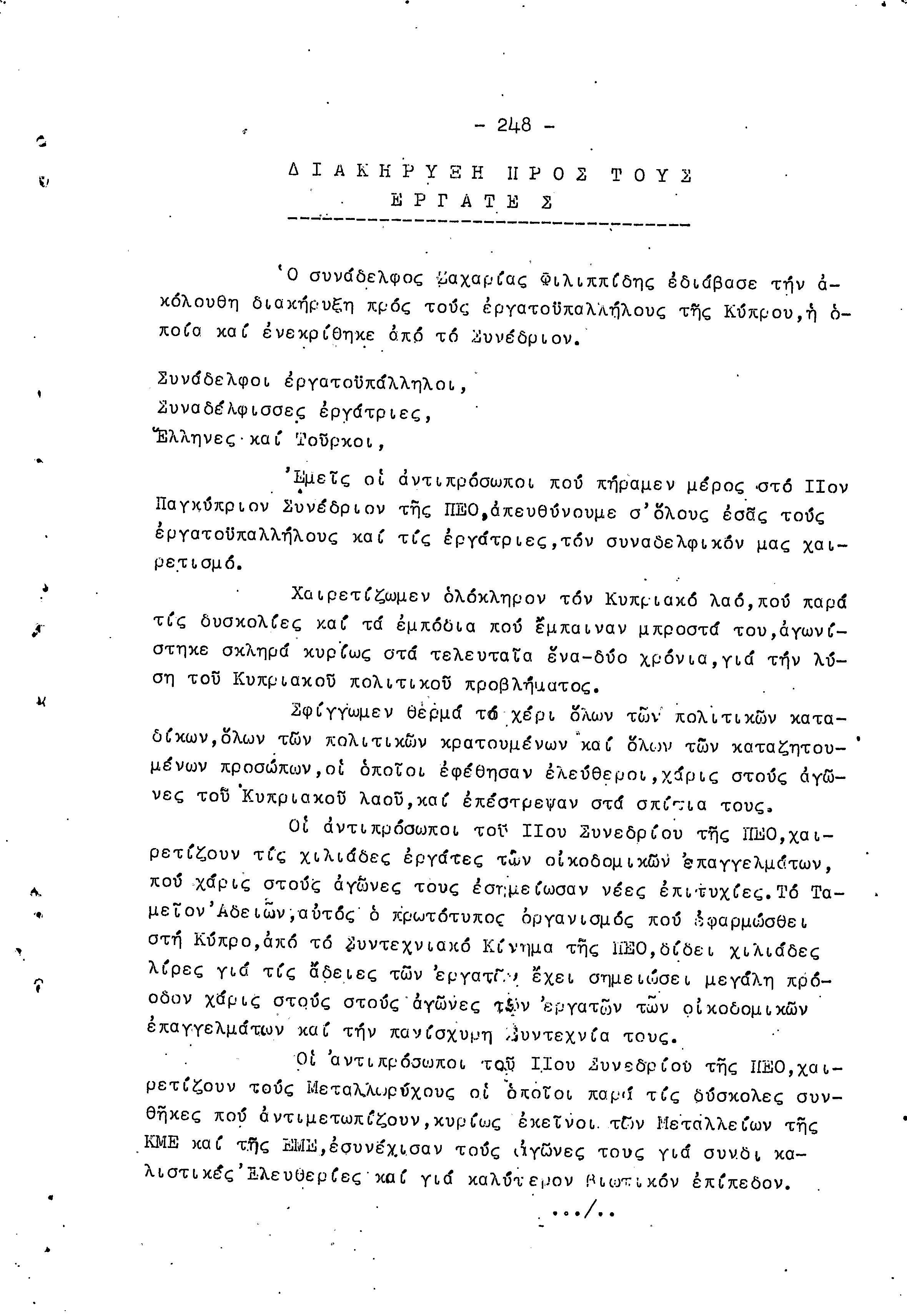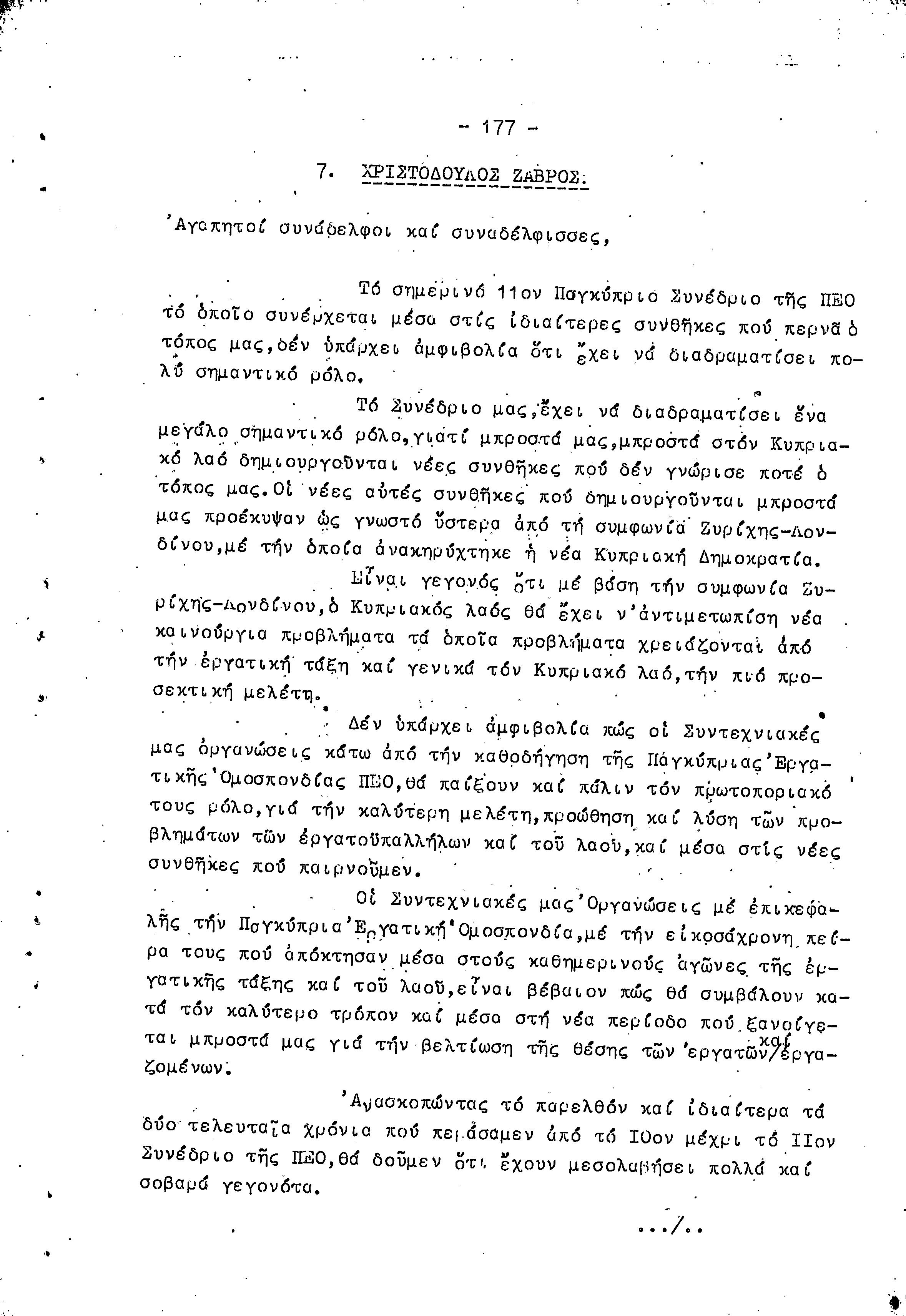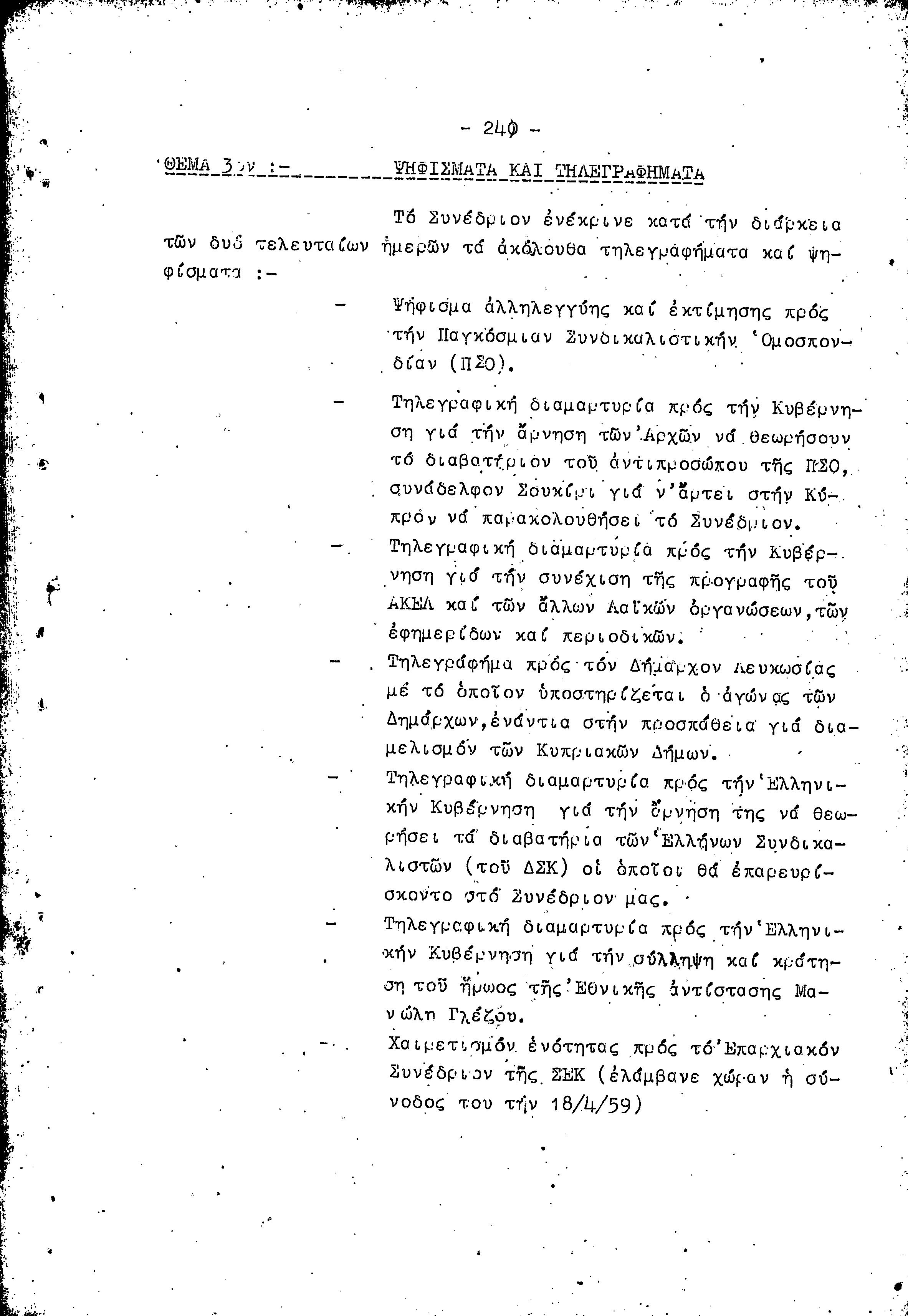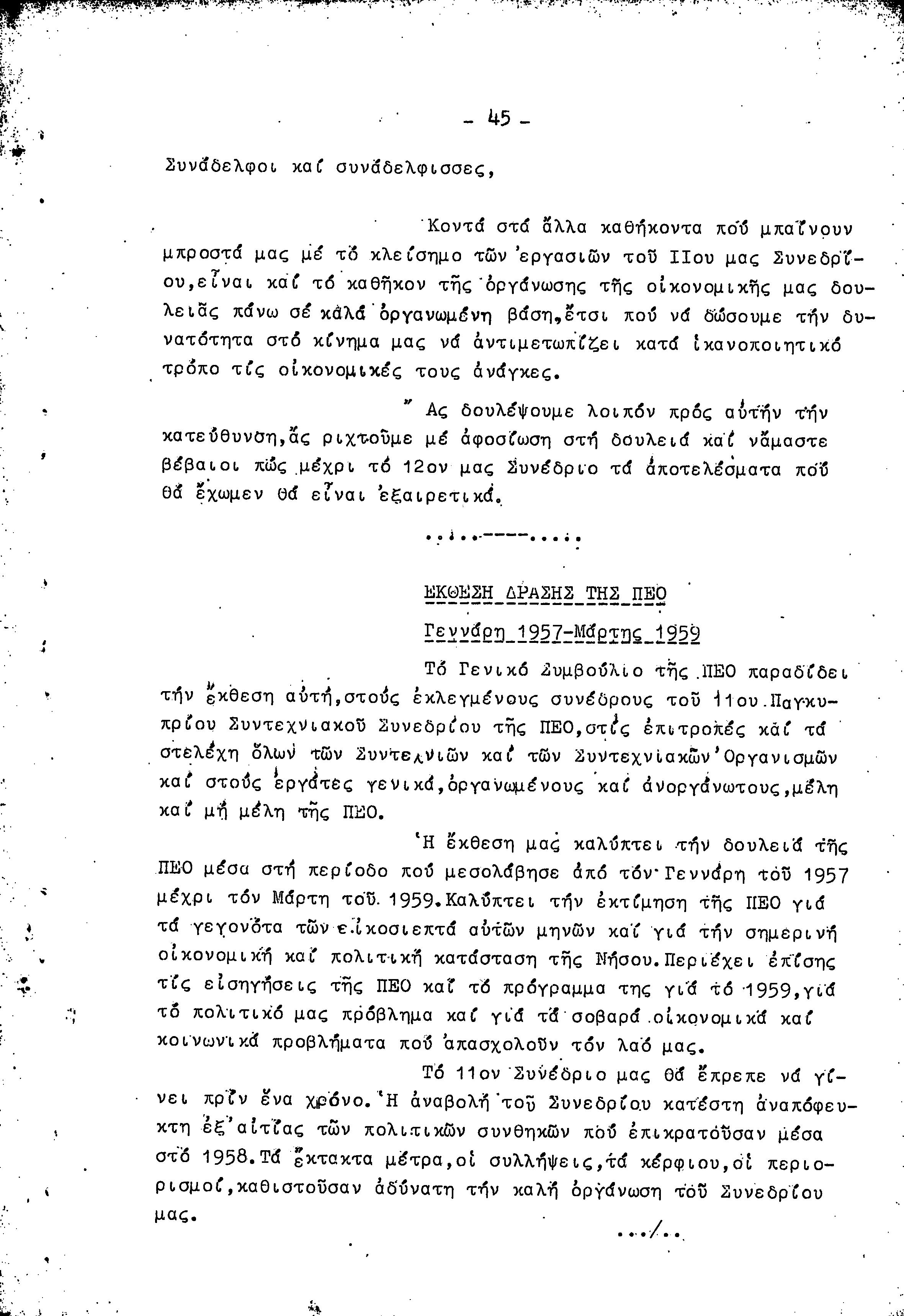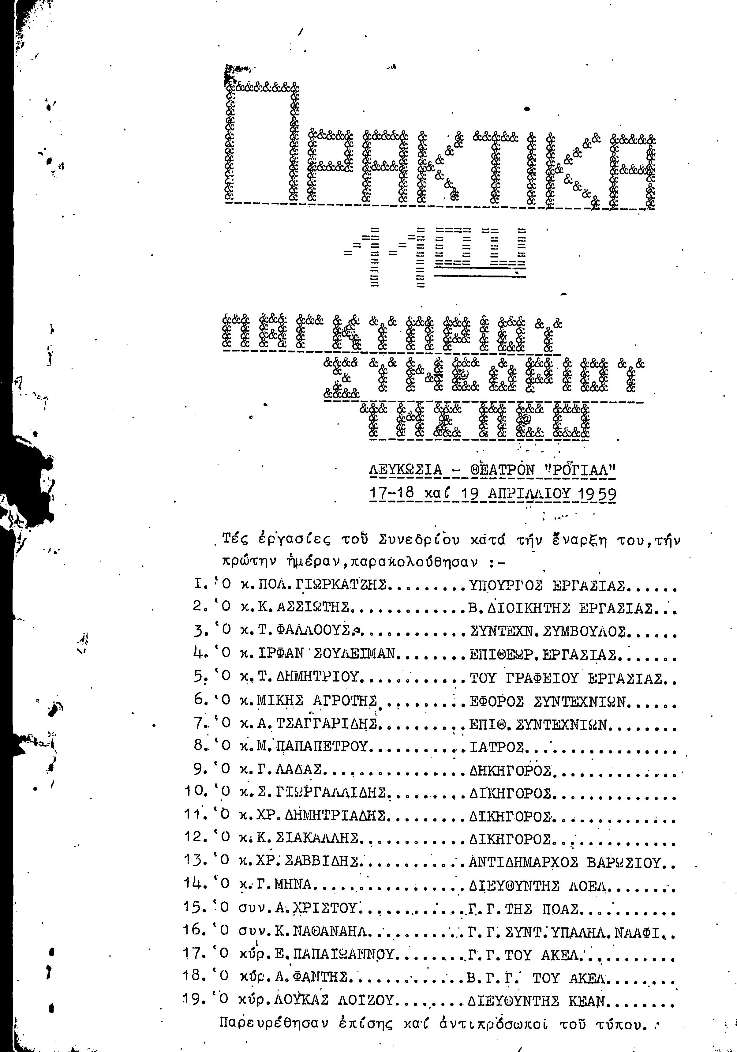 11ο ΠΑΓΚΥΠΡΙΟ ΣΥΝΕΔΡΙΟ ΠΕΟ, 17-19 1959 ( ΠΡΑΚΤΙΚΑ)