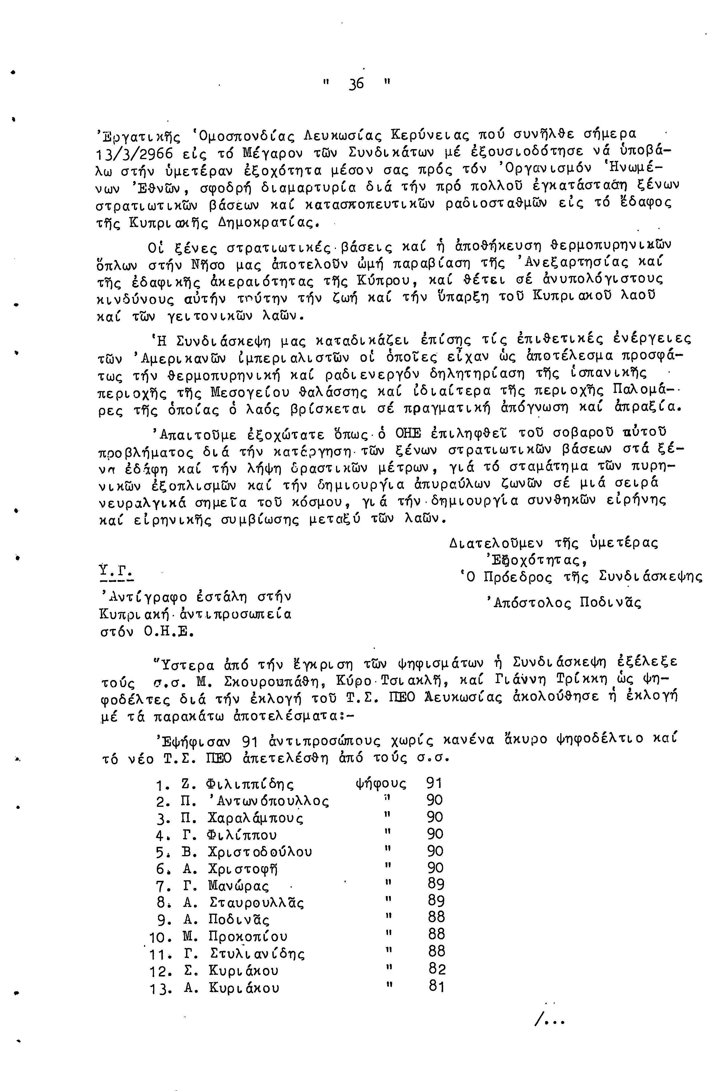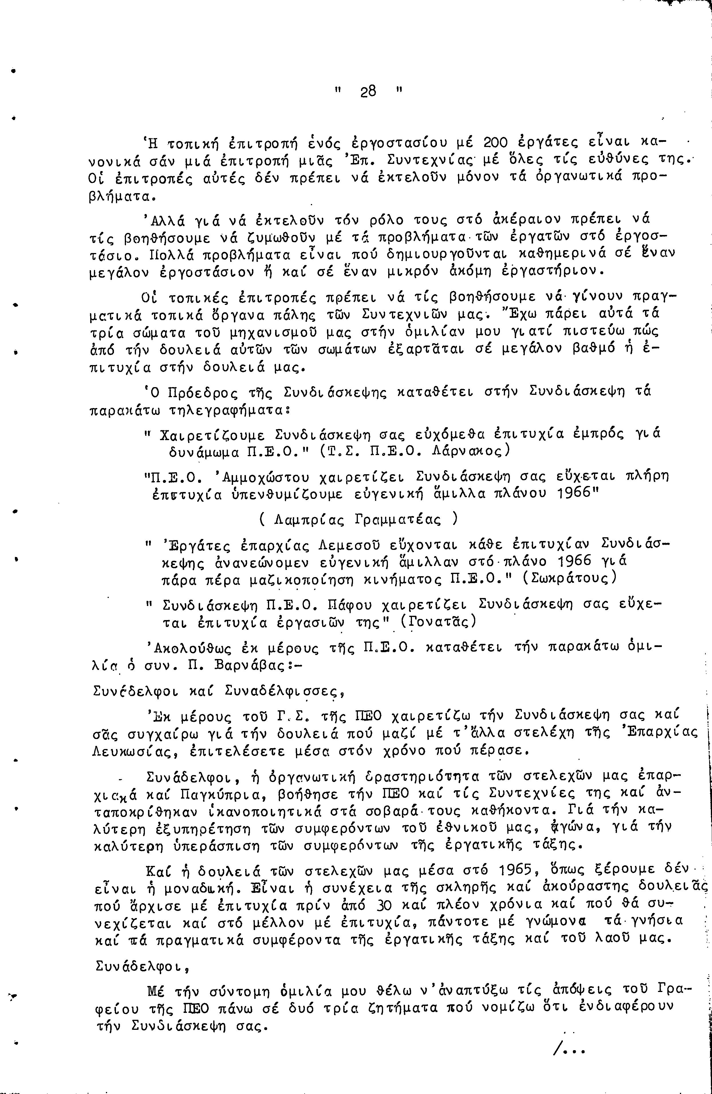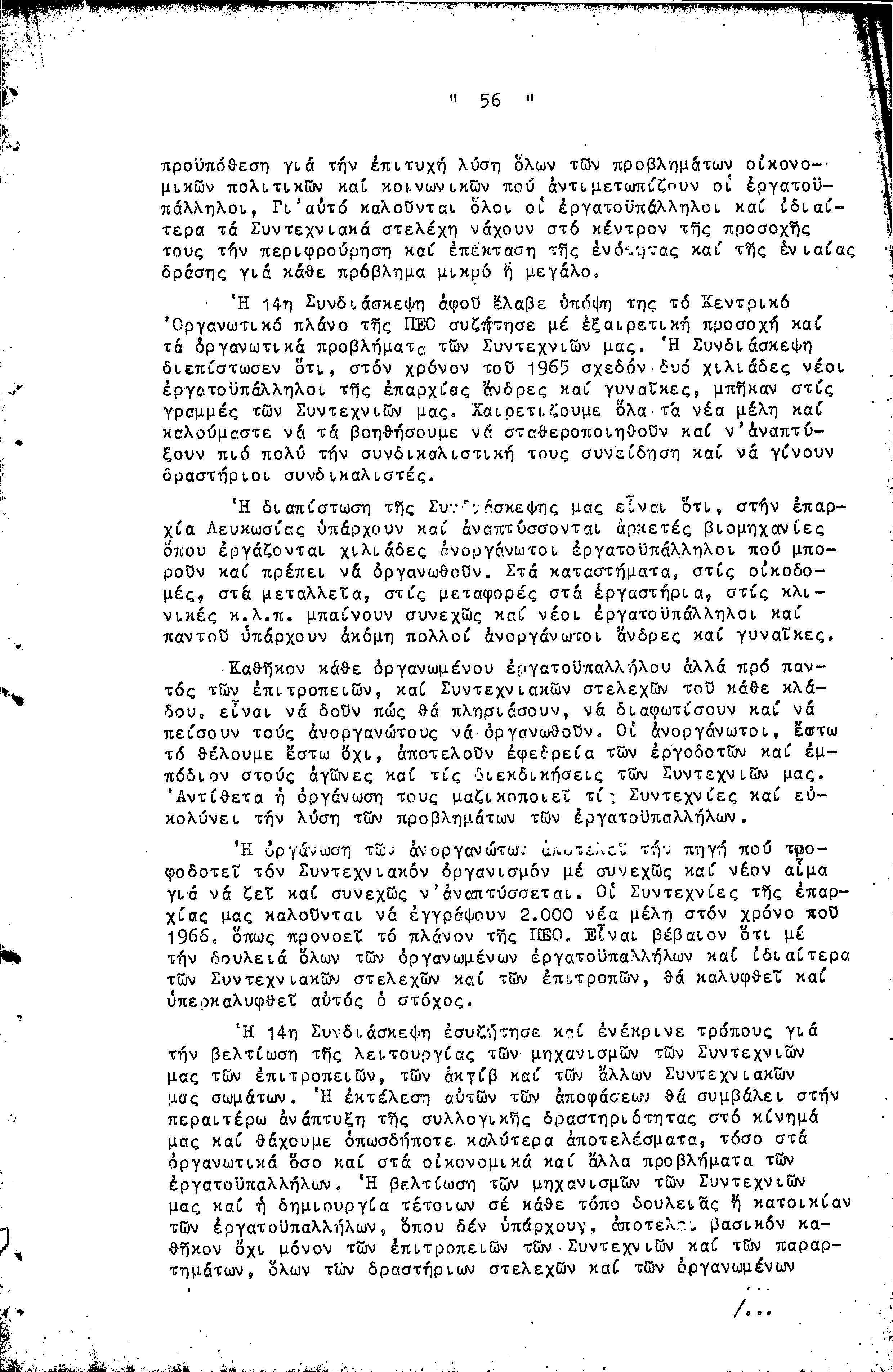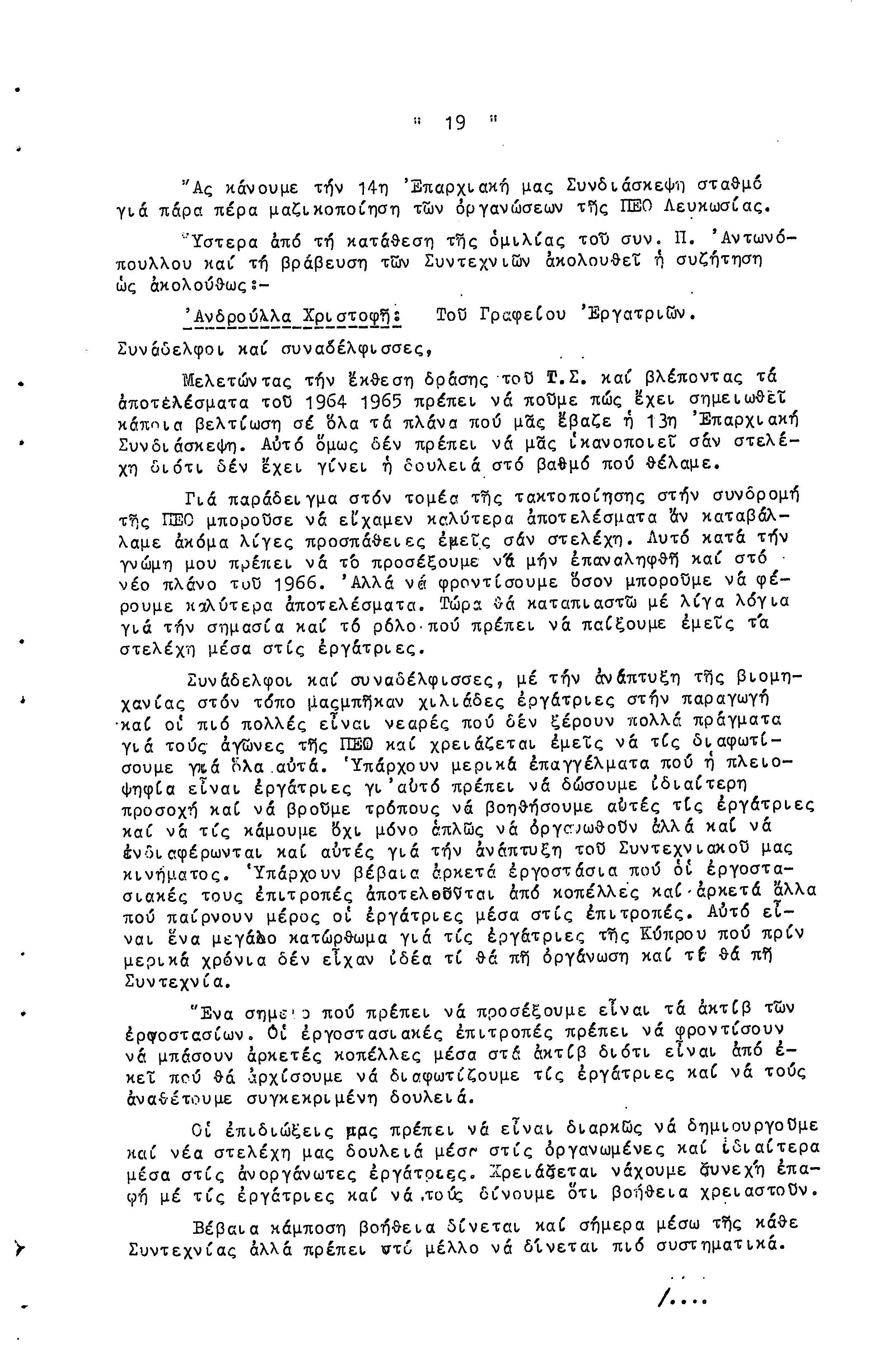 14η ΕΠΑΡΧΙΑΚΗ ΣΥΝΔΙΑΣΚΕΨΗ Τ.Σ. ΠΕΟ ΛΕΥΚΩΣΙΑΣ-ΚΕΡΥΝΕΙΑΣ, 13.03.1966 ( ΠΡΑΚΤΙΚΑ)