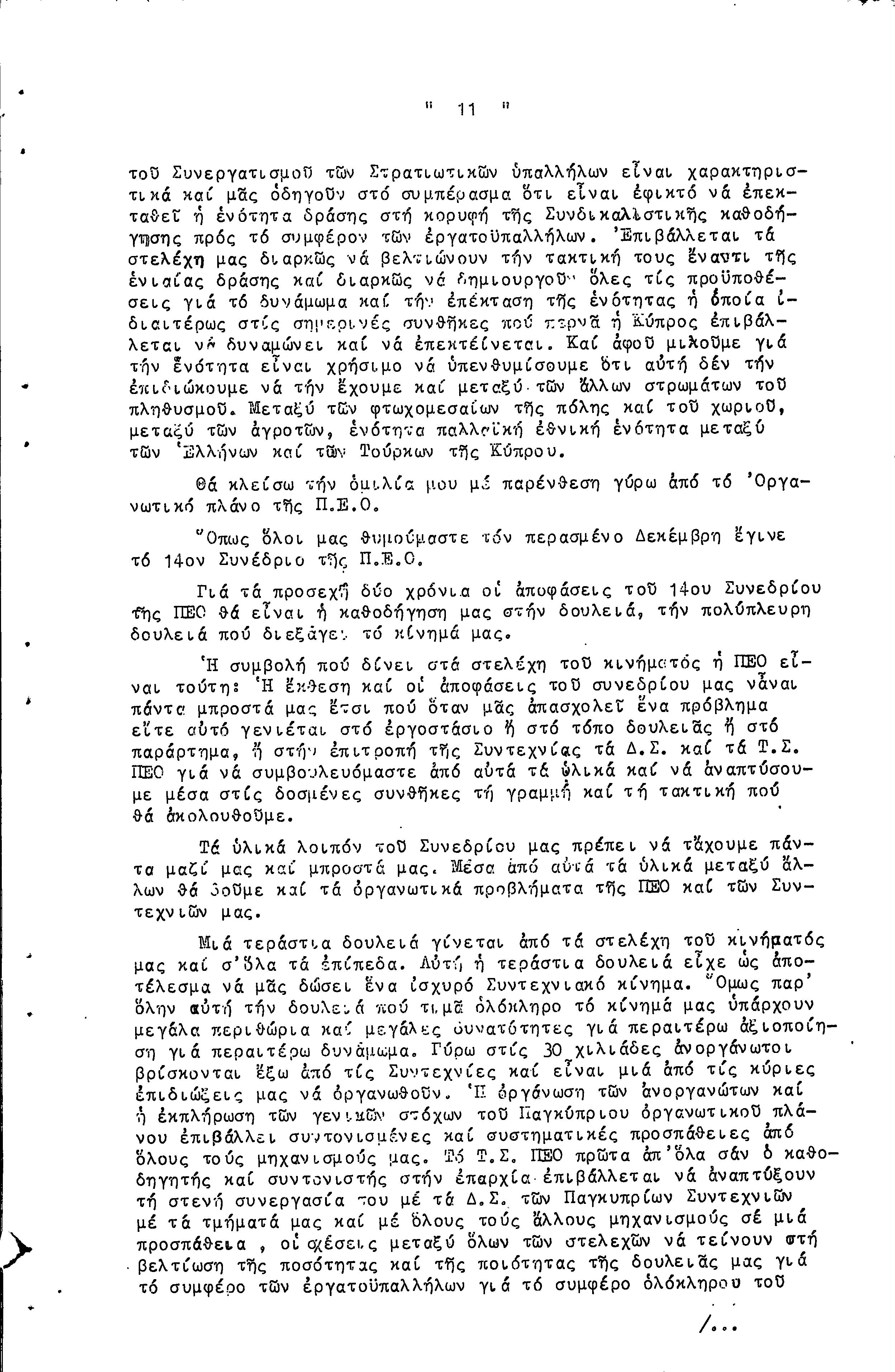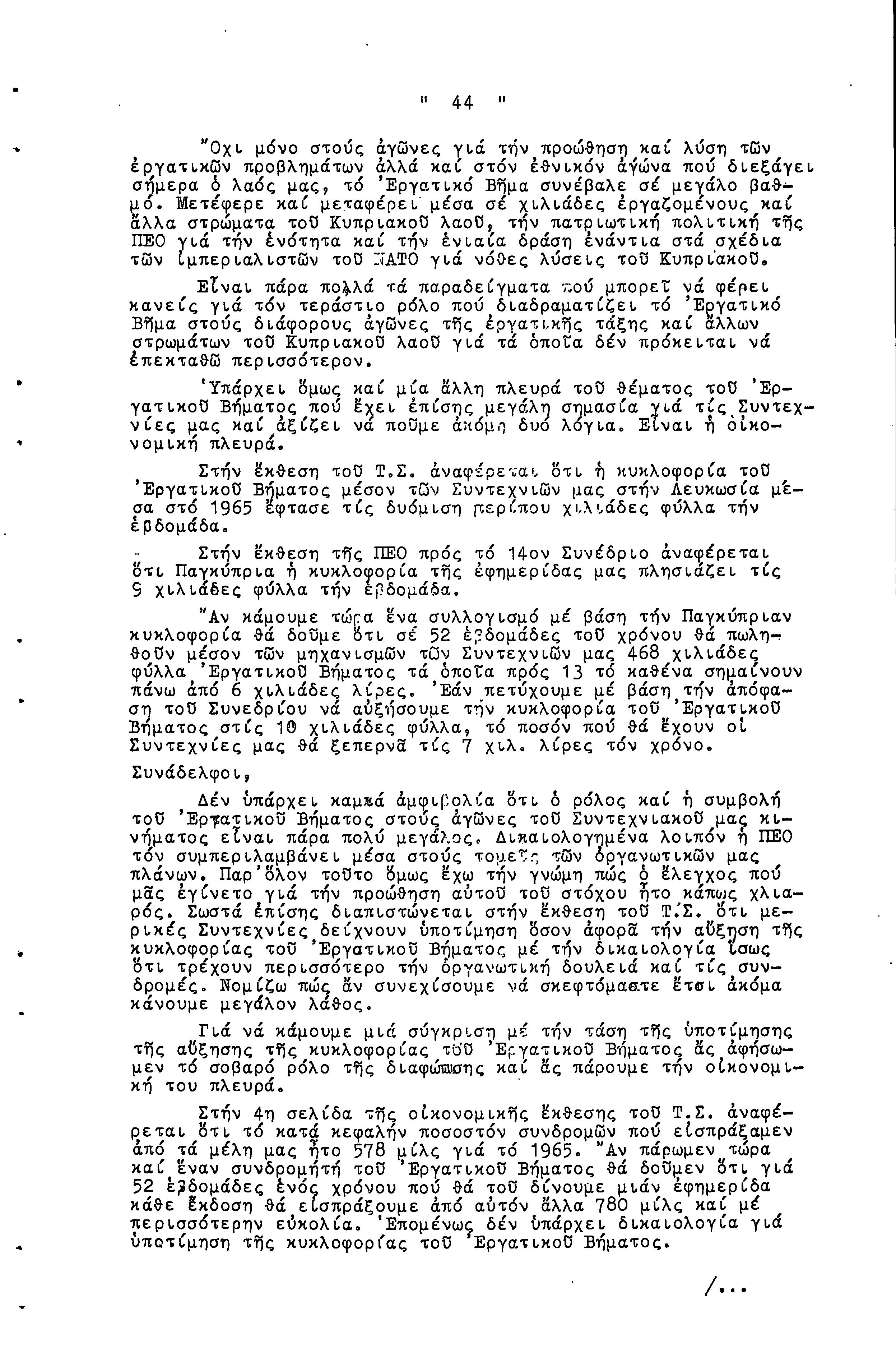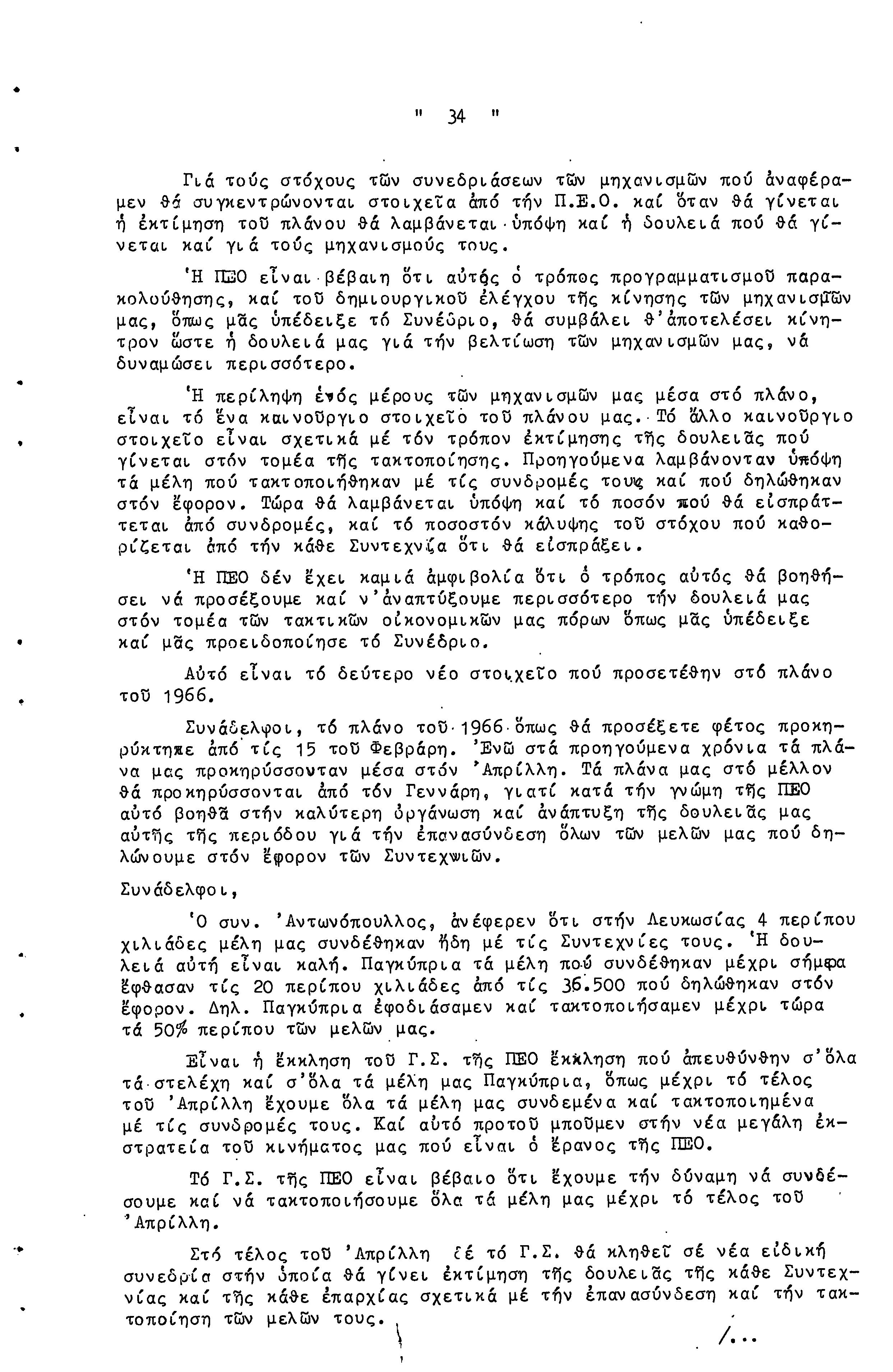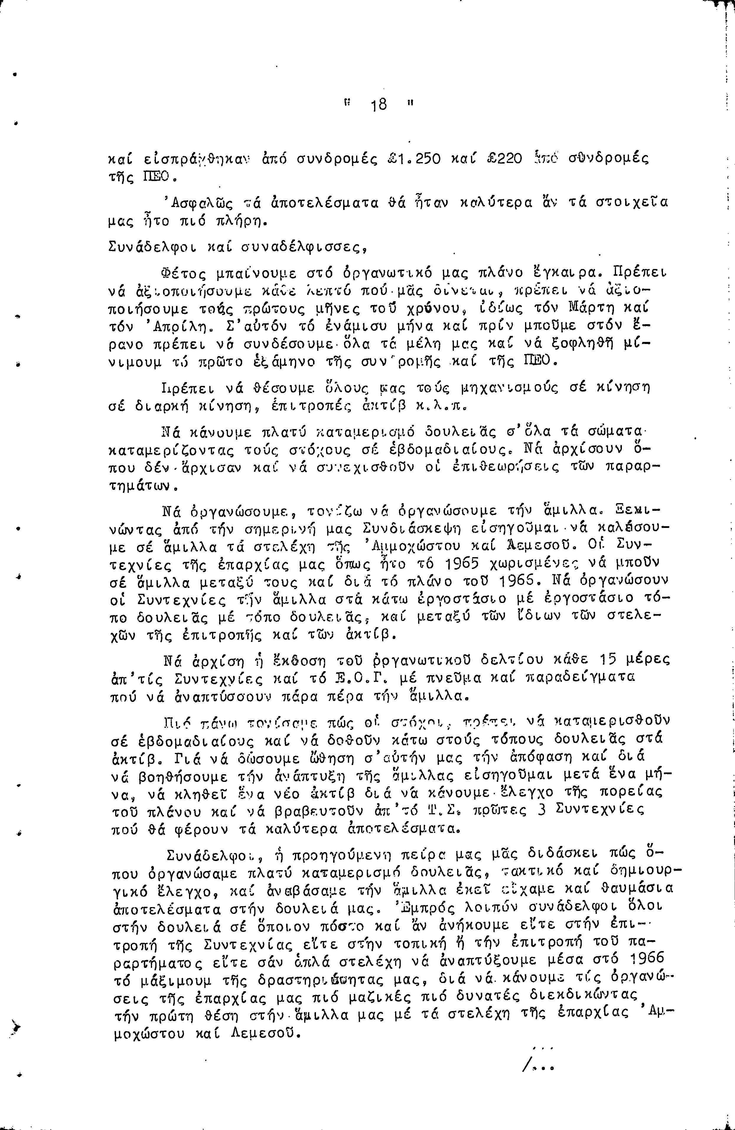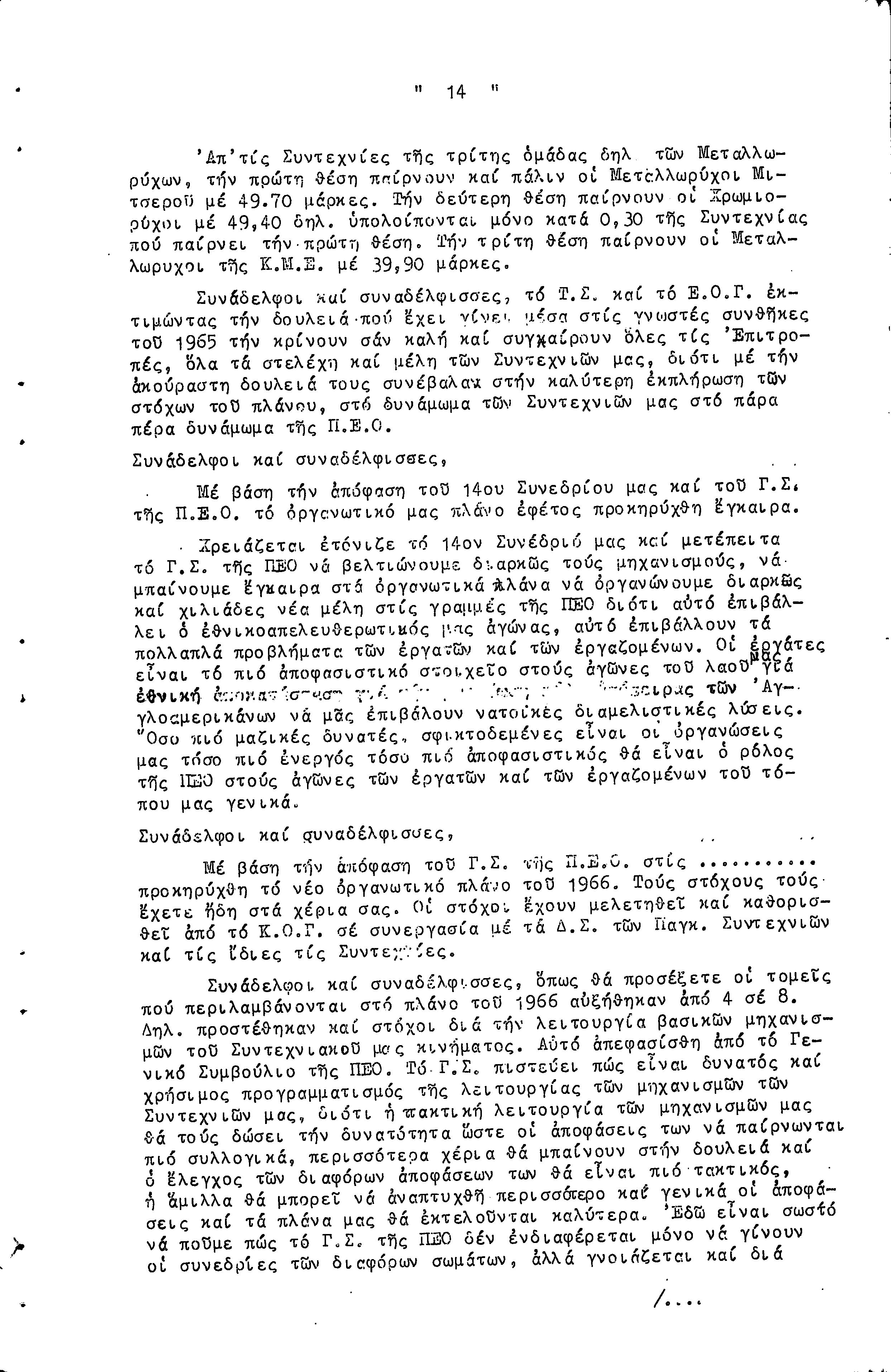 14η ΕΠΑΡΧΙΑΚΗ ΣΥΝΔΙΑΣΚΕΨΗ Τ.Σ. ΠΕΟ ΛΕΥΚΩΣΙΑΣ-ΚΕΡΥΝΕΙΑΣ, 13.03.1966 ( ΠΡΑΚΤΙΚΑ)