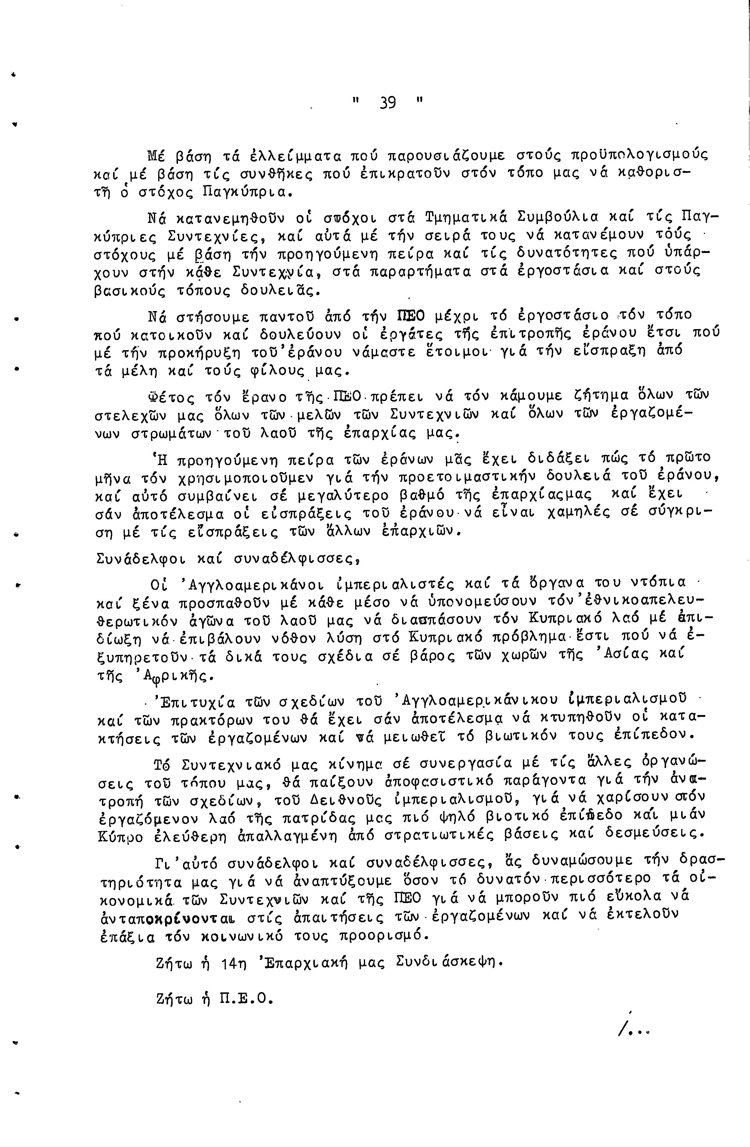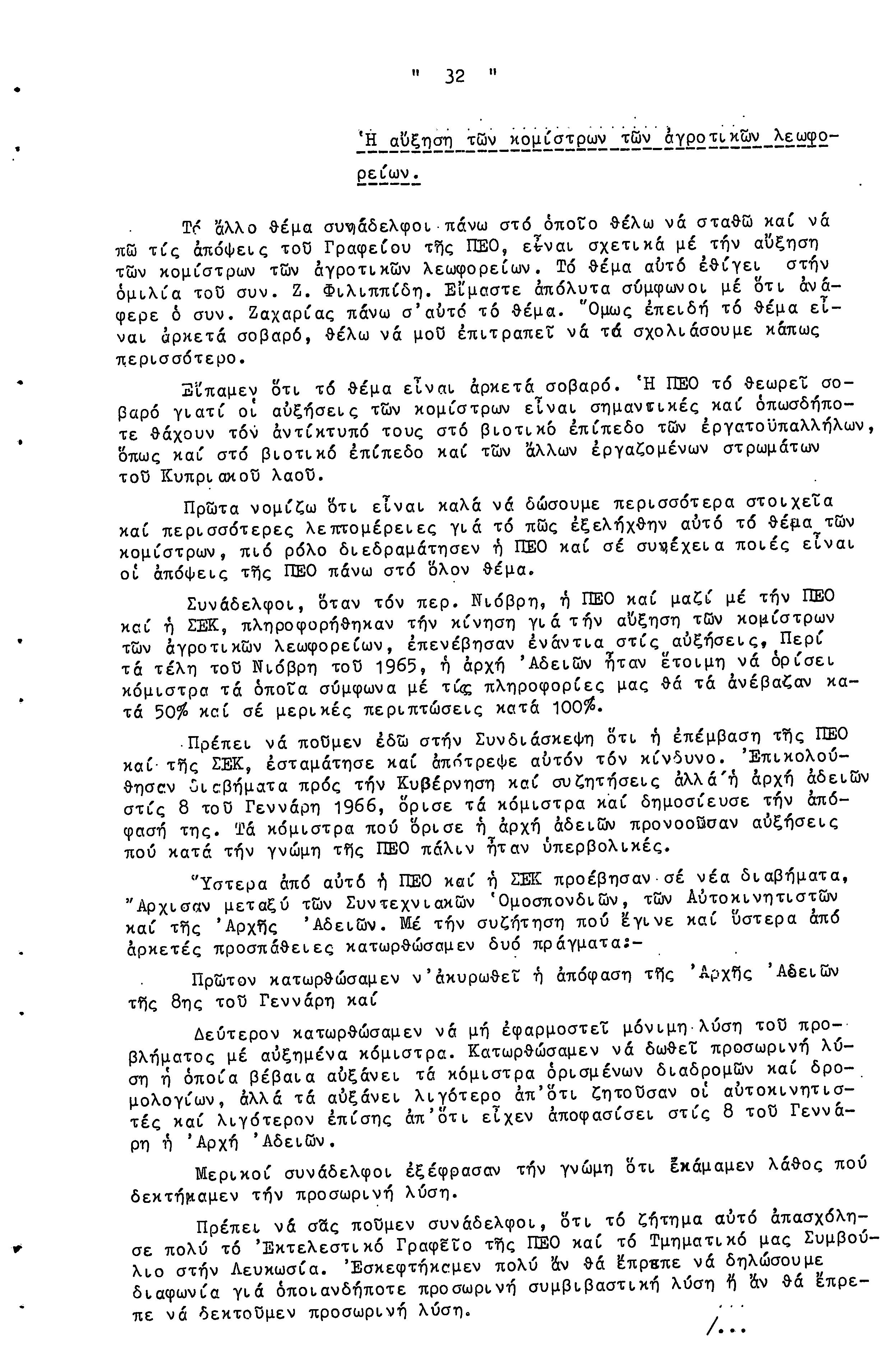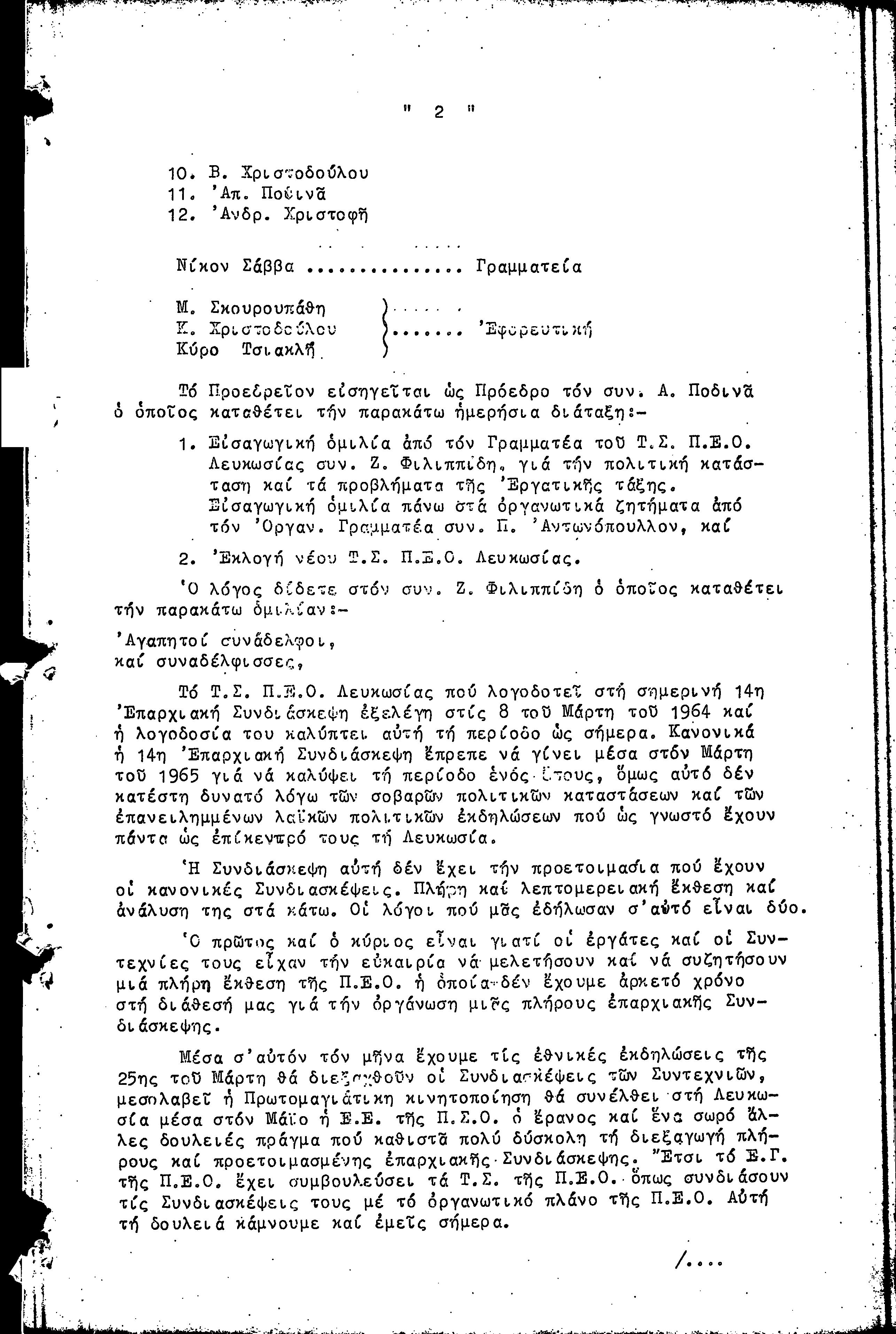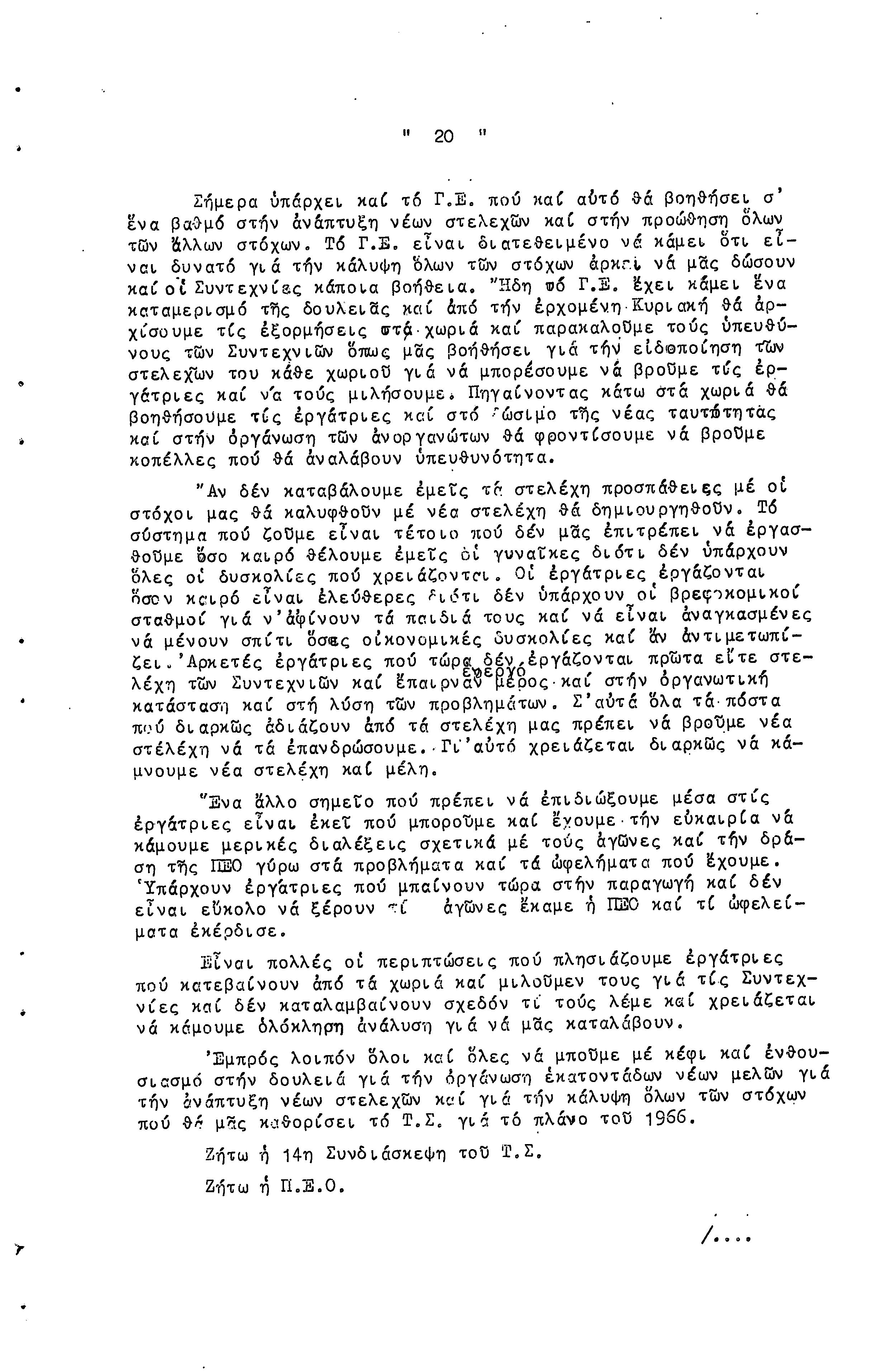 14η ΕΠΑΡΧΙΑΚΗ ΣΥΝΔΙΑΣΚΕΨΗ Τ.Σ. ΠΕΟ ΛΕΥΚΩΣΙΑΣ-ΚΕΡΥΝΕΙΑΣ, 13.03.1966 ( ΠΡΑΚΤΙΚΑ)