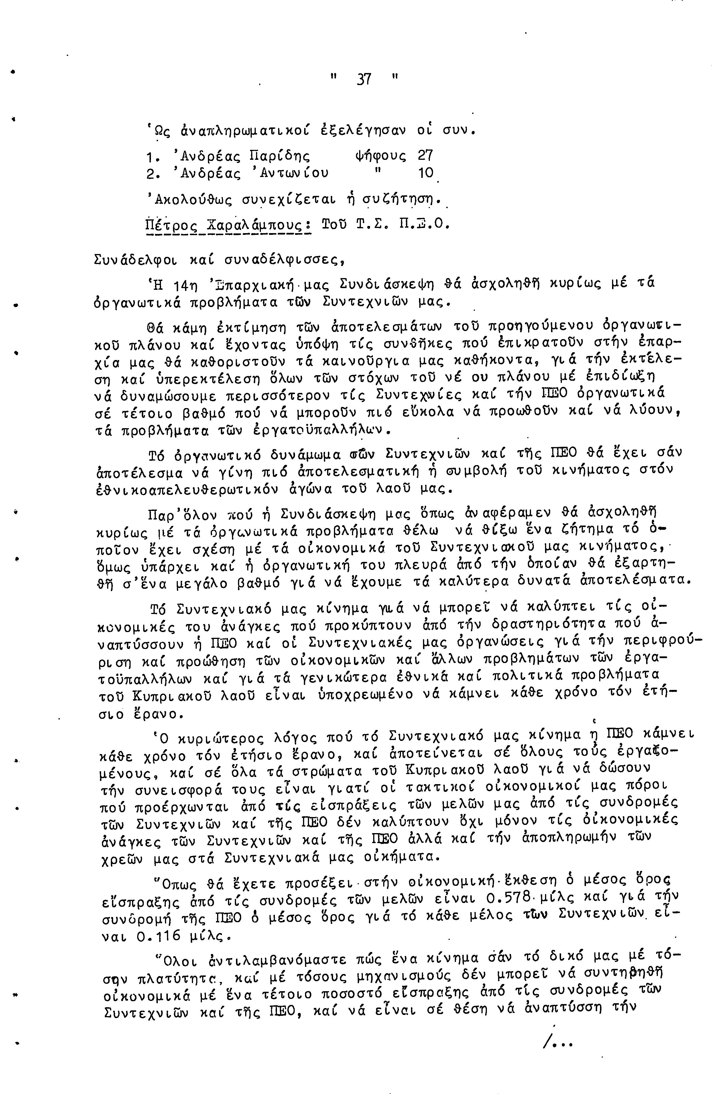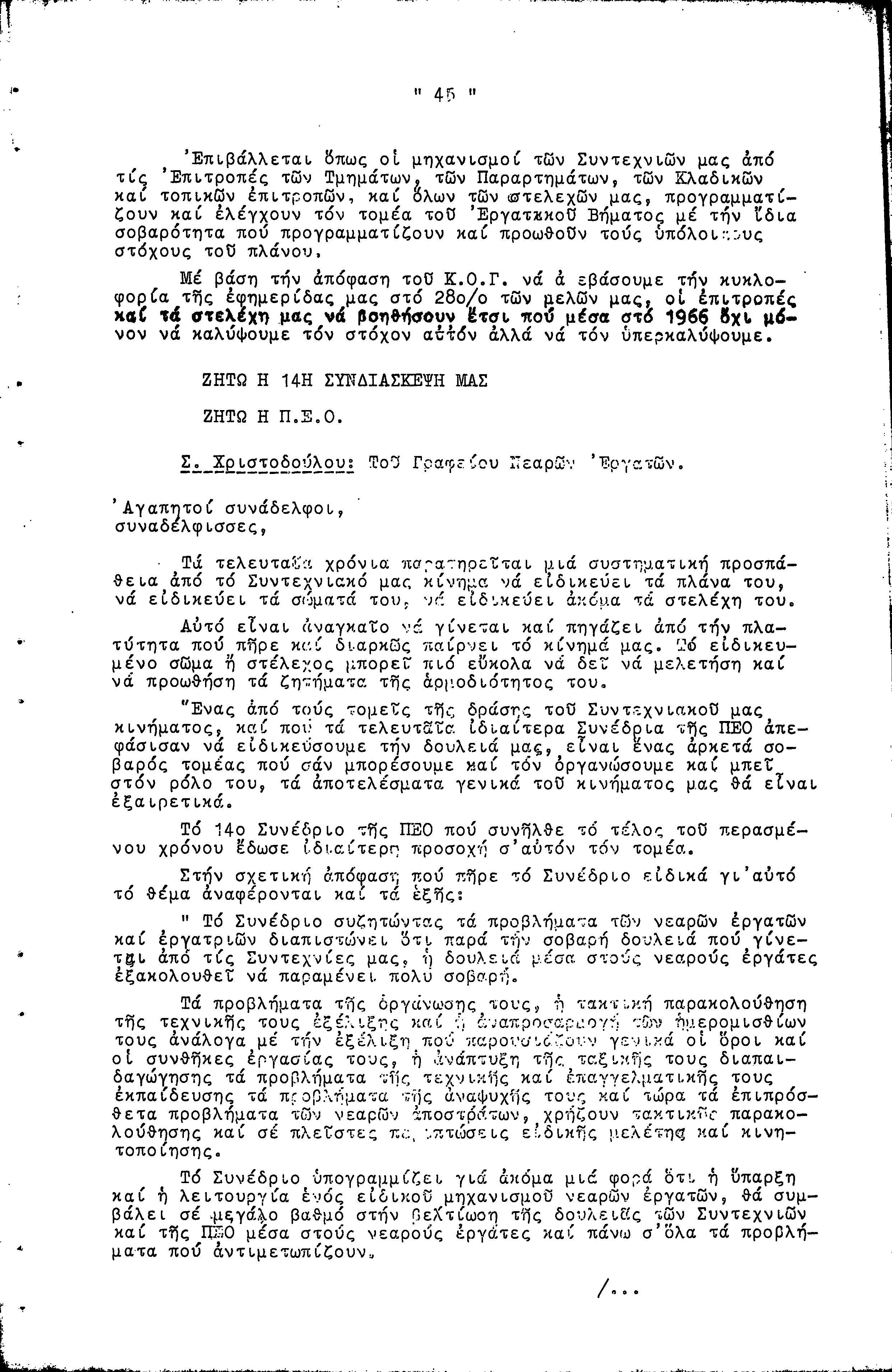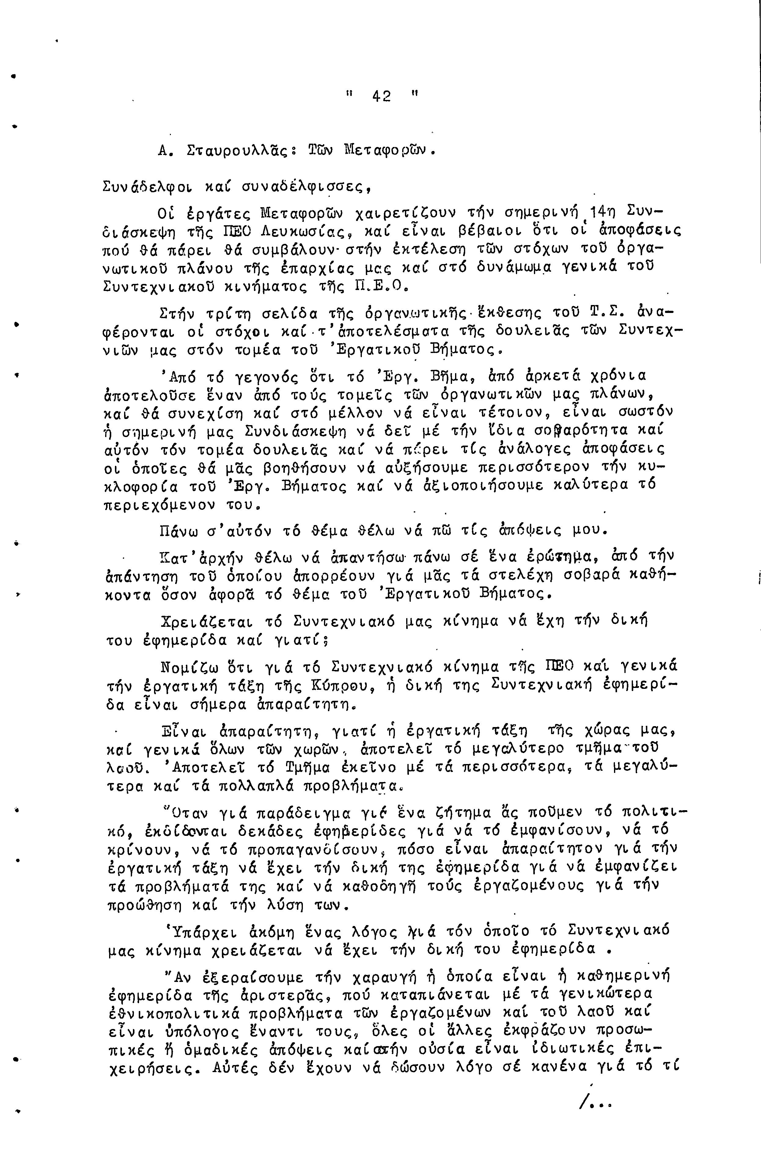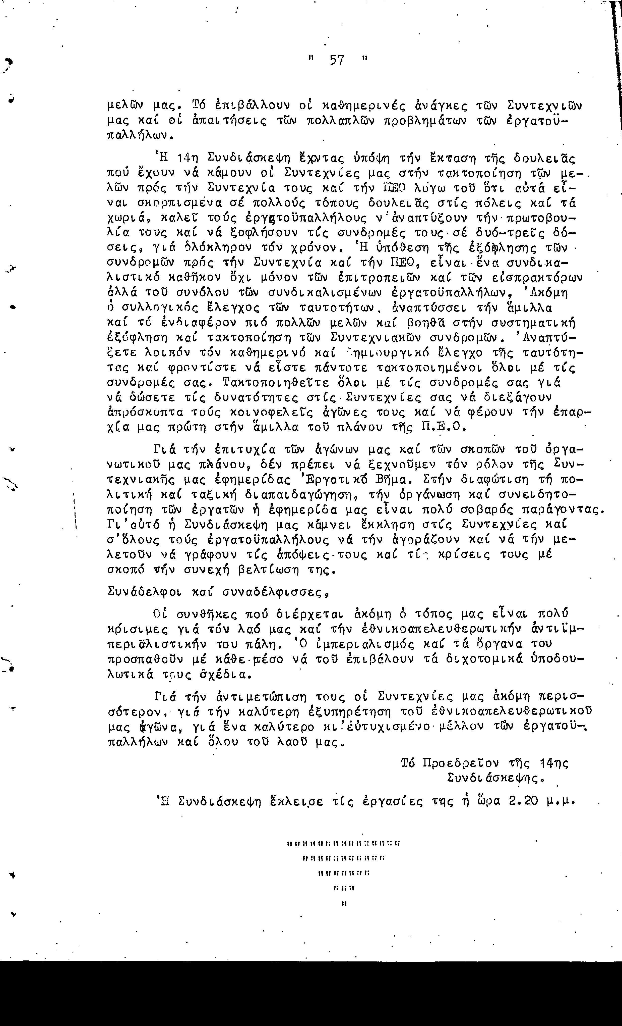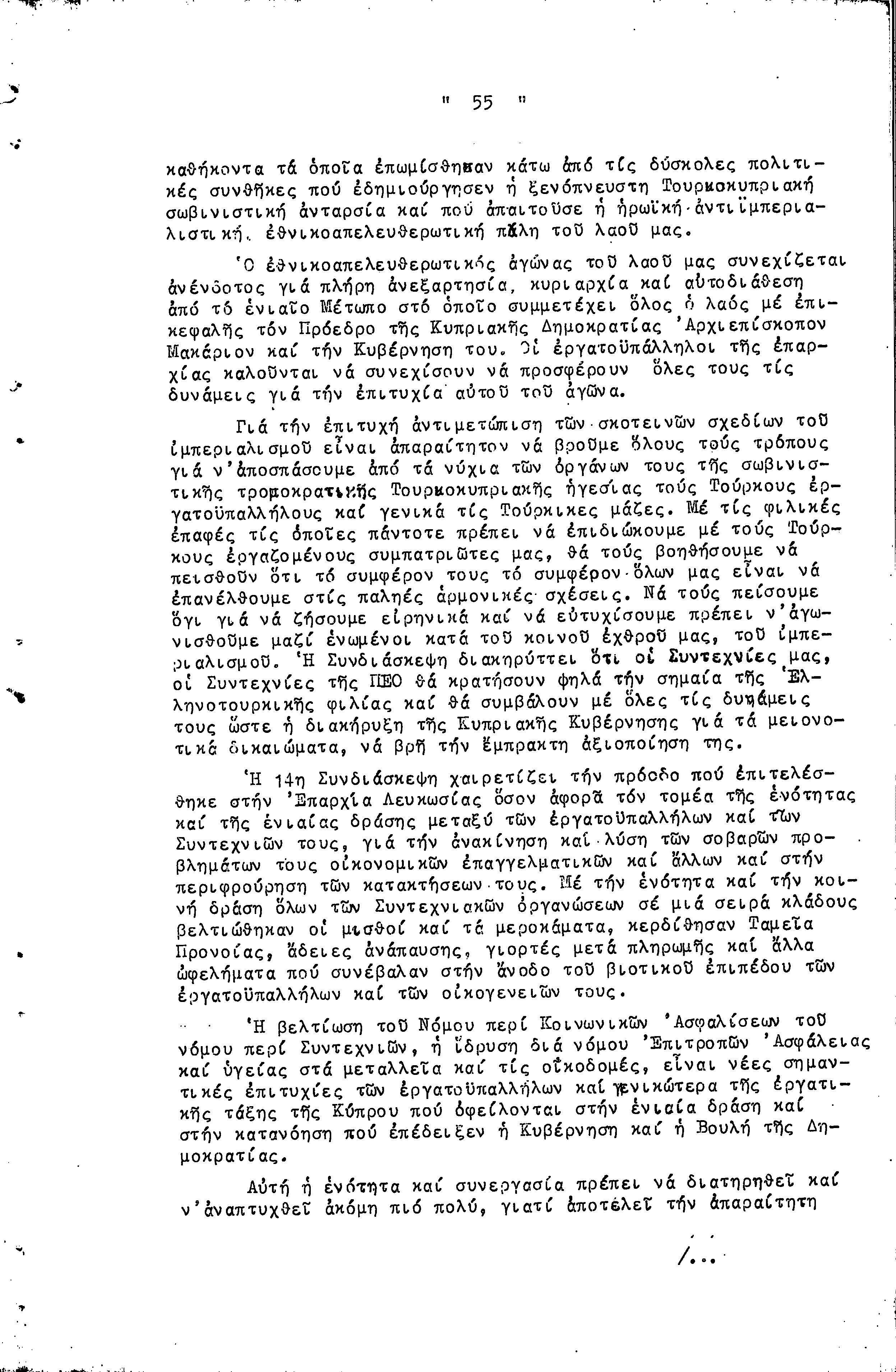 14η ΕΠΑΡΧΙΑΚΗ ΣΥΝΔΙΑΣΚΕΨΗ Τ.Σ. ΠΕΟ ΛΕΥΚΩΣΙΑΣ-ΚΕΡΥΝΕΙΑΣ, 13.03.1966 ( ΠΡΑΚΤΙΚΑ)
