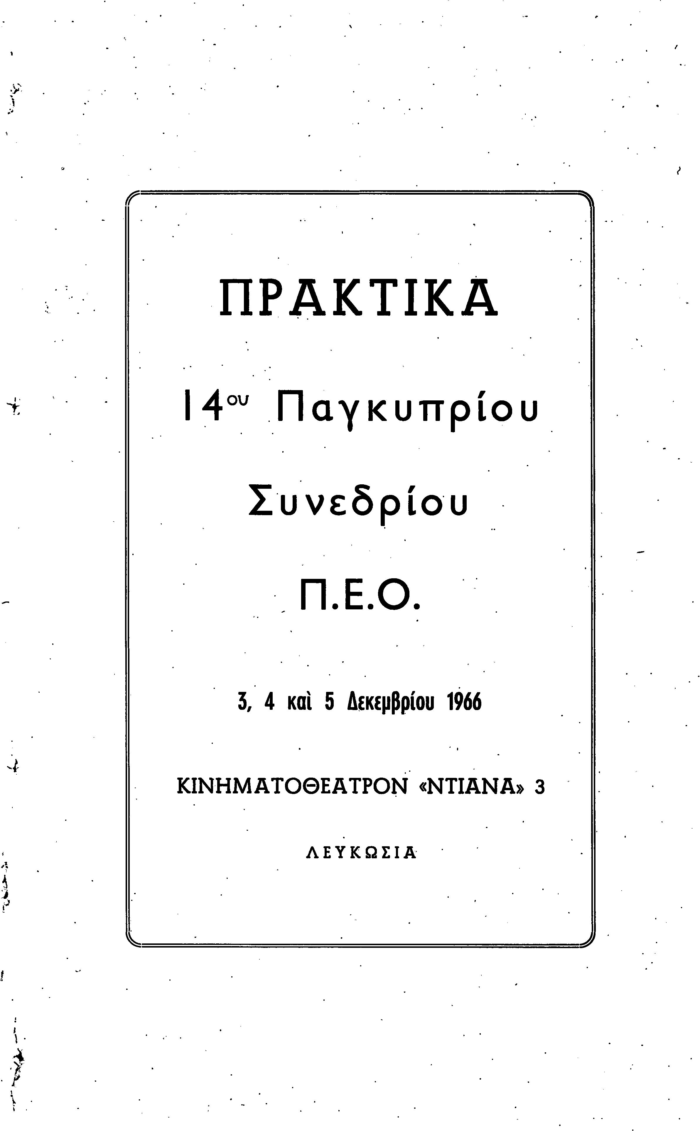 14ο ΠΑΓΚΥΠΡΙΟ ΣΥΝΕΔΡΙΟ ΠΕΟ, 3-5 ΔΕΚΕΜΒΡΙΟΥ 1966 ( ΠΡΑΚΤΙΚΑ) ΜΕΡΟΣ 1