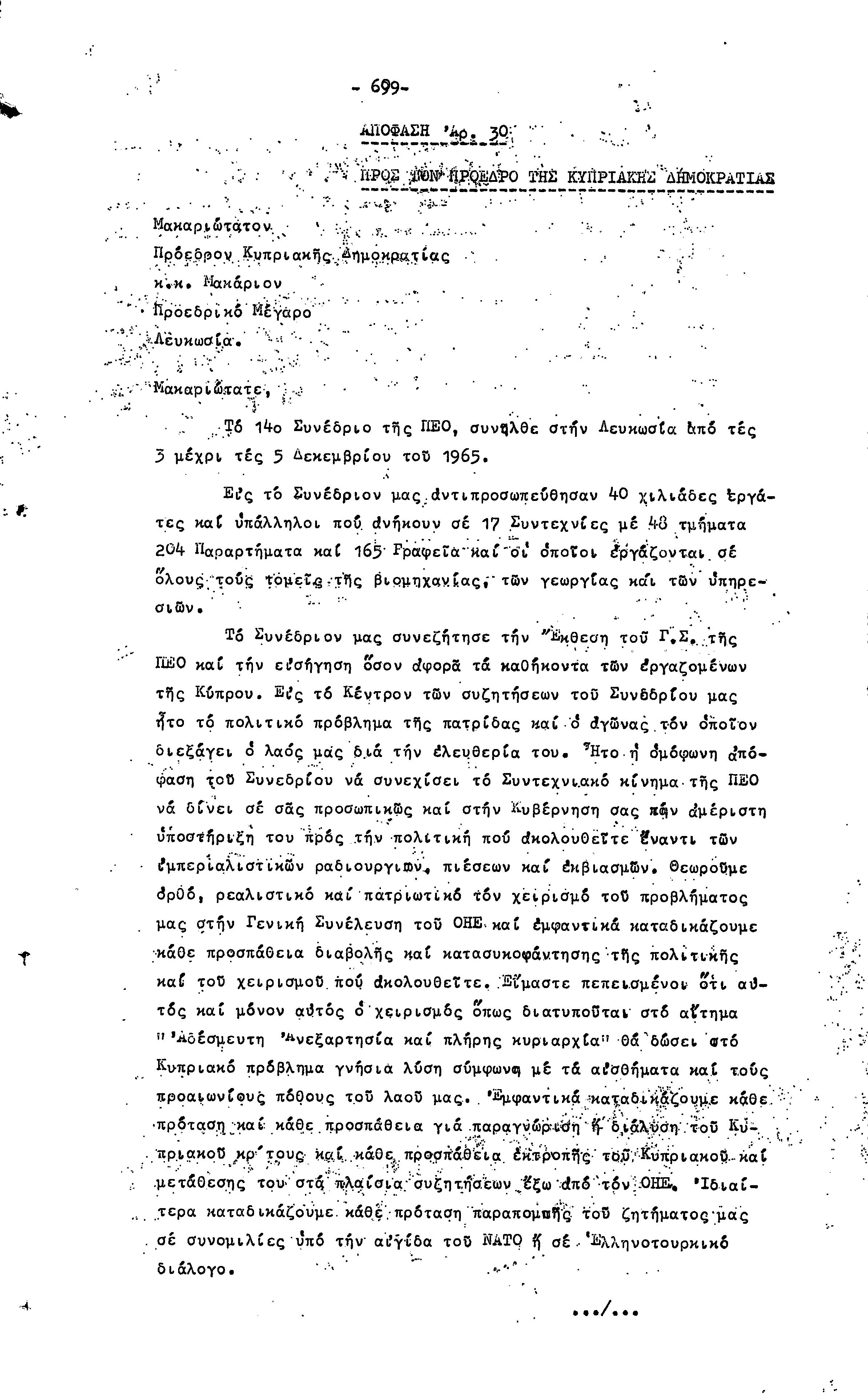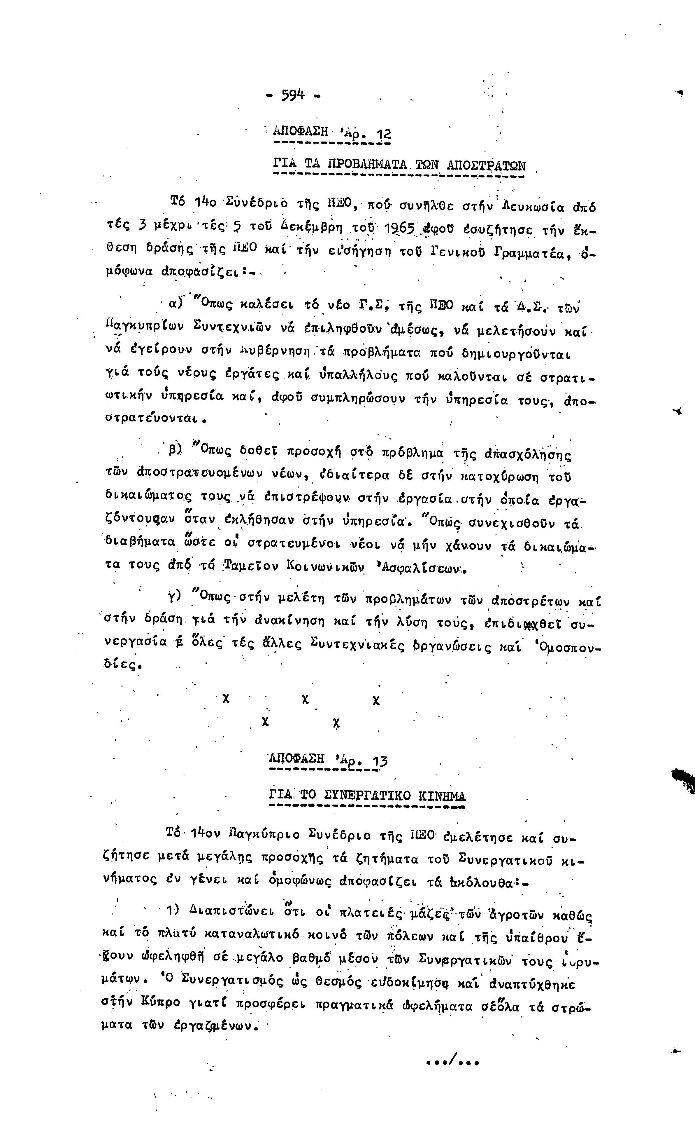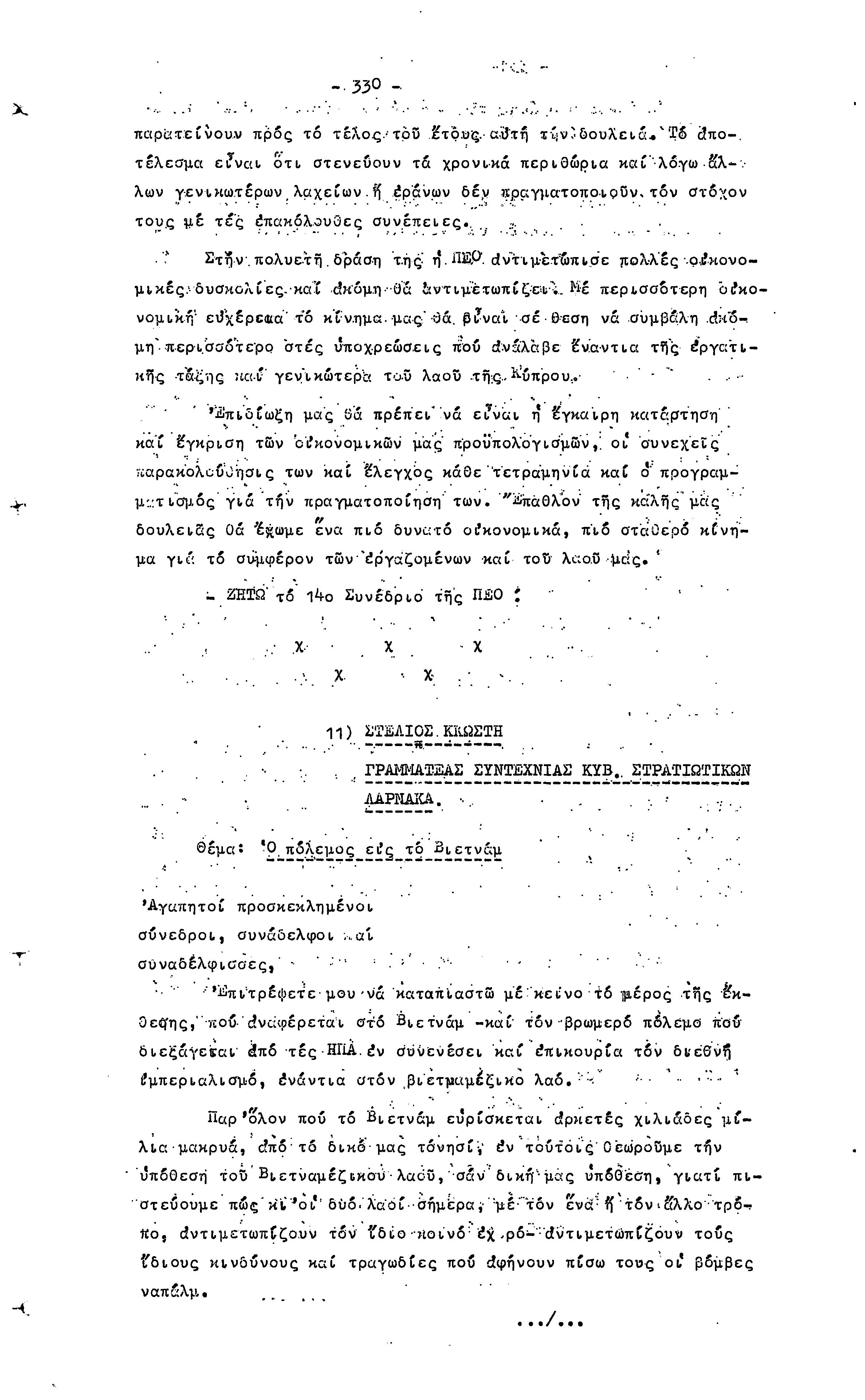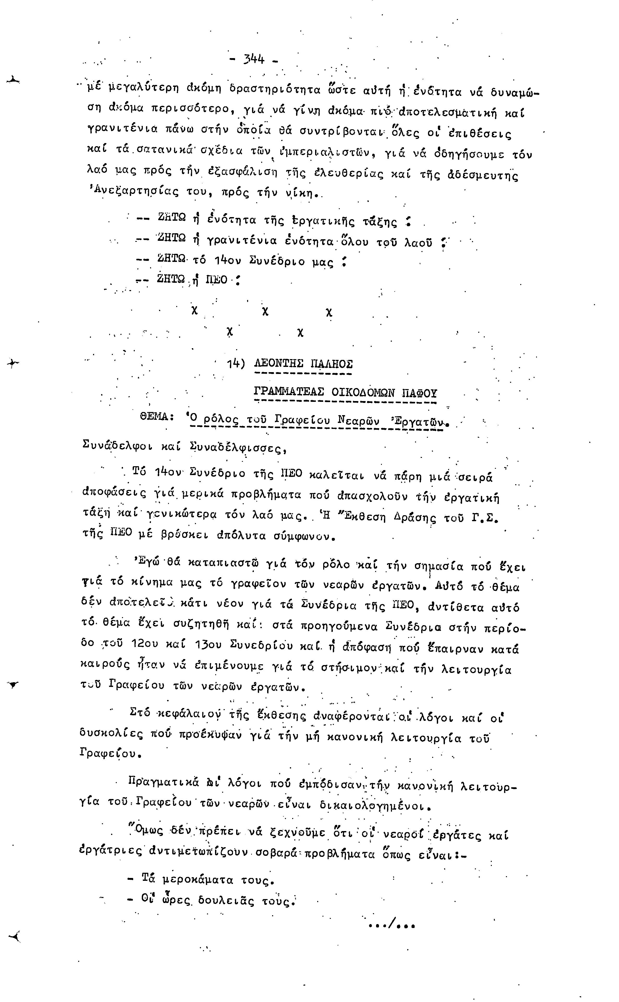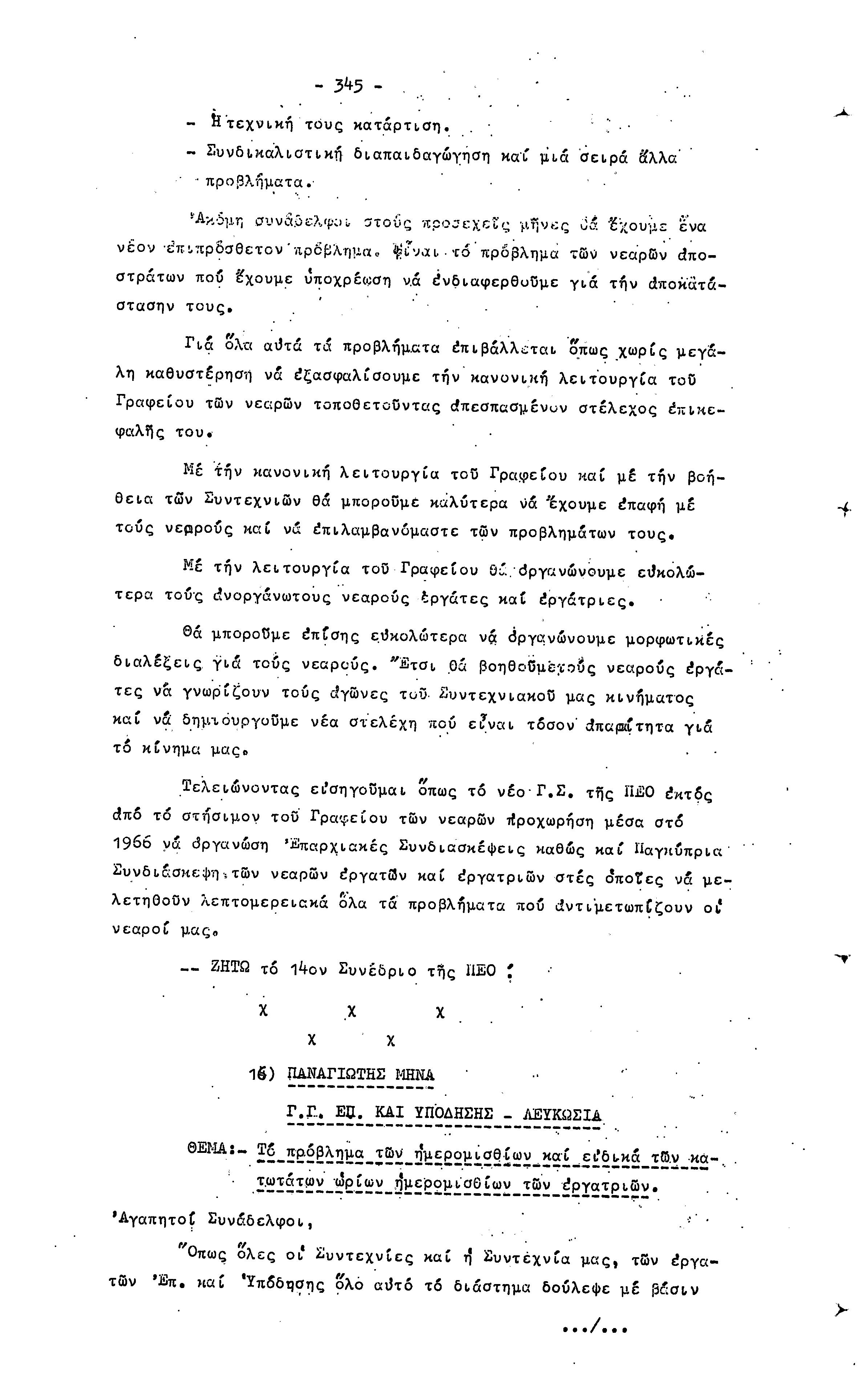 14ο ΠΑΓΚΥΠΡΙΟ ΣΥΝΕΔΡΙΟ ΠΕΟ, 3-5 ΔΕΚΕΜΒΡΙΟΥ 1966 ( ΠΡΑΚΤΙΚΑ) ΜΕΡΟΣ 2