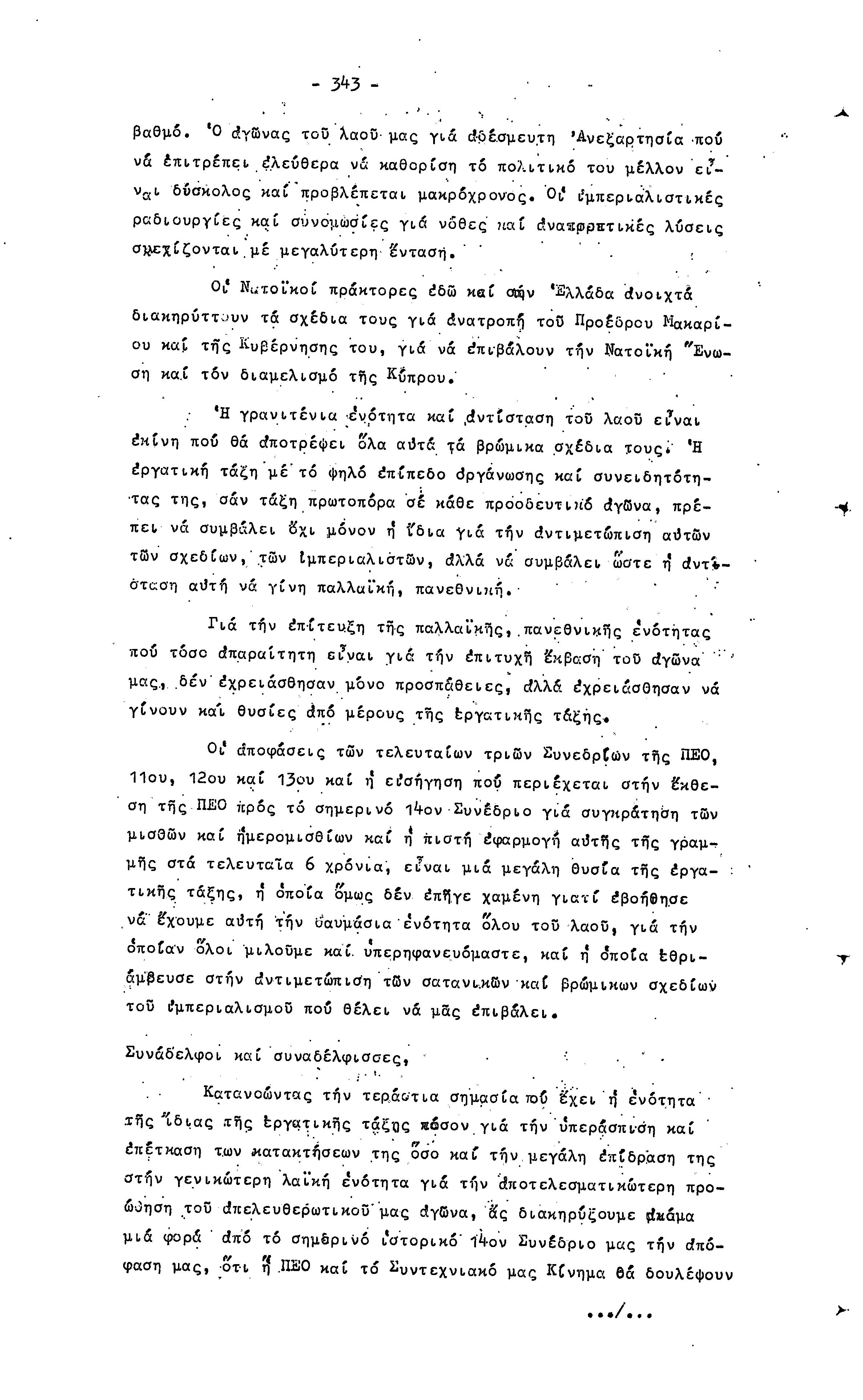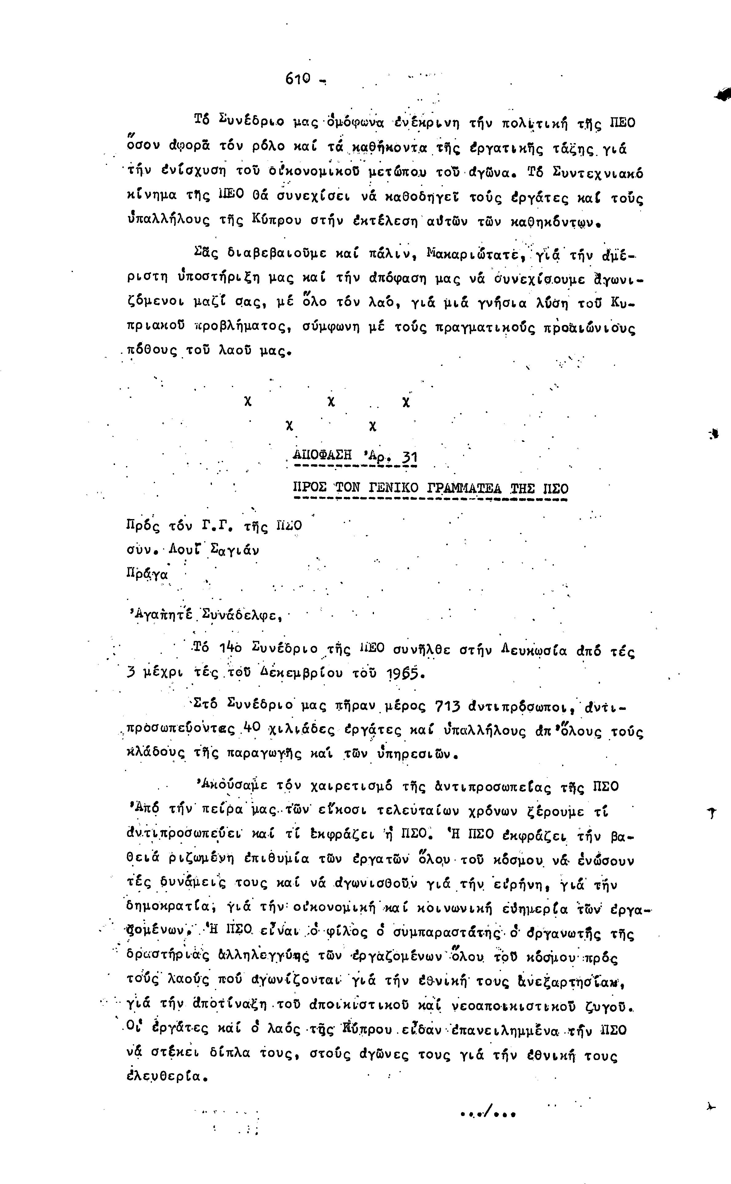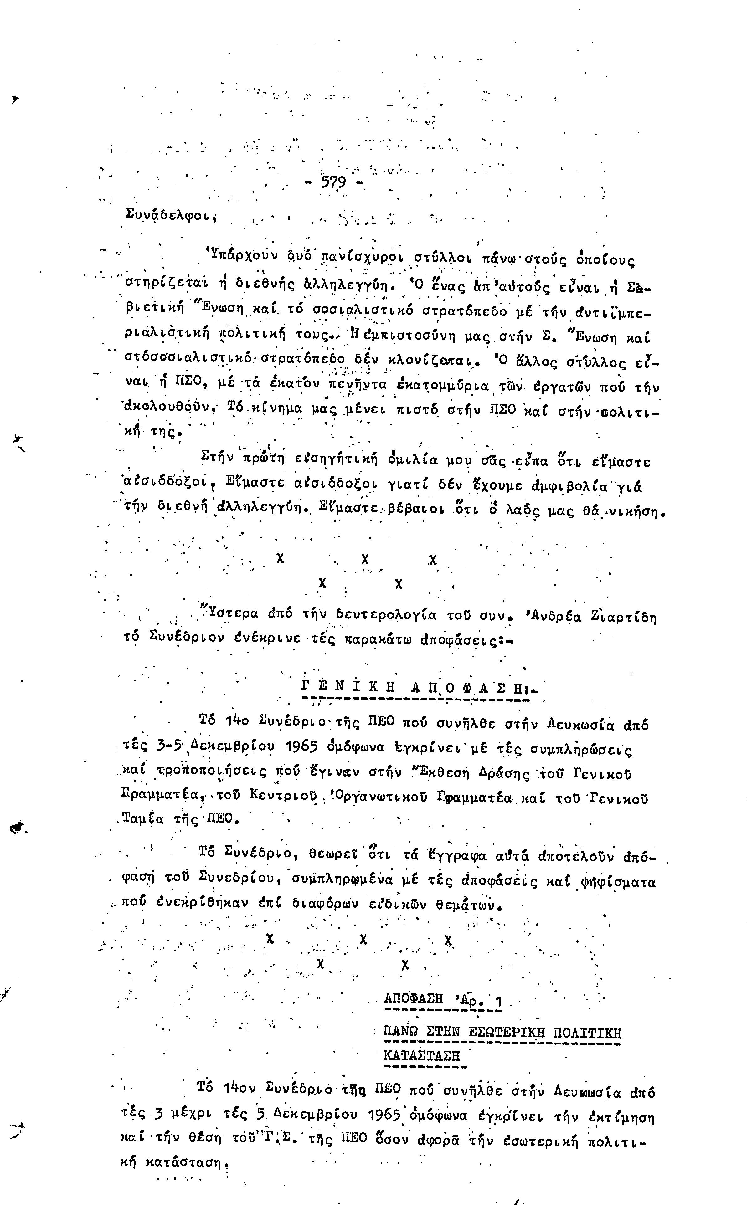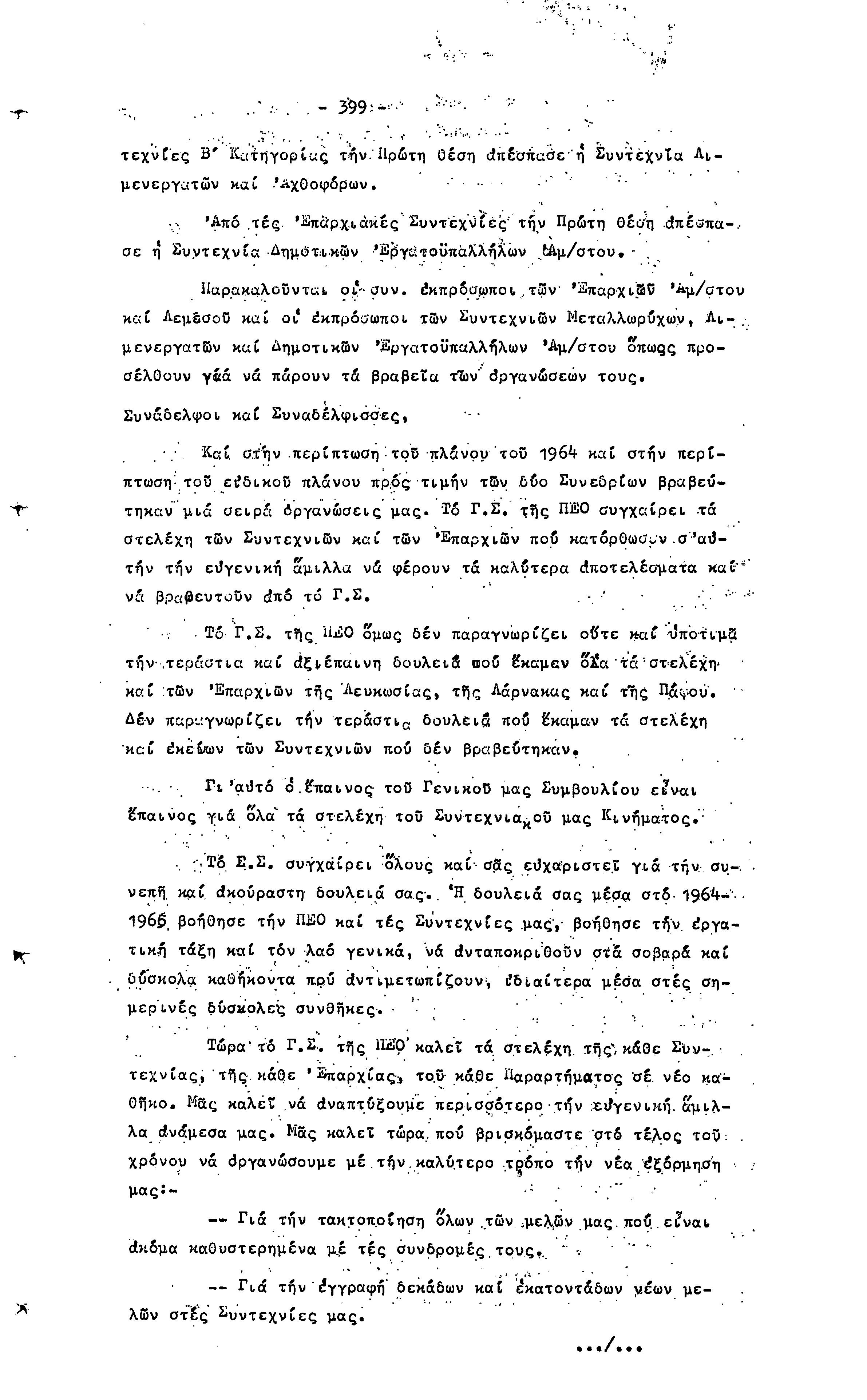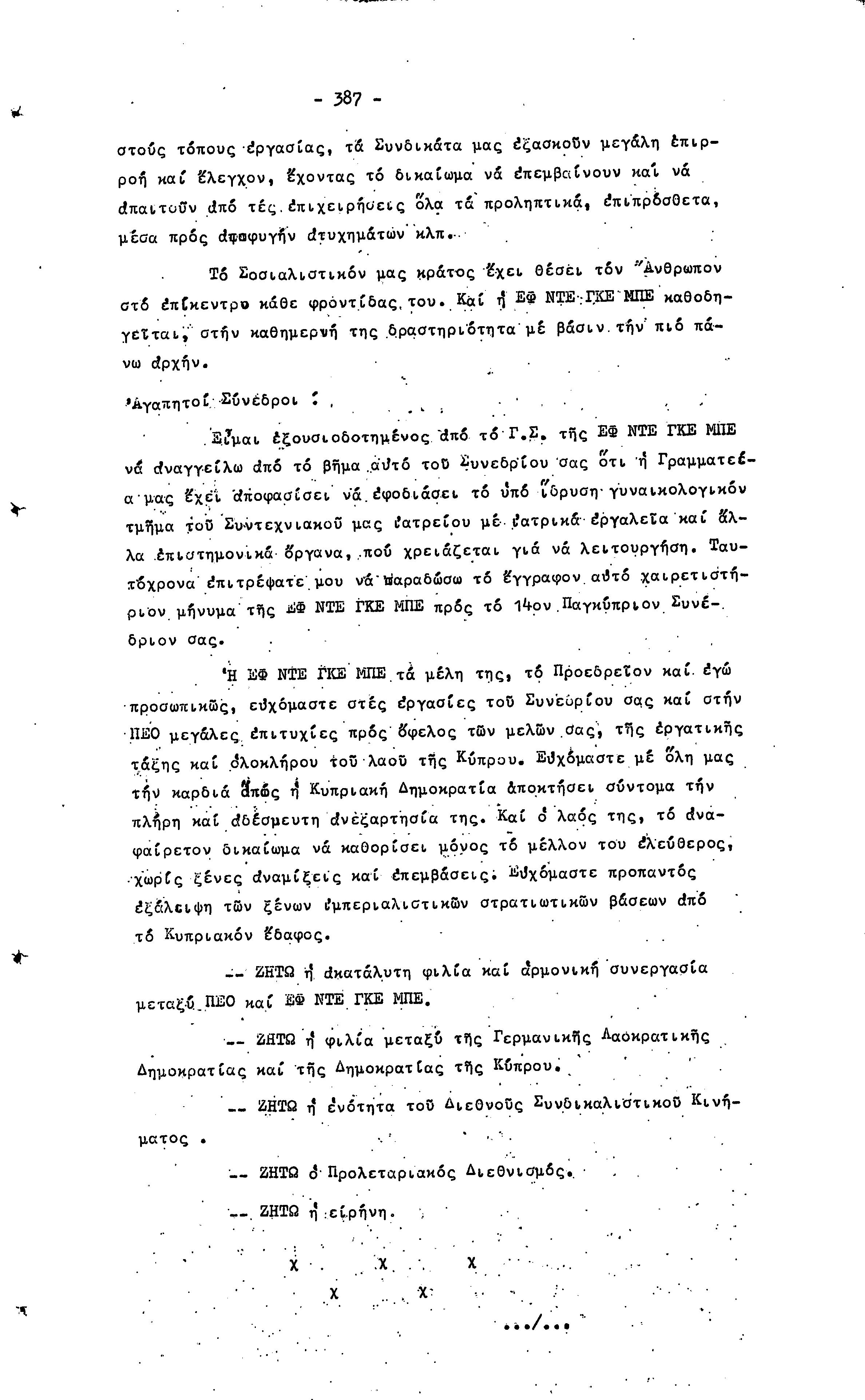 14ο ΠΑΓΚΥΠΡΙΟ ΣΥΝΕΔΡΙΟ ΠΕΟ, 3-5 ΔΕΚΕΜΒΡΙΟΥ 1966 ( ΠΡΑΚΤΙΚΑ) ΜΕΡΟΣ 2