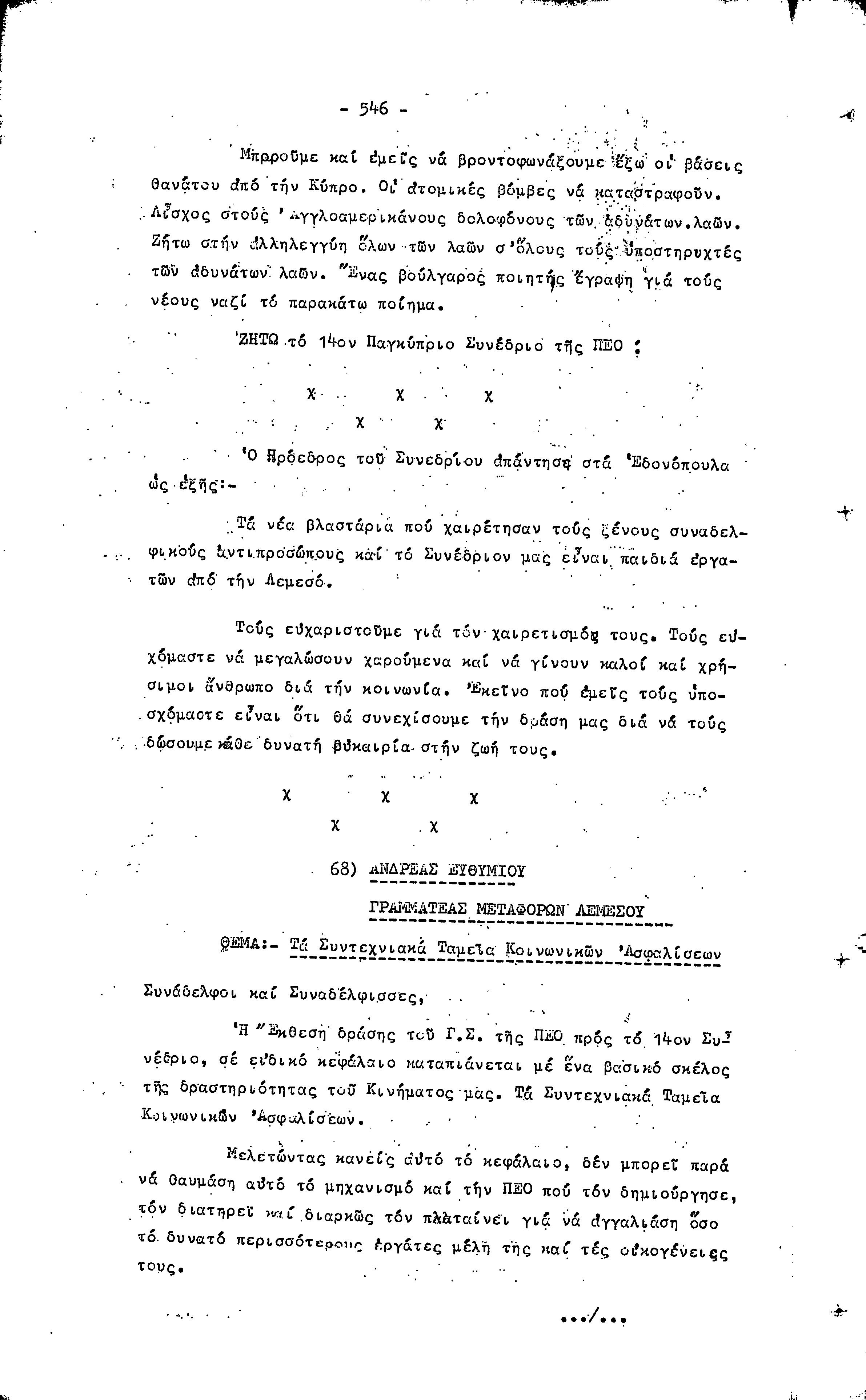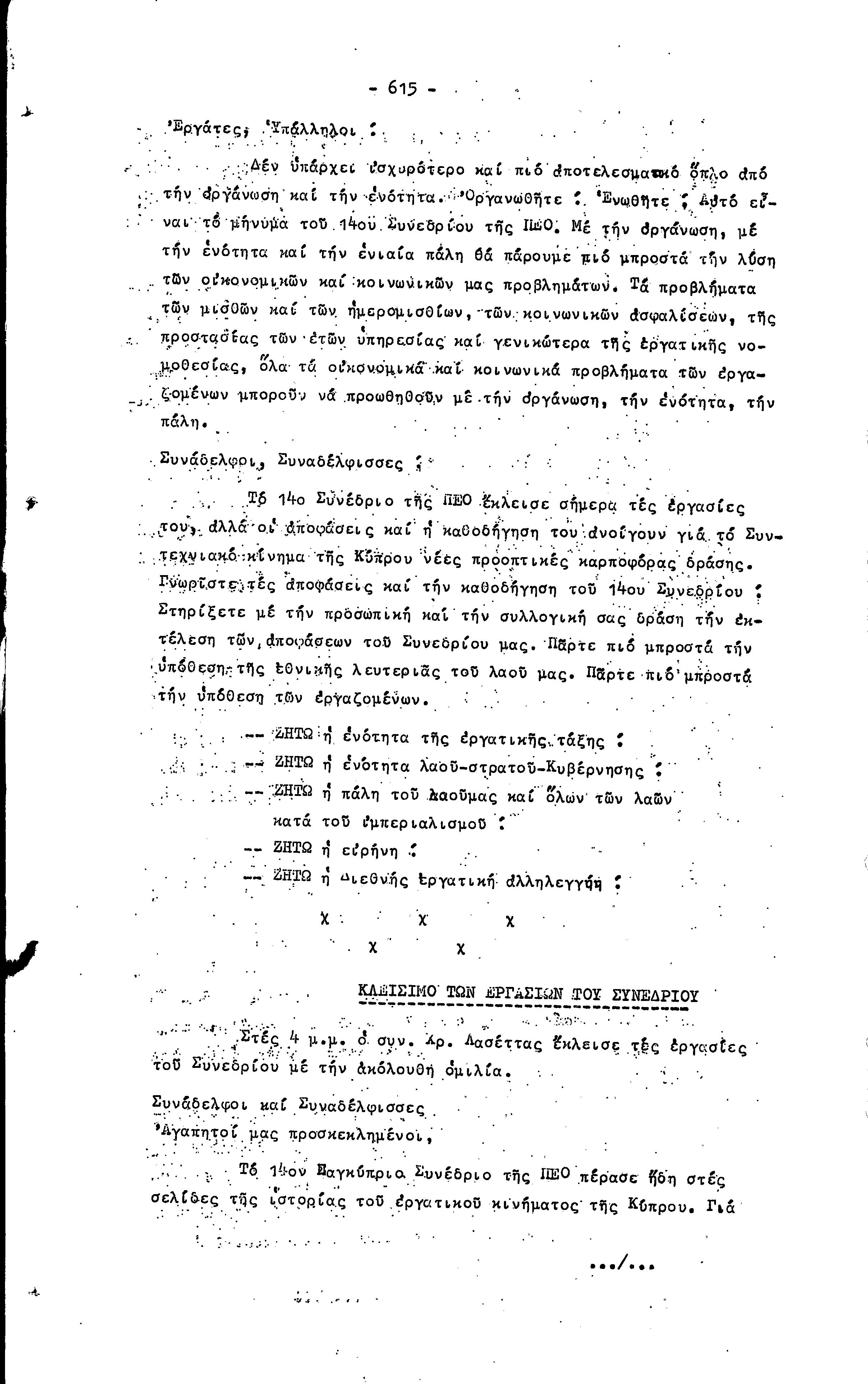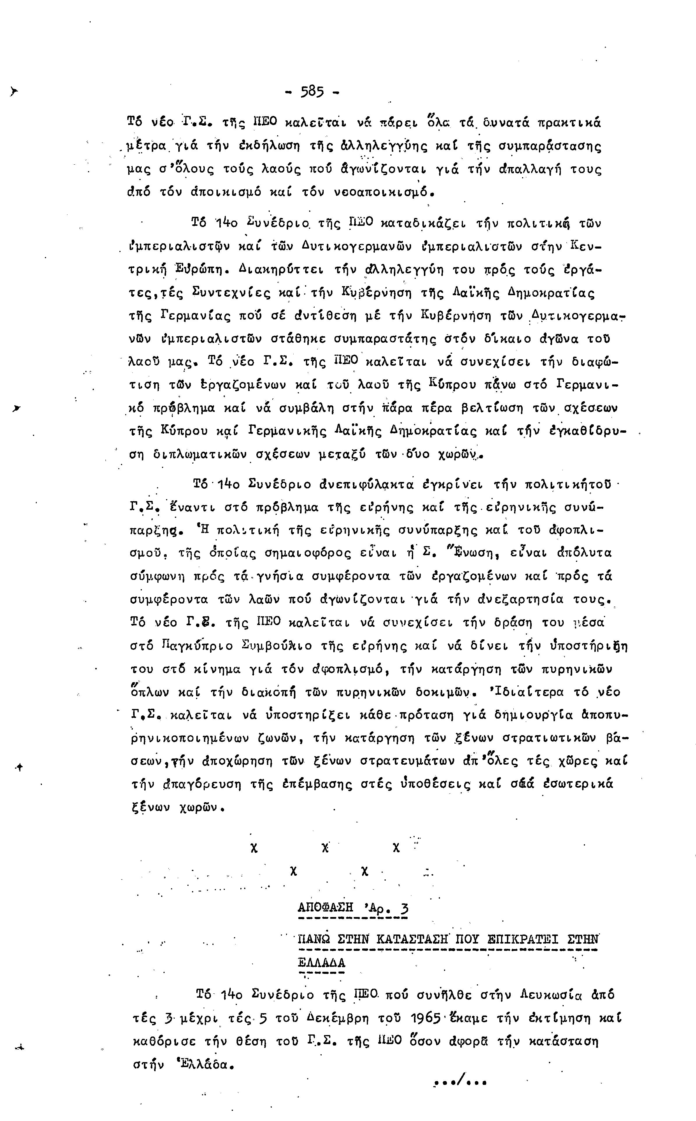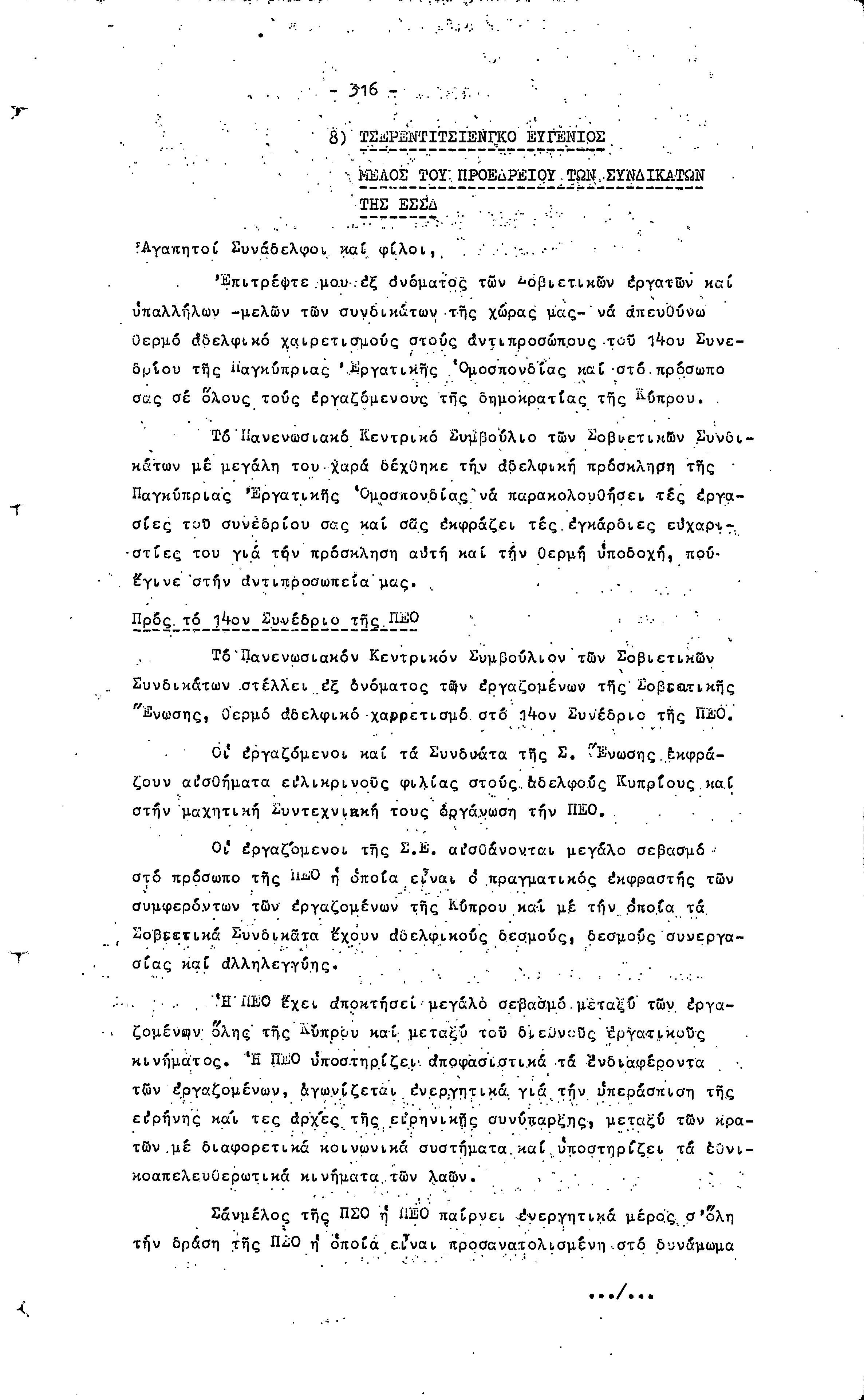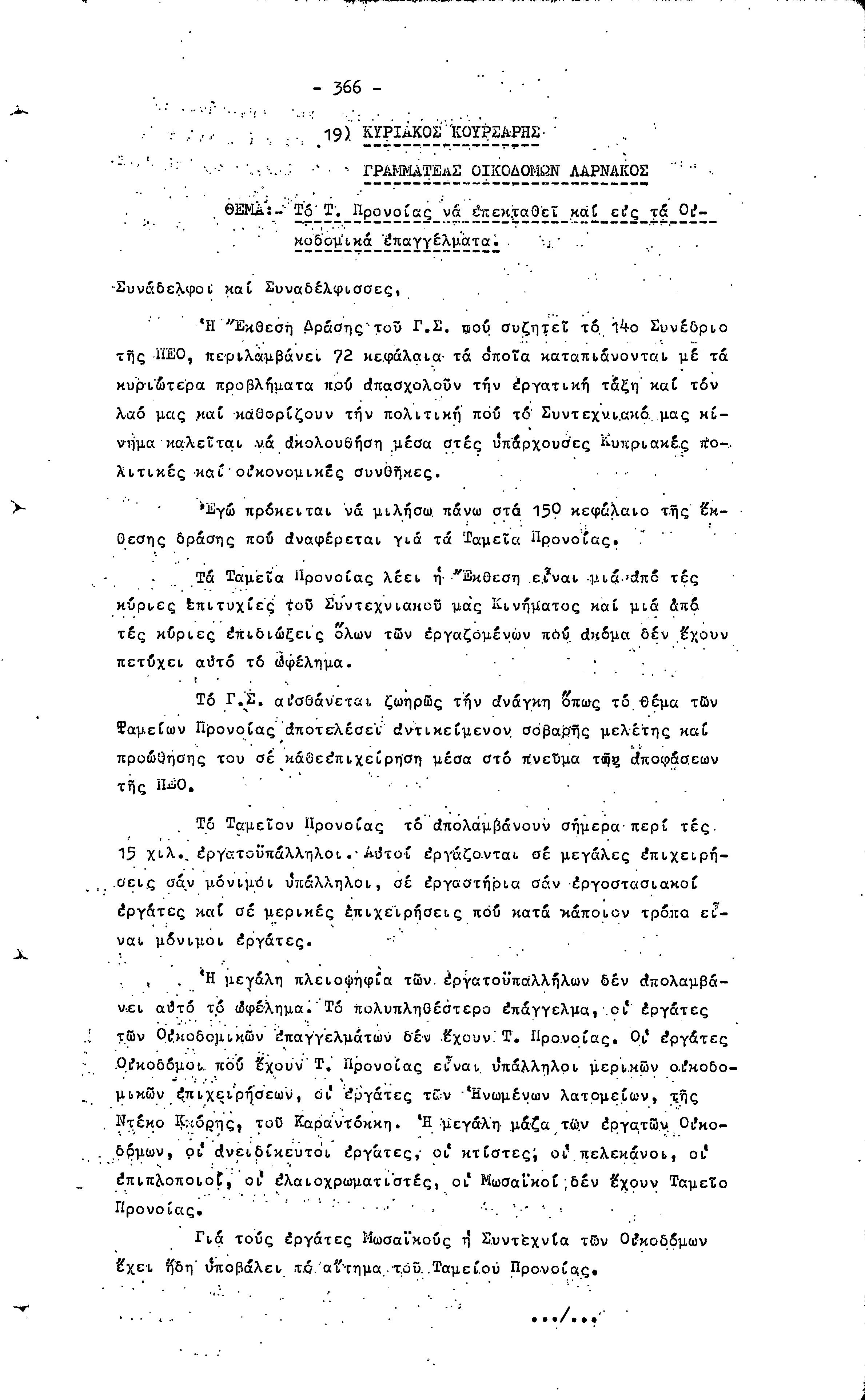 14ο ΠΑΓΚΥΠΡΙΟ ΣΥΝΕΔΡΙΟ ΠΕΟ, 3-5 ΔΕΚΕΜΒΡΙΟΥ 1966 ( ΠΡΑΚΤΙΚΑ) ΜΕΡΟΣ 2
