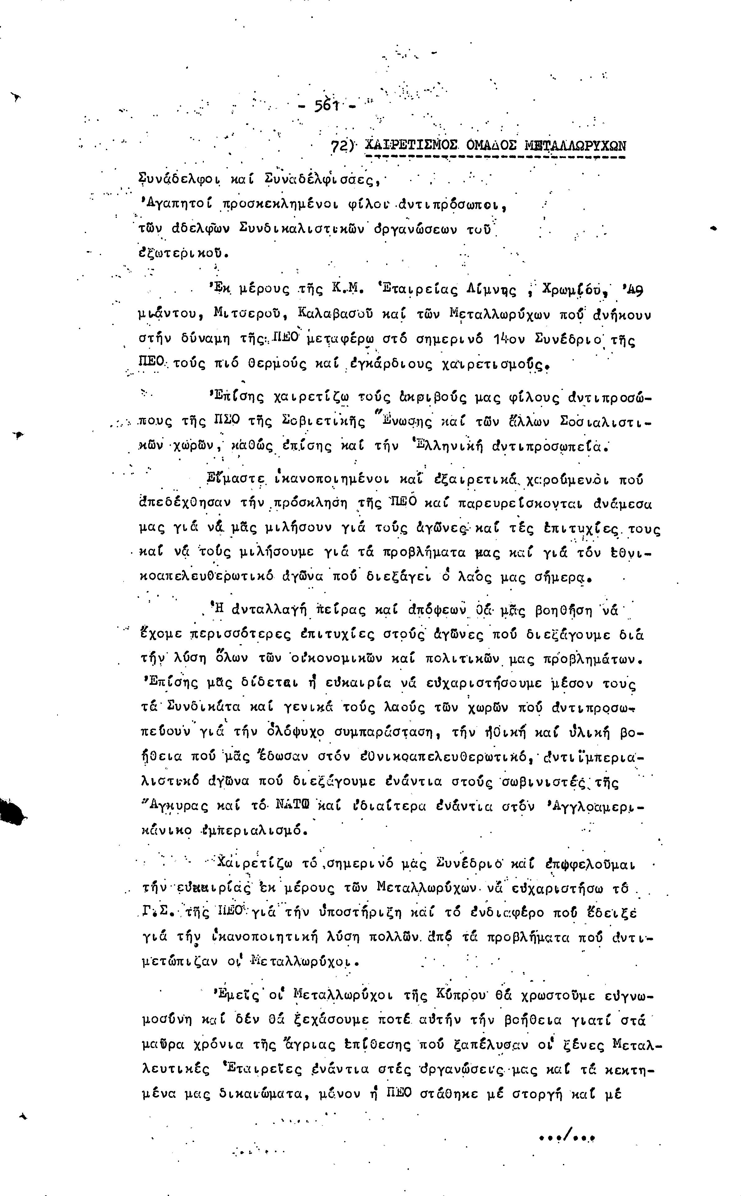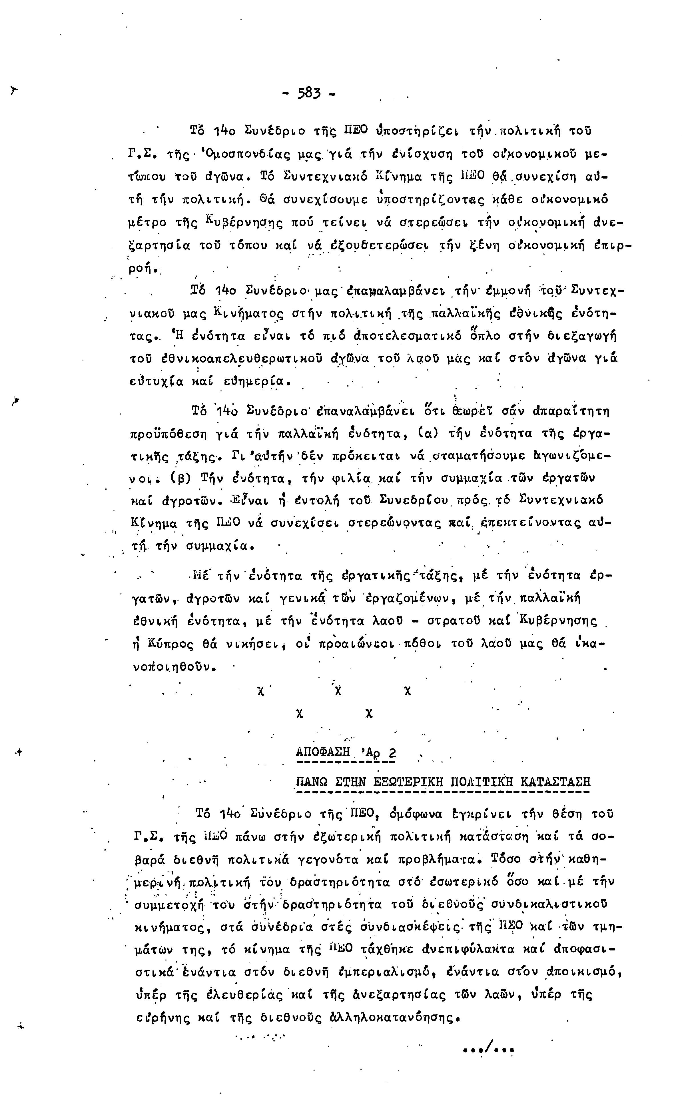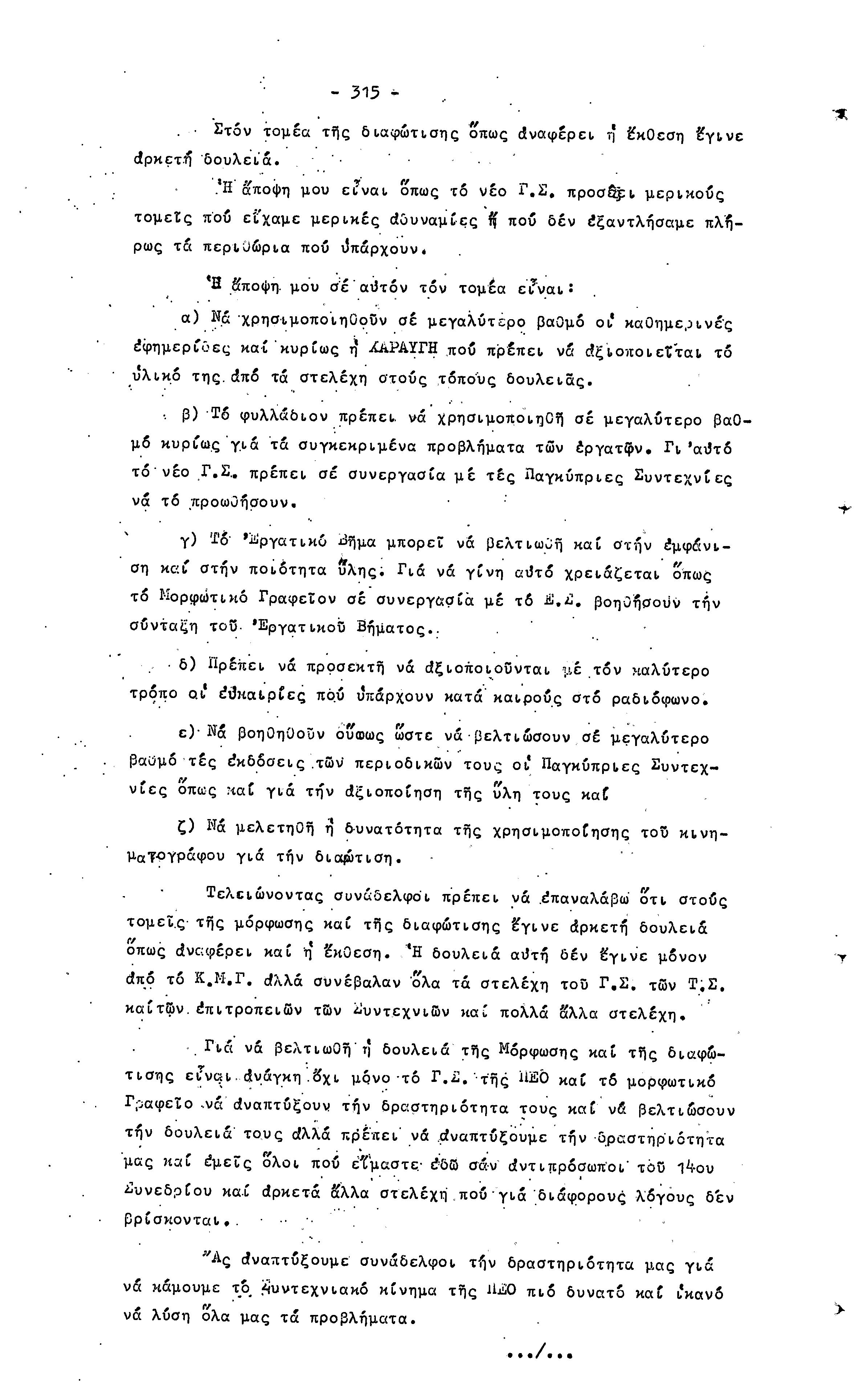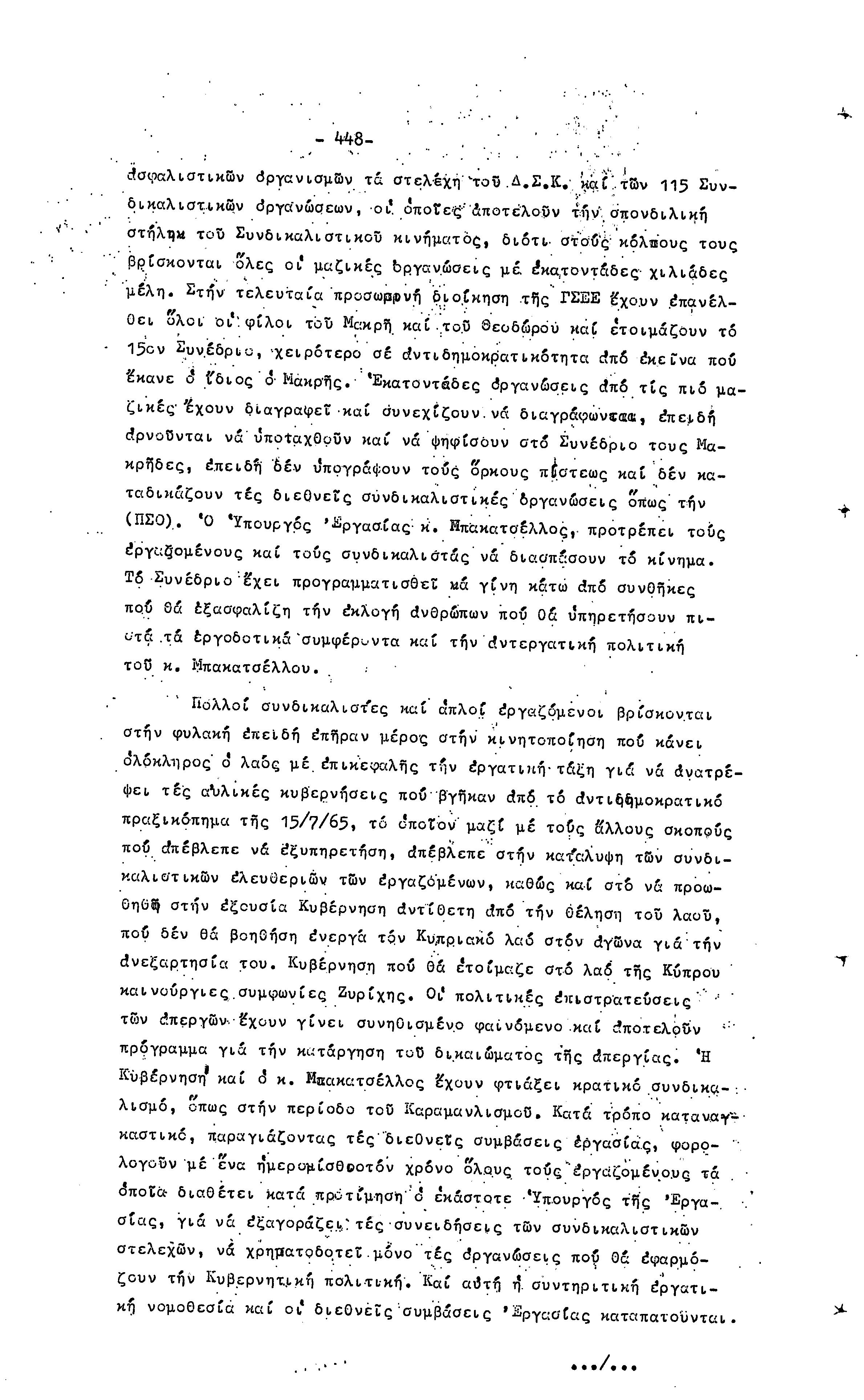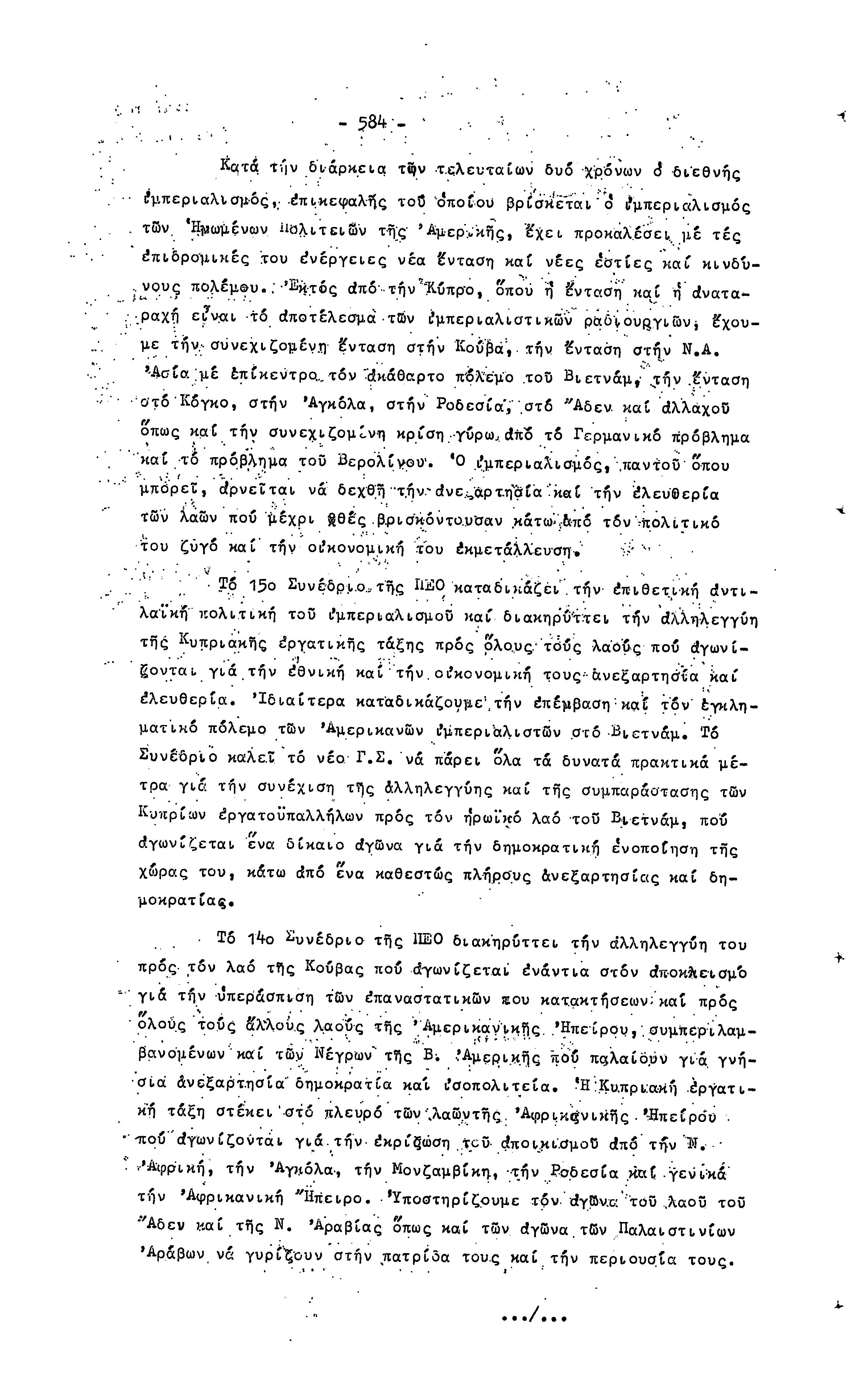 14ο ΠΑΓΚΥΠΡΙΟ ΣΥΝΕΔΡΙΟ ΠΕΟ, 3-5 ΔΕΚΕΜΒΡΙΟΥ 1966 ( ΠΡΑΚΤΙΚΑ) ΜΕΡΟΣ 2