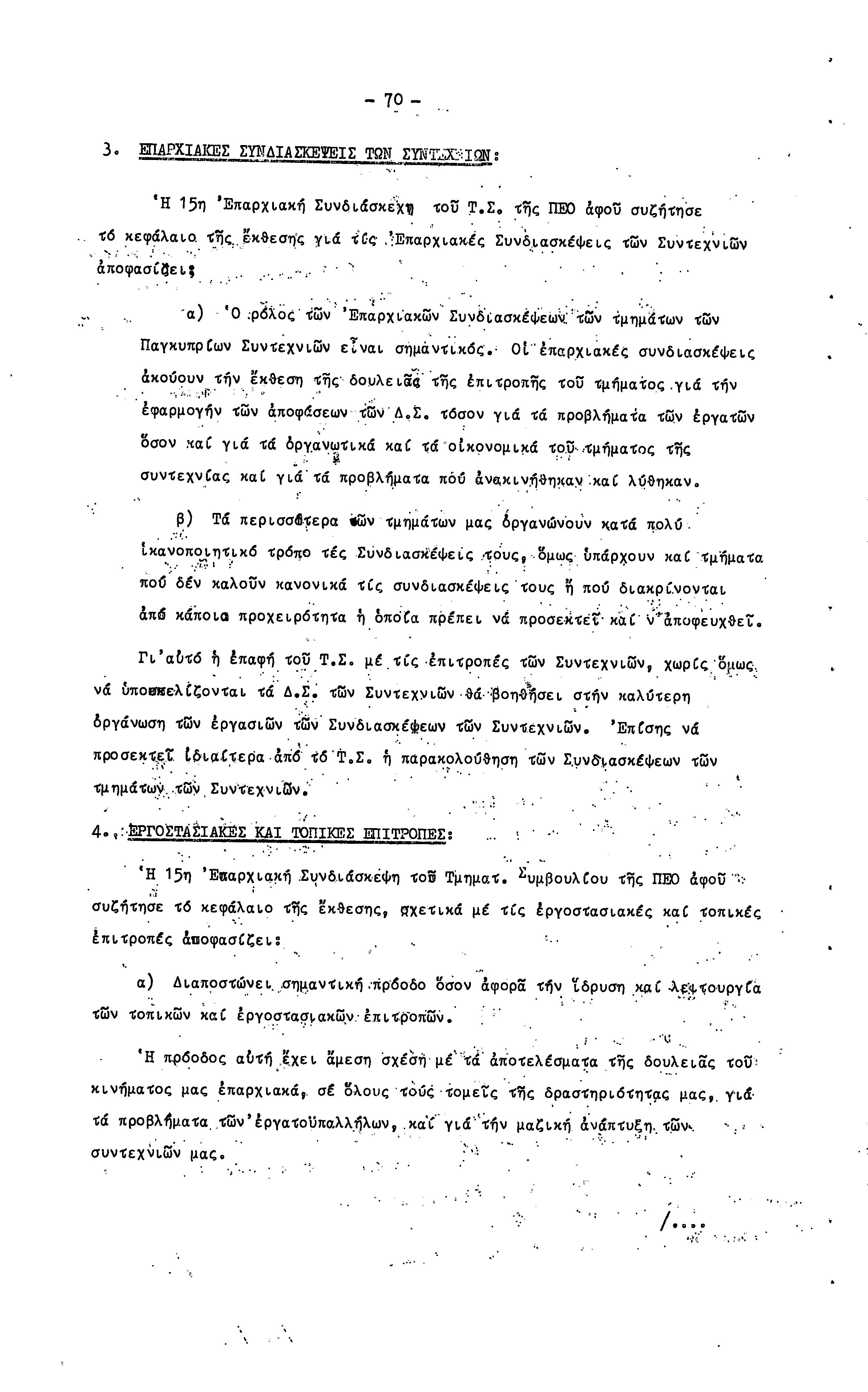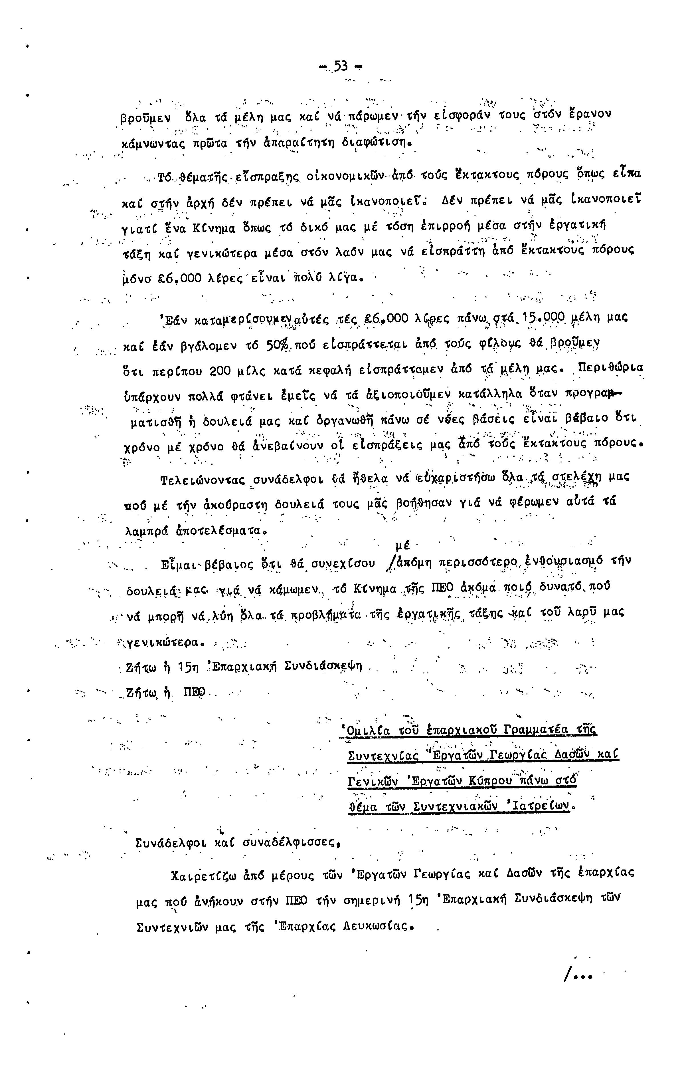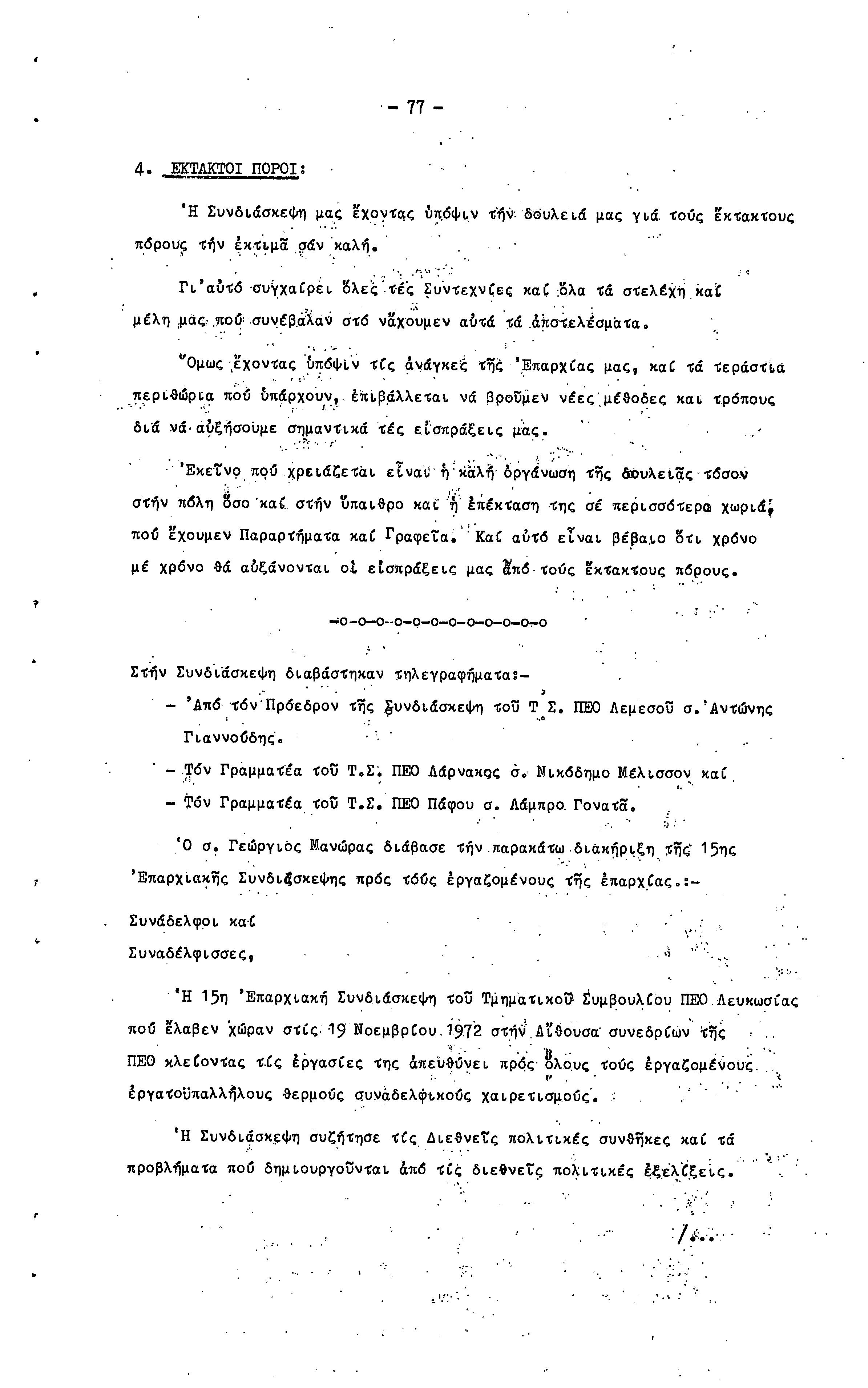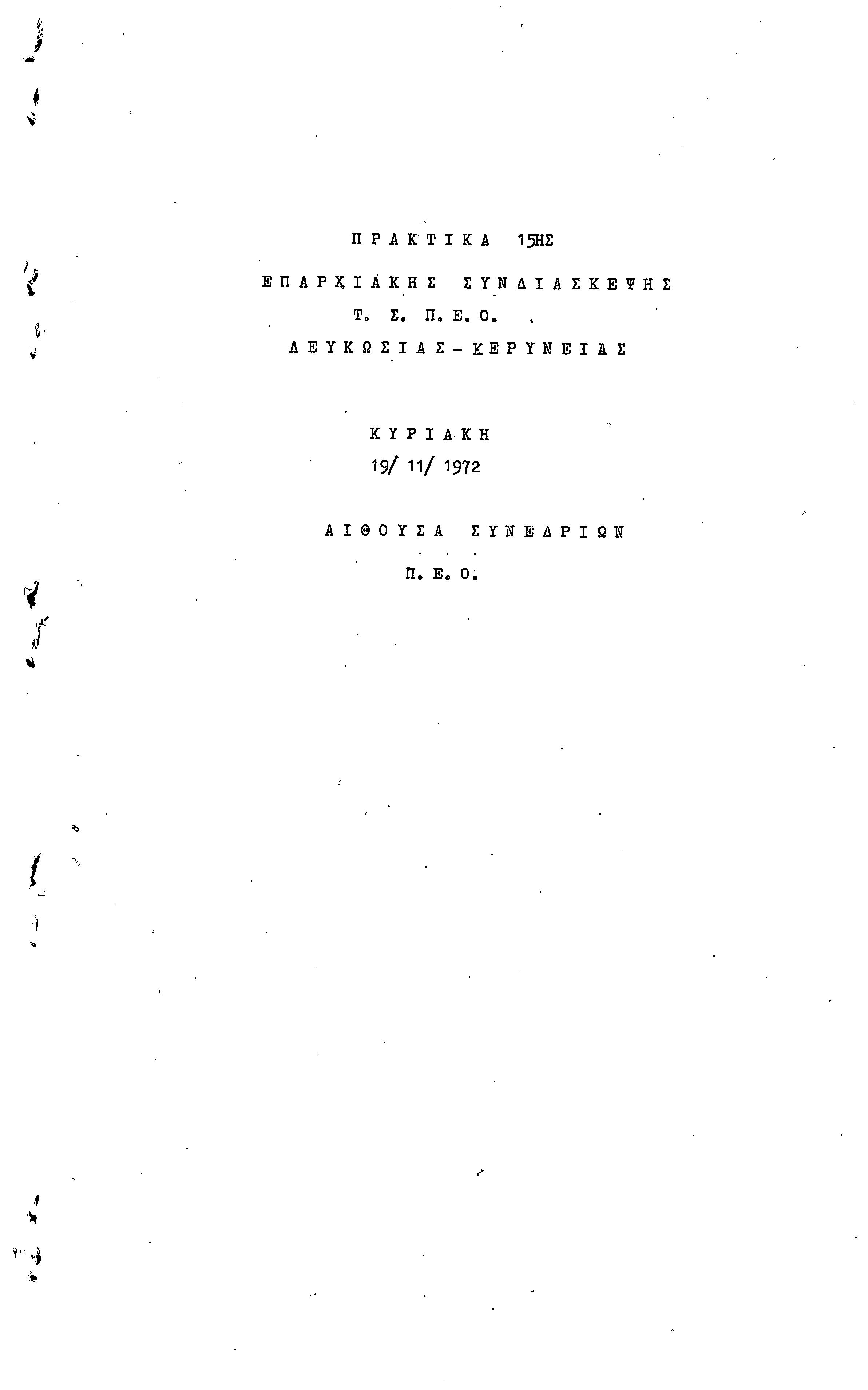 15η ΕΠΑΡΧΙΑΚΗ ΣΥΝΔΙΑΣΚΕΨΗ Τ.Σ. ΠΕΟ ΛΕΥΚΩΣΙΑΣ-ΚΕΡΥΝΕΙΑΣ,19.11.1972 ( ΠΡΑΚΤΙΚΑ)
