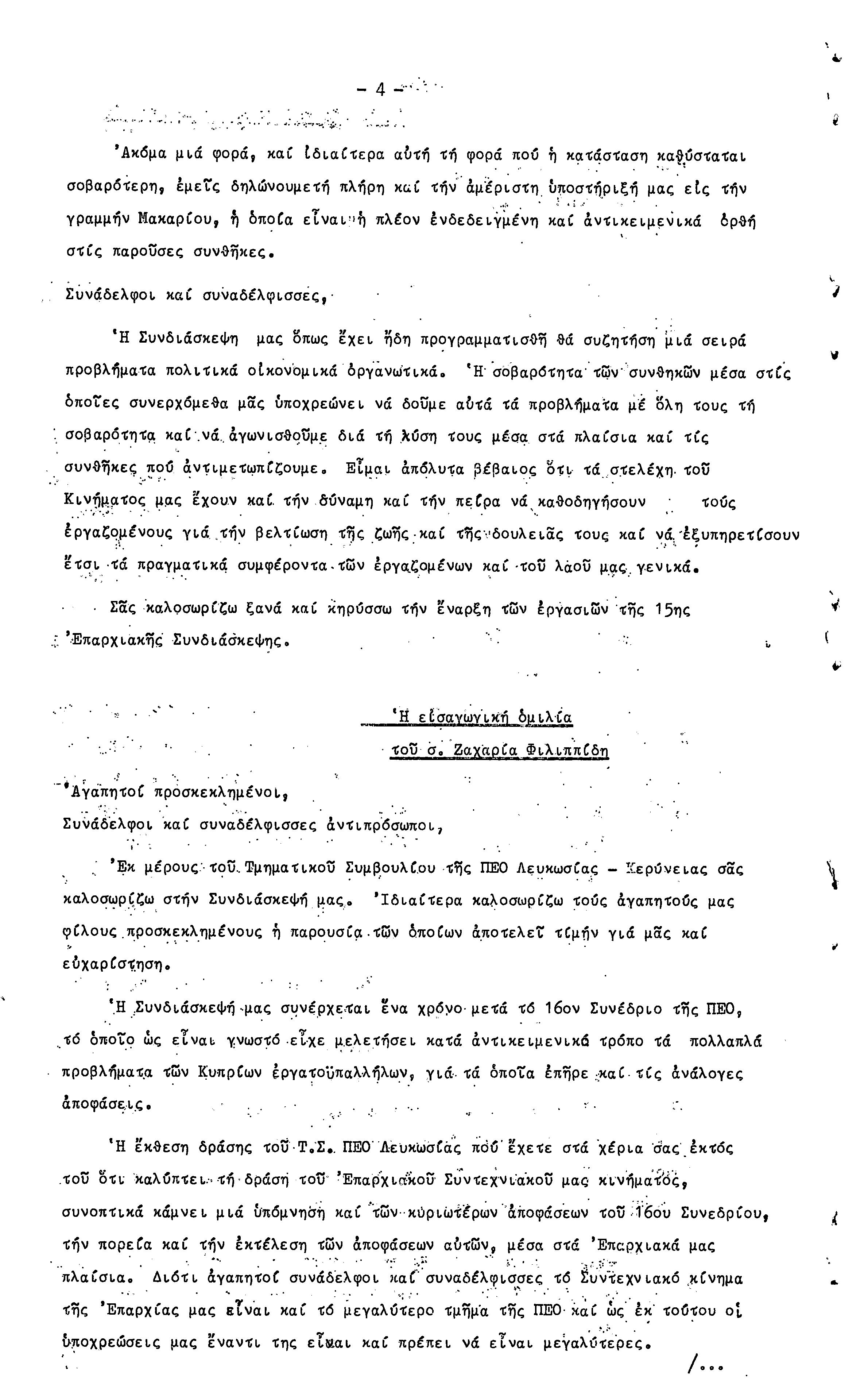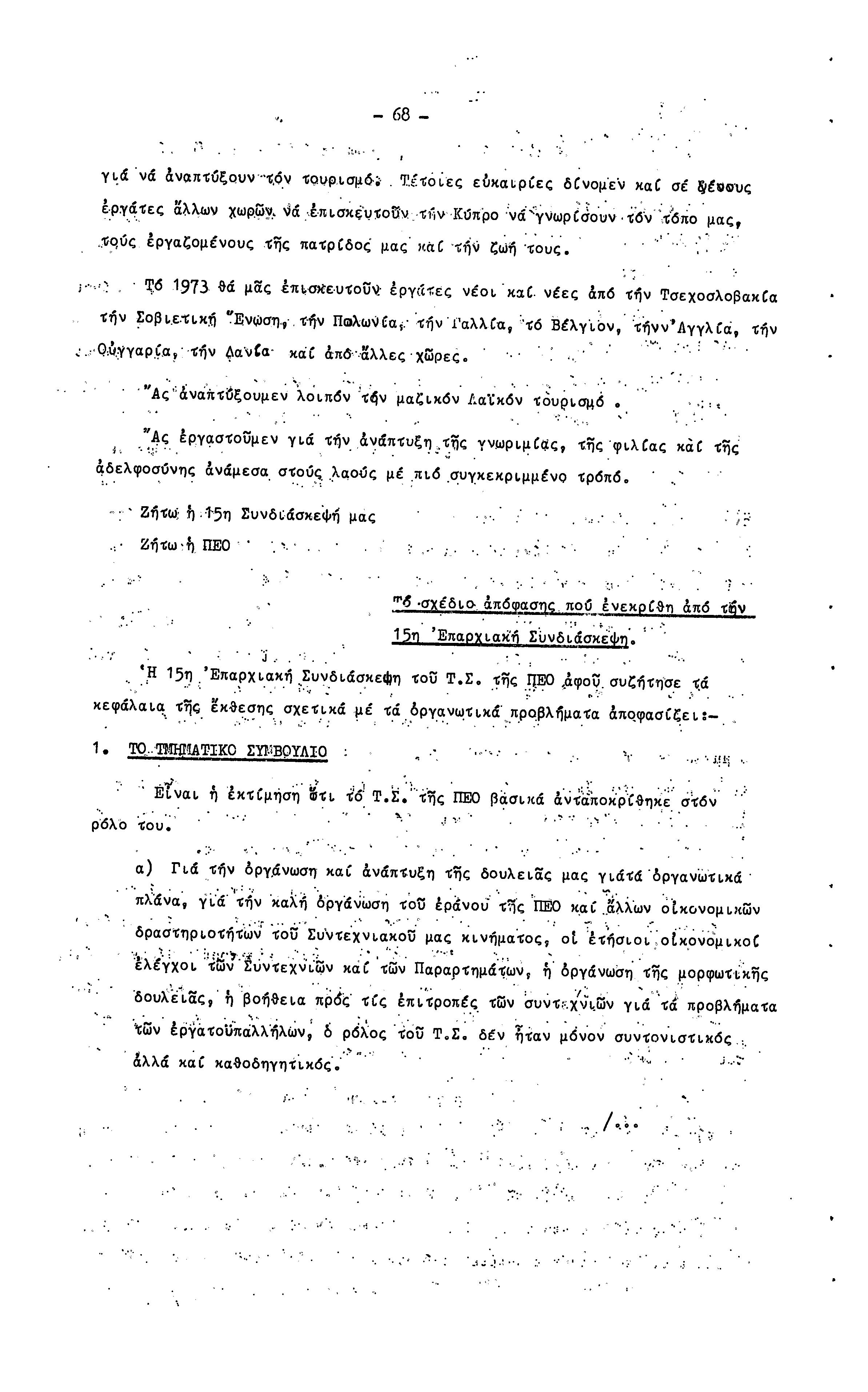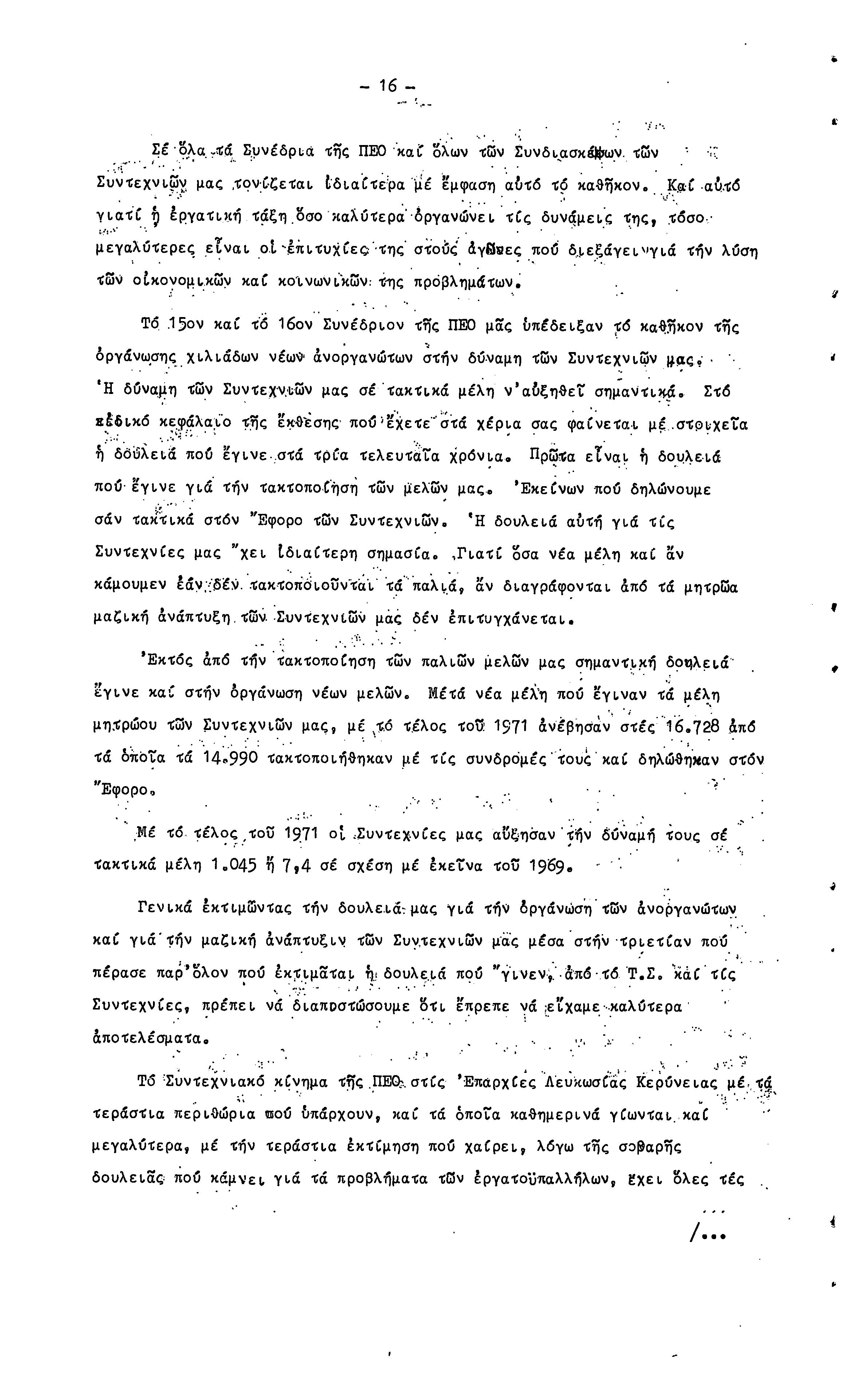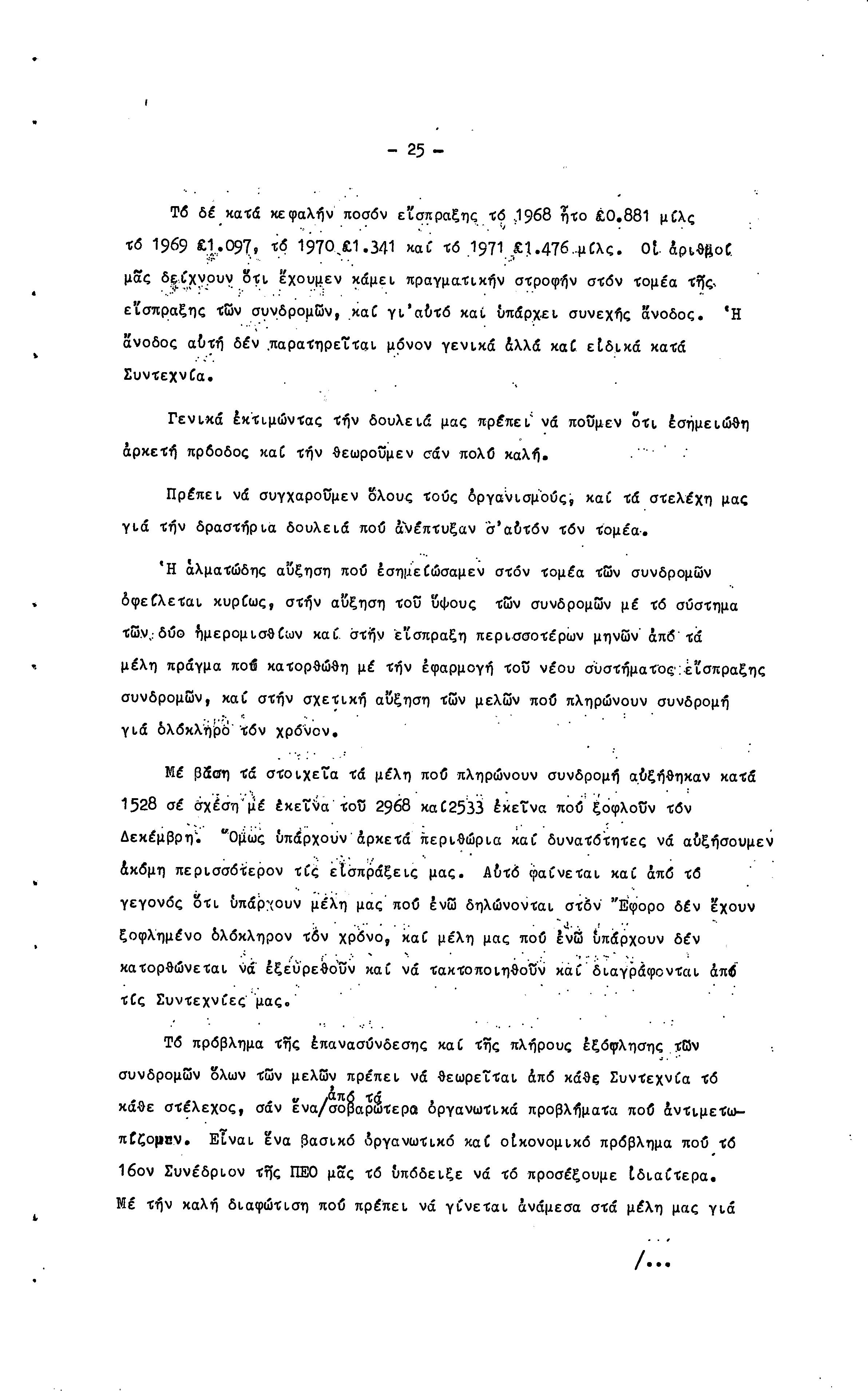 15η ΕΠΑΡΧΙΑΚΗ ΣΥΝΔΙΑΣΚΕΨΗ Τ.Σ. ΠΕΟ ΛΕΥΚΩΣΙΑΣ-ΚΕΡΥΝΕΙΑΣ,19.11.1972 ( ΠΡΑΚΤΙΚΑ)