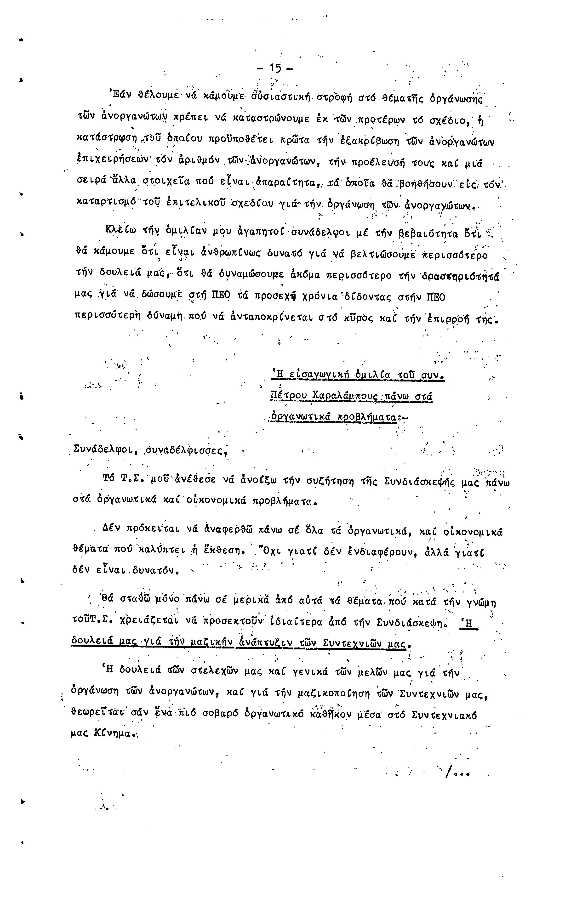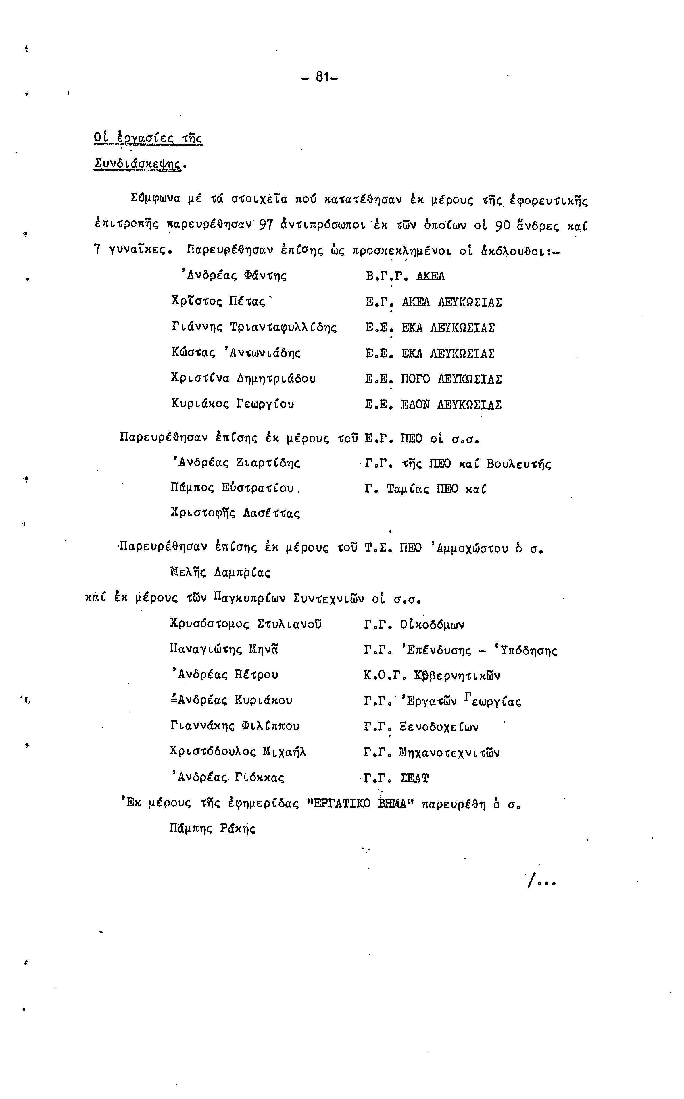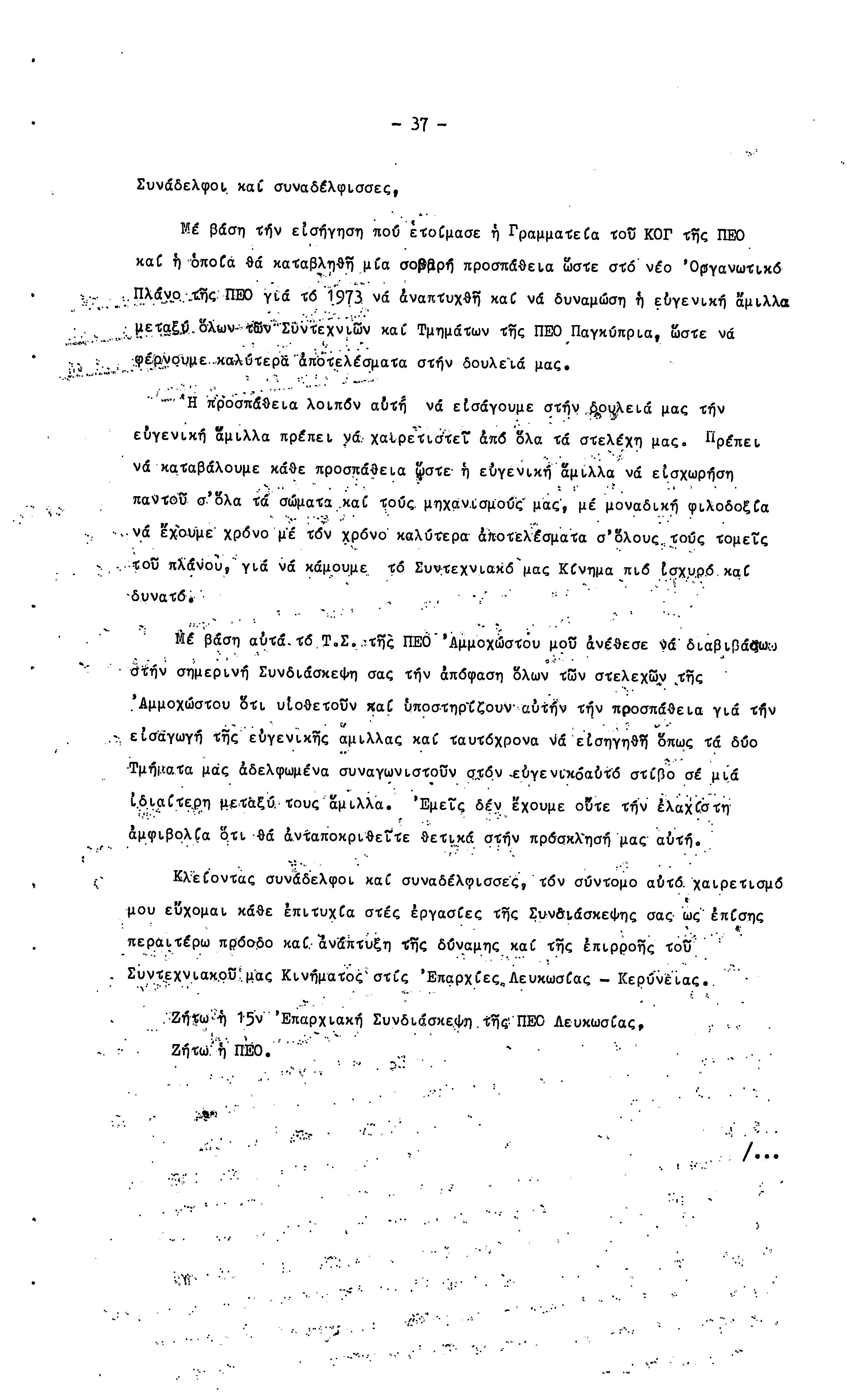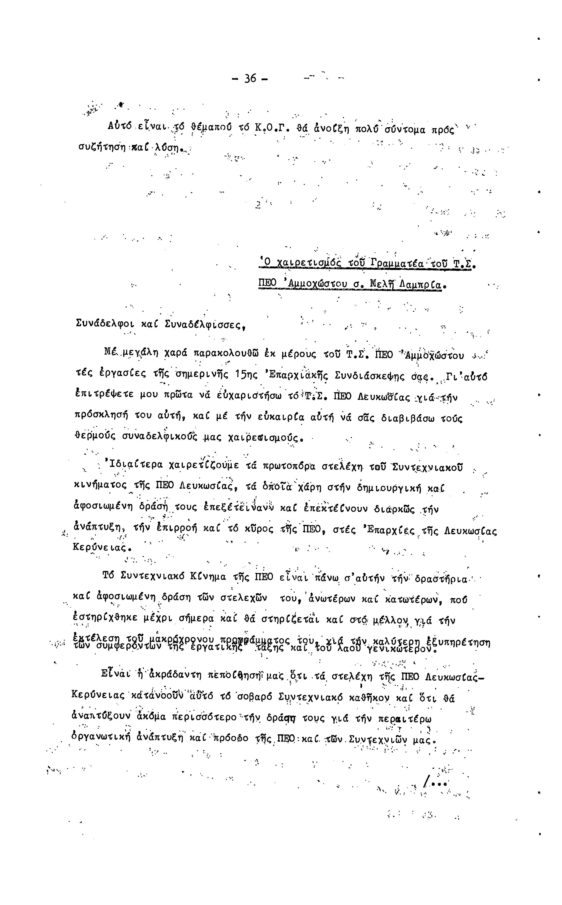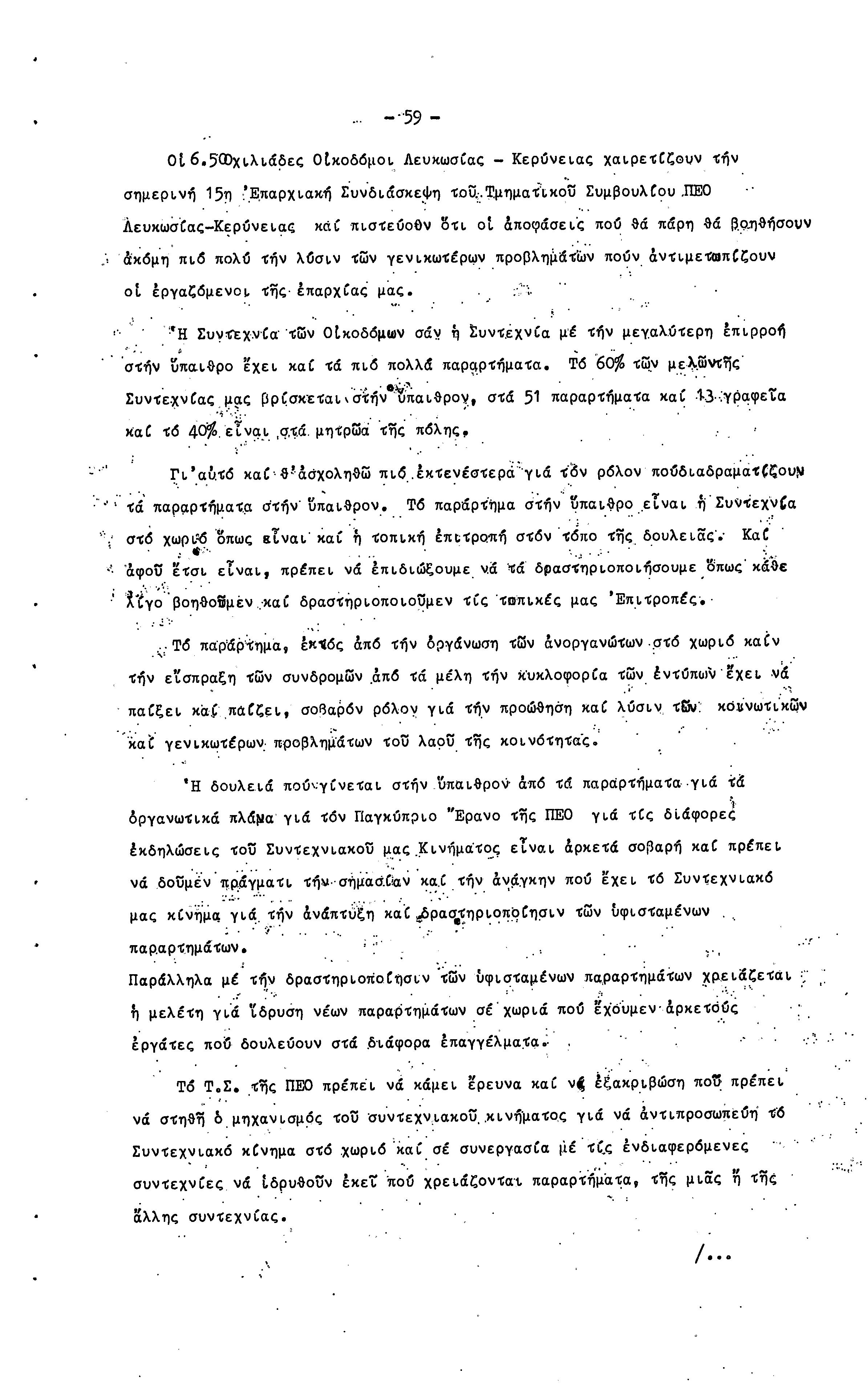 15η ΕΠΑΡΧΙΑΚΗ ΣΥΝΔΙΑΣΚΕΨΗ Τ.Σ. ΠΕΟ ΛΕΥΚΩΣΙΑΣ-ΚΕΡΥΝΕΙΑΣ,19.11.1972 ( ΠΡΑΚΤΙΚΑ)