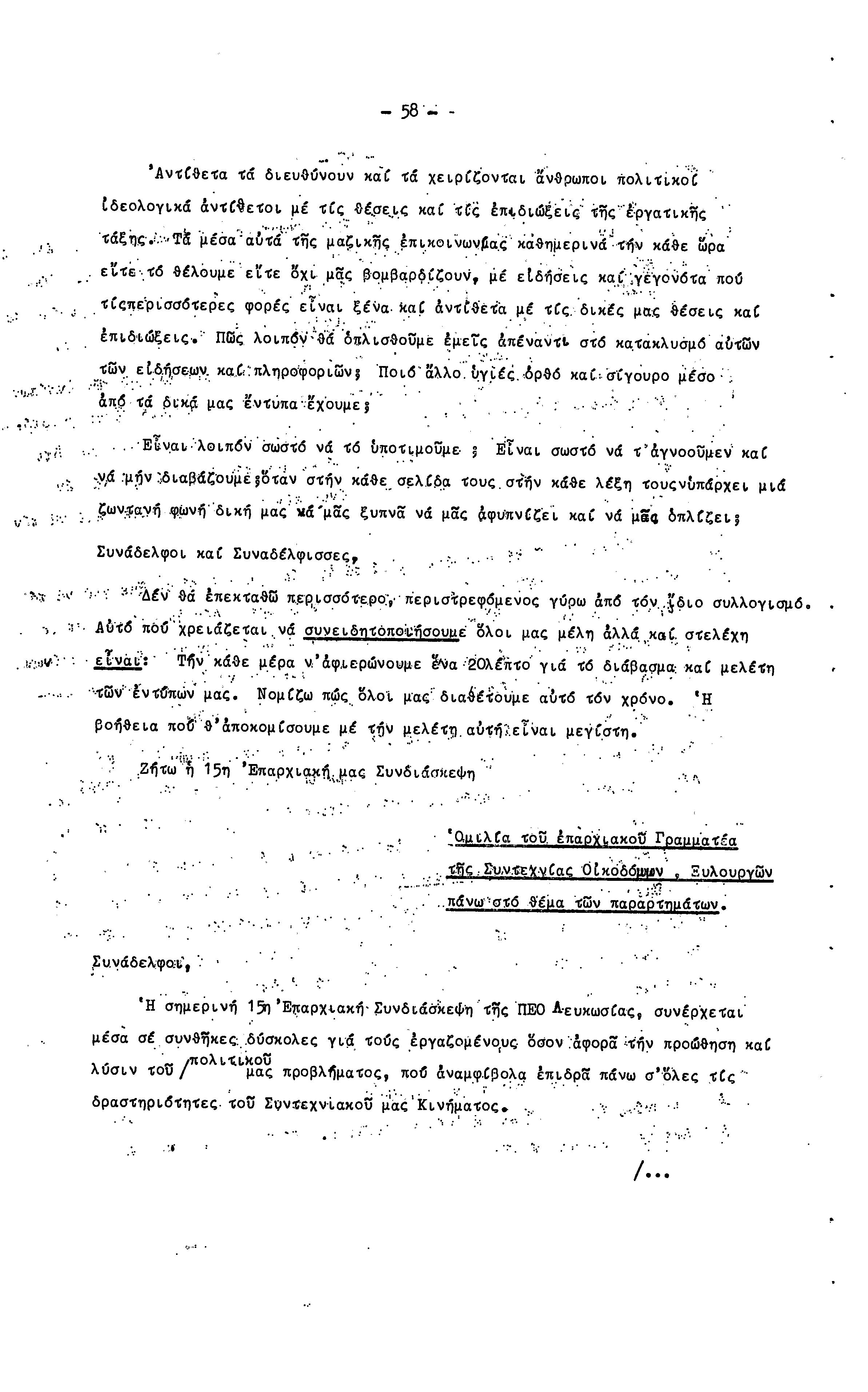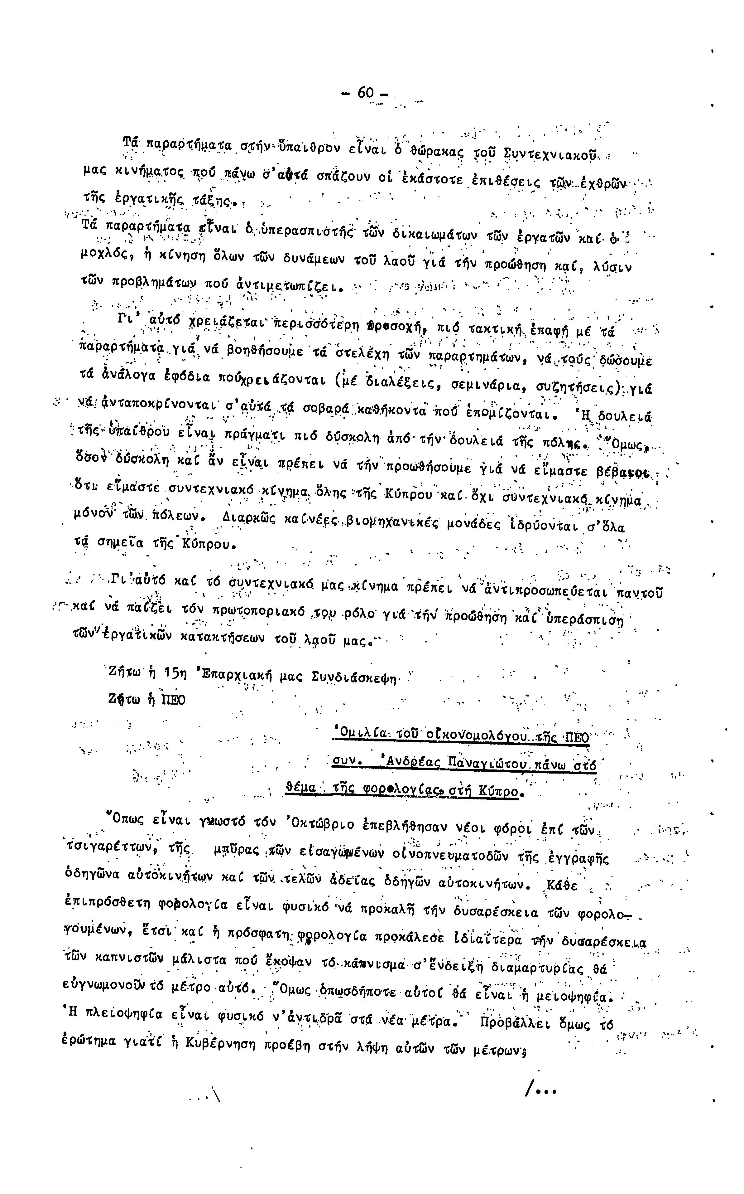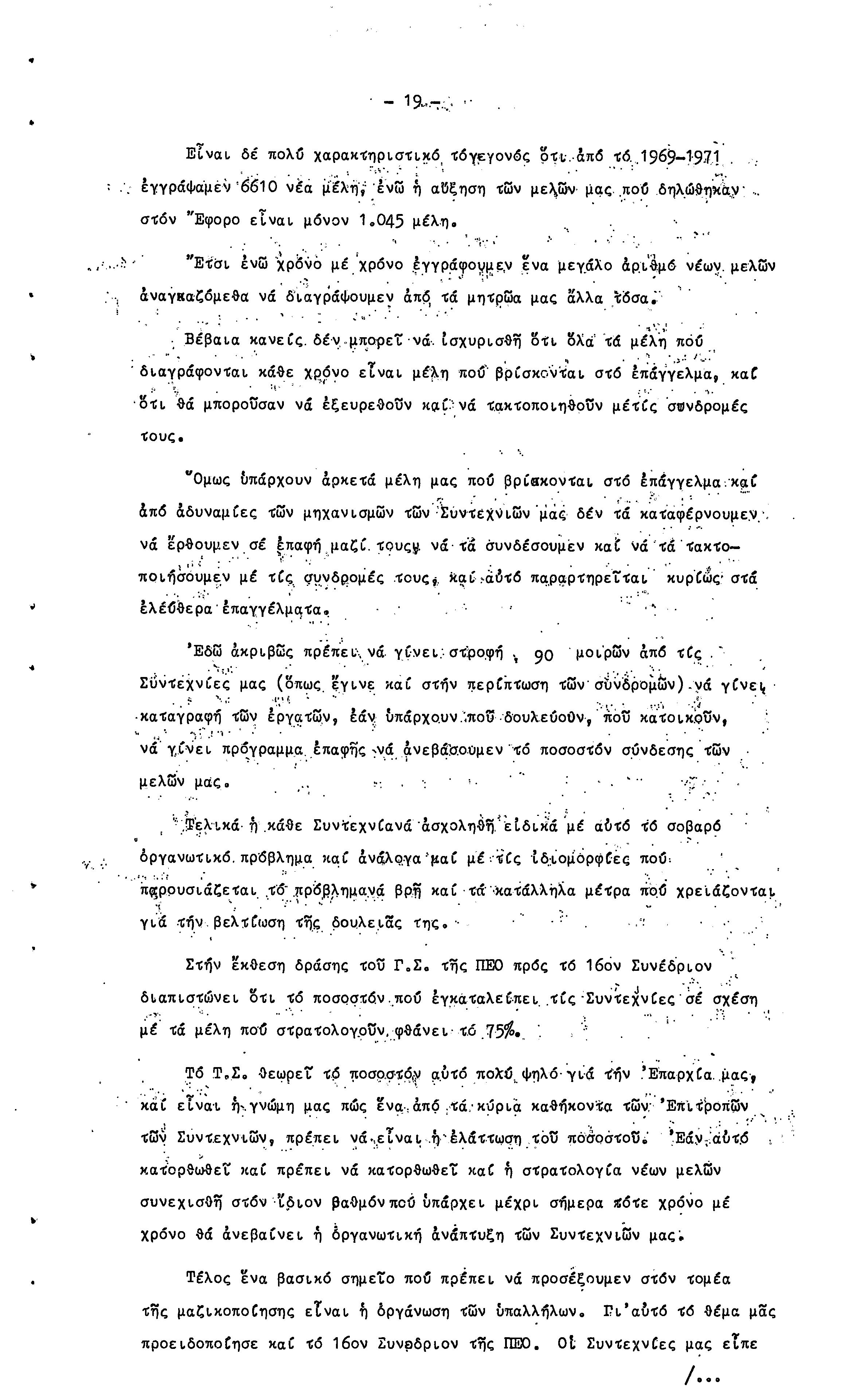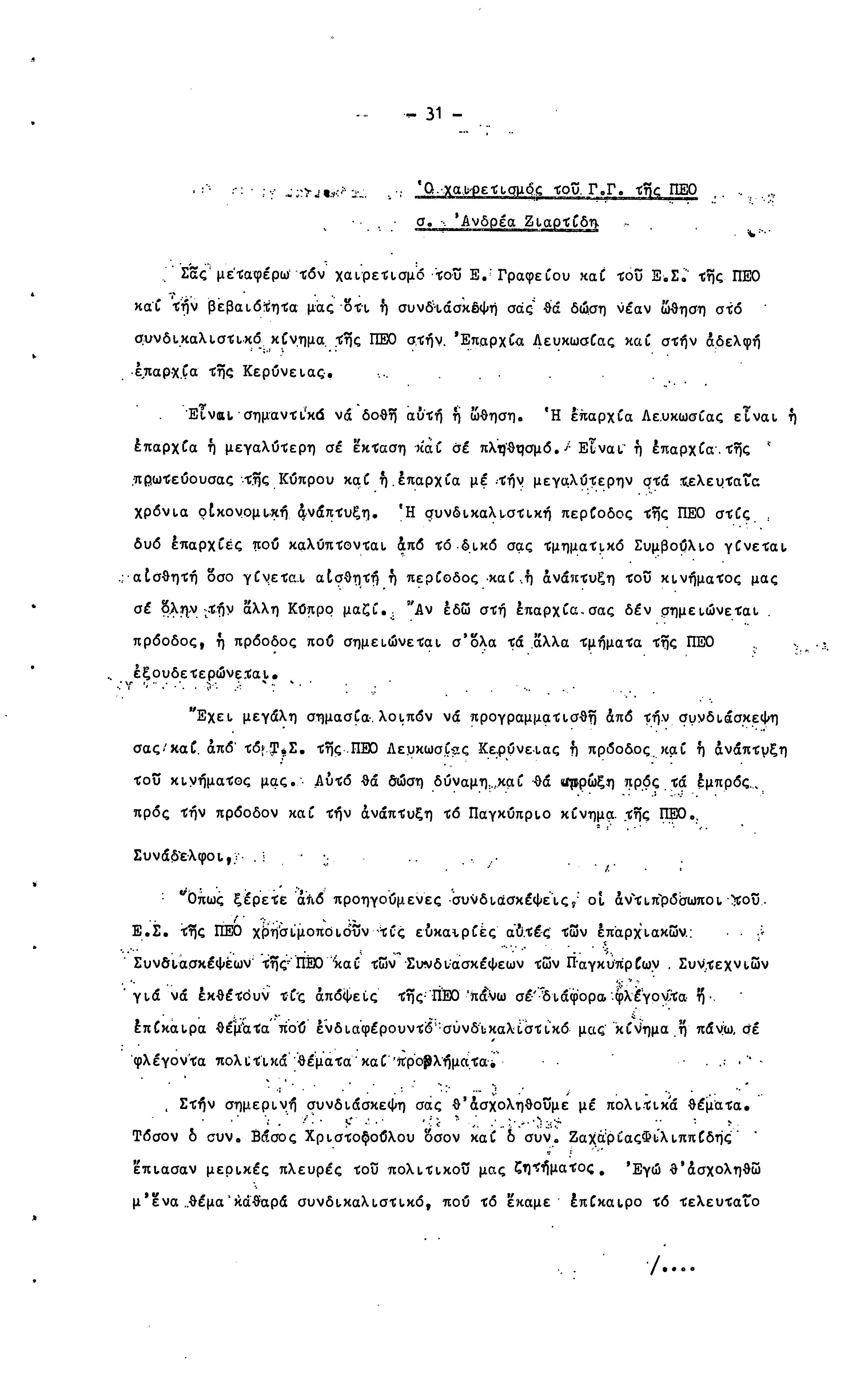 15η ΕΠΑΡΧΙΑΚΗ ΣΥΝΔΙΑΣΚΕΨΗ Τ.Σ. ΠΕΟ ΛΕΥΚΩΣΙΑΣ-ΚΕΡΥΝΕΙΑΣ,19.11.1972 ( ΠΡΑΚΤΙΚΑ)