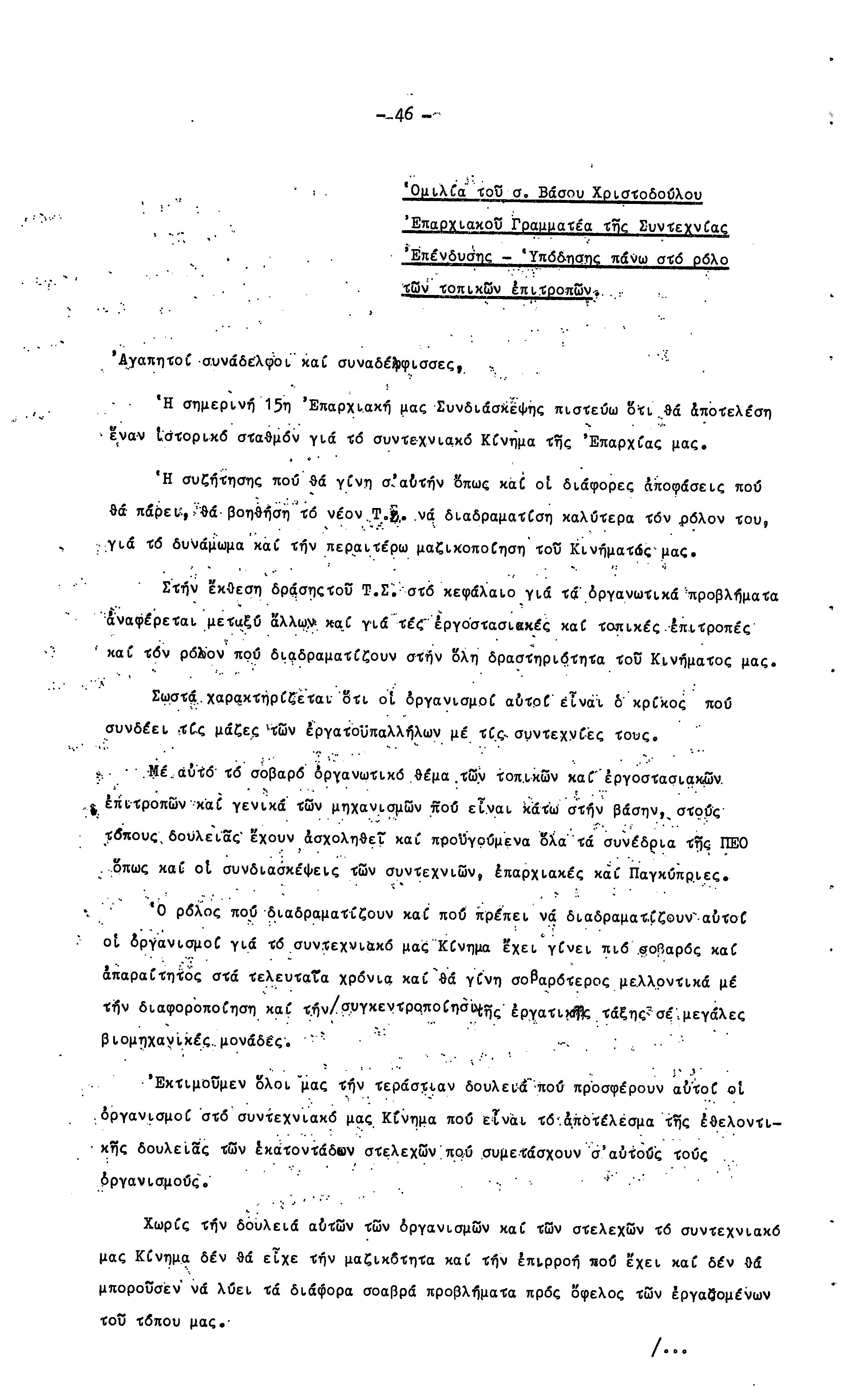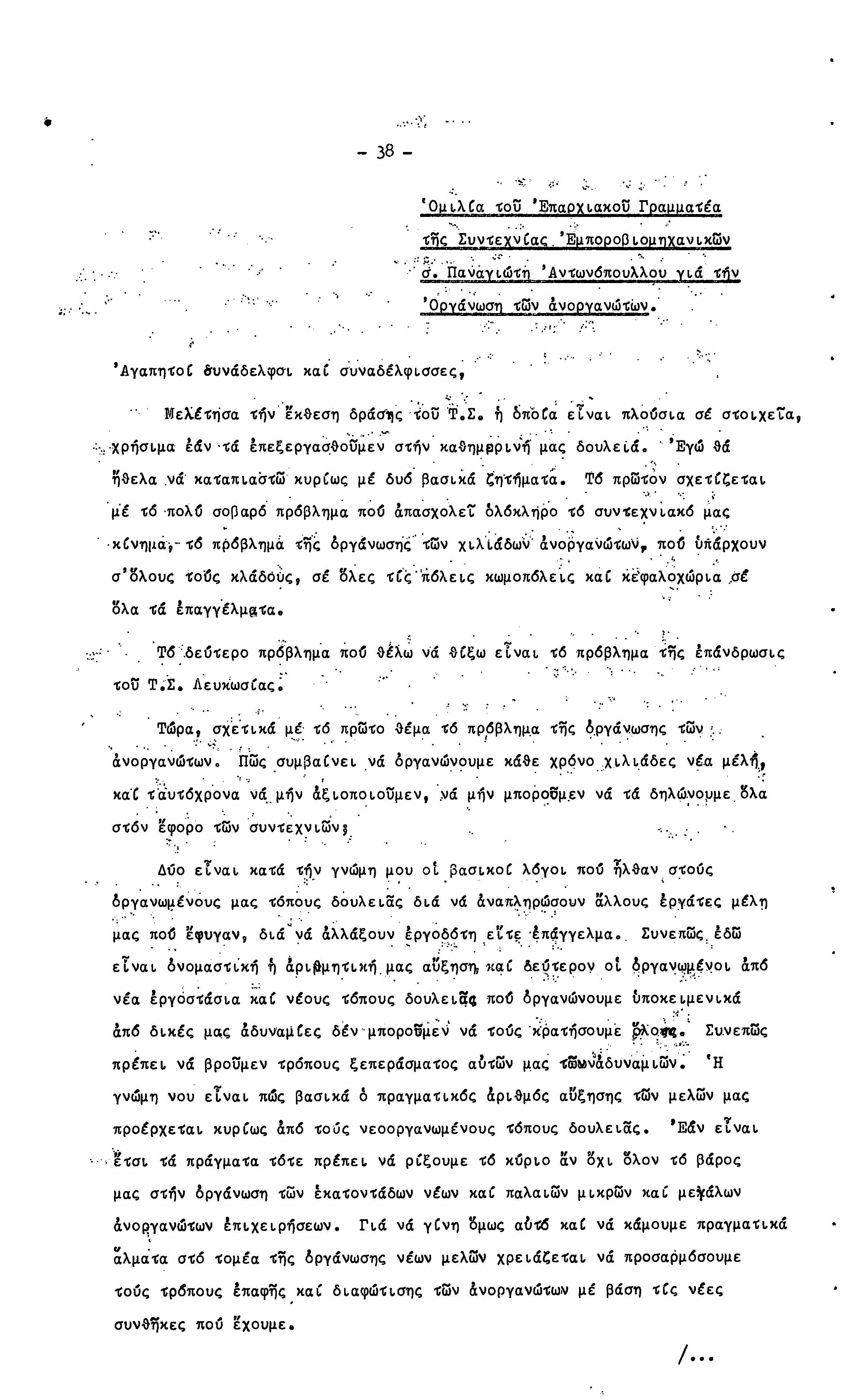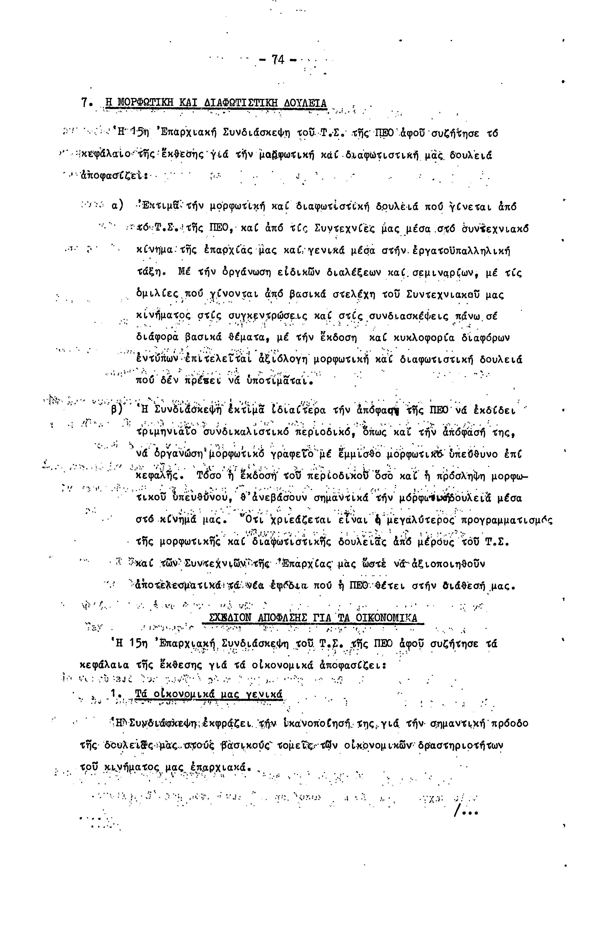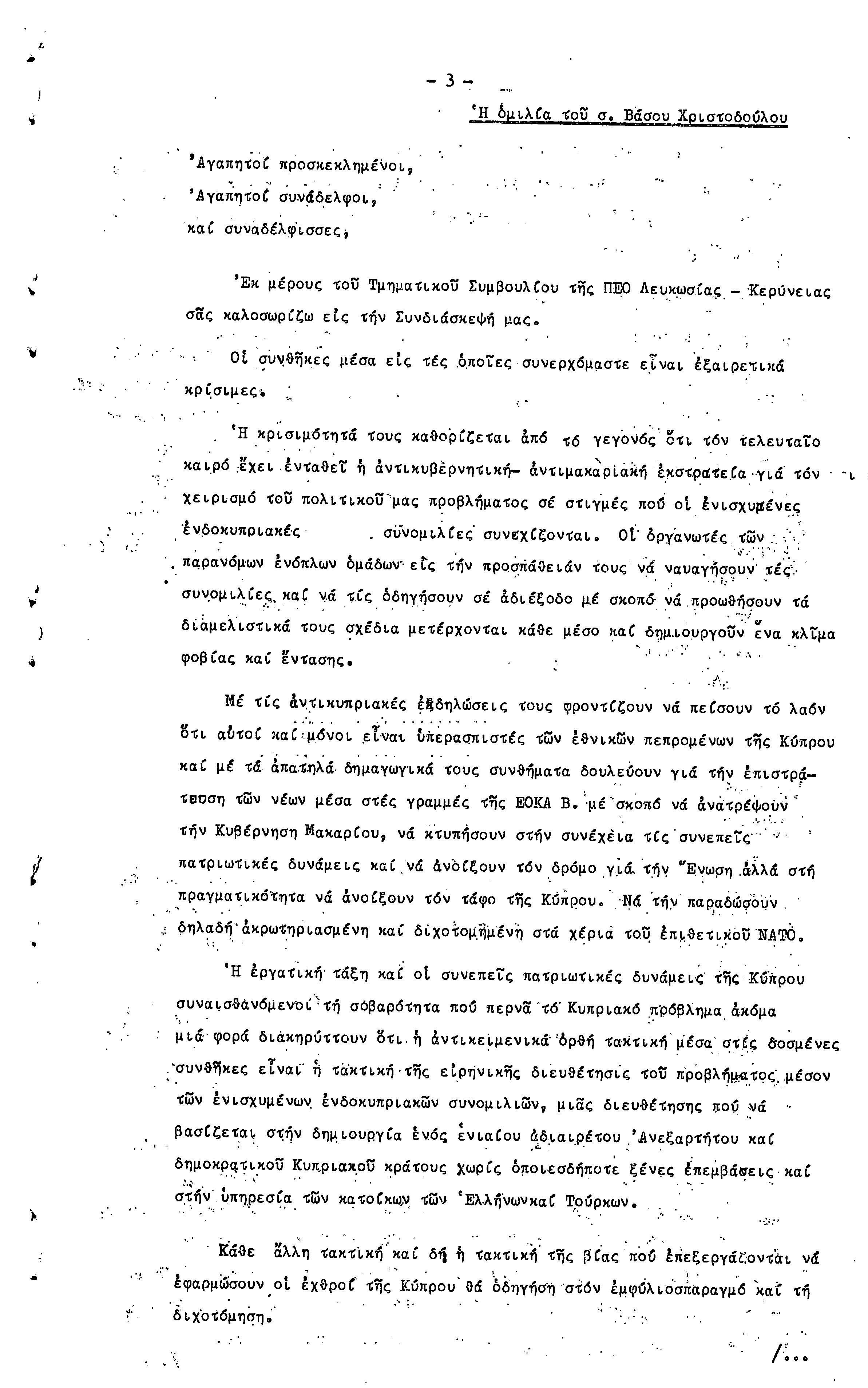 15η ΕΠΑΡΧΙΑΚΗ ΣΥΝΔΙΑΣΚΕΨΗ Τ.Σ. ΠΕΟ ΛΕΥΚΩΣΙΑΣ-ΚΕΡΥΝΕΙΑΣ,19.11.1972 ( ΠΡΑΚΤΙΚΑ)