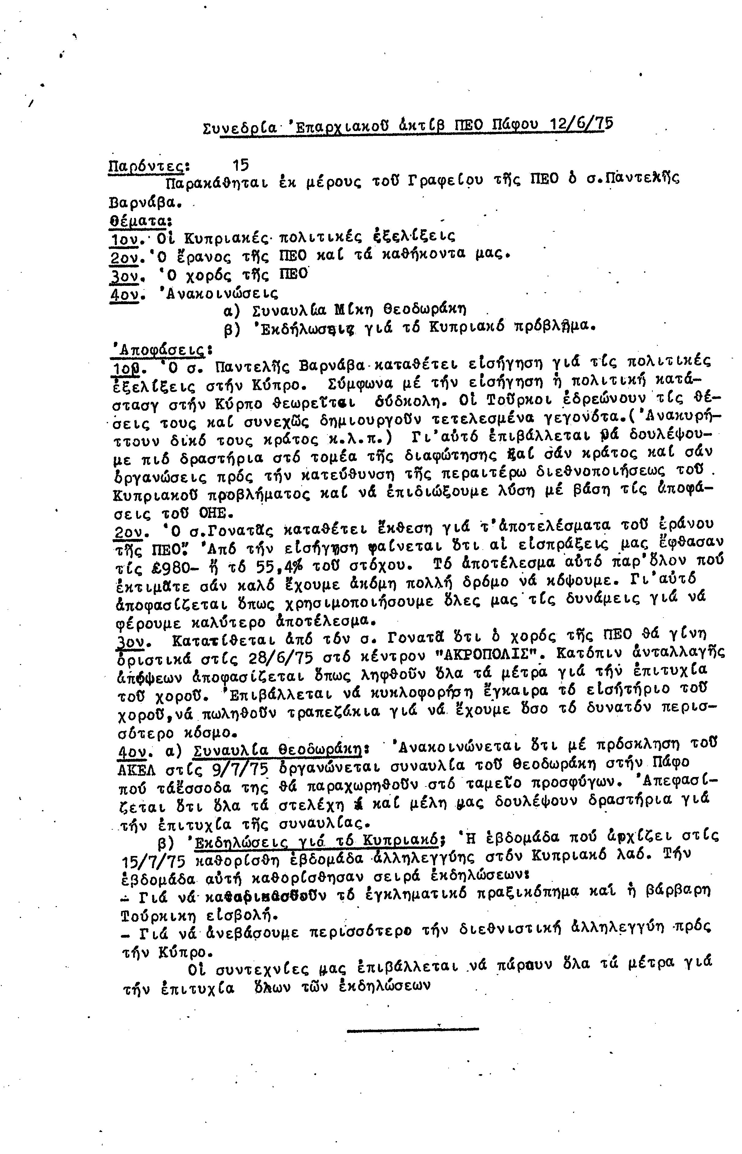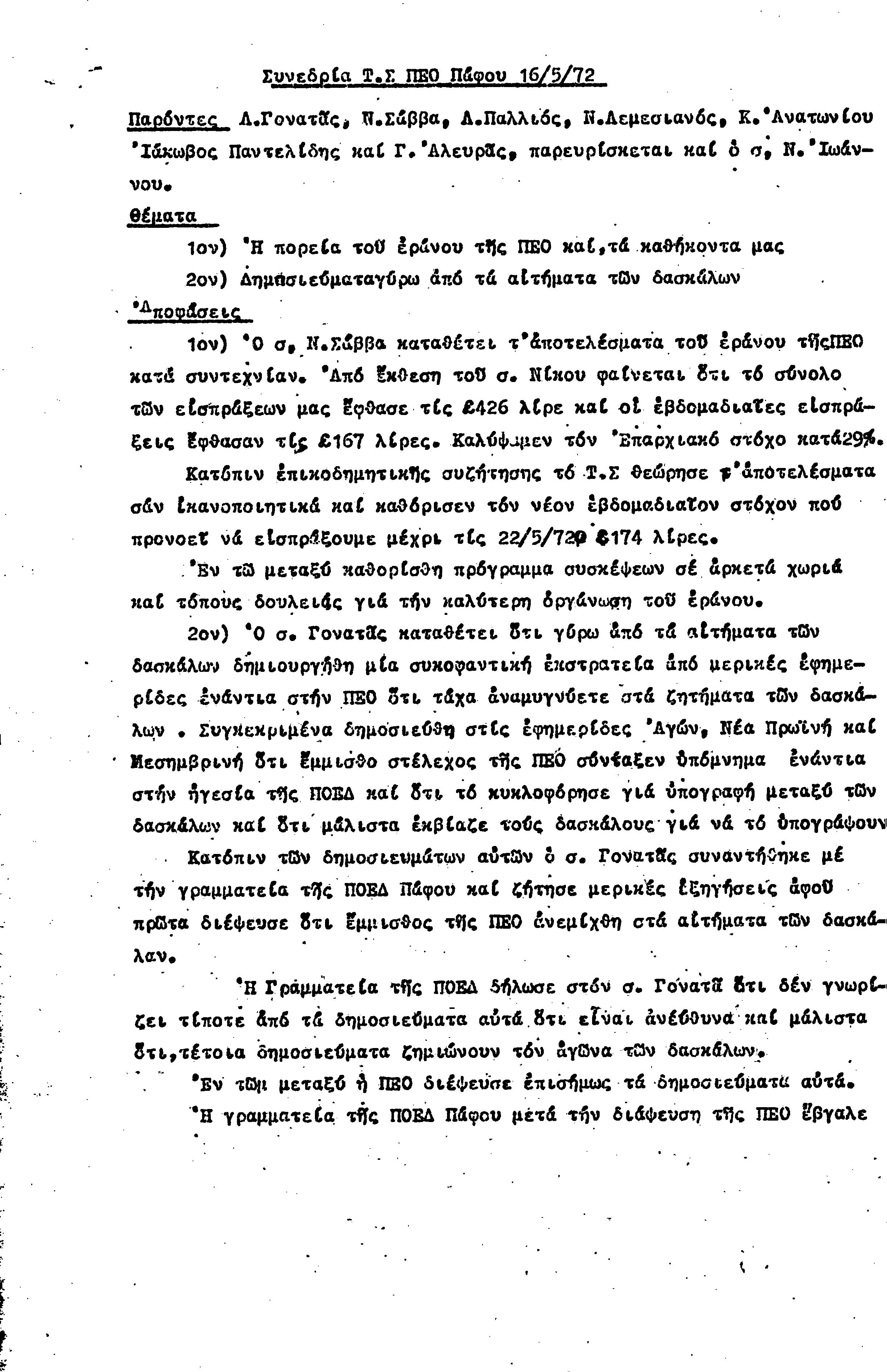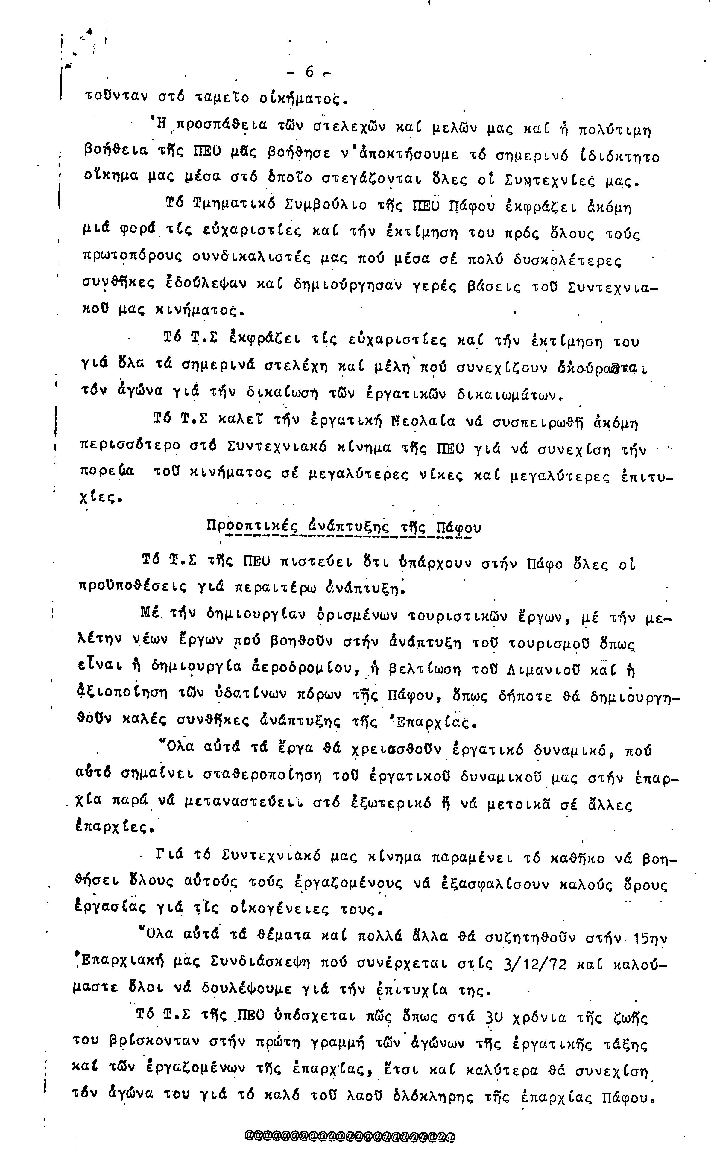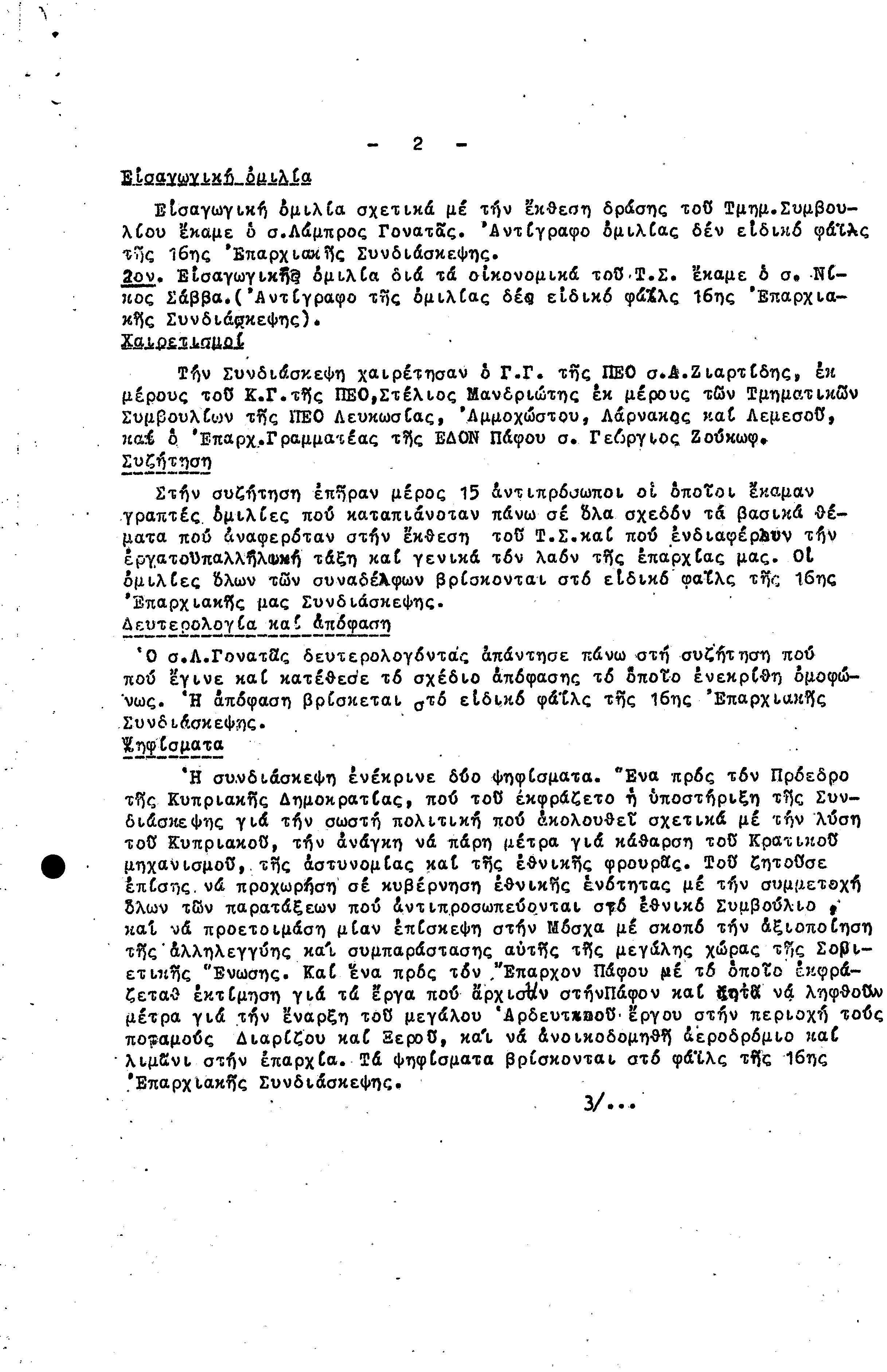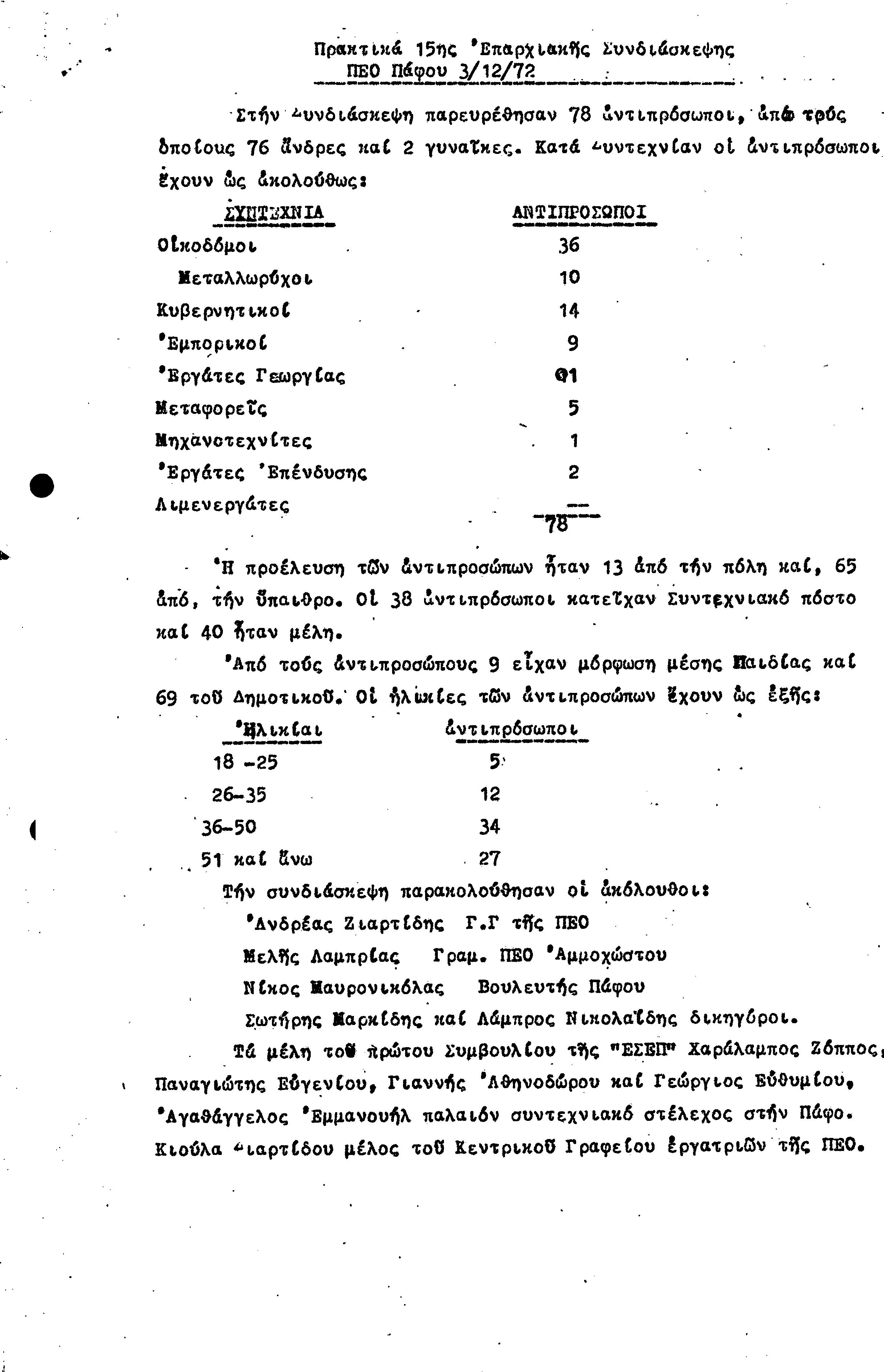 15η ΕΠΑΡΧΙΑΚΗ ΣΥΝΔΙΑΣΚΕΨΗ Τ.Σ. ΠΕΟ ΠΑΦΟΥ,3.12.1972 ( ΠΡΑΚΤΙΚΑ)