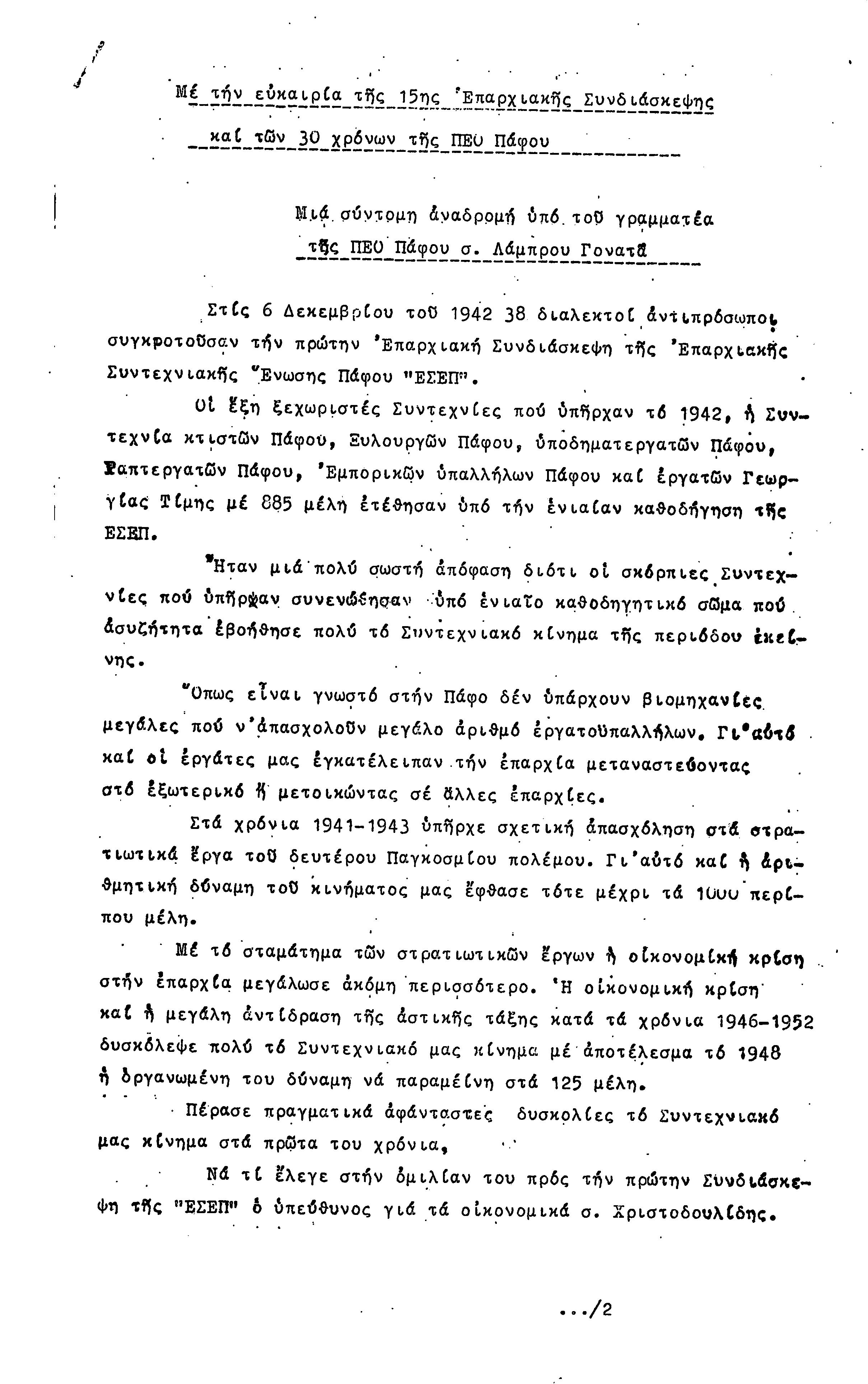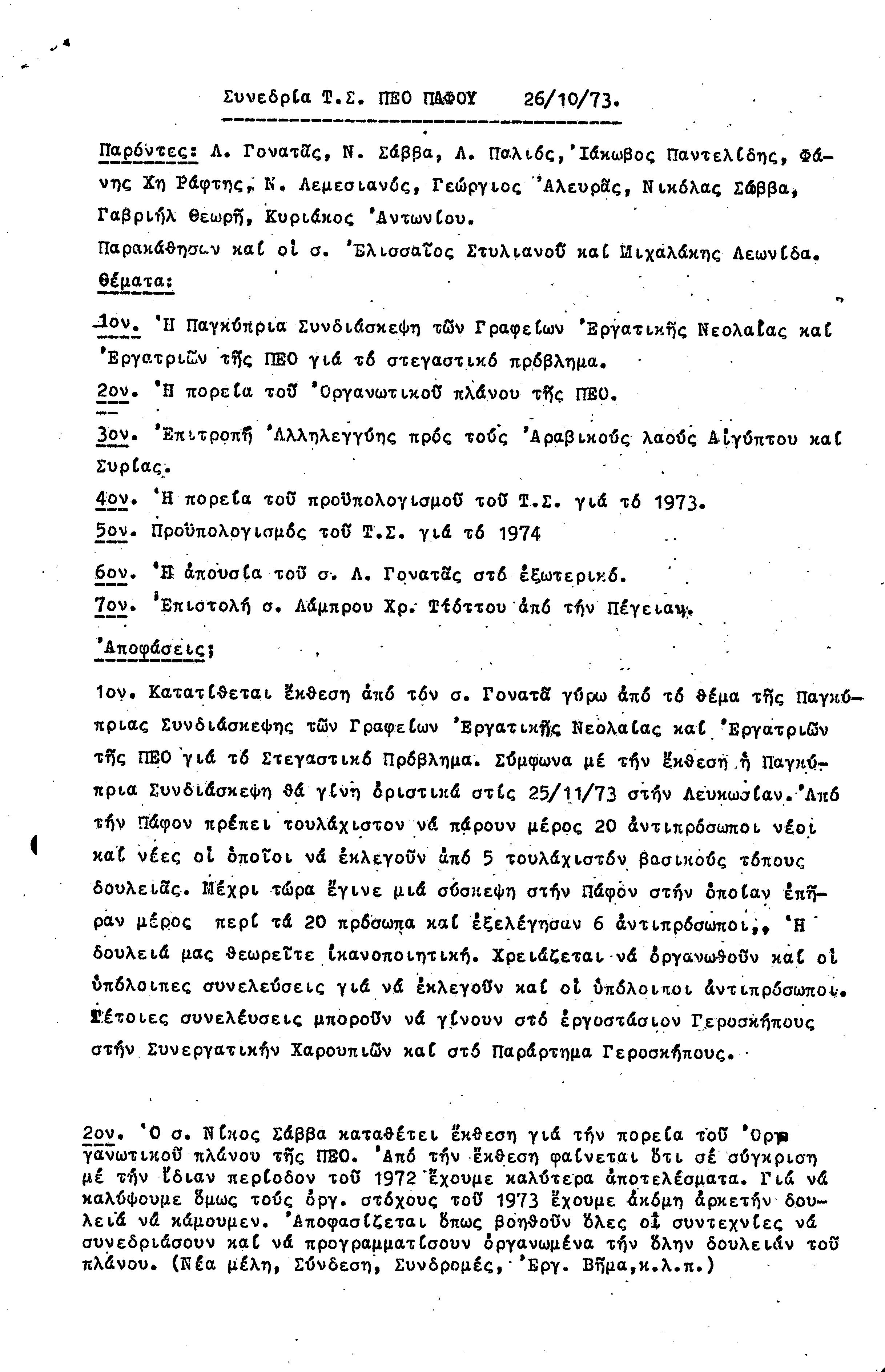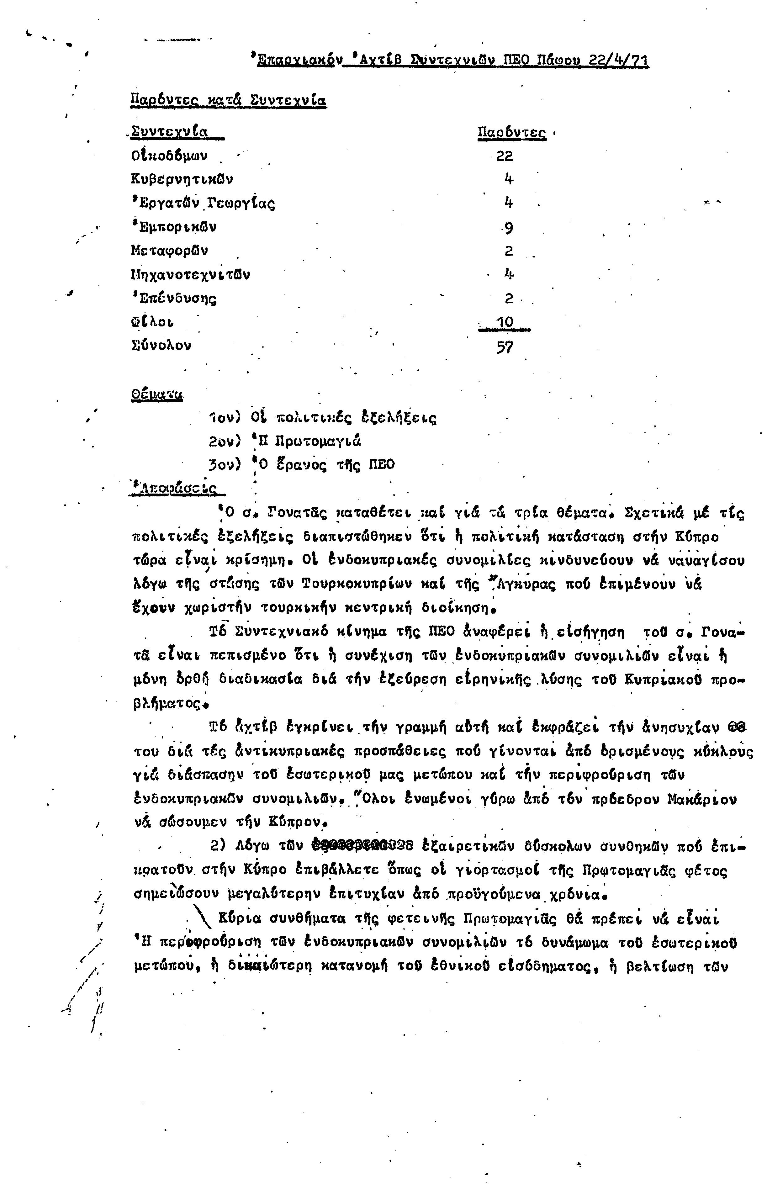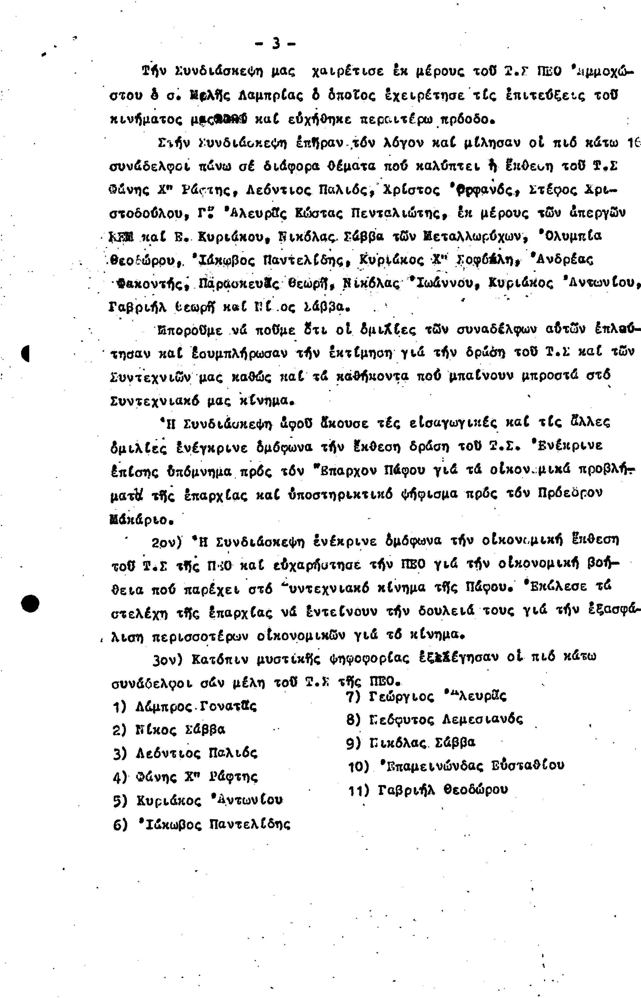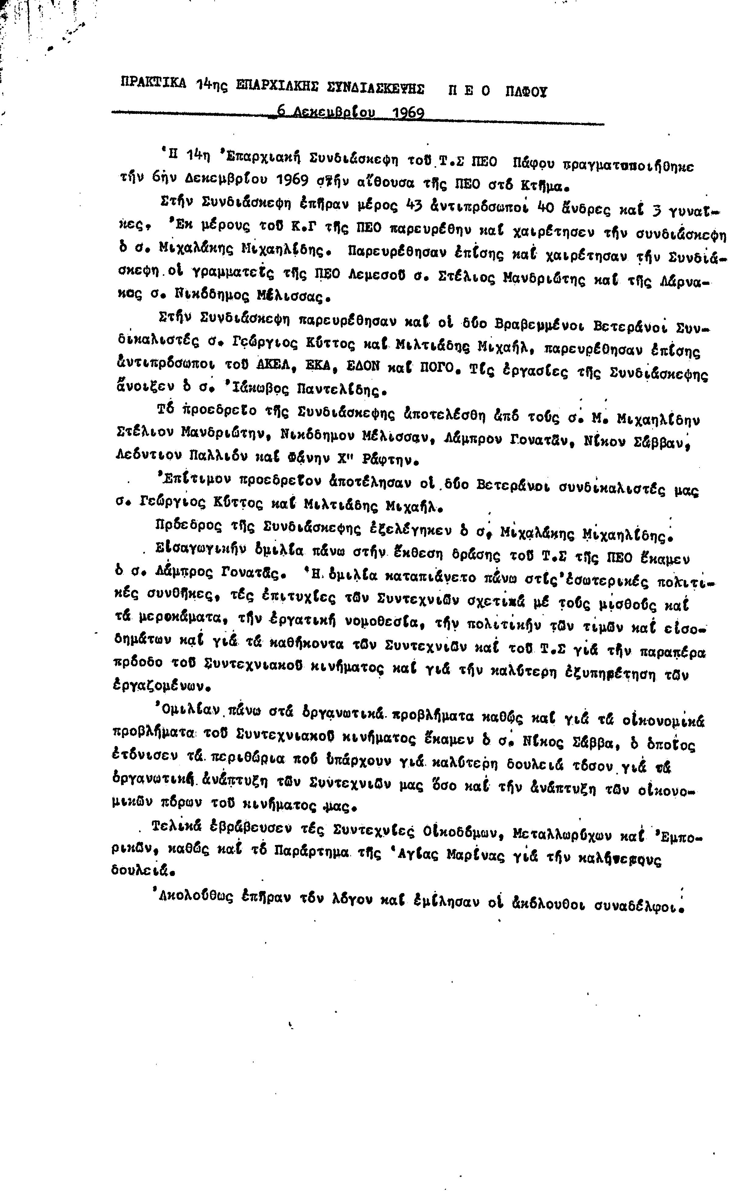 15η ΕΠΑΡΧΙΑΚΗ ΣΥΝΔΙΑΣΚΕΨΗ Τ.Σ. ΠΕΟ ΠΑΦΟΥ,3.12.1972 ( ΠΡΑΚΤΙΚΑ)