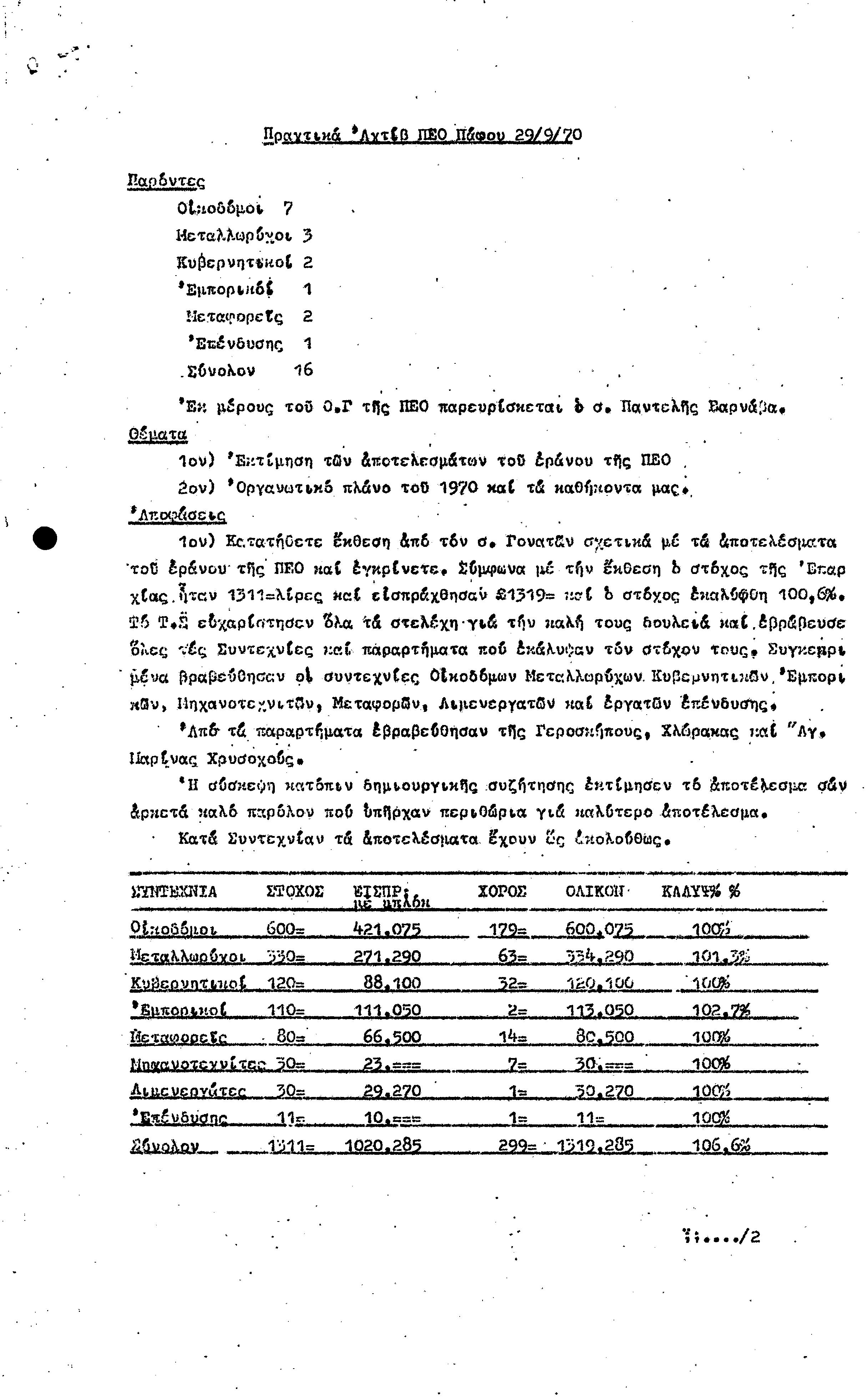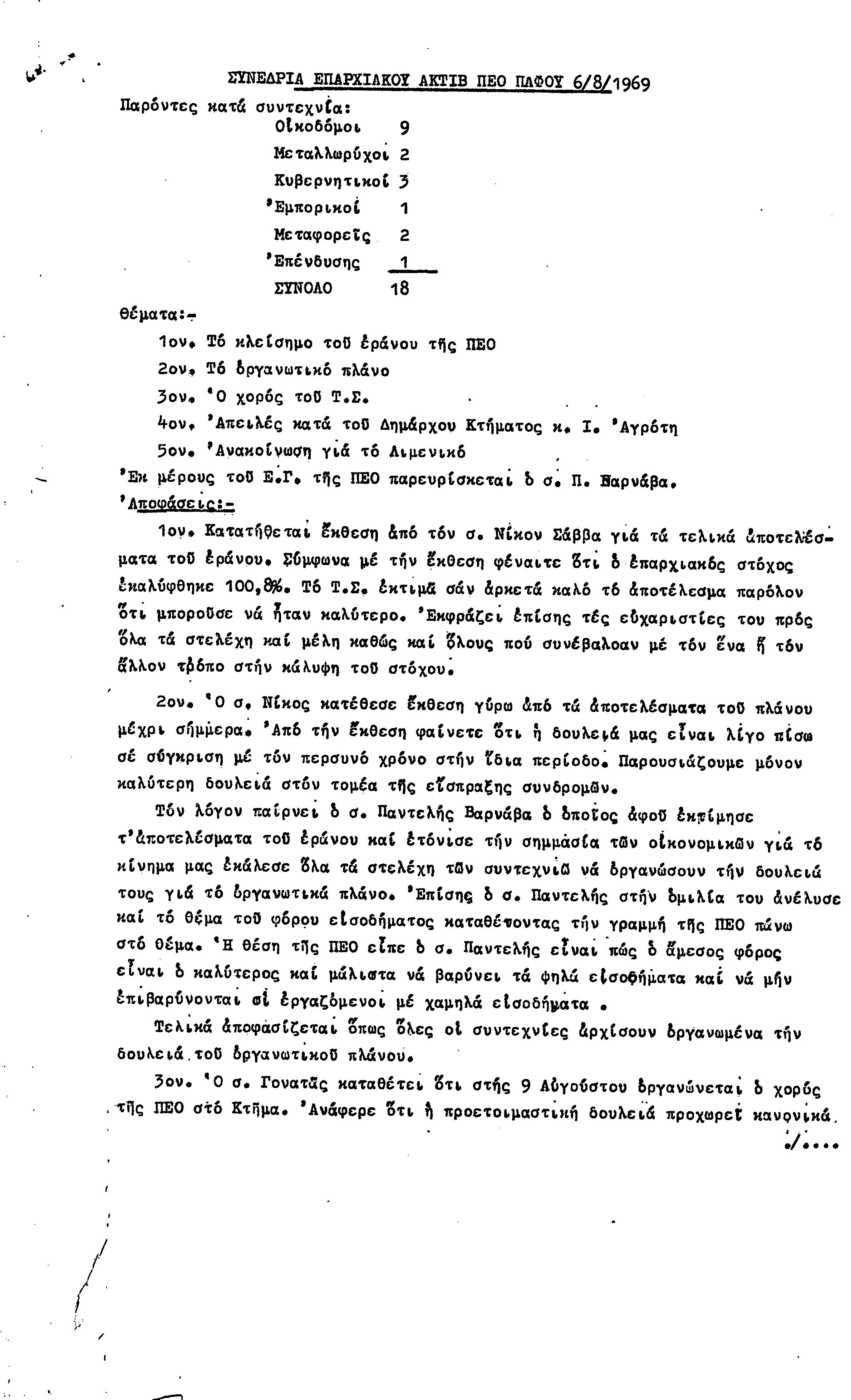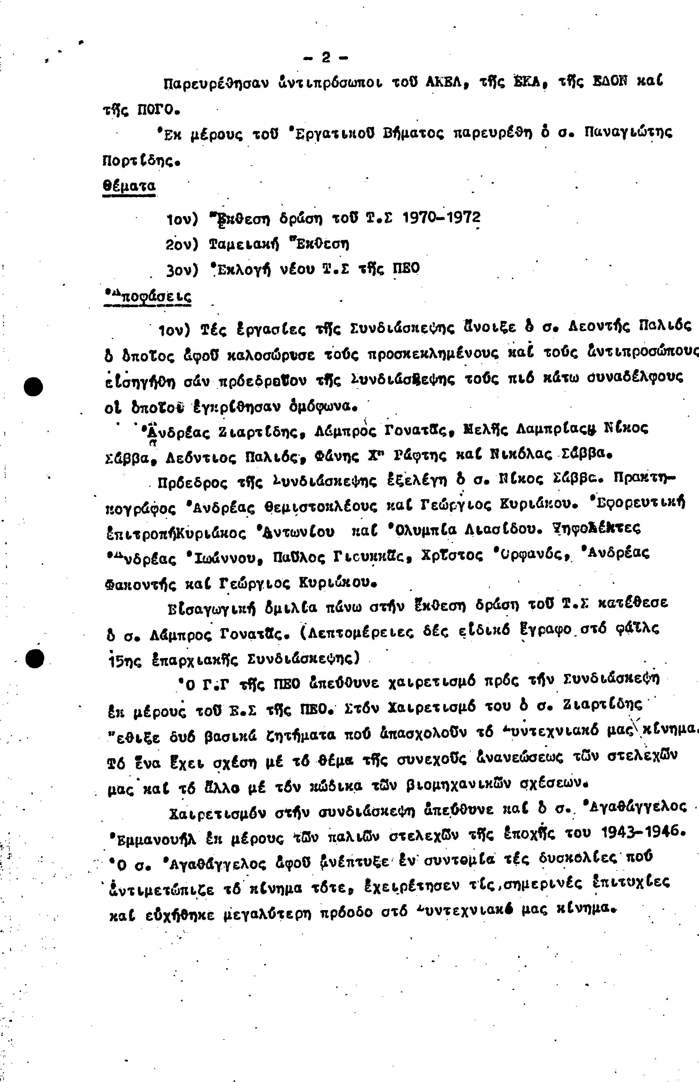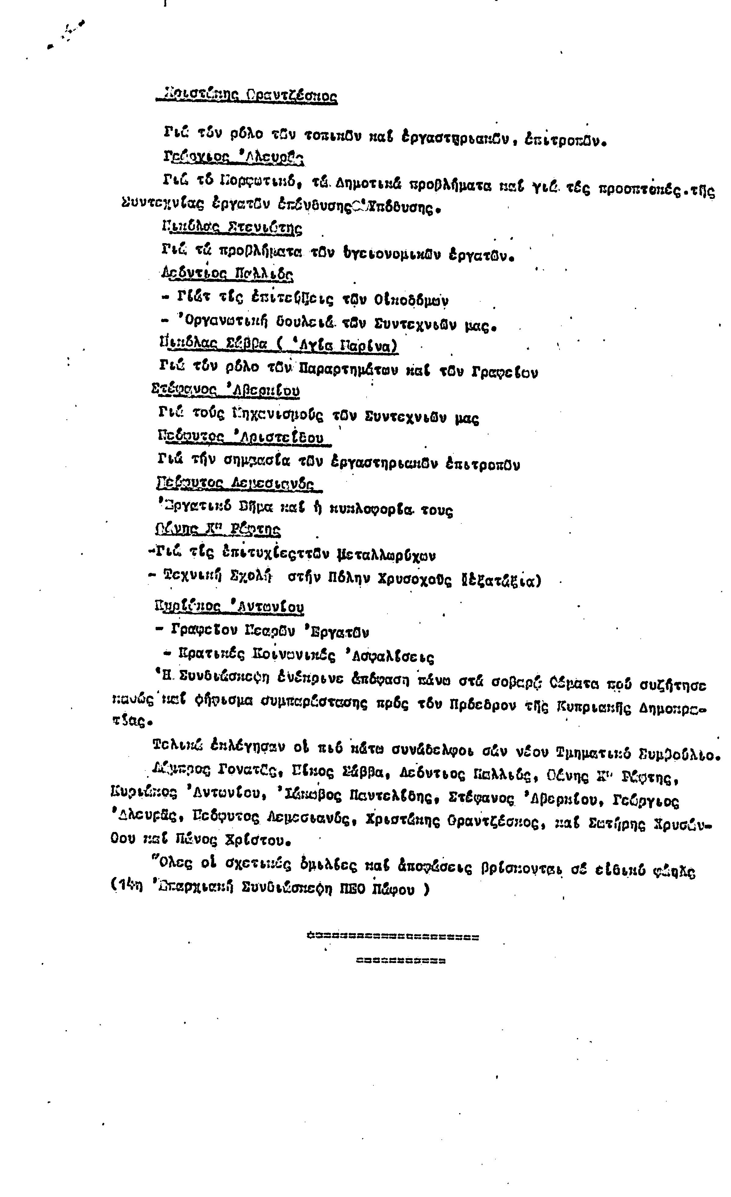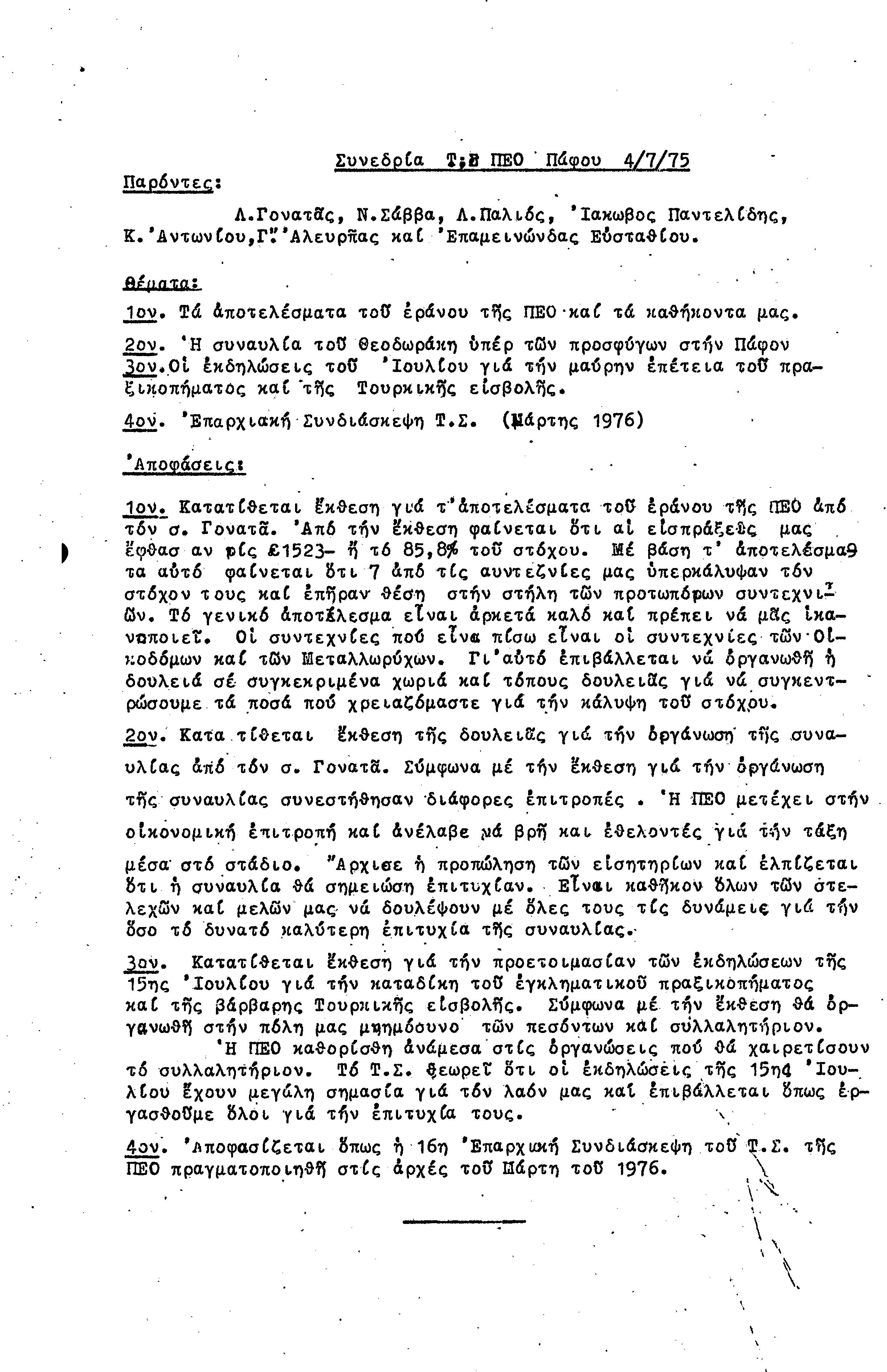 15η ΕΠΑΡΧΙΑΚΗ ΣΥΝΔΙΑΣΚΕΨΗ Τ.Σ. ΠΕΟ ΠΑΦΟΥ,3.12.1972 ( ΠΡΑΚΤΙΚΑ)