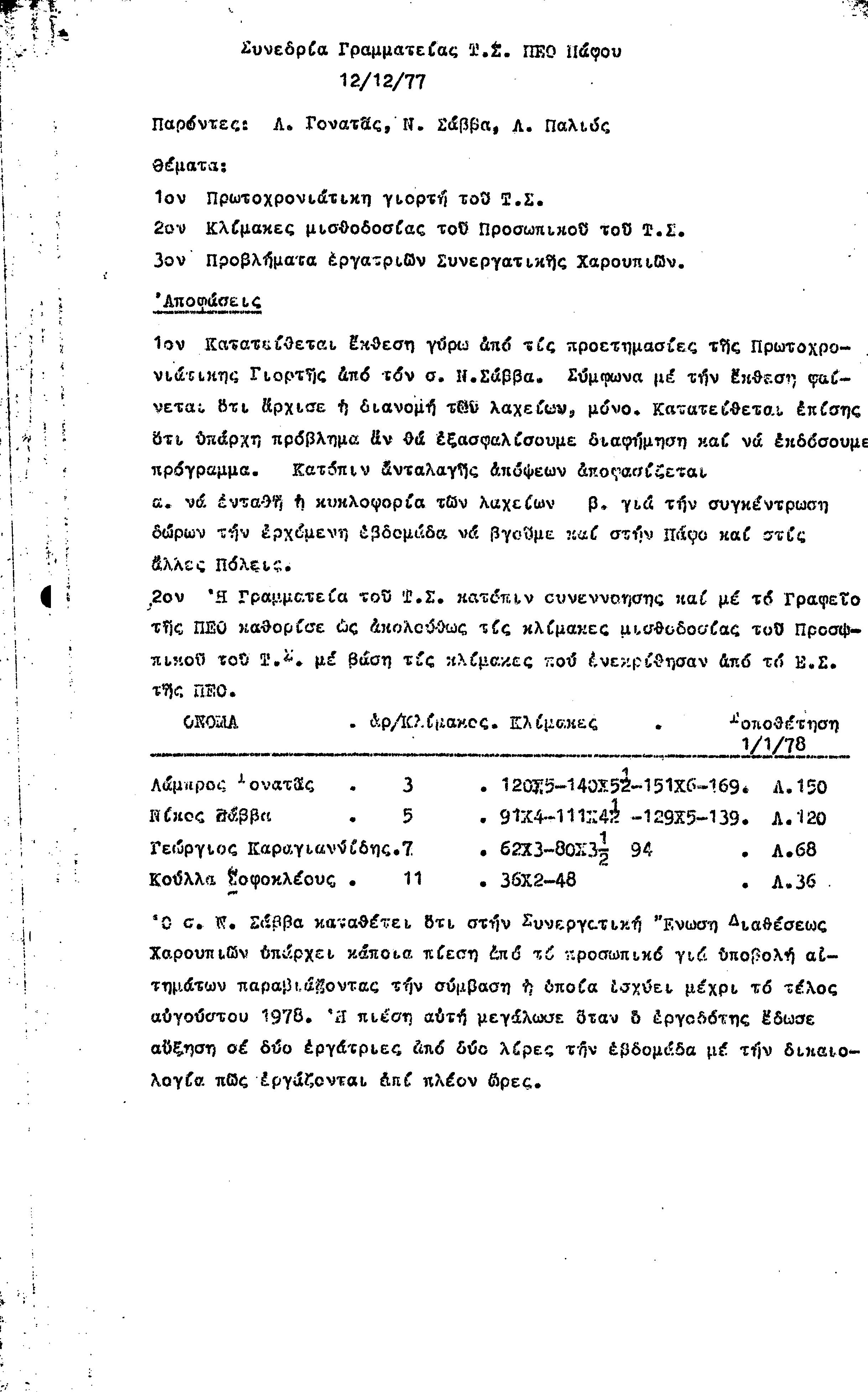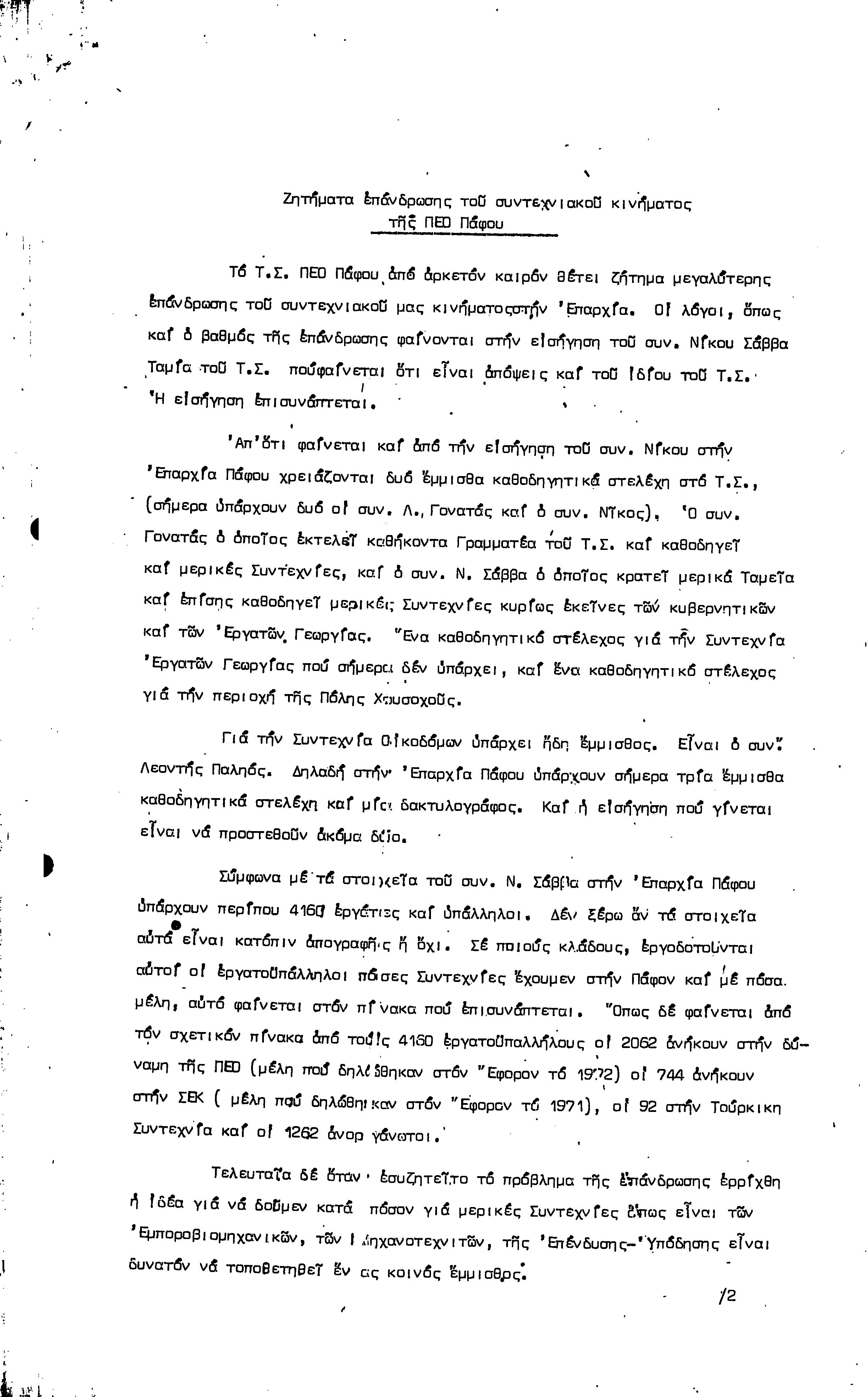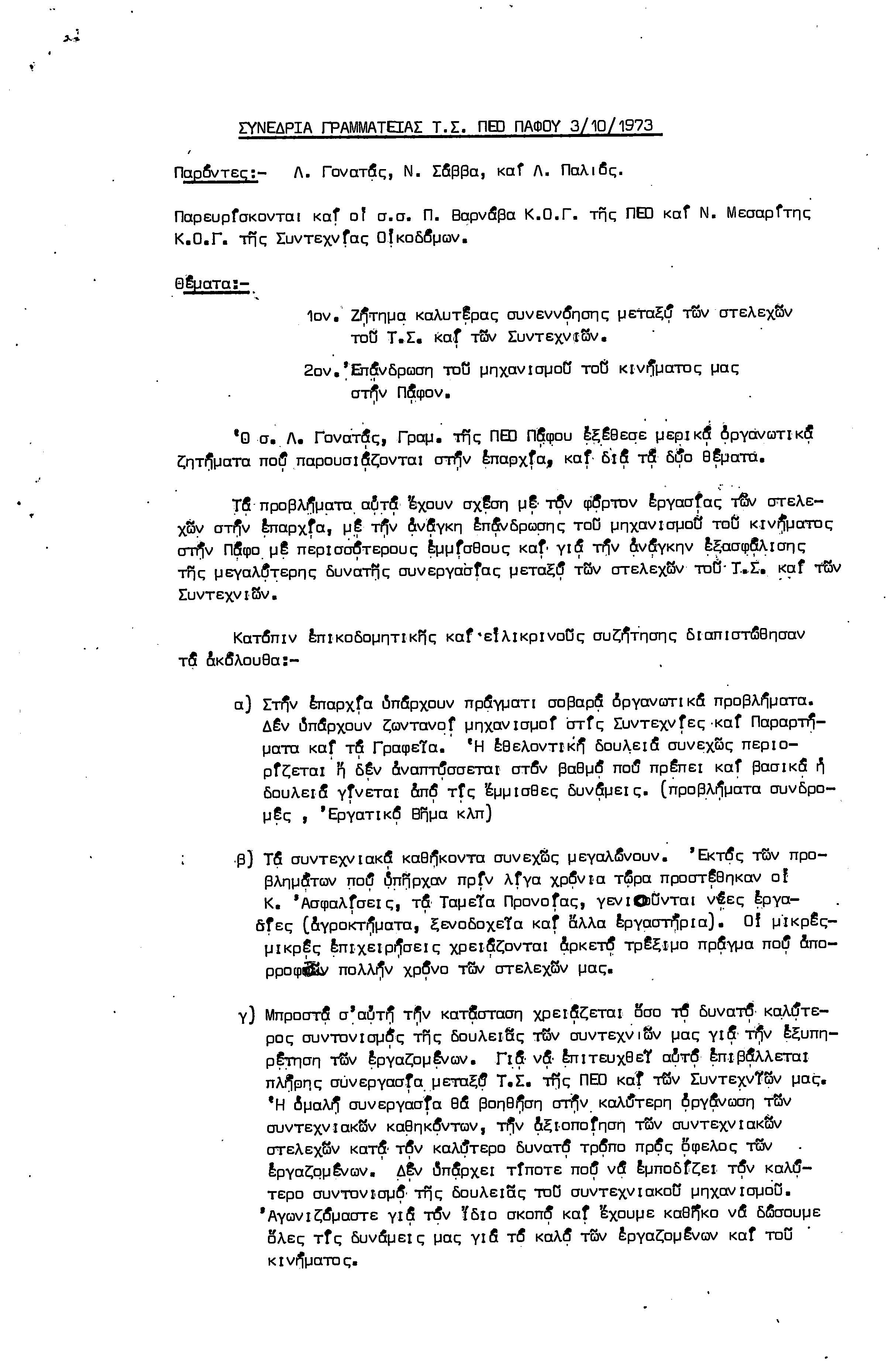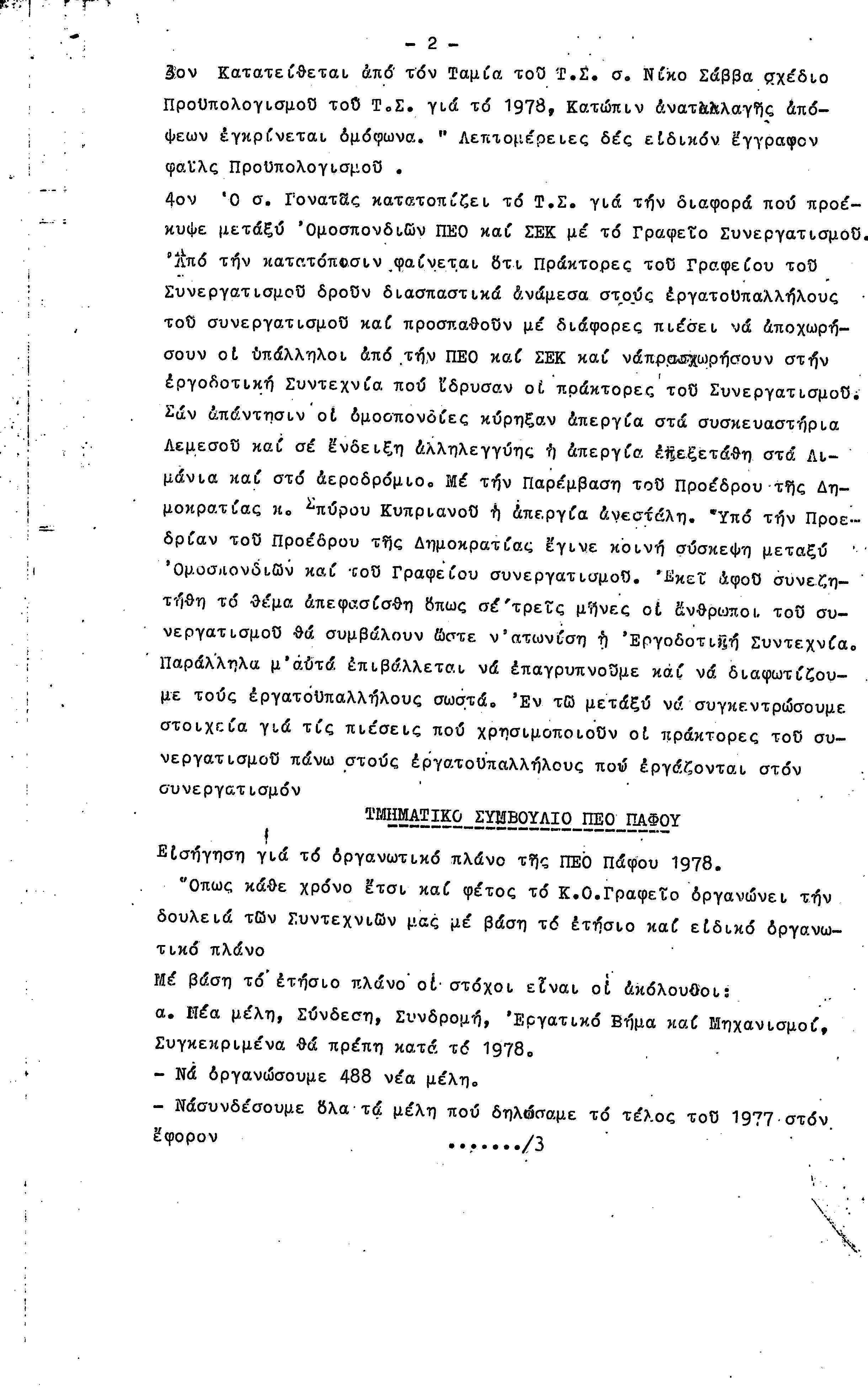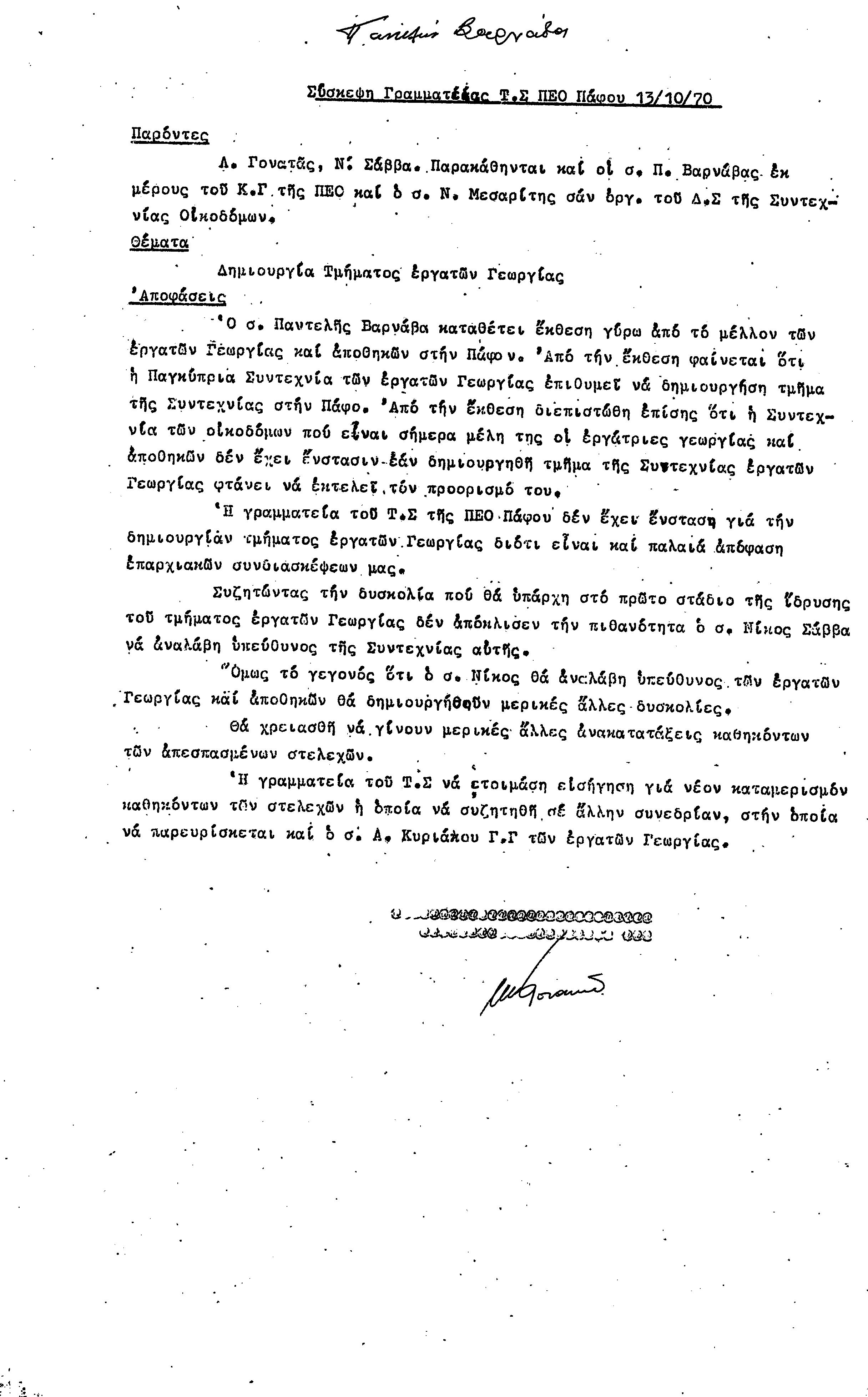 15η ΕΠΑΡΧΙΑΚΗ ΣΥΝΔΙΑΣΚΕΨΗ Τ.Σ. ΠΕΟ ΠΑΦΟΥ,3.12.1972 ( ΠΡΑΚΤΙΚΑ)