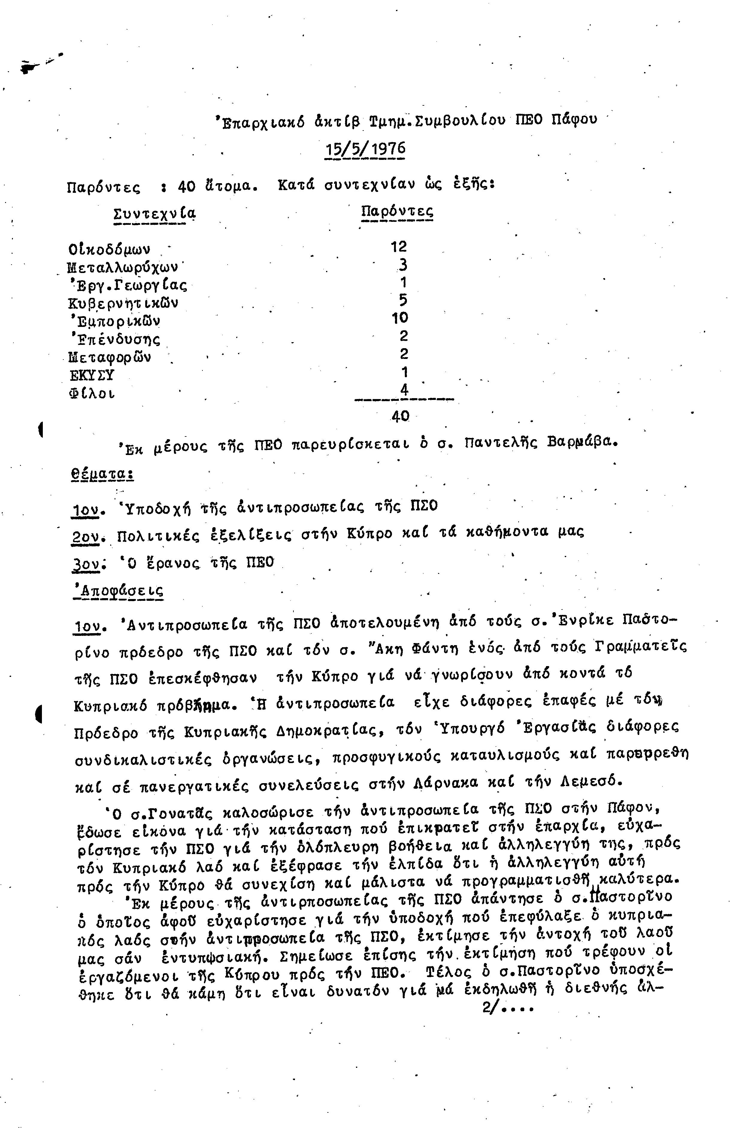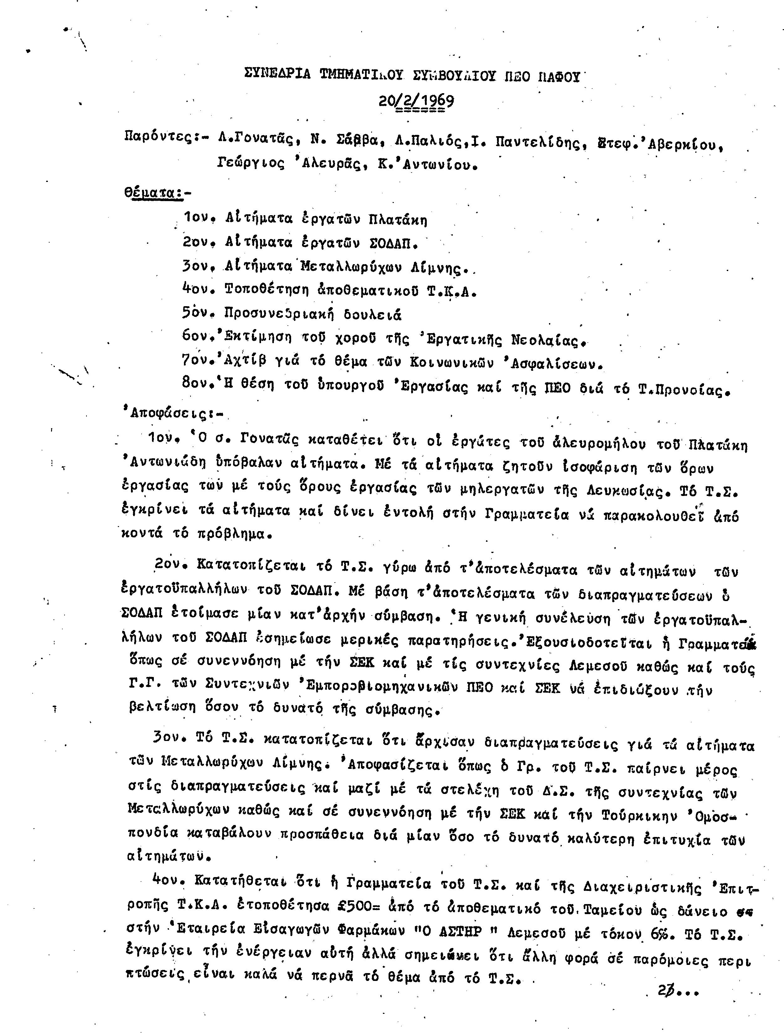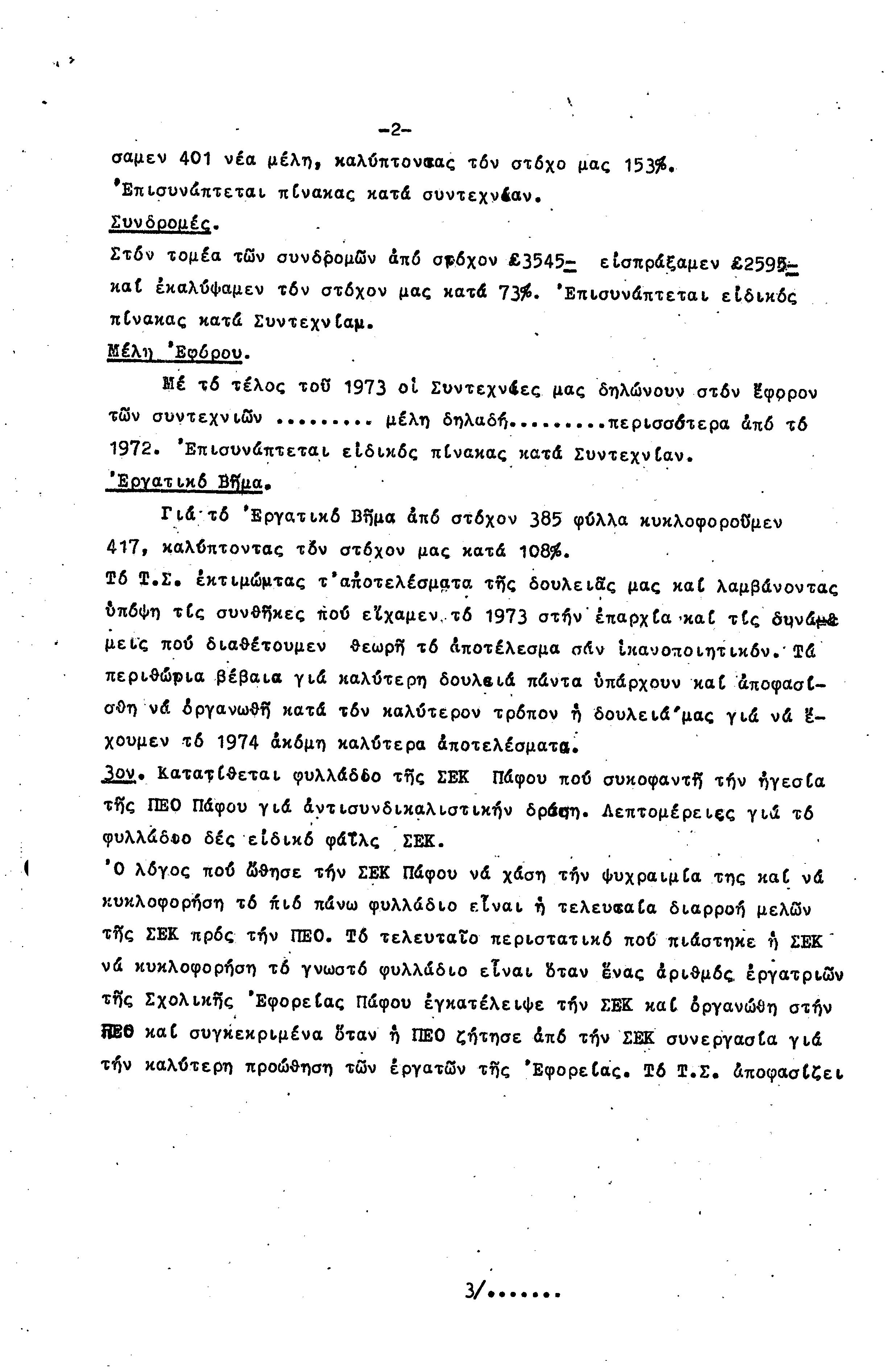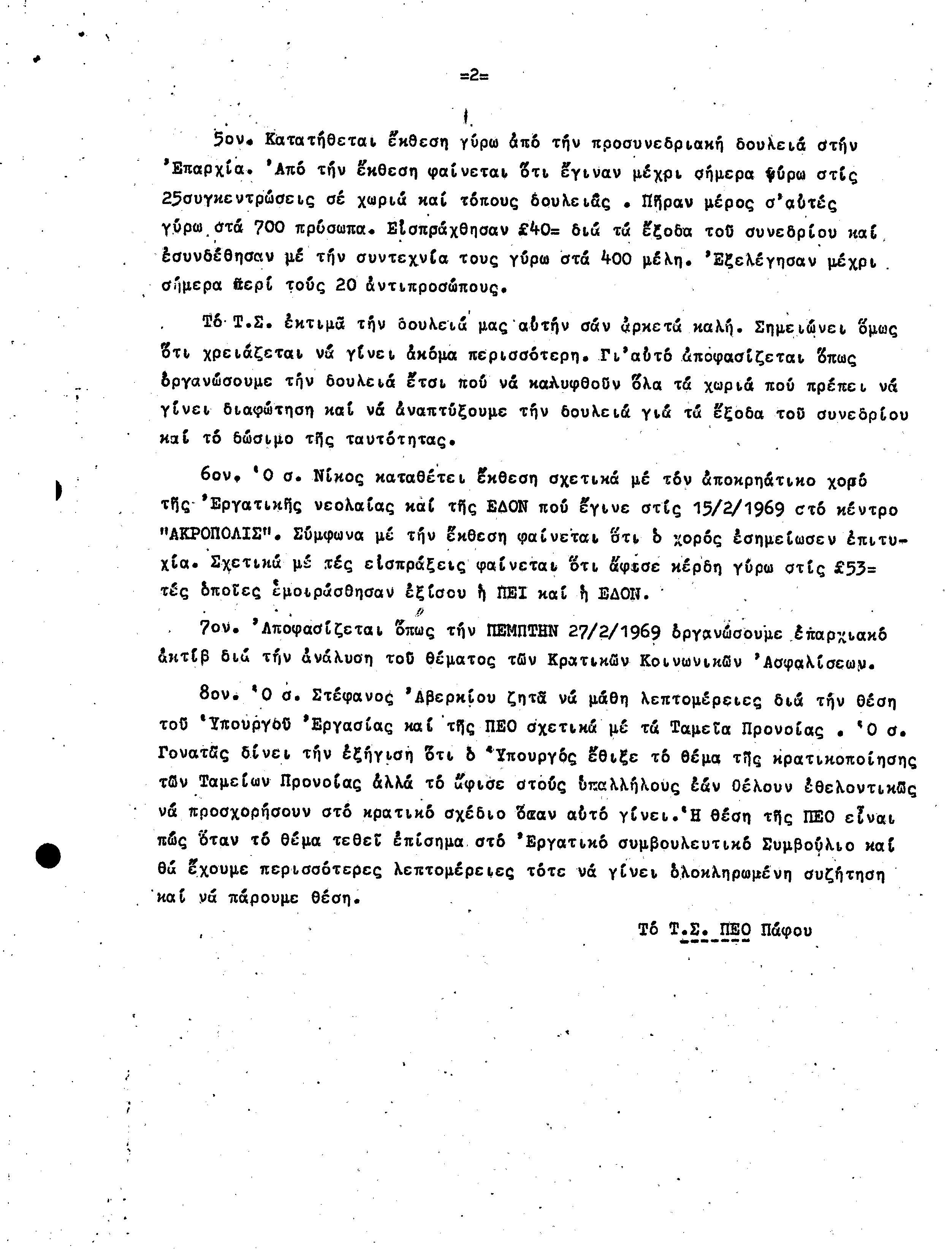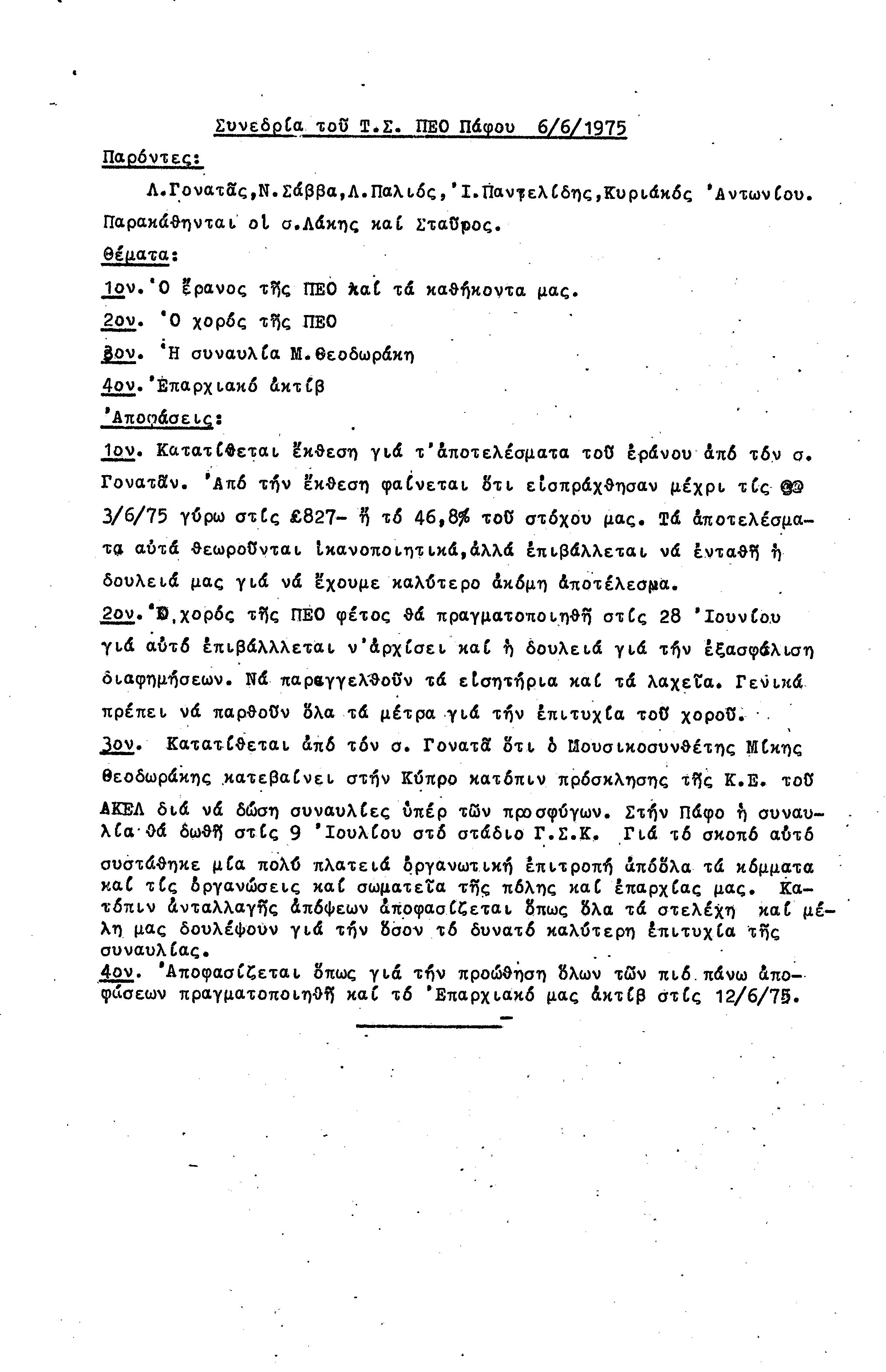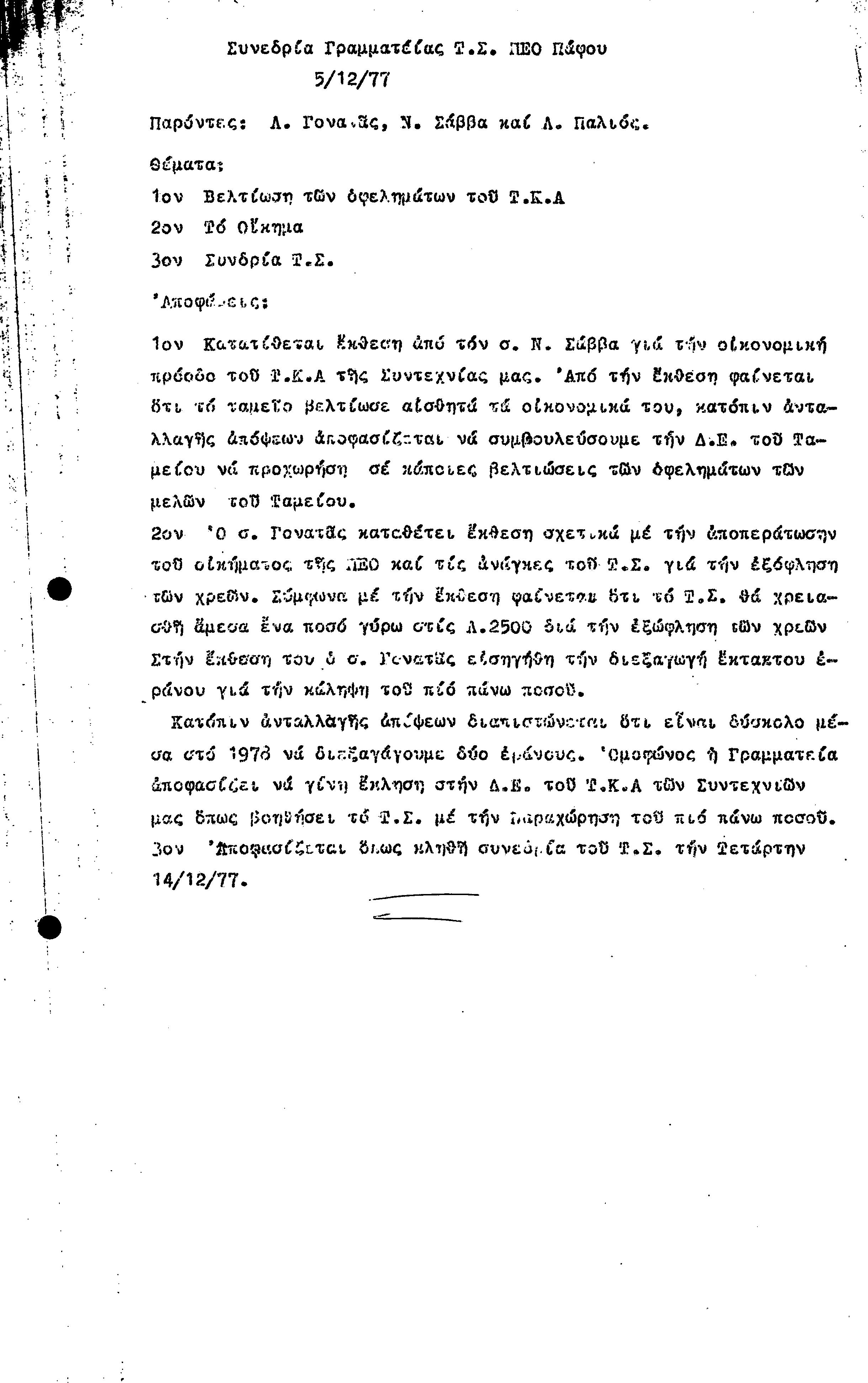 15η ΕΠΑΡΧΙΑΚΗ ΣΥΝΔΙΑΣΚΕΨΗ Τ.Σ. ΠΕΟ ΠΑΦΟΥ,3.12.1972 ( ΠΡΑΚΤΙΚΑ)