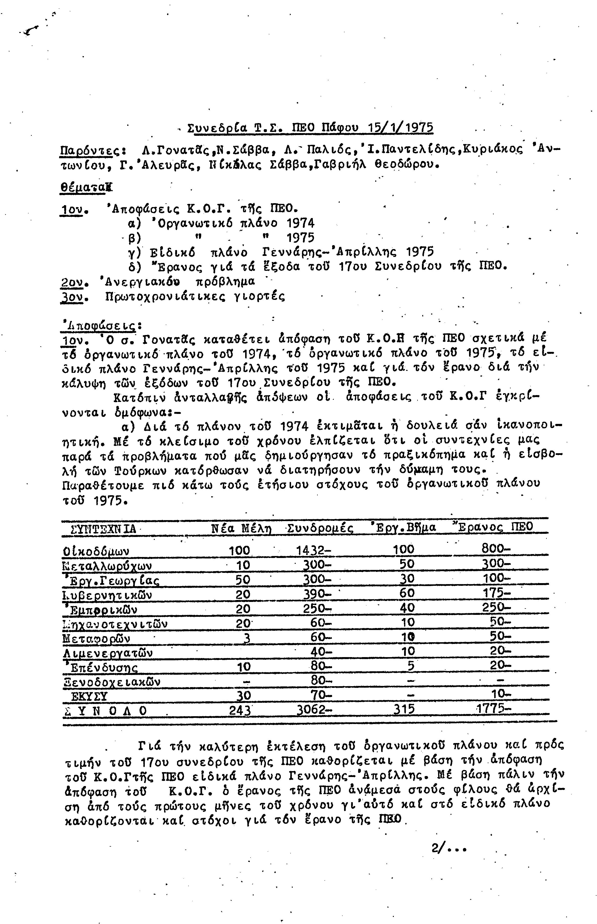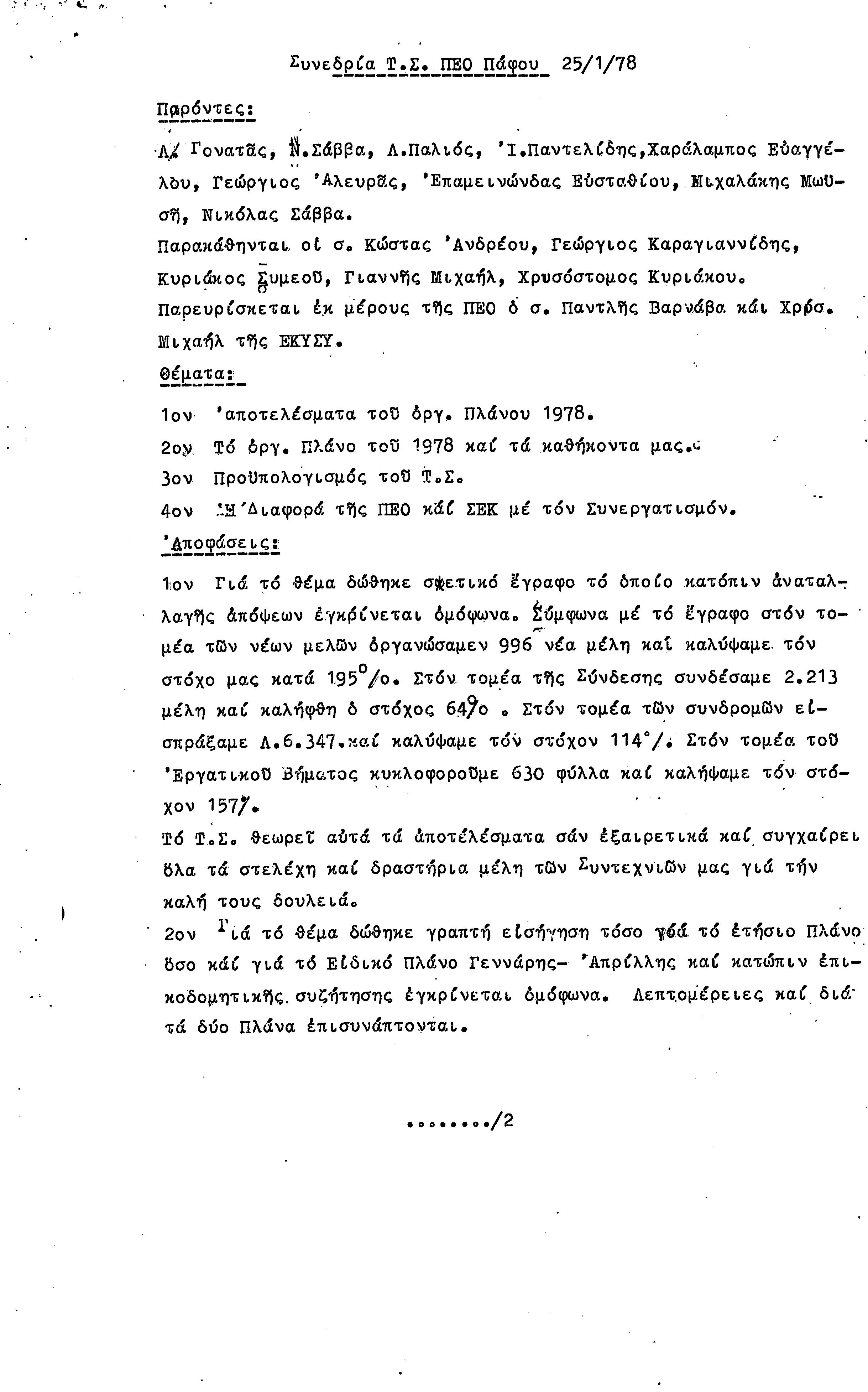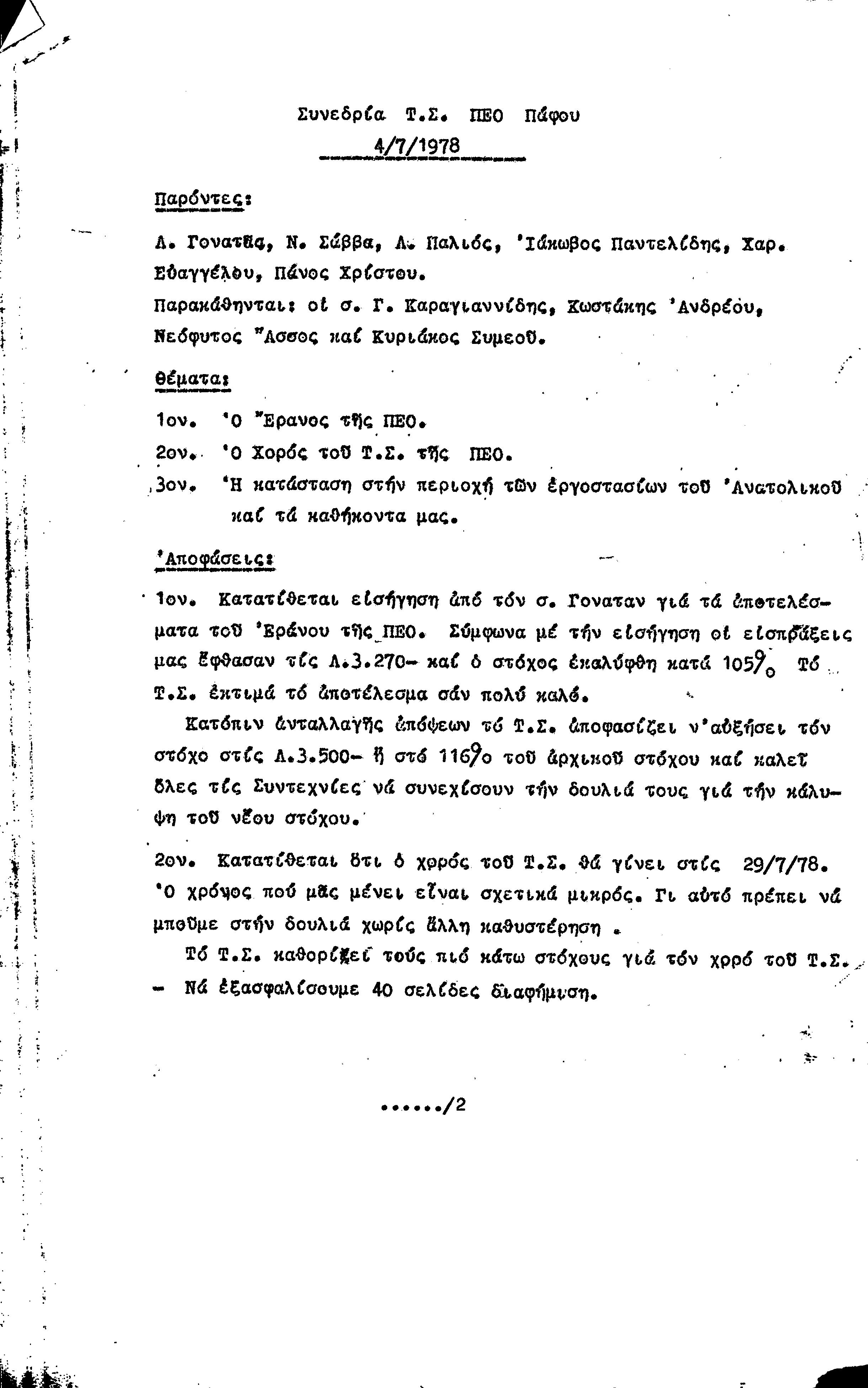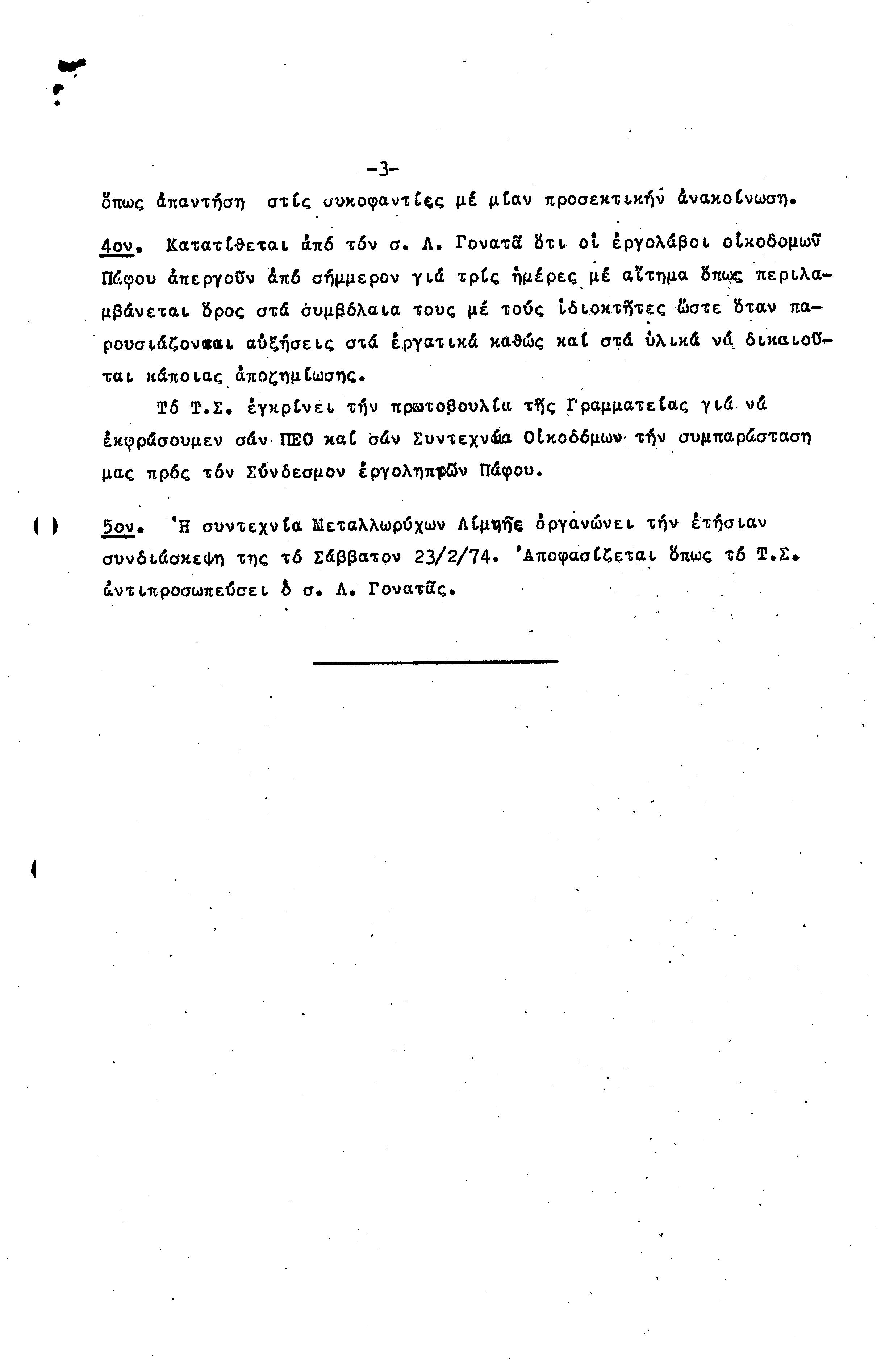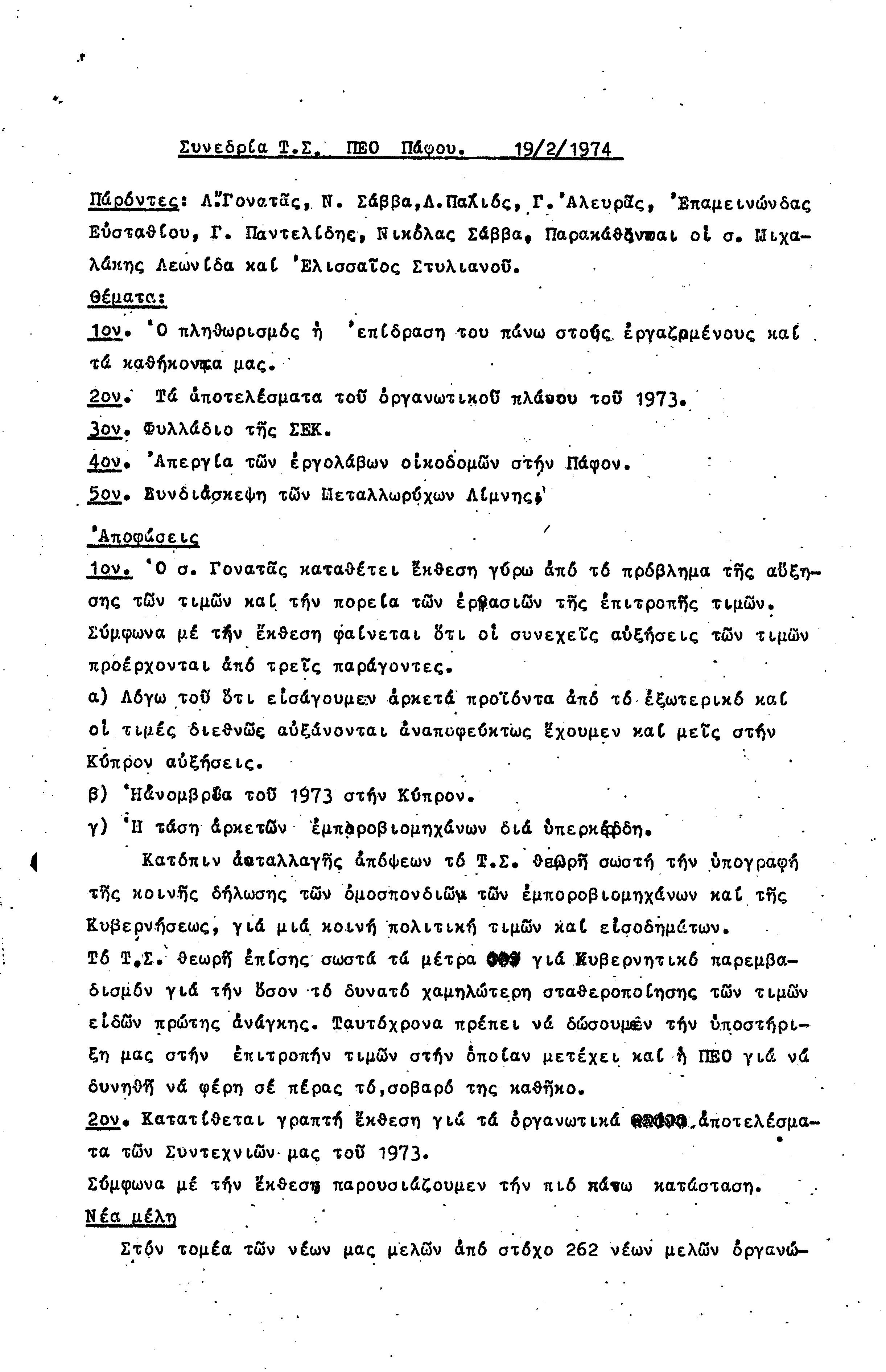 15η ΕΠΑΡΧΙΑΚΗ ΣΥΝΔΙΑΣΚΕΨΗ Τ.Σ. ΠΕΟ ΠΑΦΟΥ,3.12.1972 ( ΠΡΑΚΤΙΚΑ)