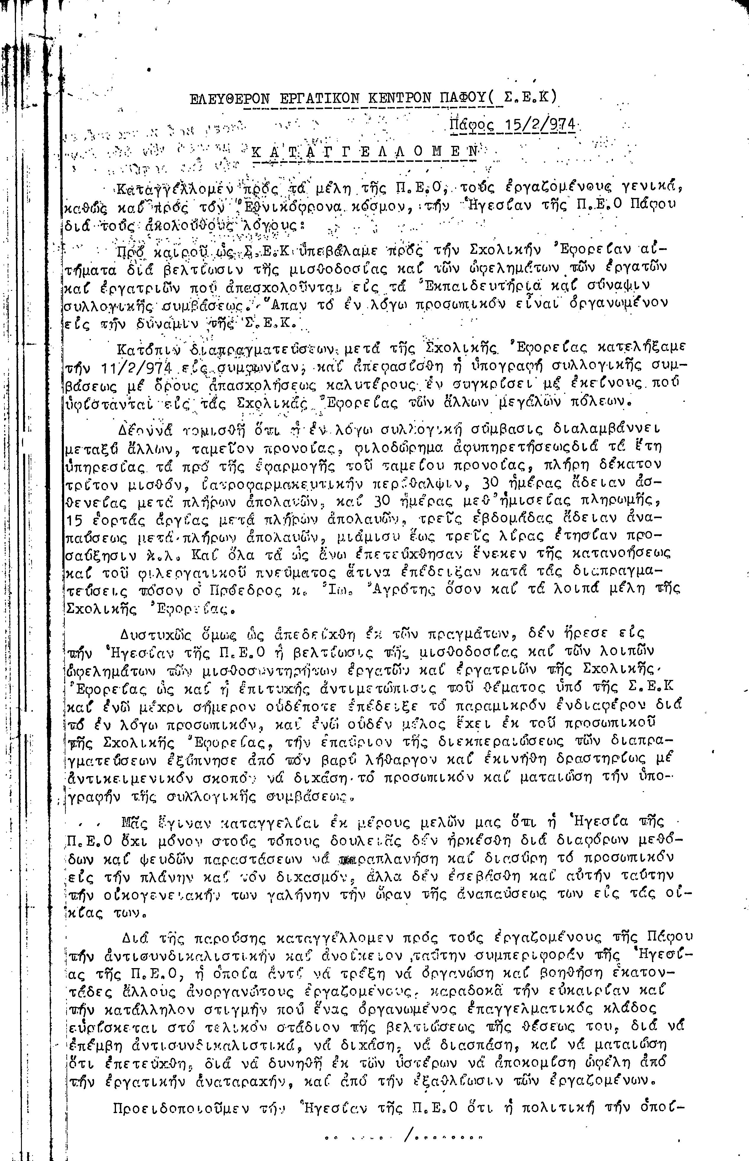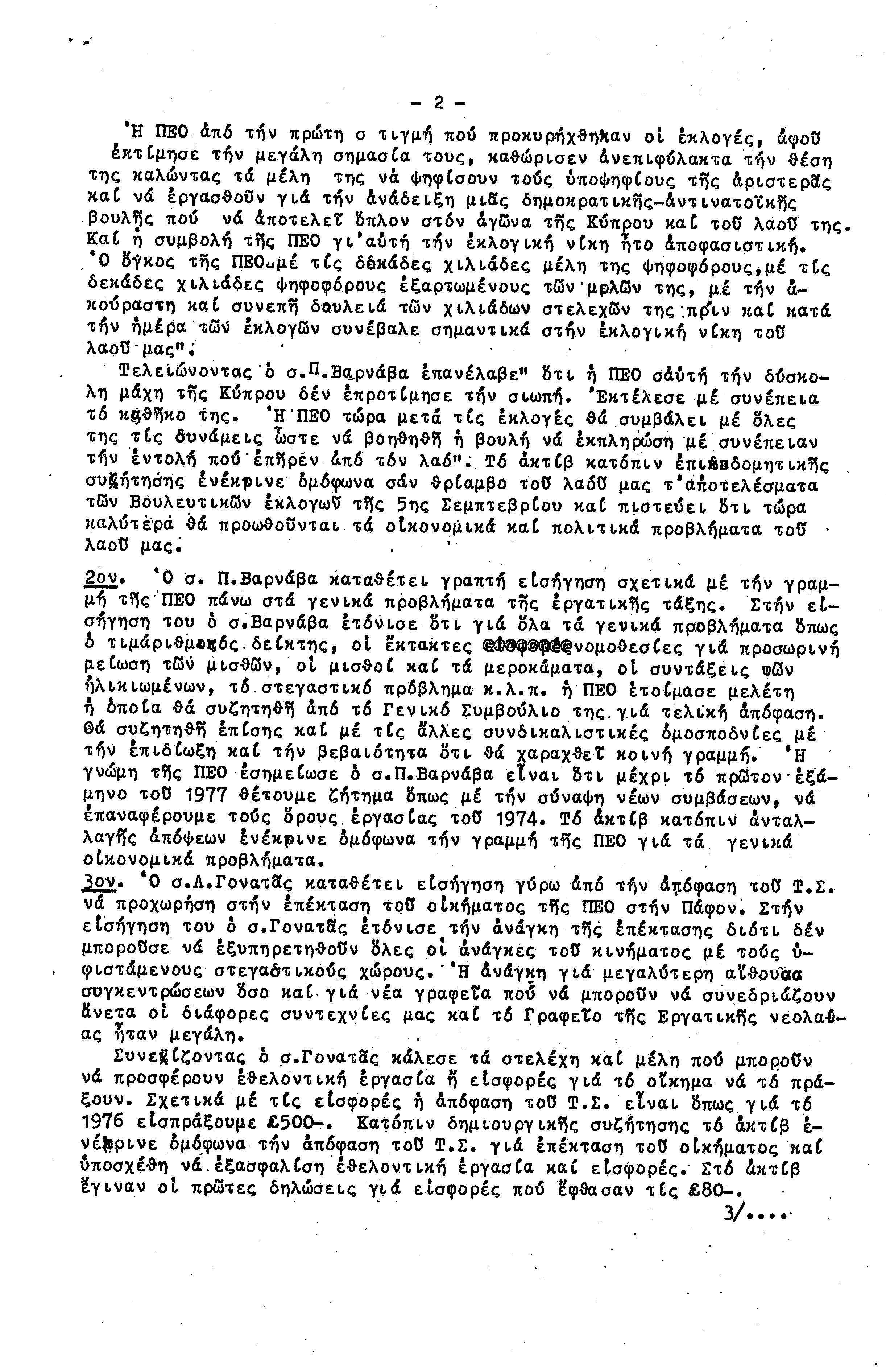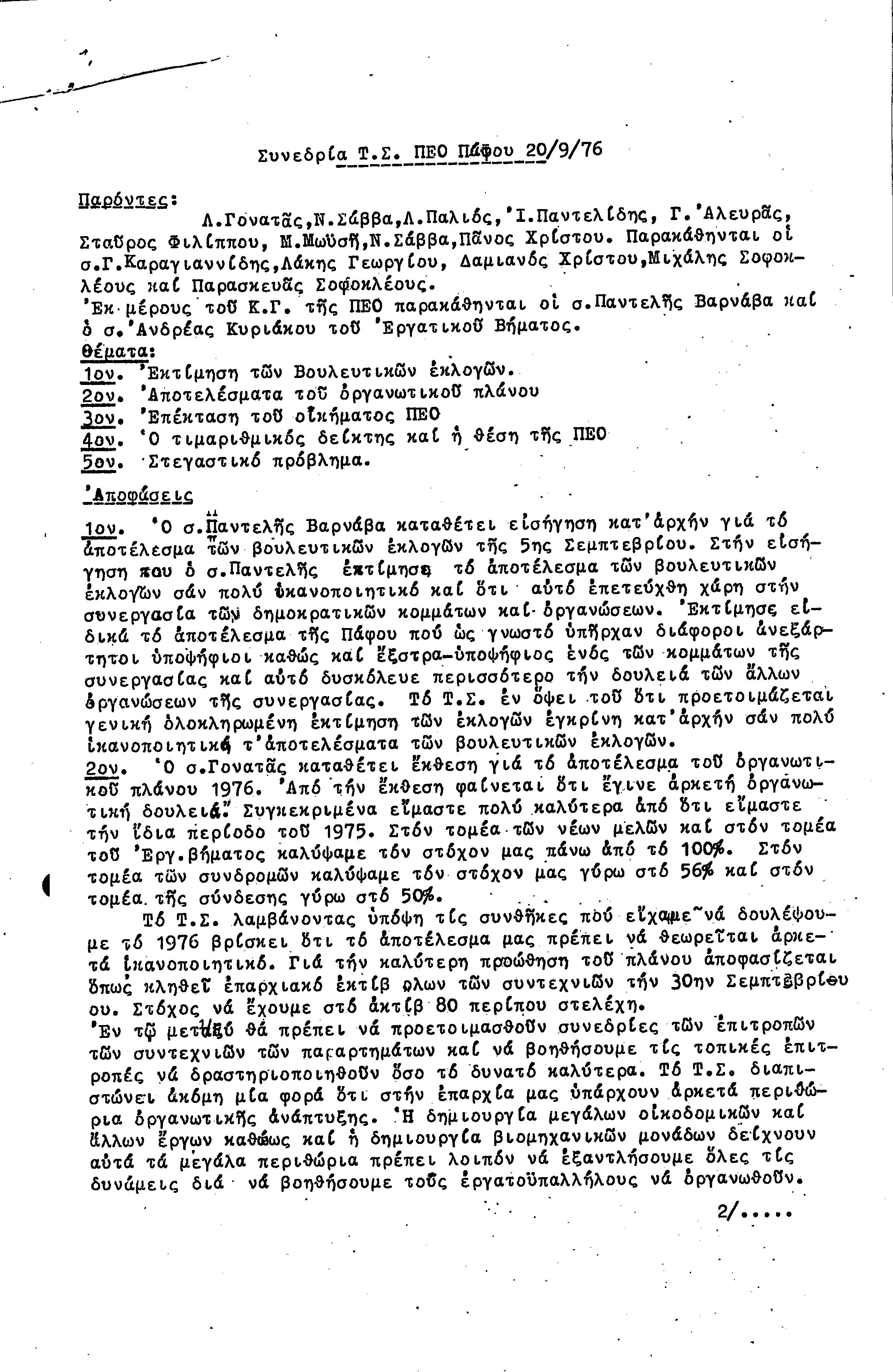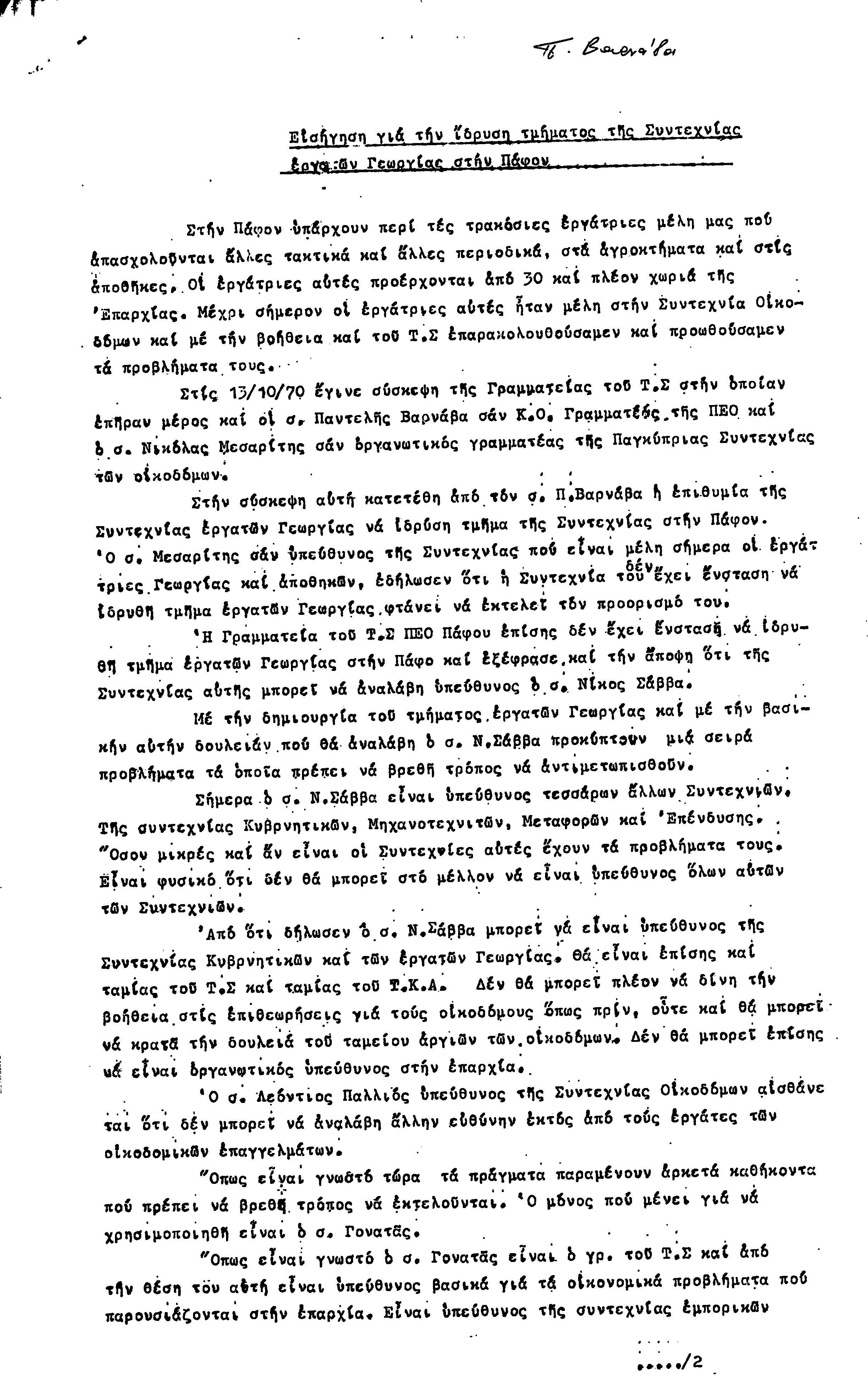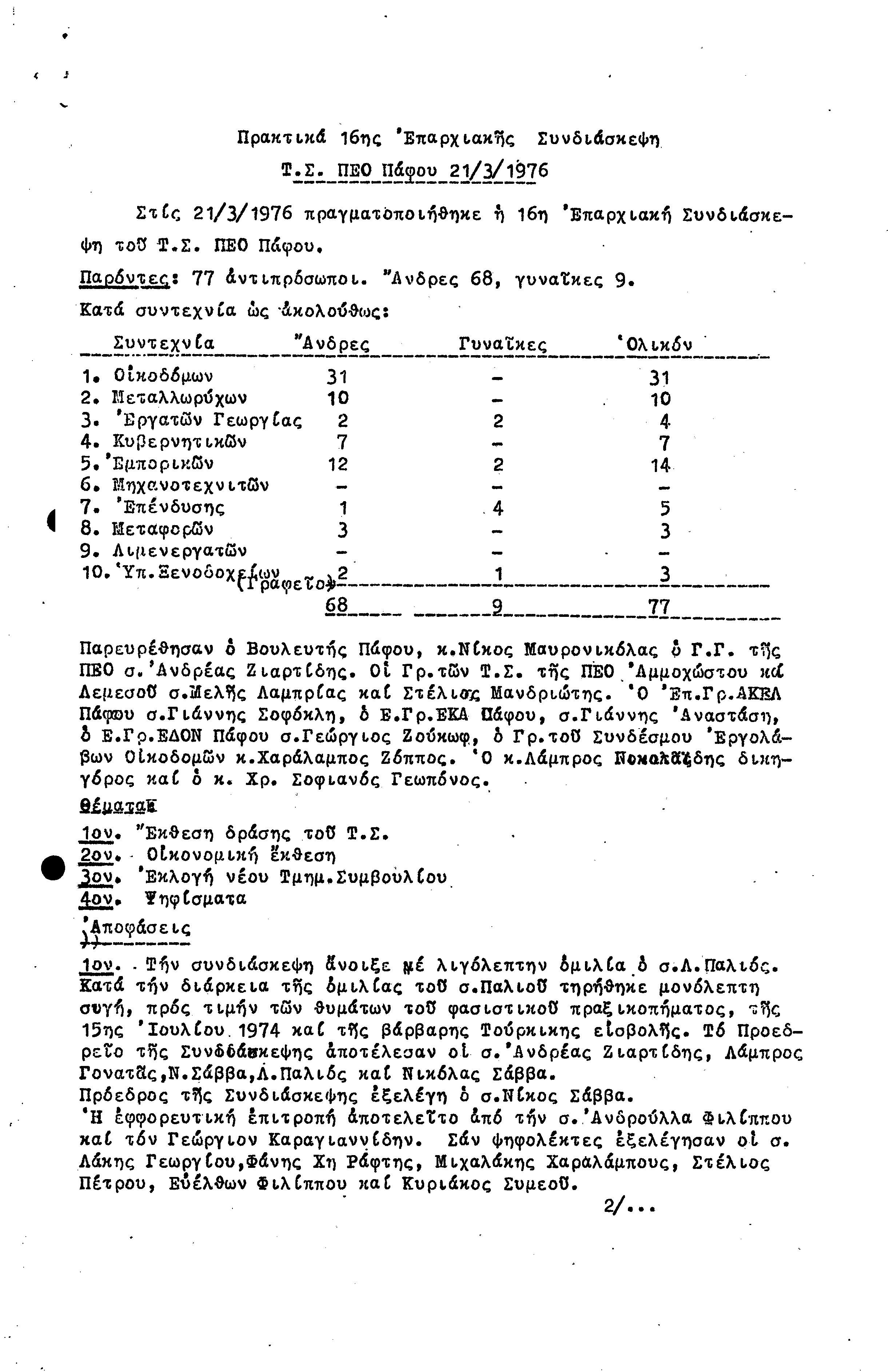 15η ΕΠΑΡΧΙΑΚΗ ΣΥΝΔΙΑΣΚΕΨΗ Τ.Σ. ΠΕΟ ΠΑΦΟΥ,3.12.1972 ( ΠΡΑΚΤΙΚΑ)