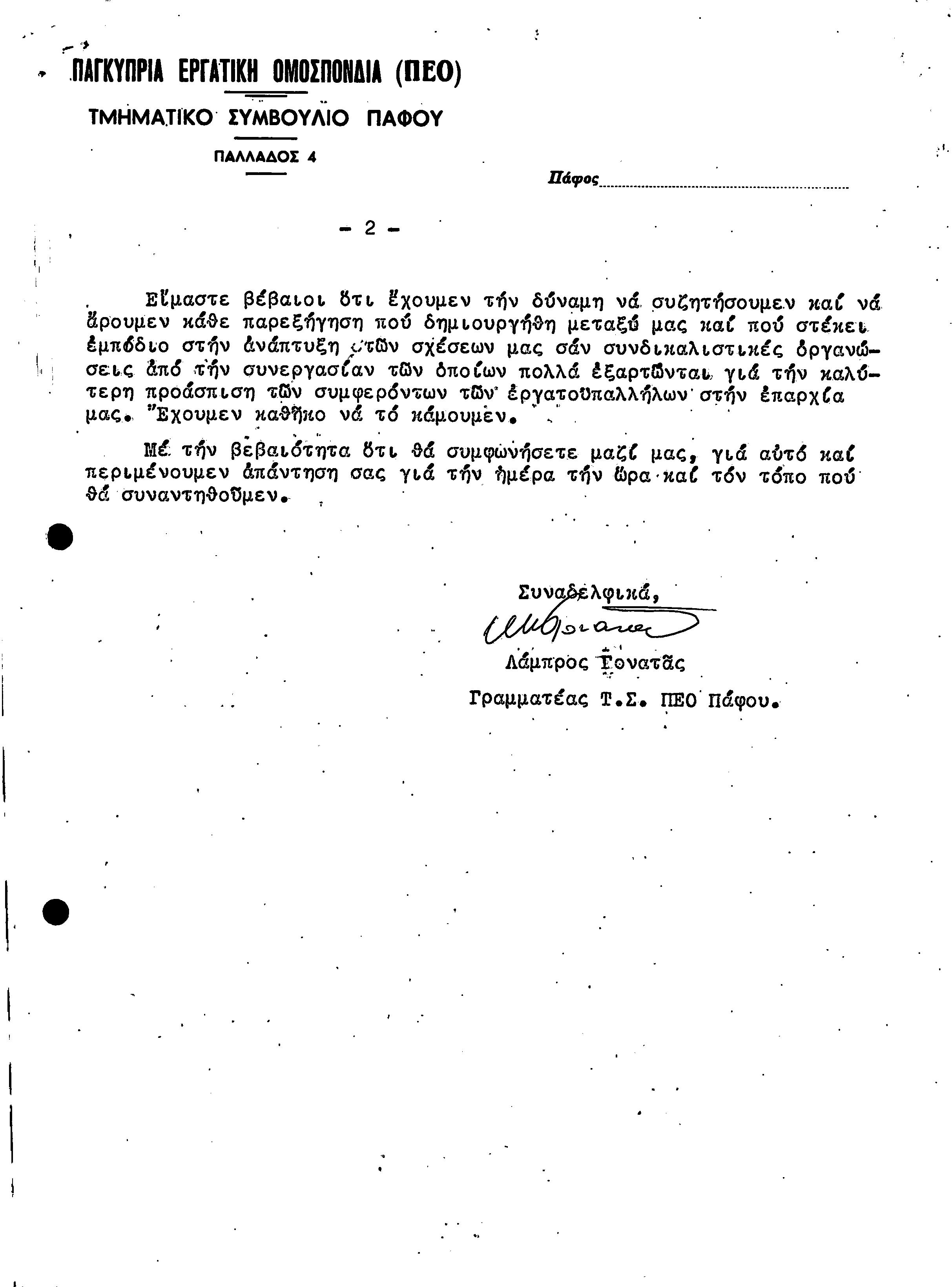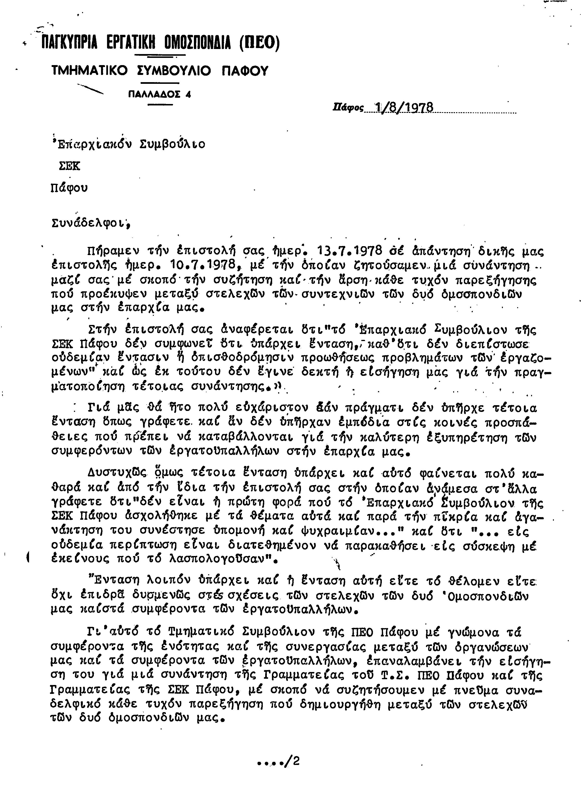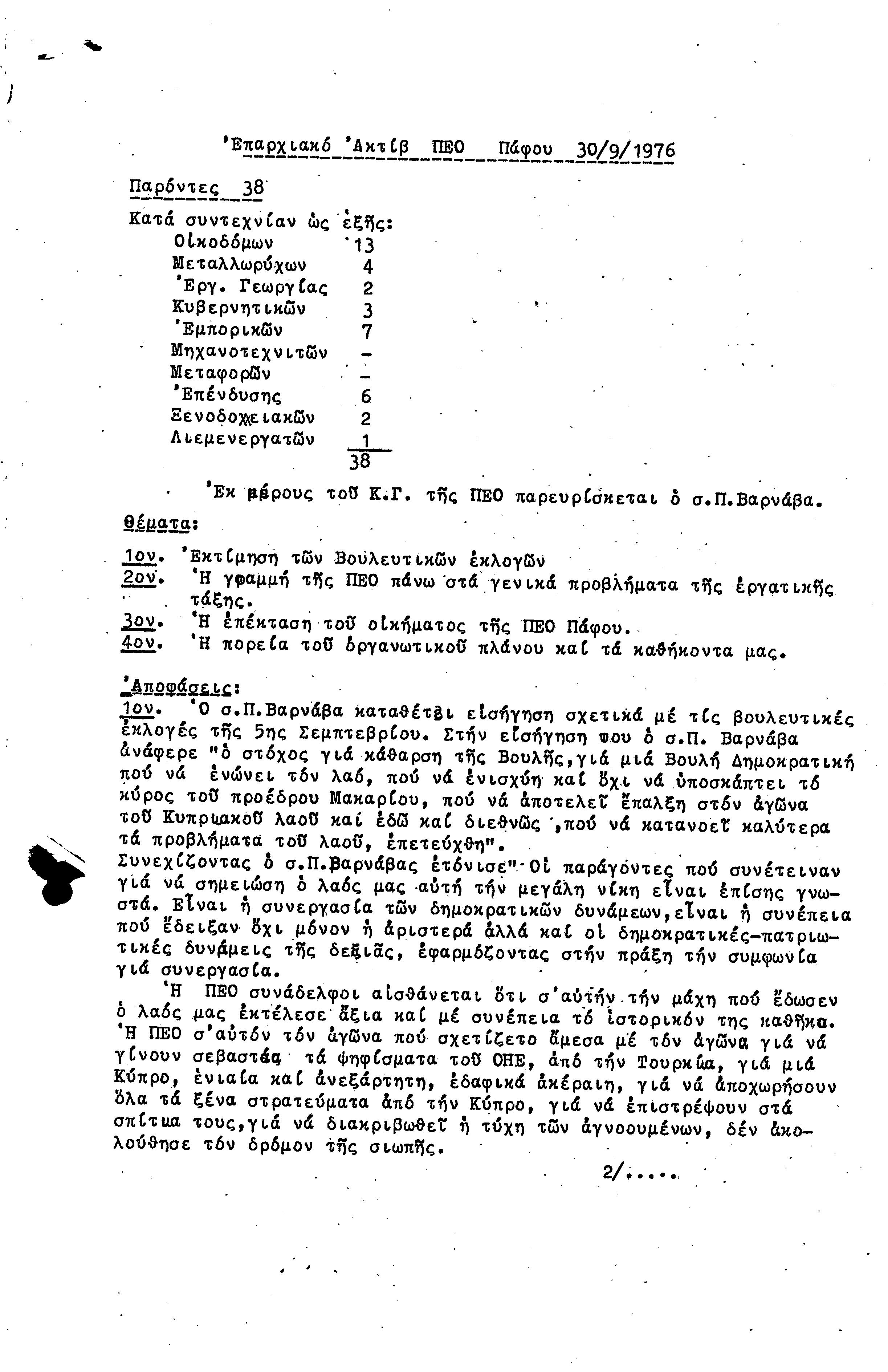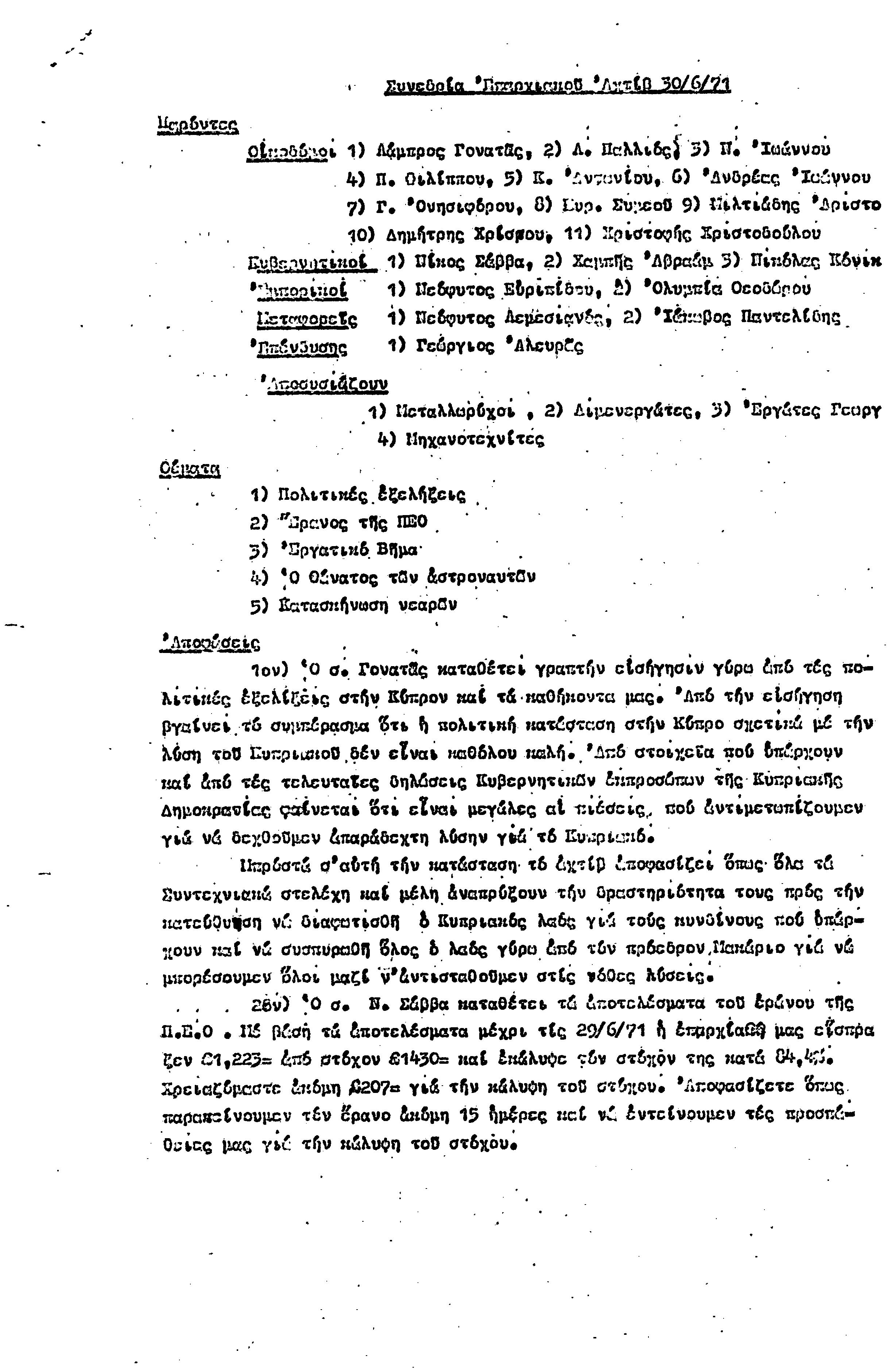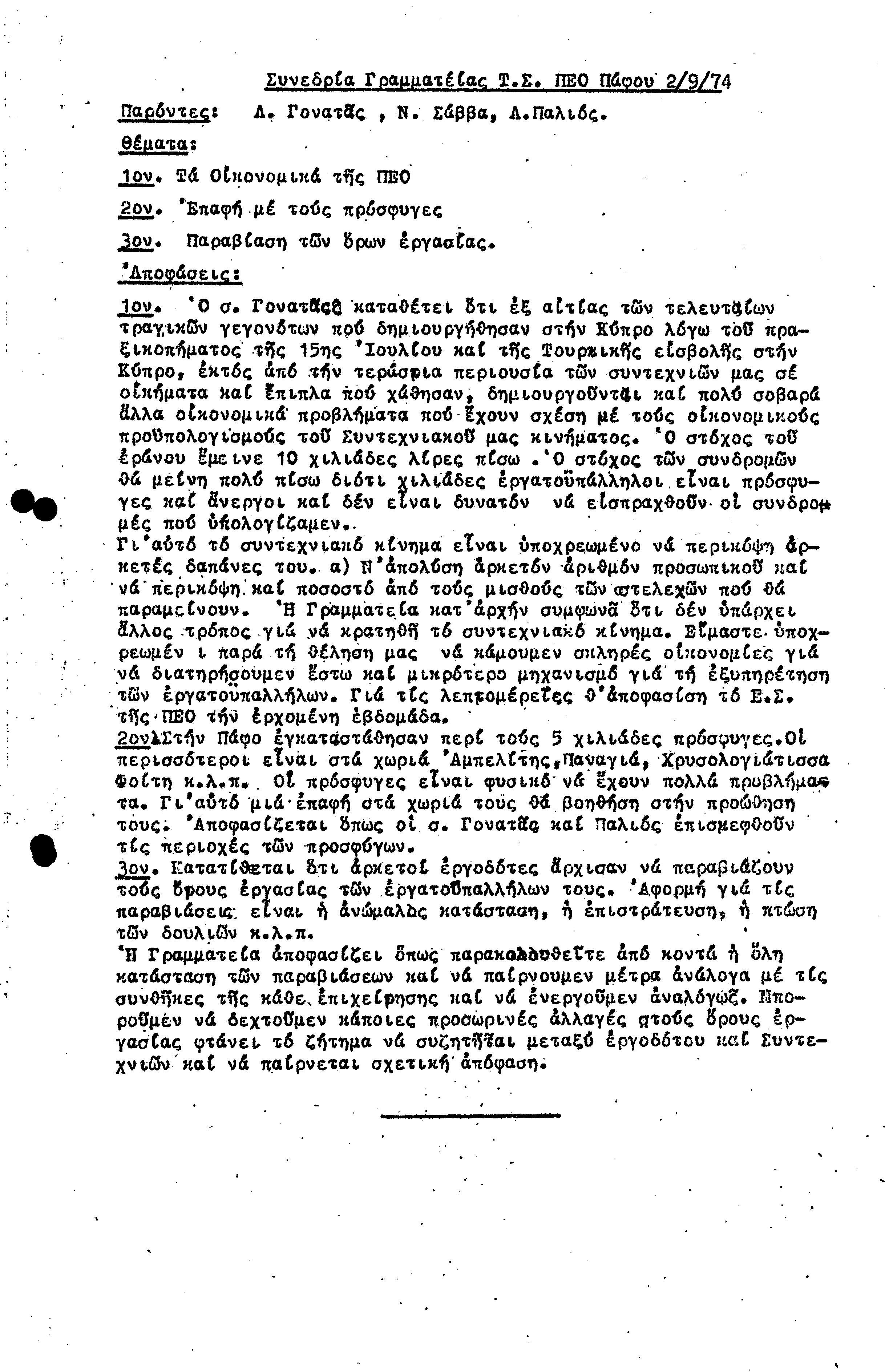 15η ΕΠΑΡΧΙΑΚΗ ΣΥΝΔΙΑΣΚΕΨΗ Τ.Σ. ΠΕΟ ΠΑΦΟΥ,3.12.1972 ( ΠΡΑΚΤΙΚΑ)