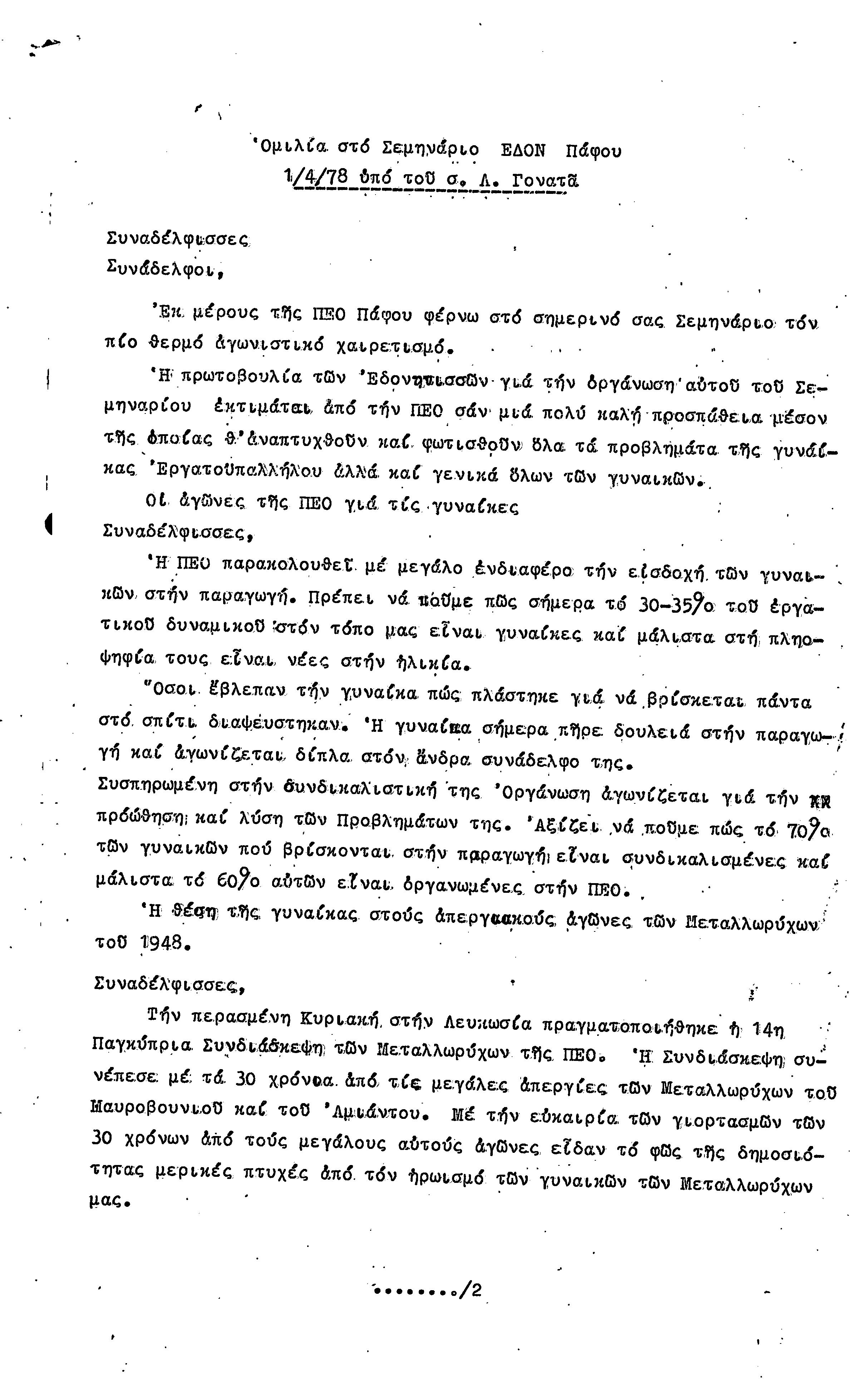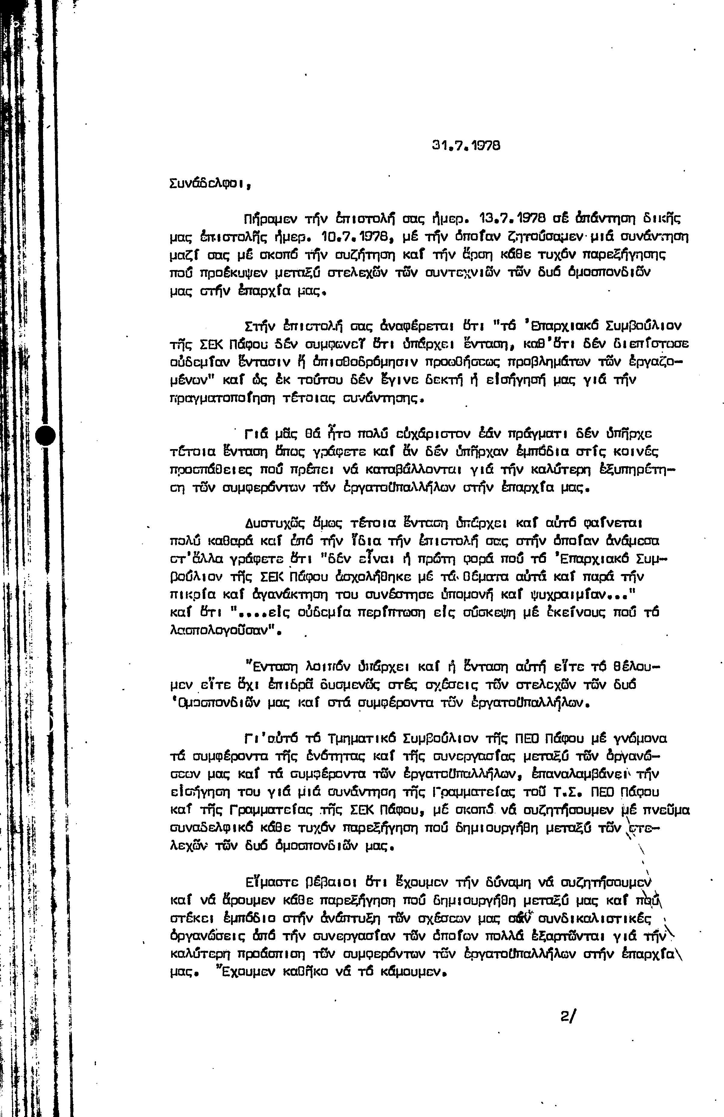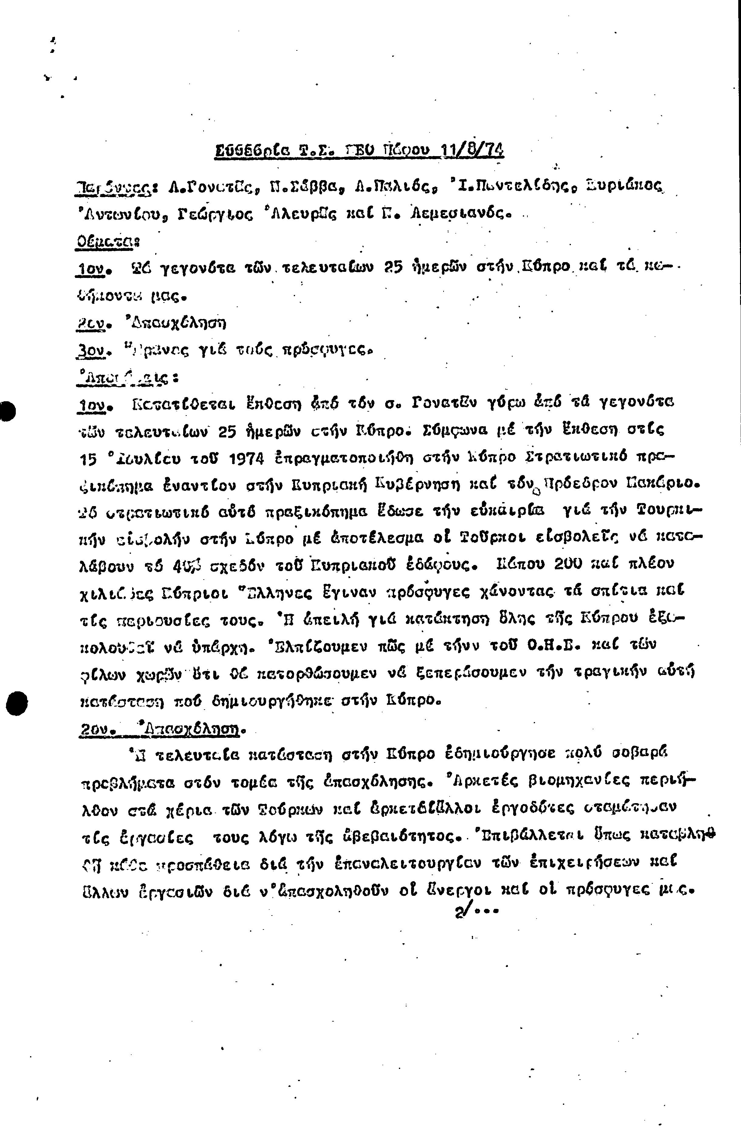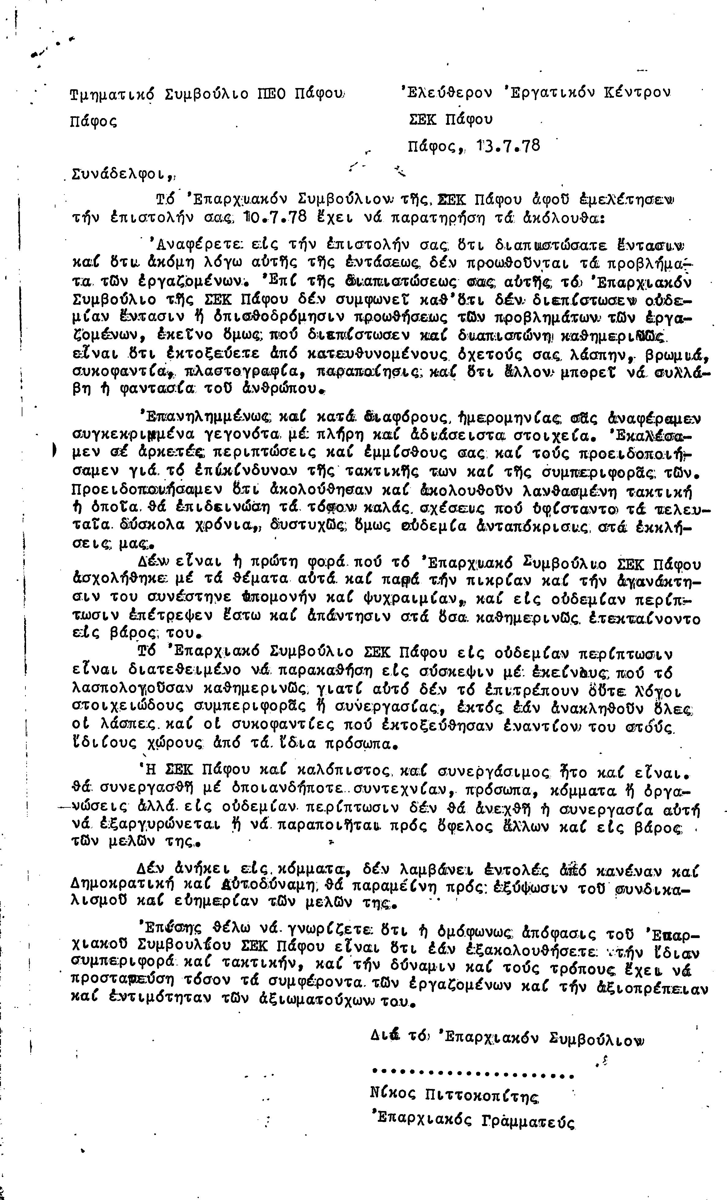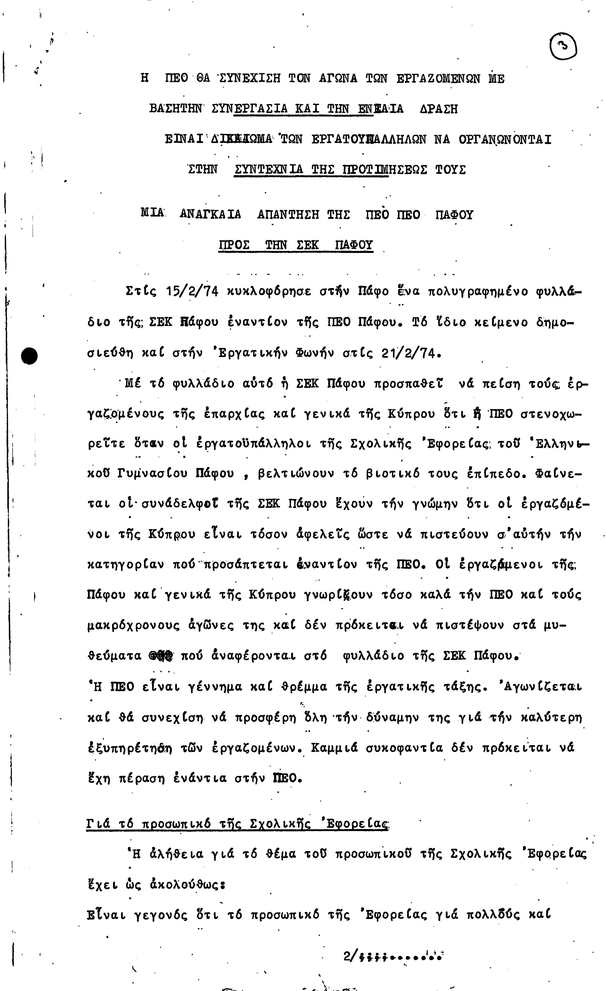15η ΕΠΑΡΧΙΑΚΗ ΣΥΝΔΙΑΣΚΕΨΗ Τ.Σ. ΠΕΟ ΠΑΦΟΥ,3.12.1972 ( ΠΡΑΚΤΙΚΑ)