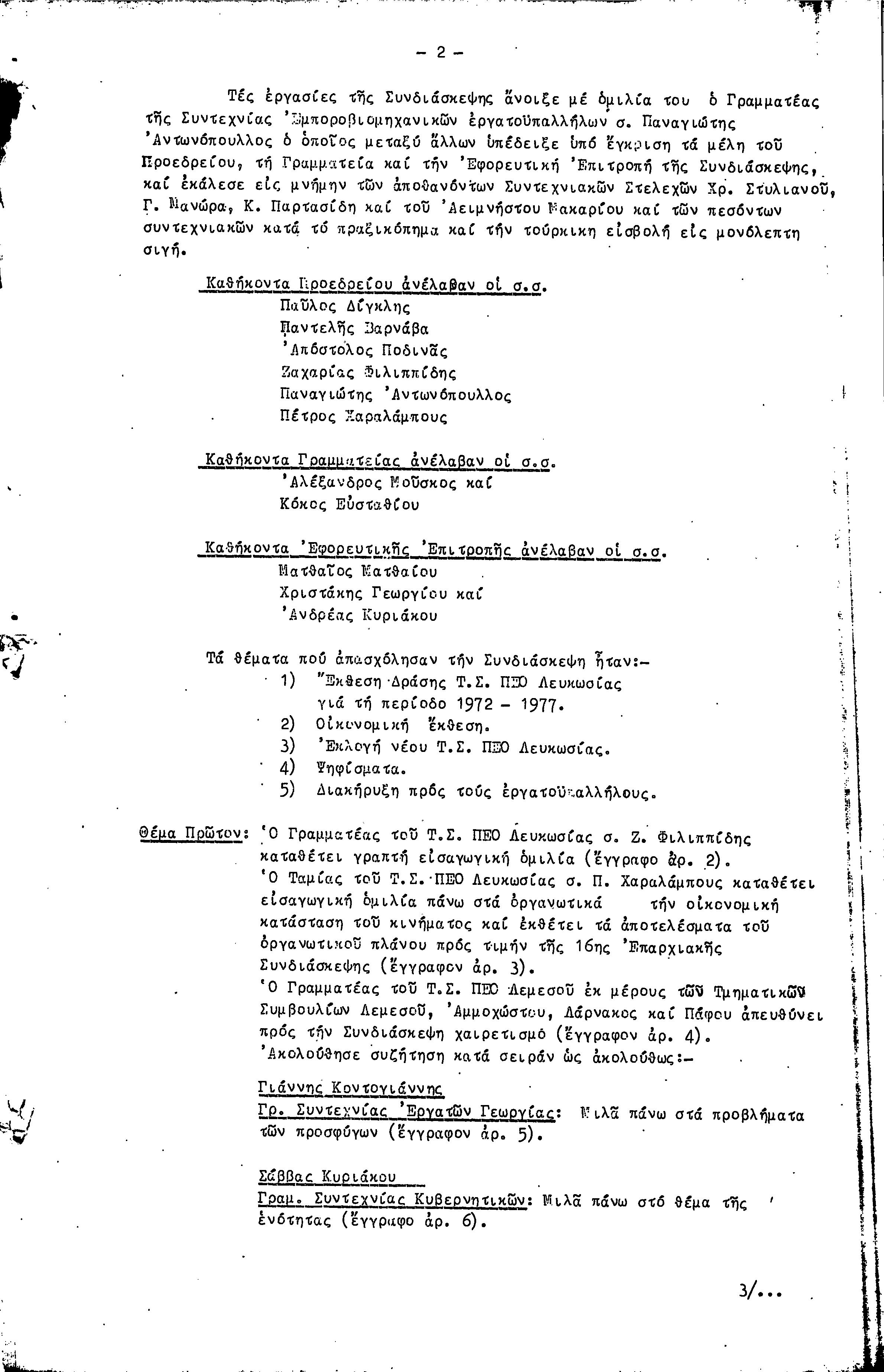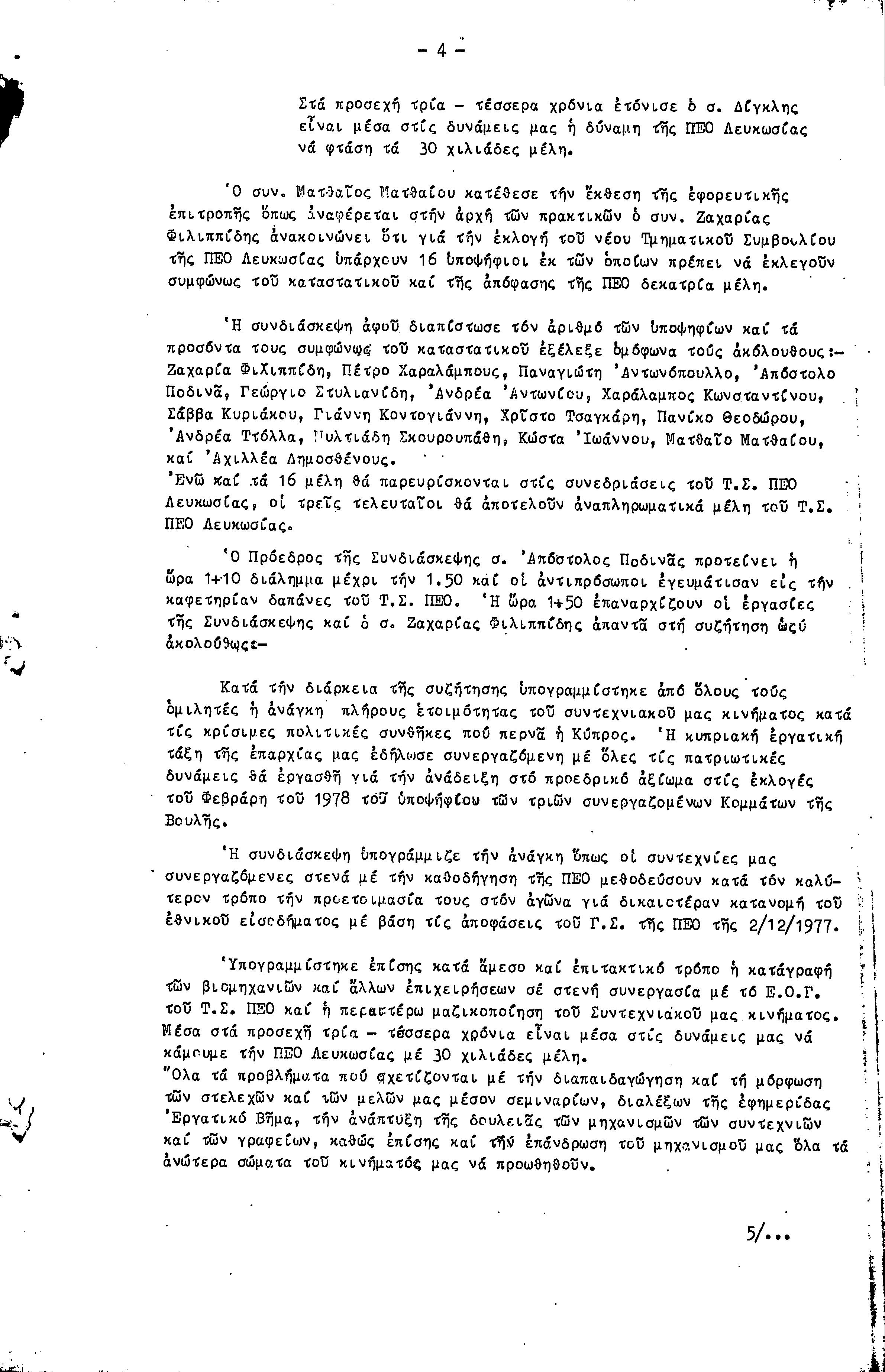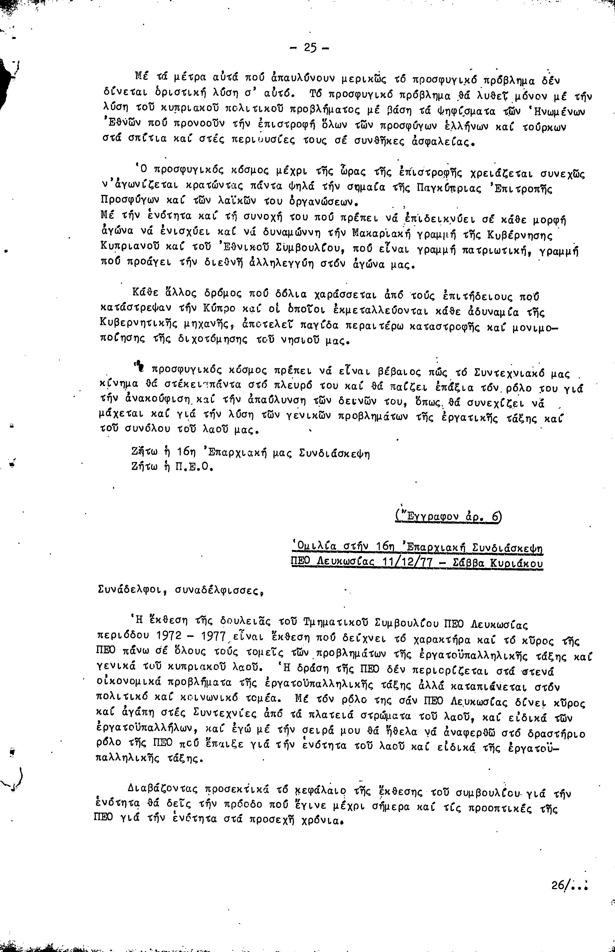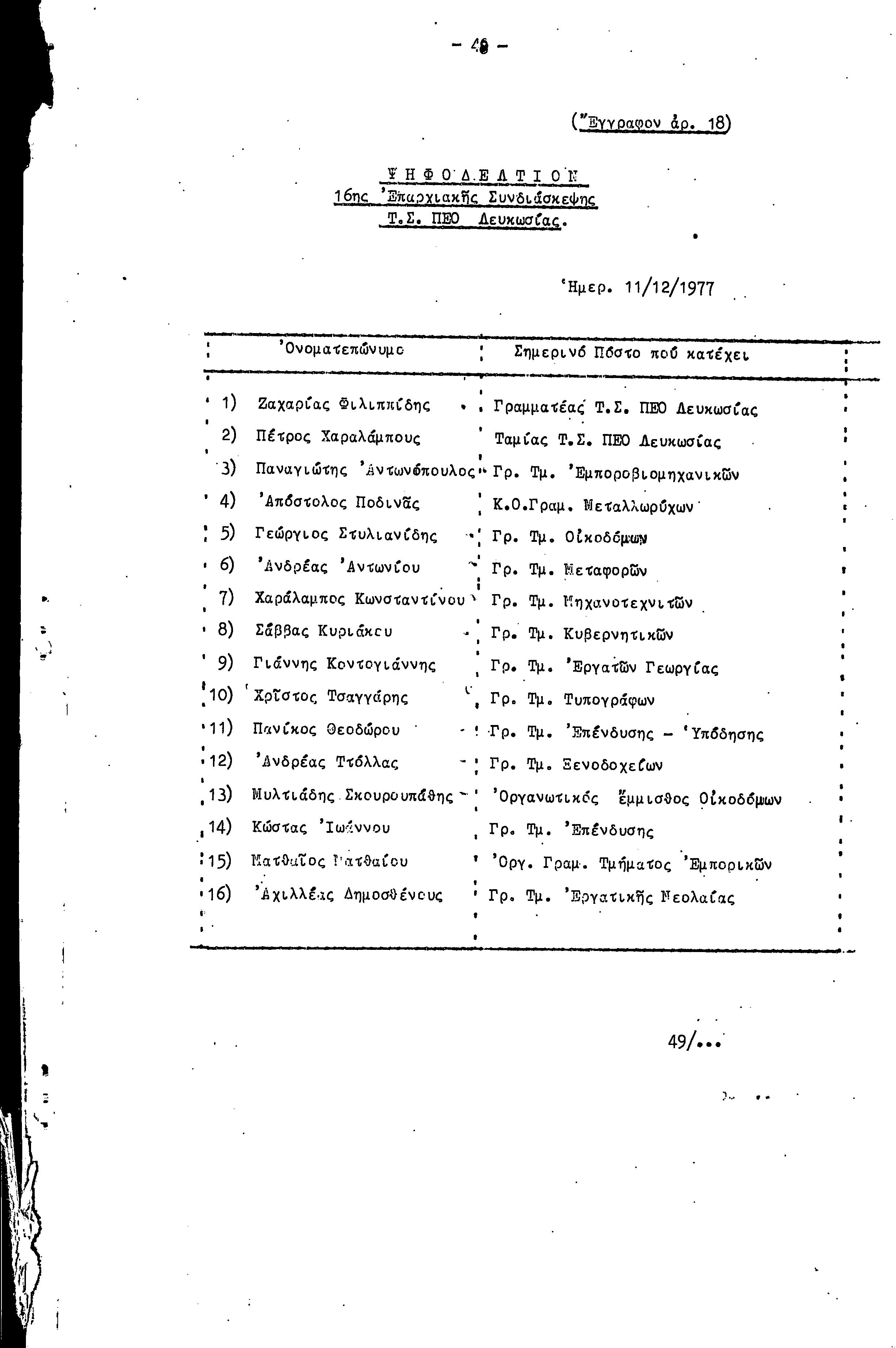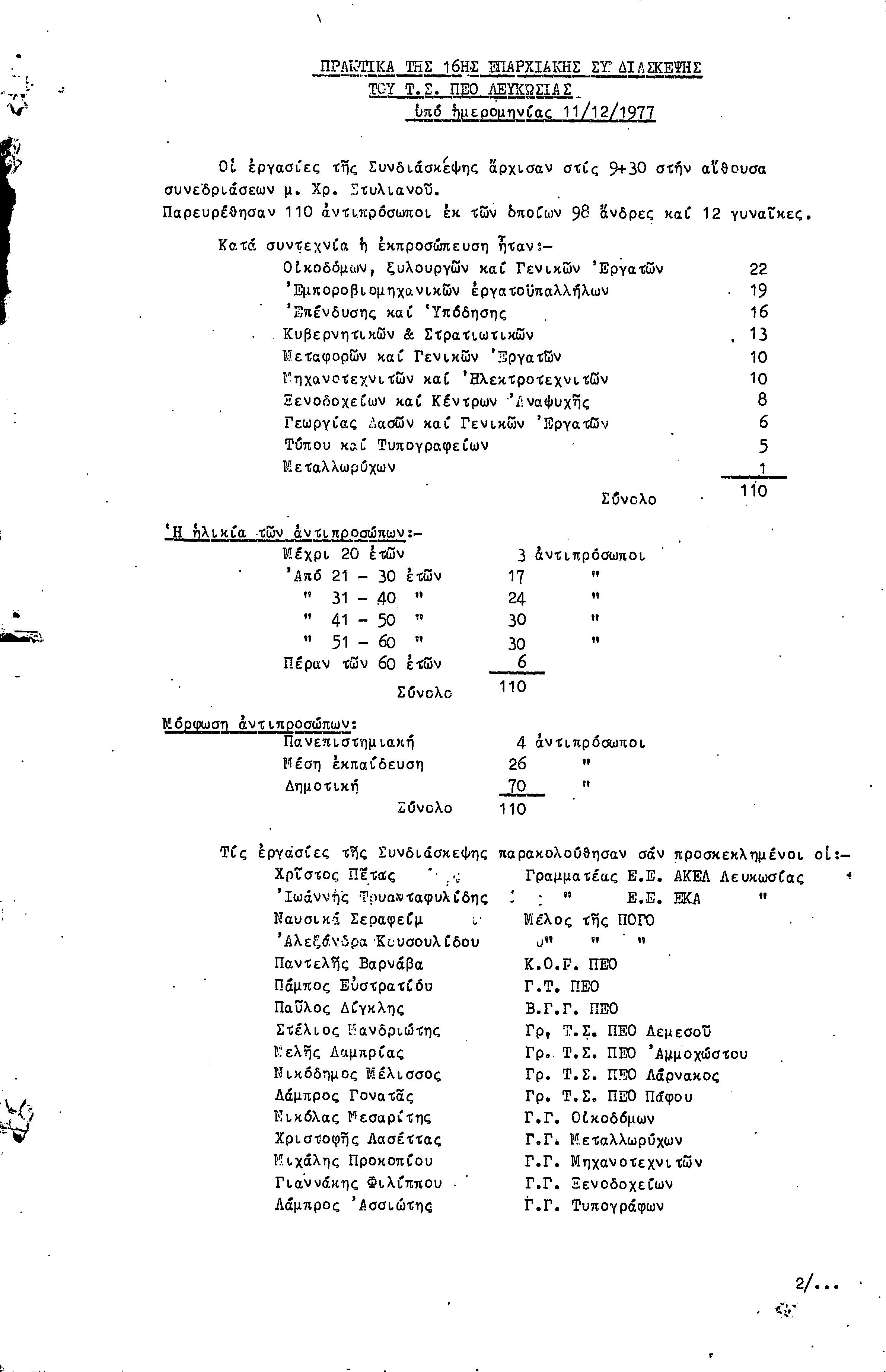 16η ΕΠΑΡΧΙΑΚΗ ΣΥΝΔΙΑΣΚΕΨΗ Τ.Σ. ΠΕΟ ΛΕΥΚΩΣΙΑΣ-ΚΕΡΥΝΕΙΑΣ,11.12.1977 ( ΠΡΑΚΤΙΚΑ)
