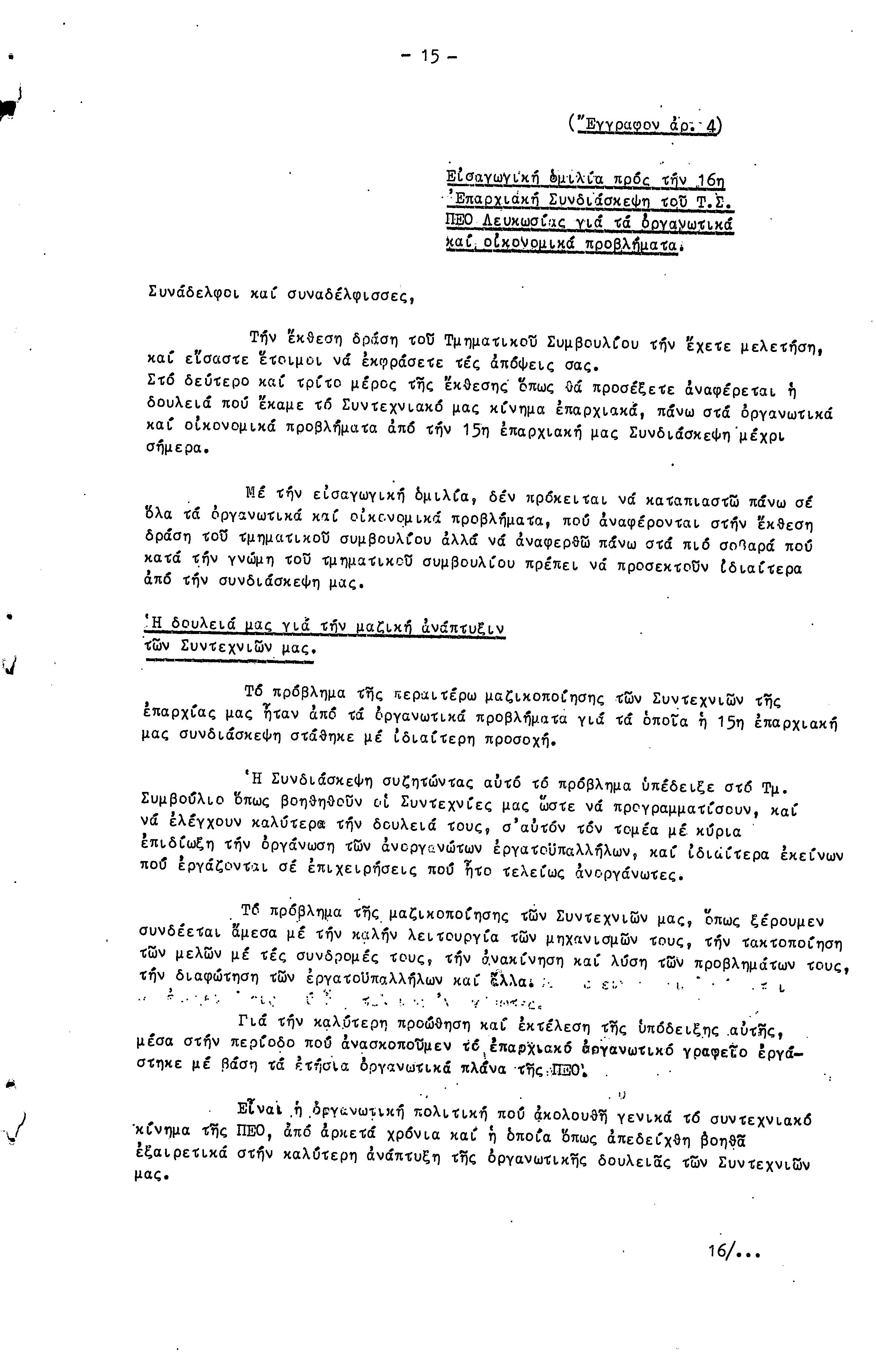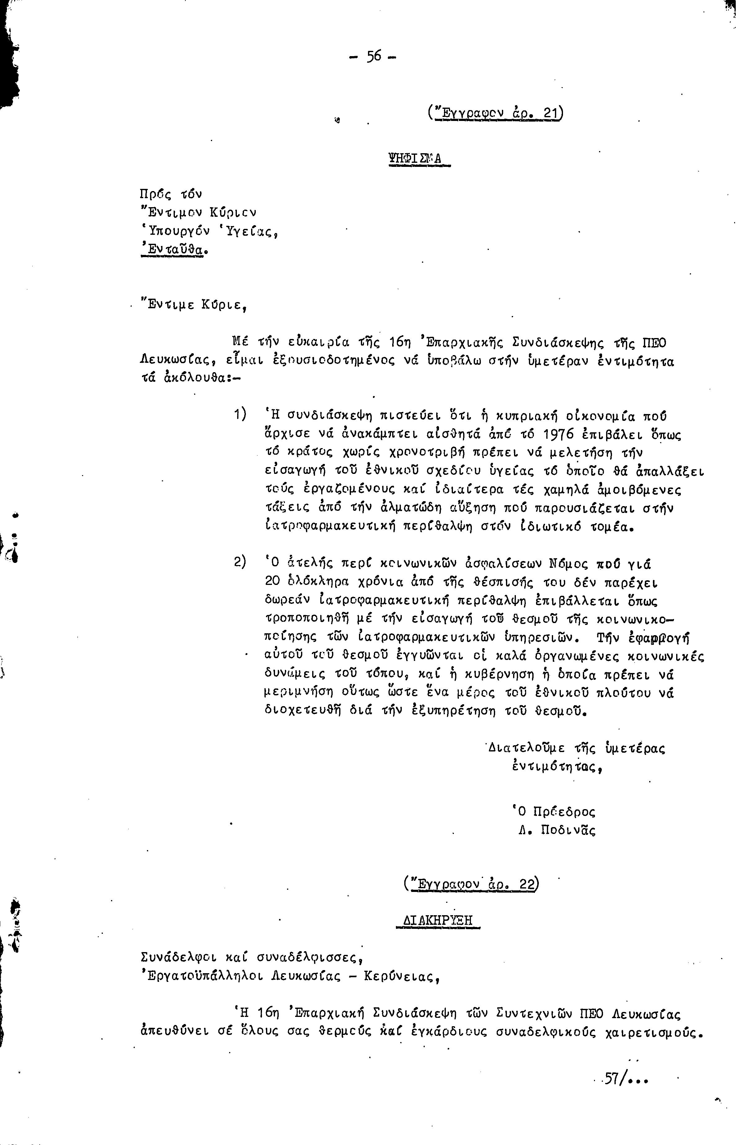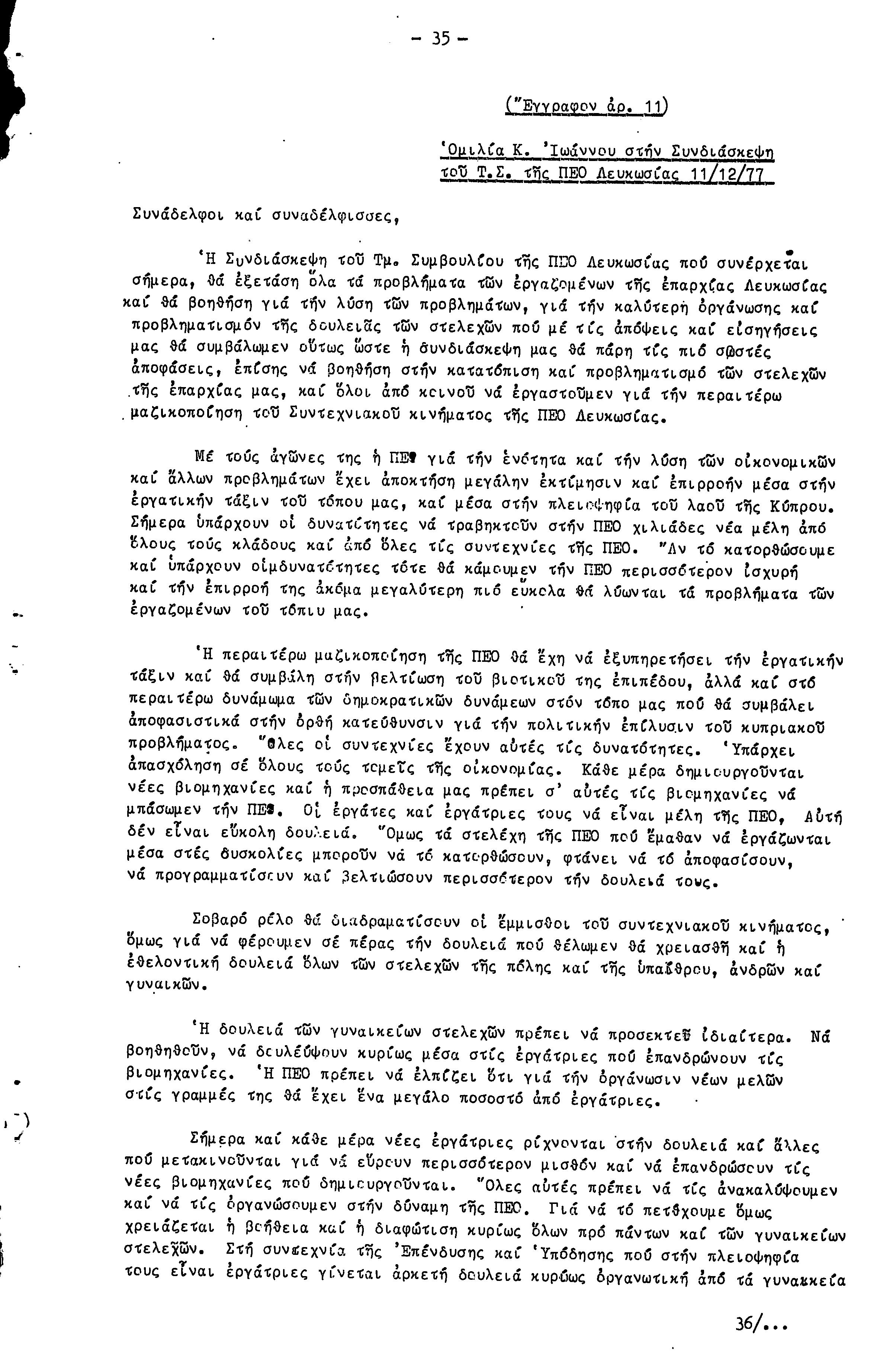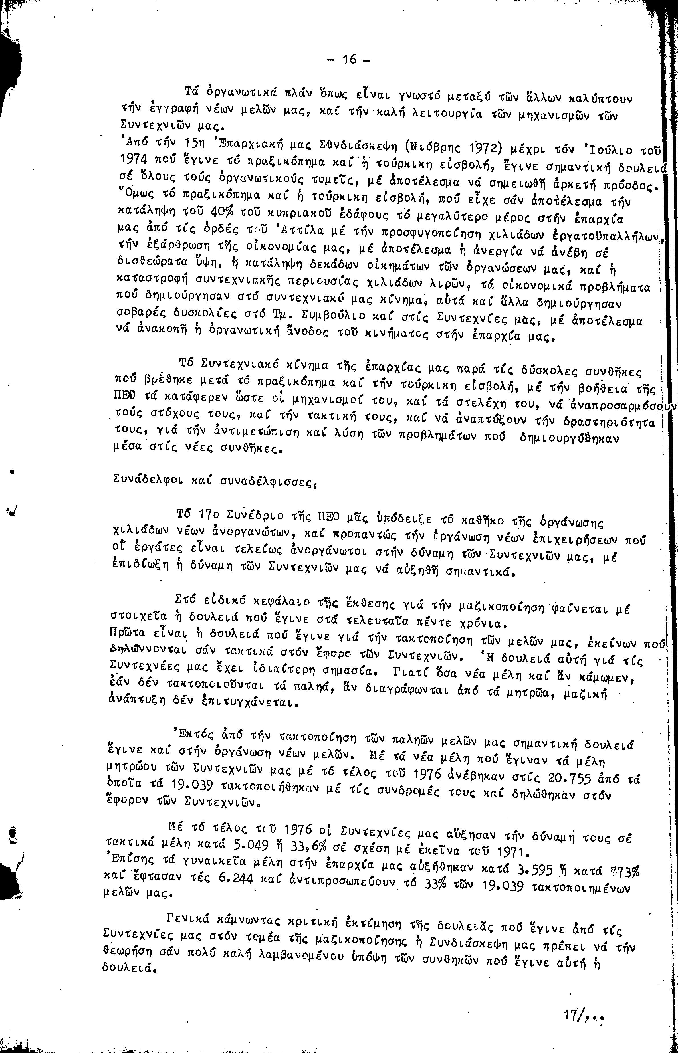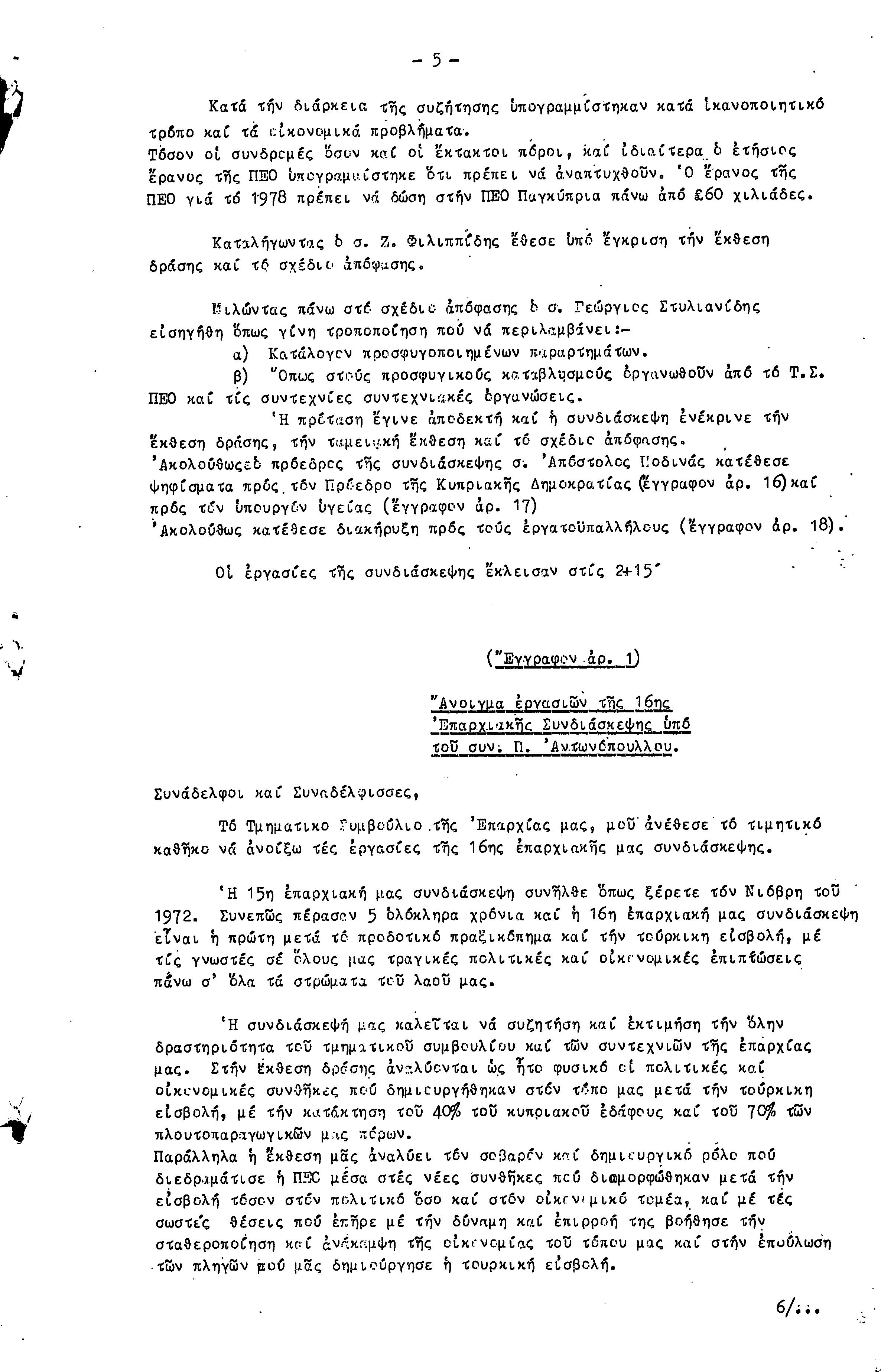 16η ΕΠΑΡΧΙΑΚΗ ΣΥΝΔΙΑΣΚΕΨΗ Τ.Σ. ΠΕΟ ΛΕΥΚΩΣΙΑΣ-ΚΕΡΥΝΕΙΑΣ,11.12.1977 ( ΠΡΑΚΤΙΚΑ)