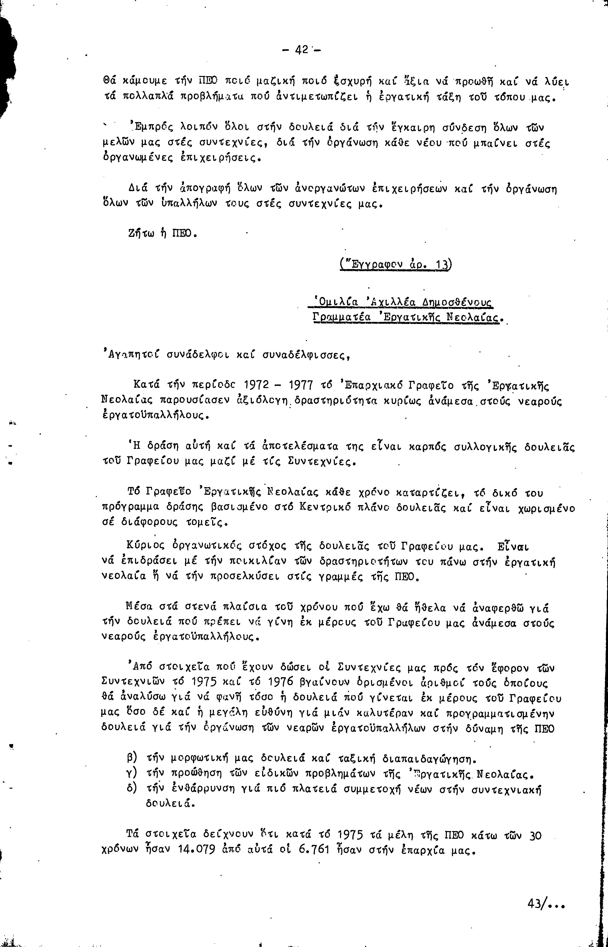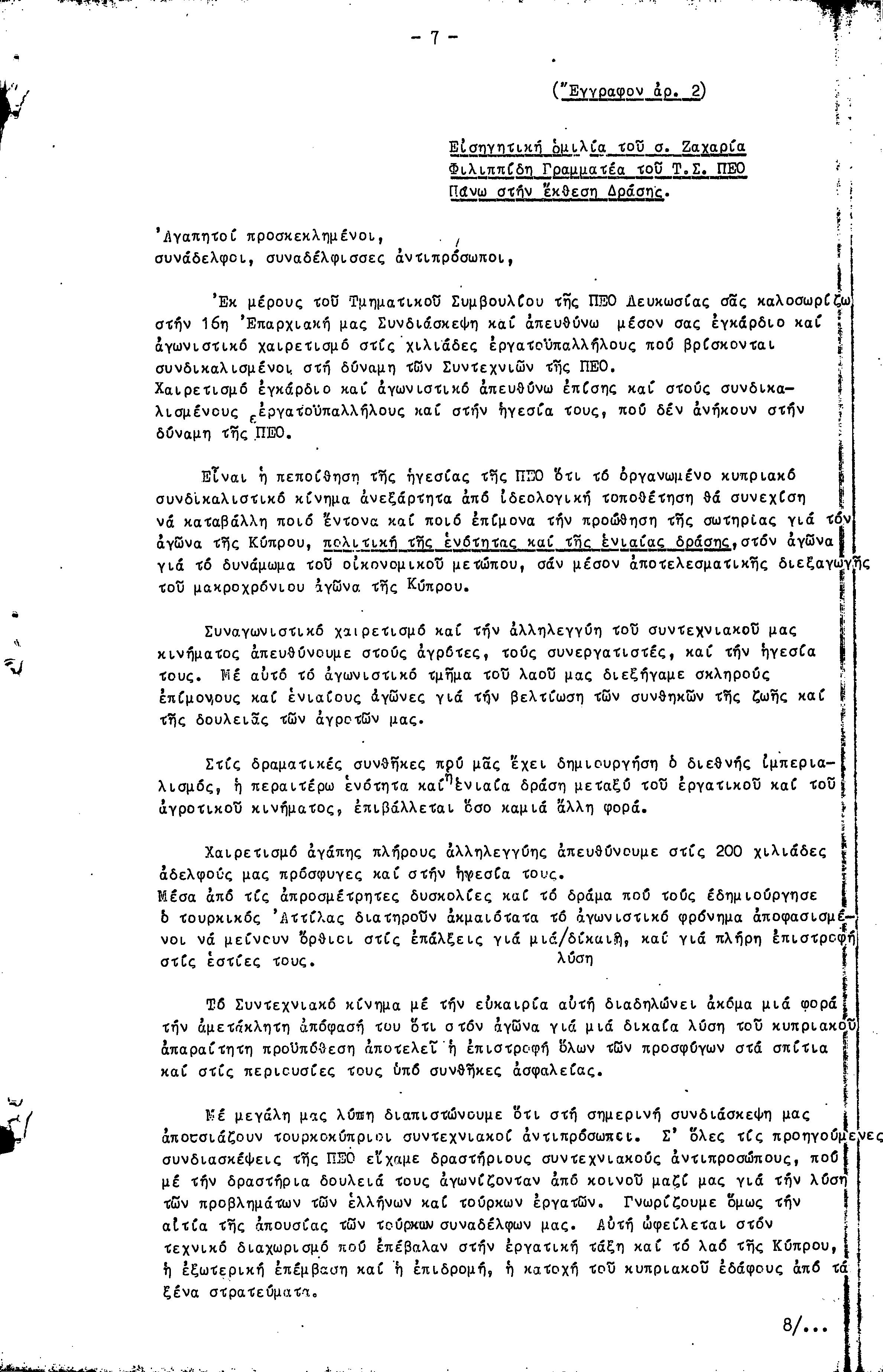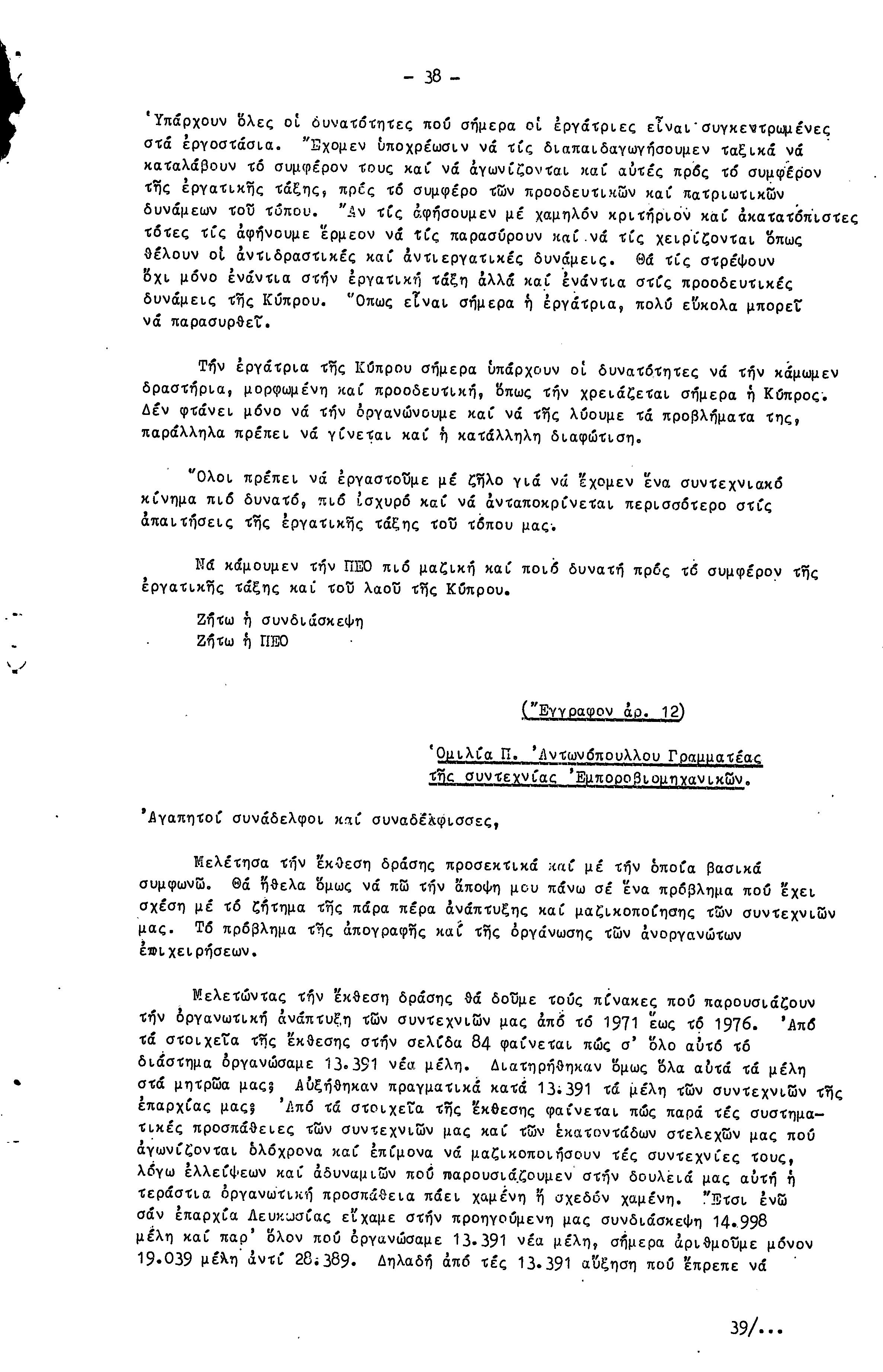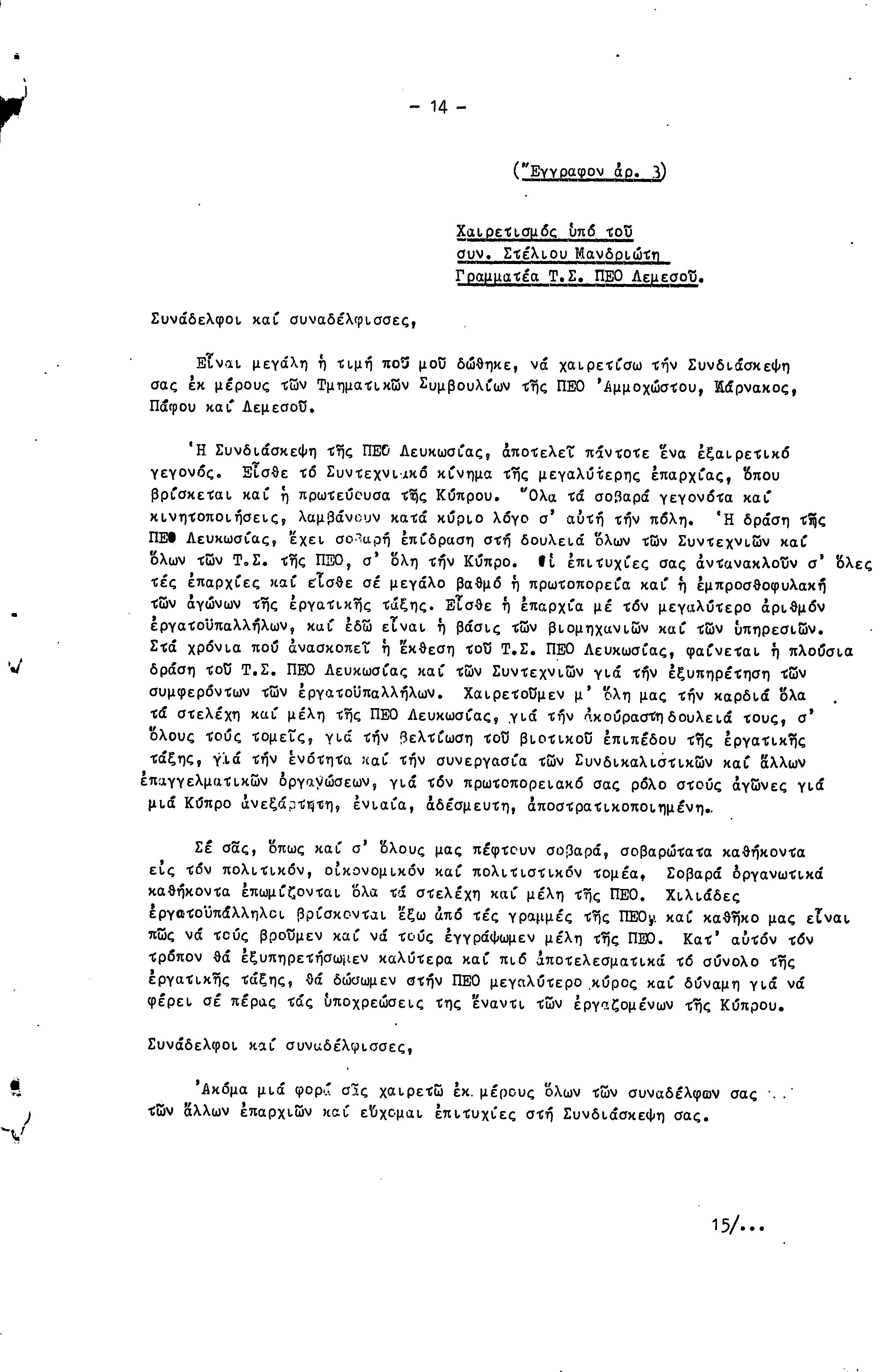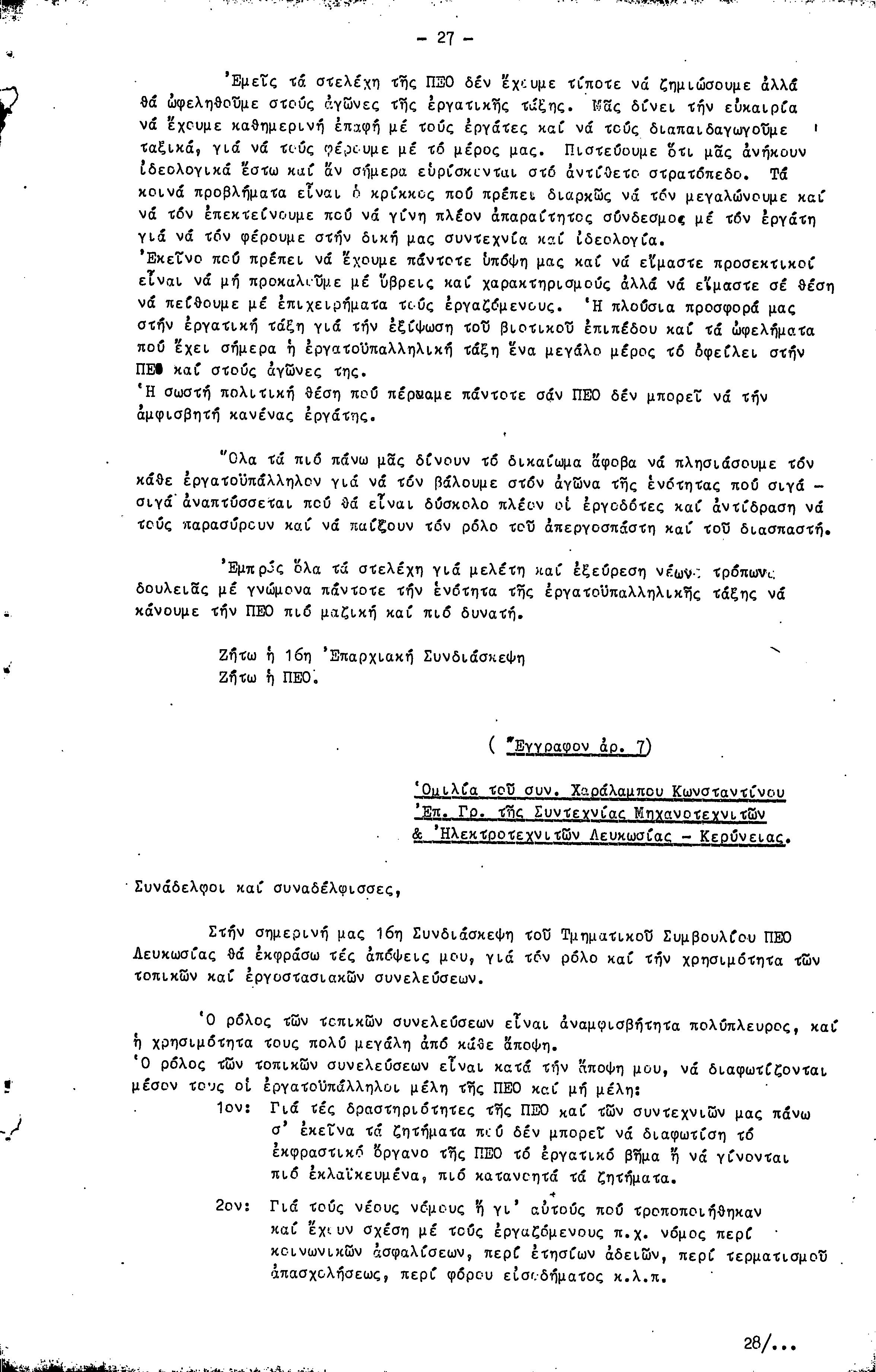 16η ΕΠΑΡΧΙΑΚΗ ΣΥΝΔΙΑΣΚΕΨΗ Τ.Σ. ΠΕΟ ΛΕΥΚΩΣΙΑΣ-ΚΕΡΥΝΕΙΑΣ,11.12.1977 ( ΠΡΑΚΤΙΚΑ)