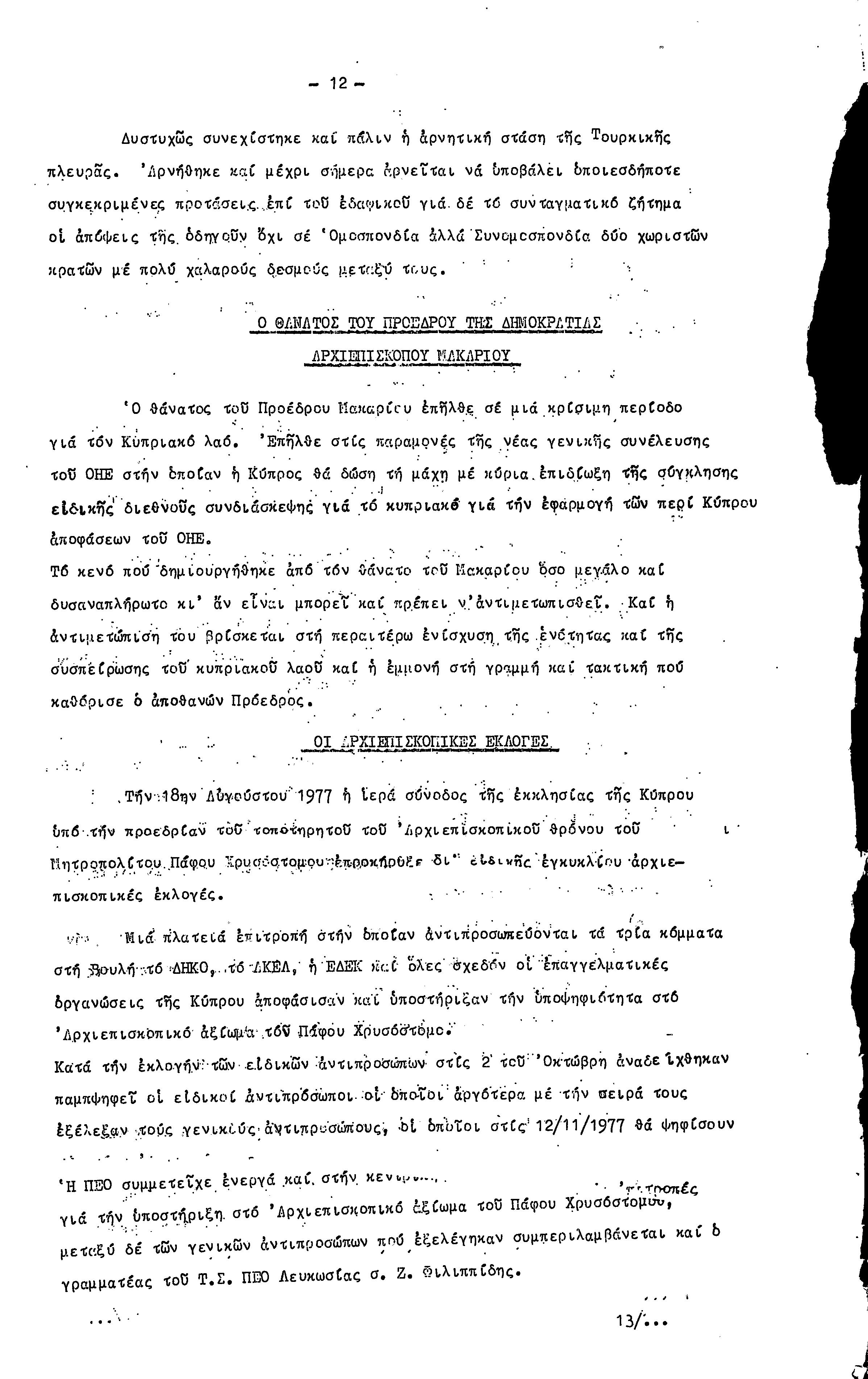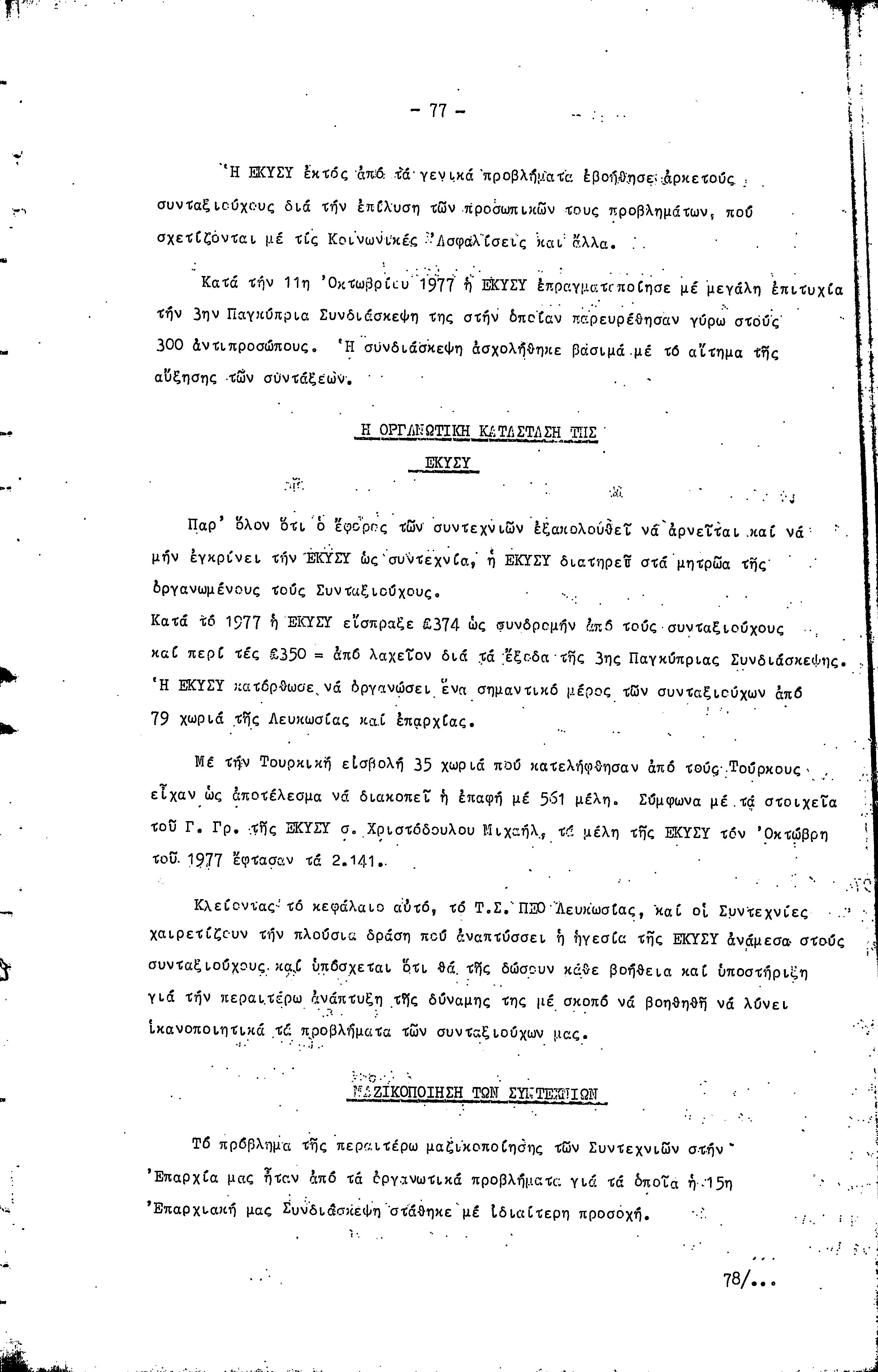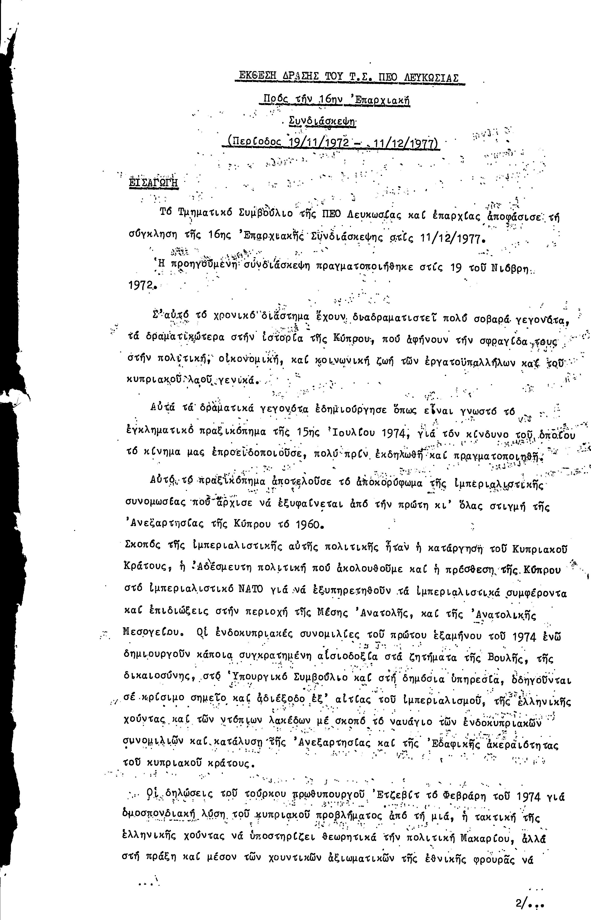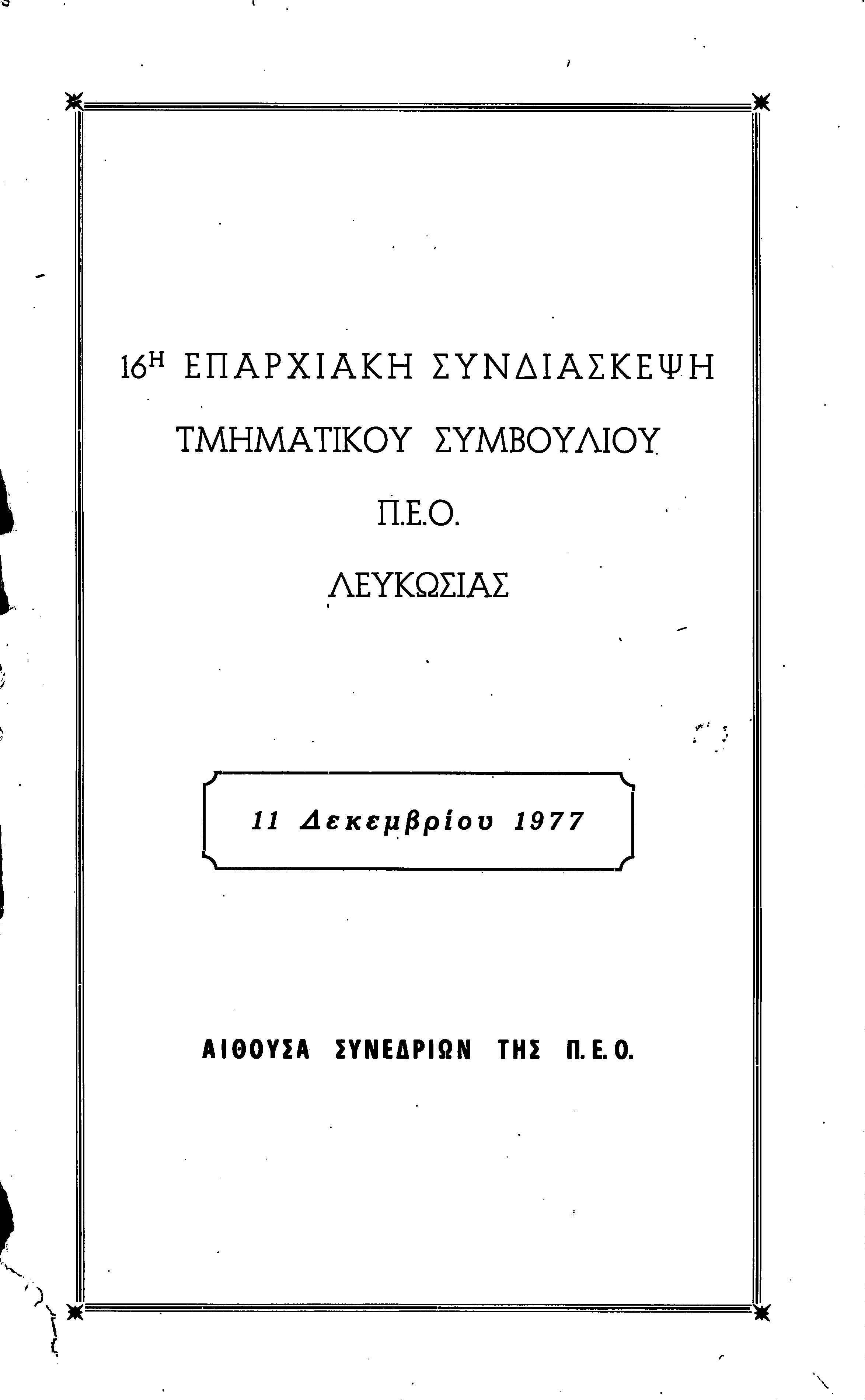 16η ΣΥΝΔΙΑΣΚΕΨΗ Τ.Σ. ΠΕΟ ΛΕΥΚΩΣΙΑΣ-ΚΕΡΥΝΕΙΑΣ, 11.12.1977 ( ΕΚΘΕΣΗ ΔΡΑΣΗΣ)