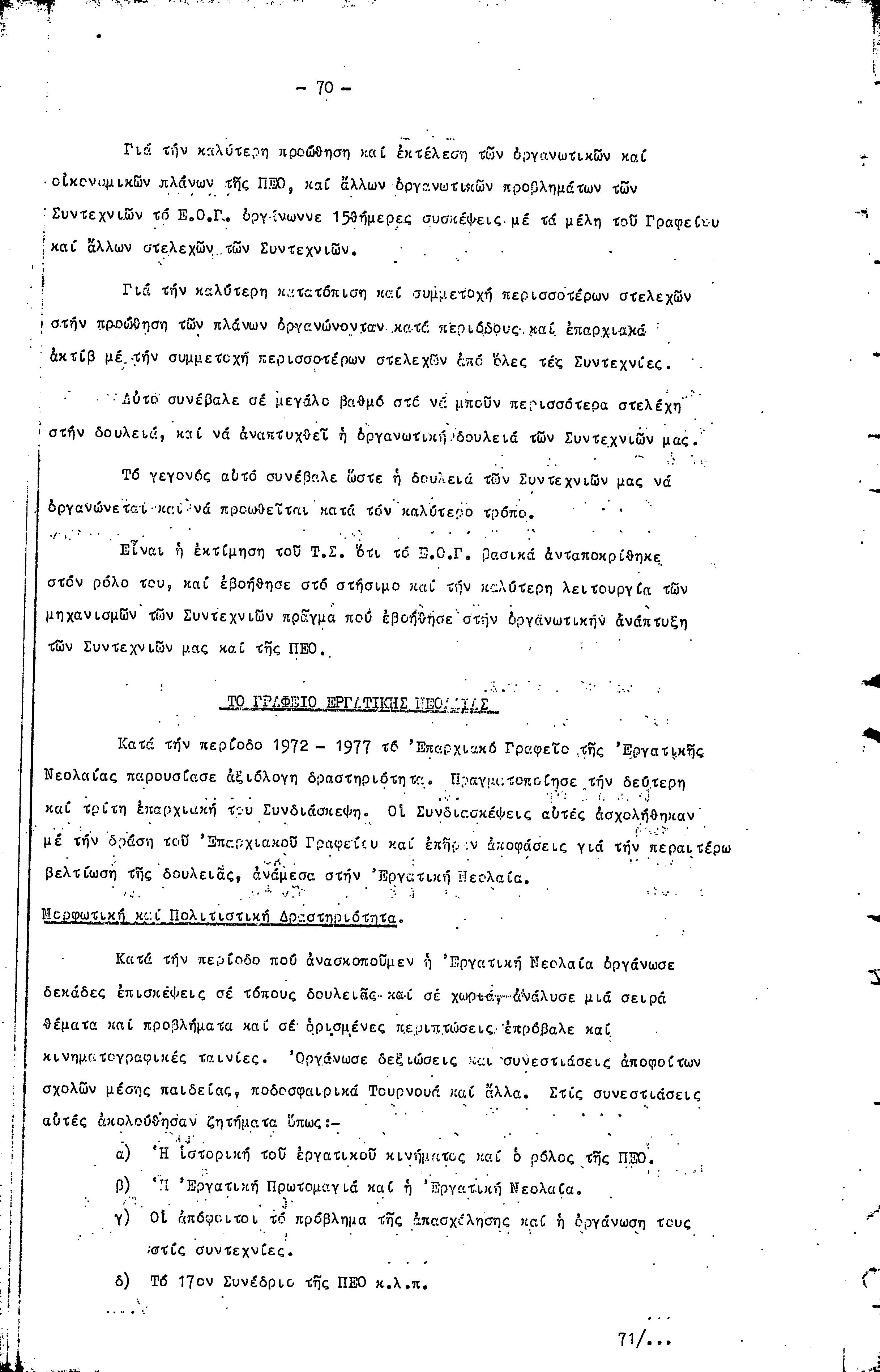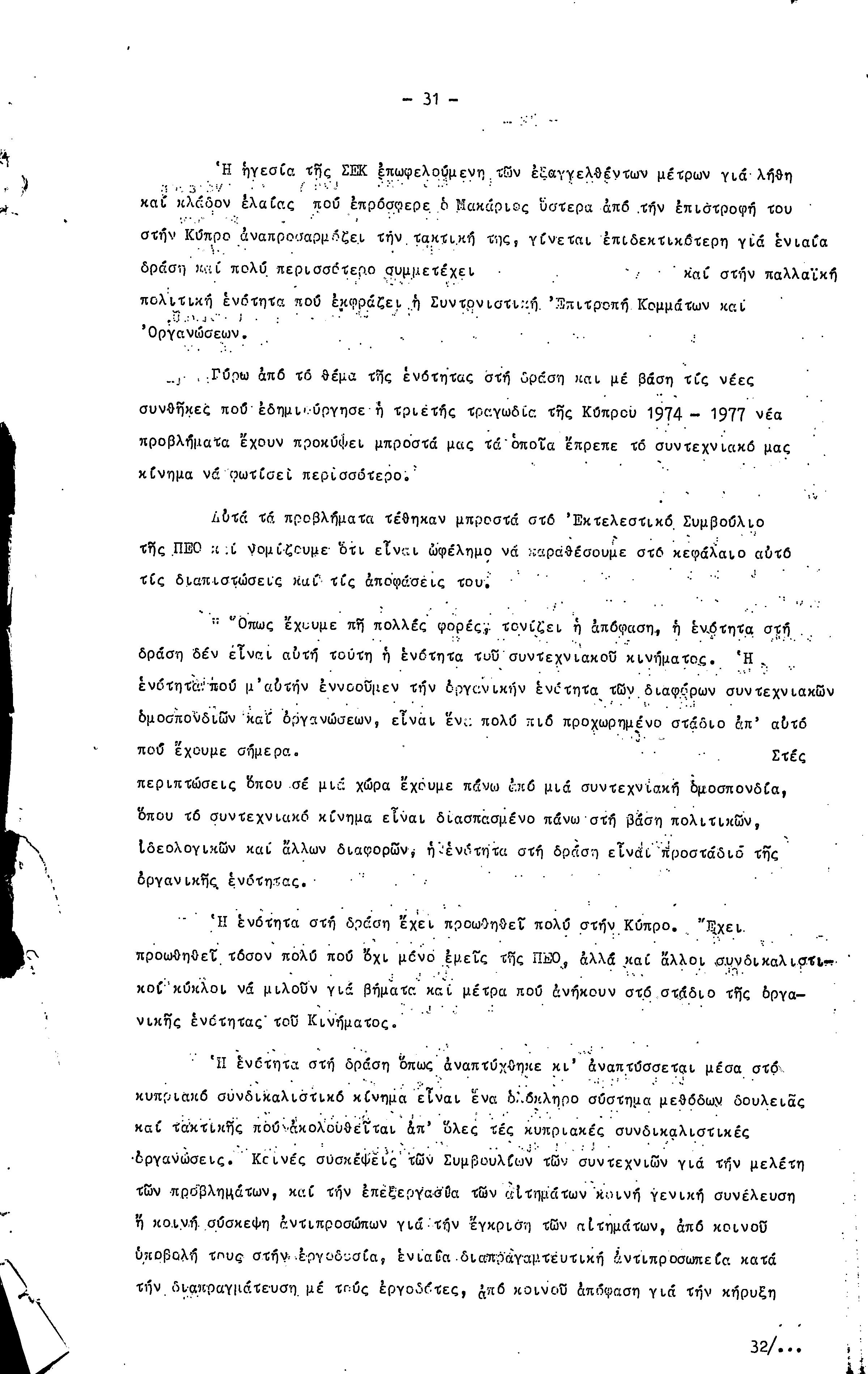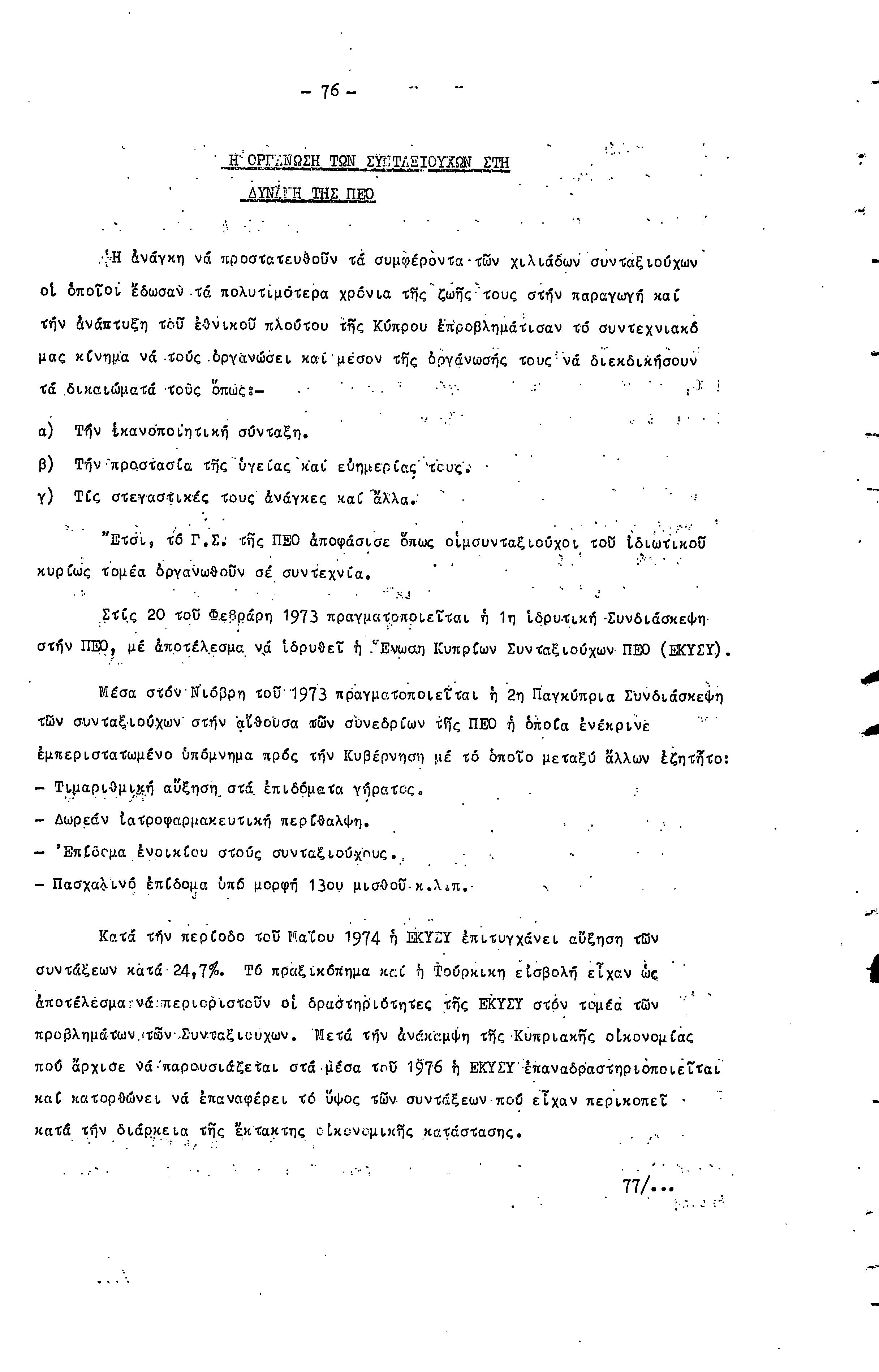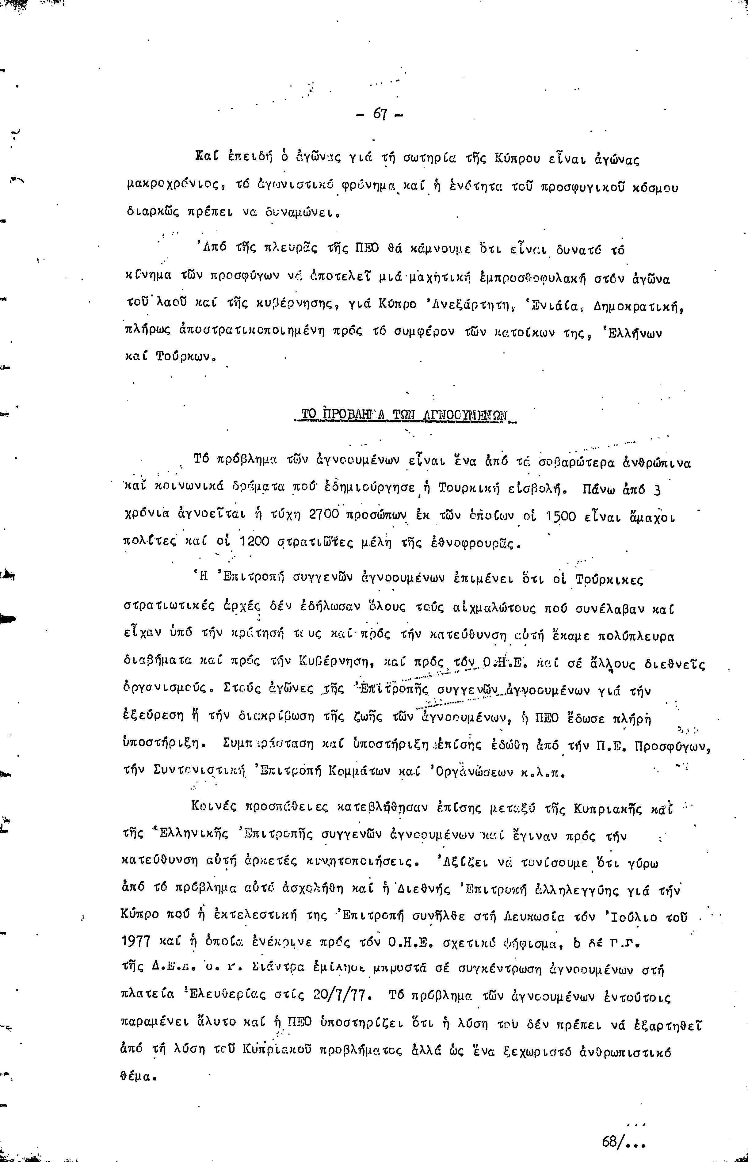 16η ΣΥΝΔΙΑΣΚΕΨΗ Τ.Σ. ΠΕΟ ΛΕΥΚΩΣΙΑΣ-ΚΕΡΥΝΕΙΑΣ, 11.12.1977 ( ΕΚΘΕΣΗ ΔΡΑΣΗΣ)