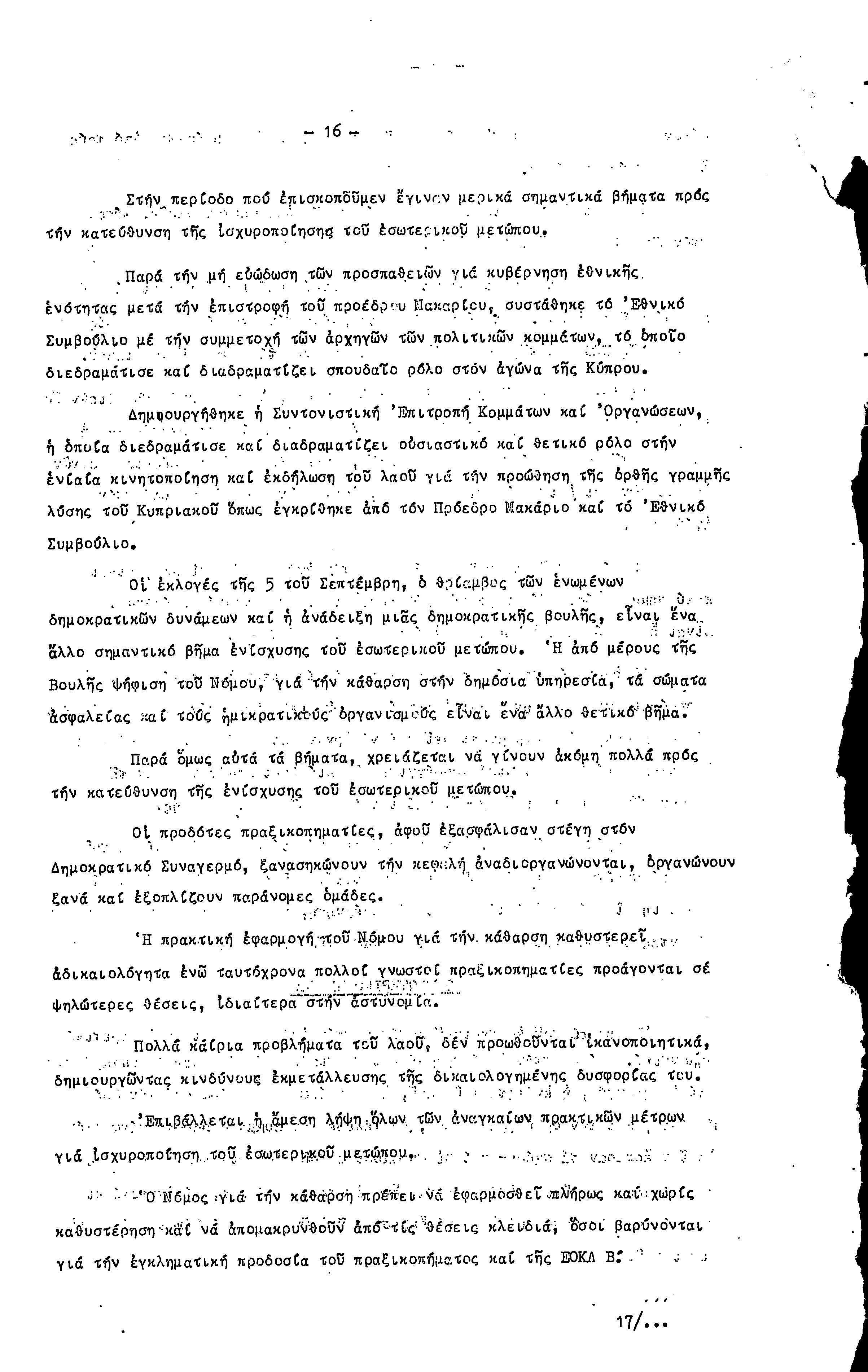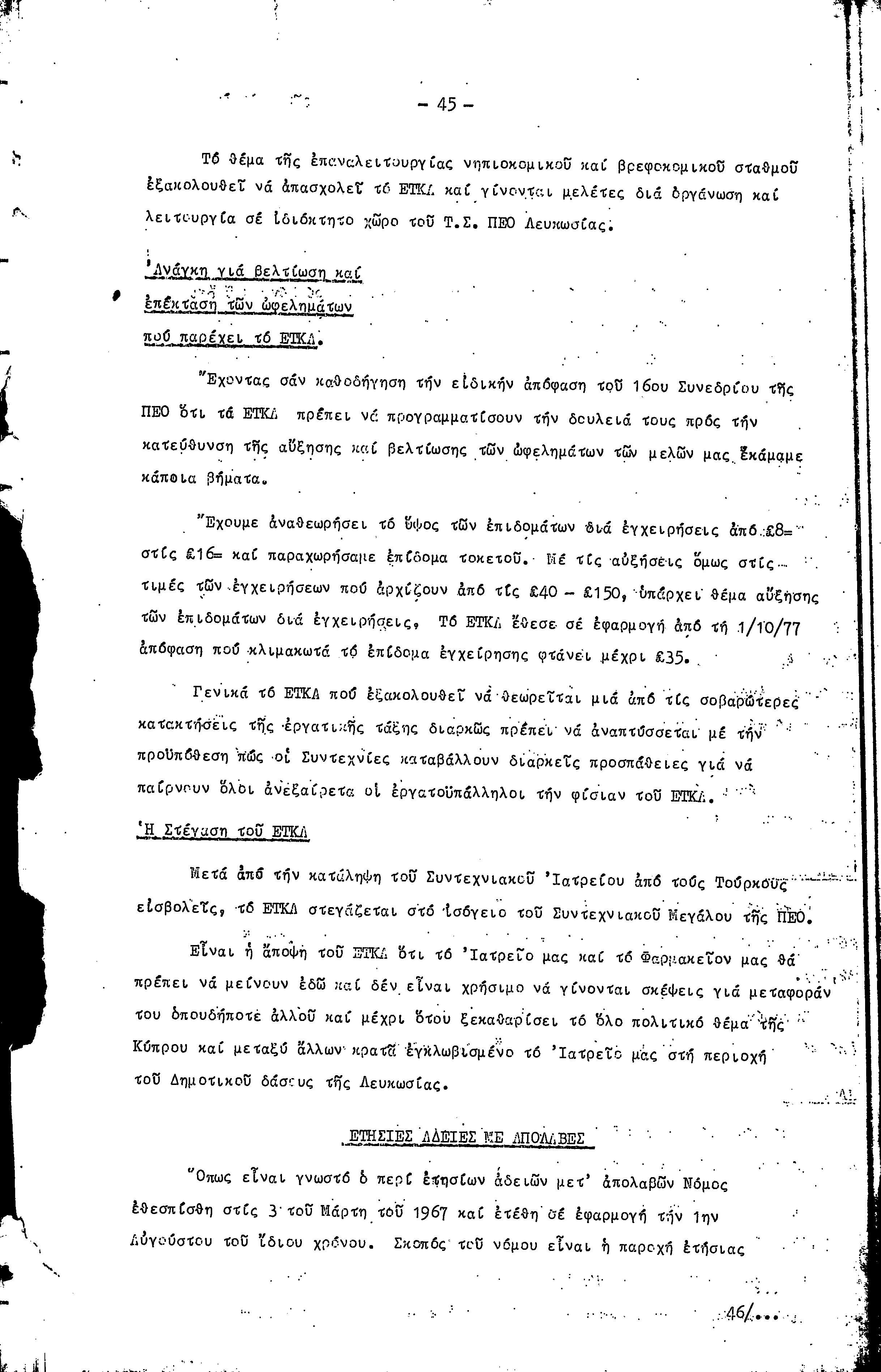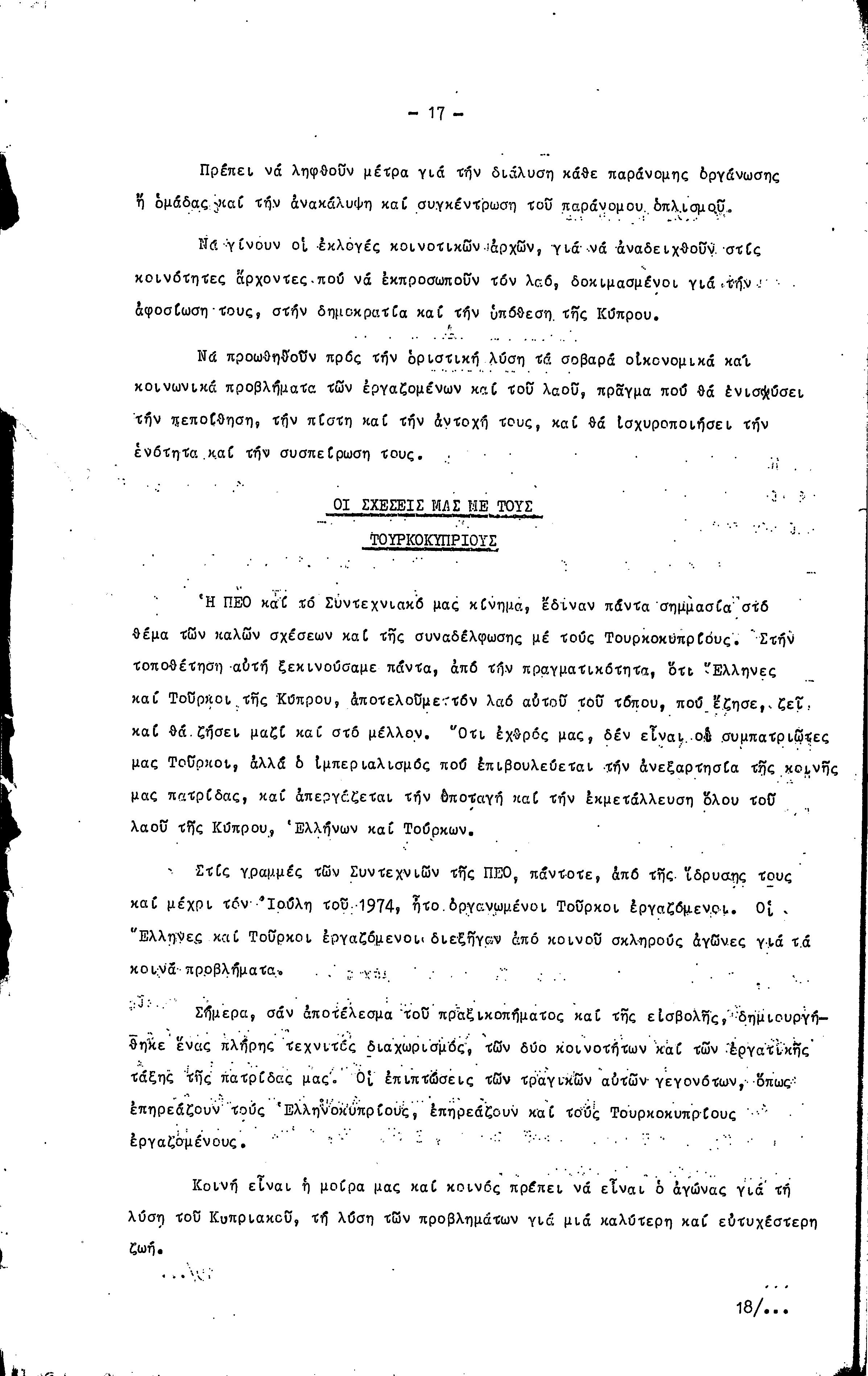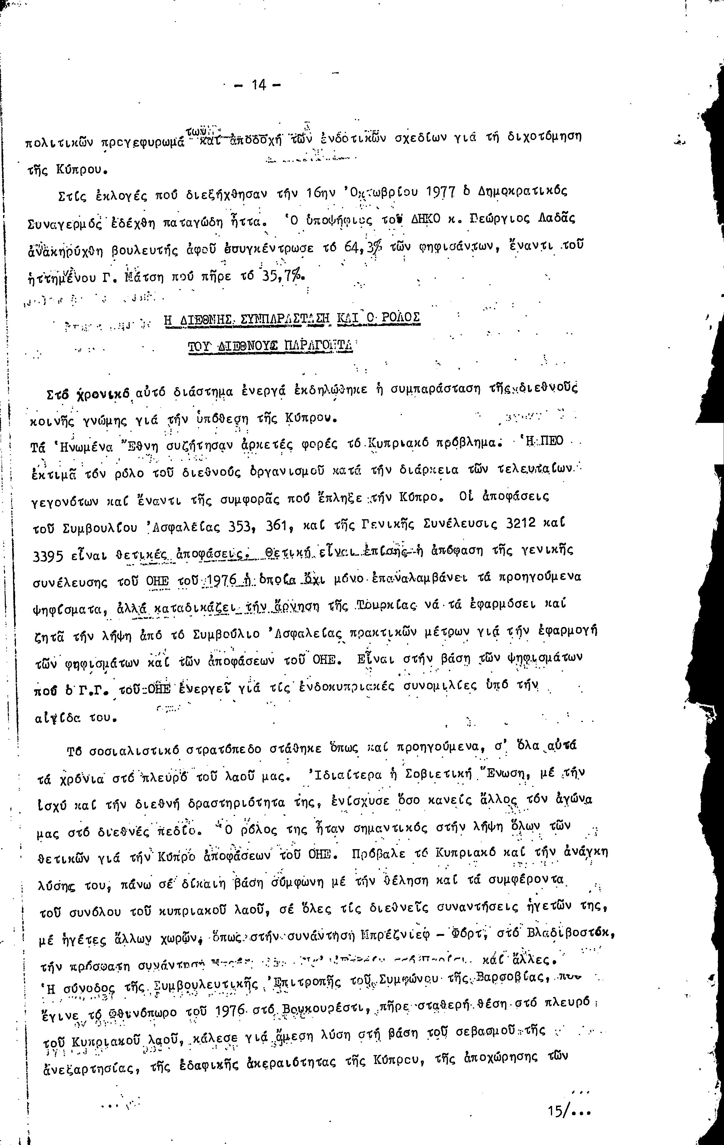 16η ΣΥΝΔΙΑΣΚΕΨΗ Τ.Σ. ΠΕΟ ΛΕΥΚΩΣΙΑΣ-ΚΕΡΥΝΕΙΑΣ, 11.12.1977 ( ΕΚΘΕΣΗ ΔΡΑΣΗΣ)