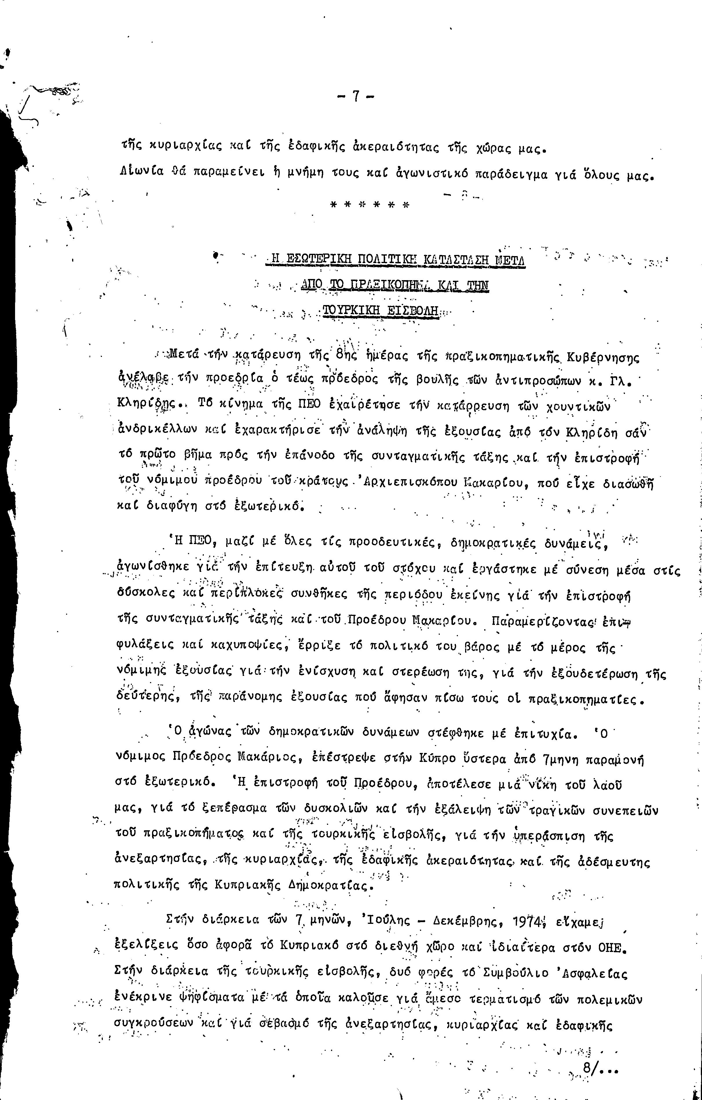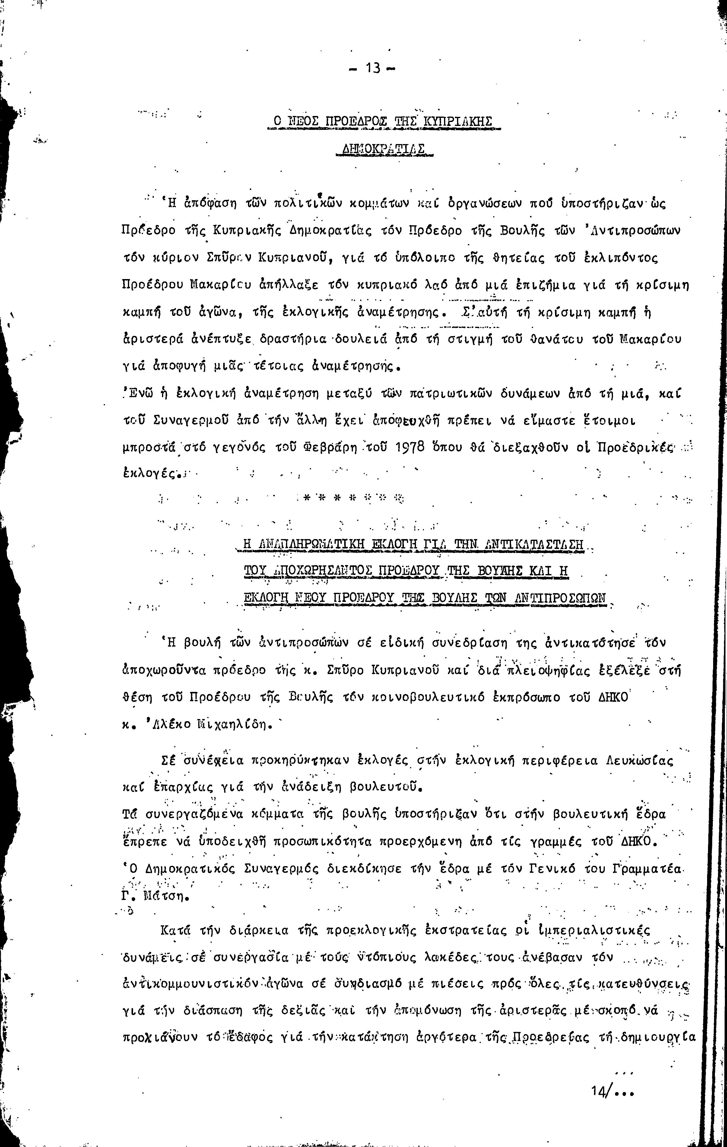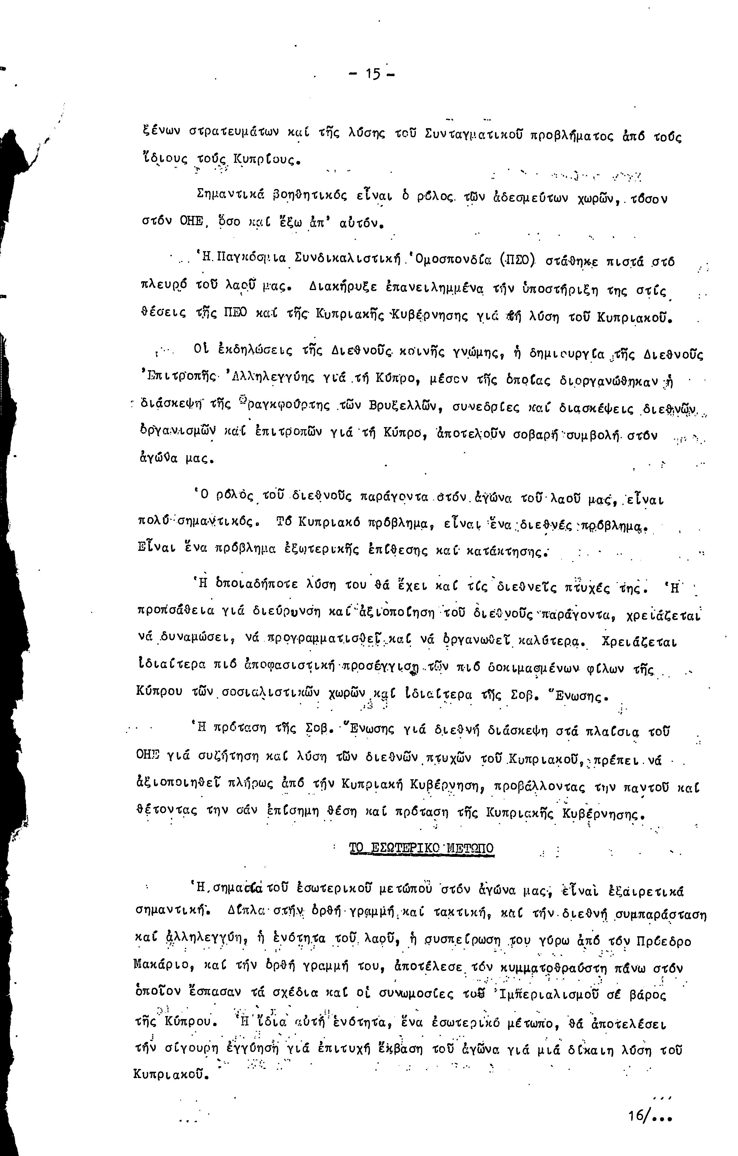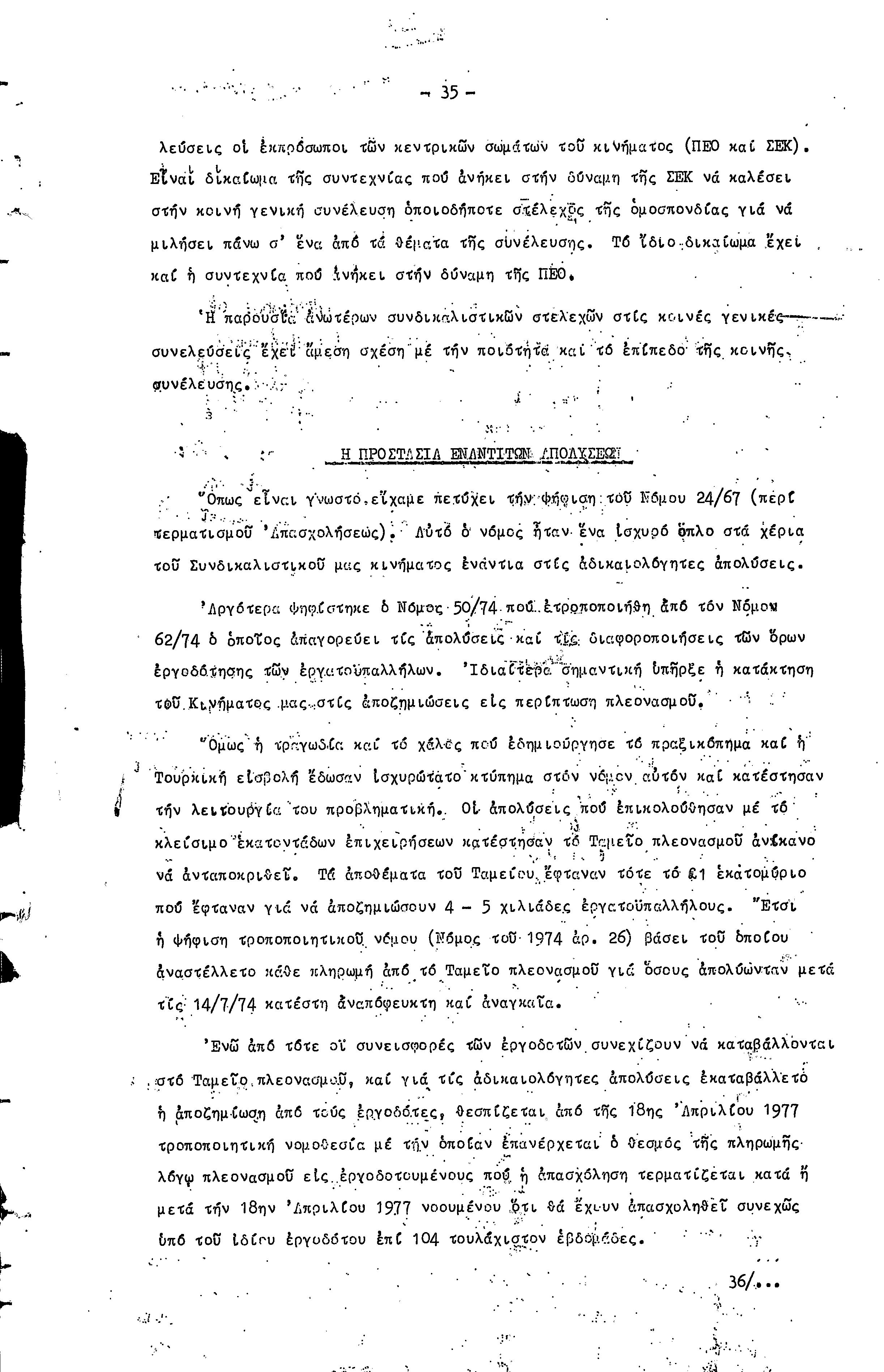 16η ΣΥΝΔΙΑΣΚΕΨΗ Τ.Σ. ΠΕΟ ΛΕΥΚΩΣΙΑΣ-ΚΕΡΥΝΕΙΑΣ, 11.12.1977 ( ΕΚΘΕΣΗ ΔΡΑΣΗΣ)